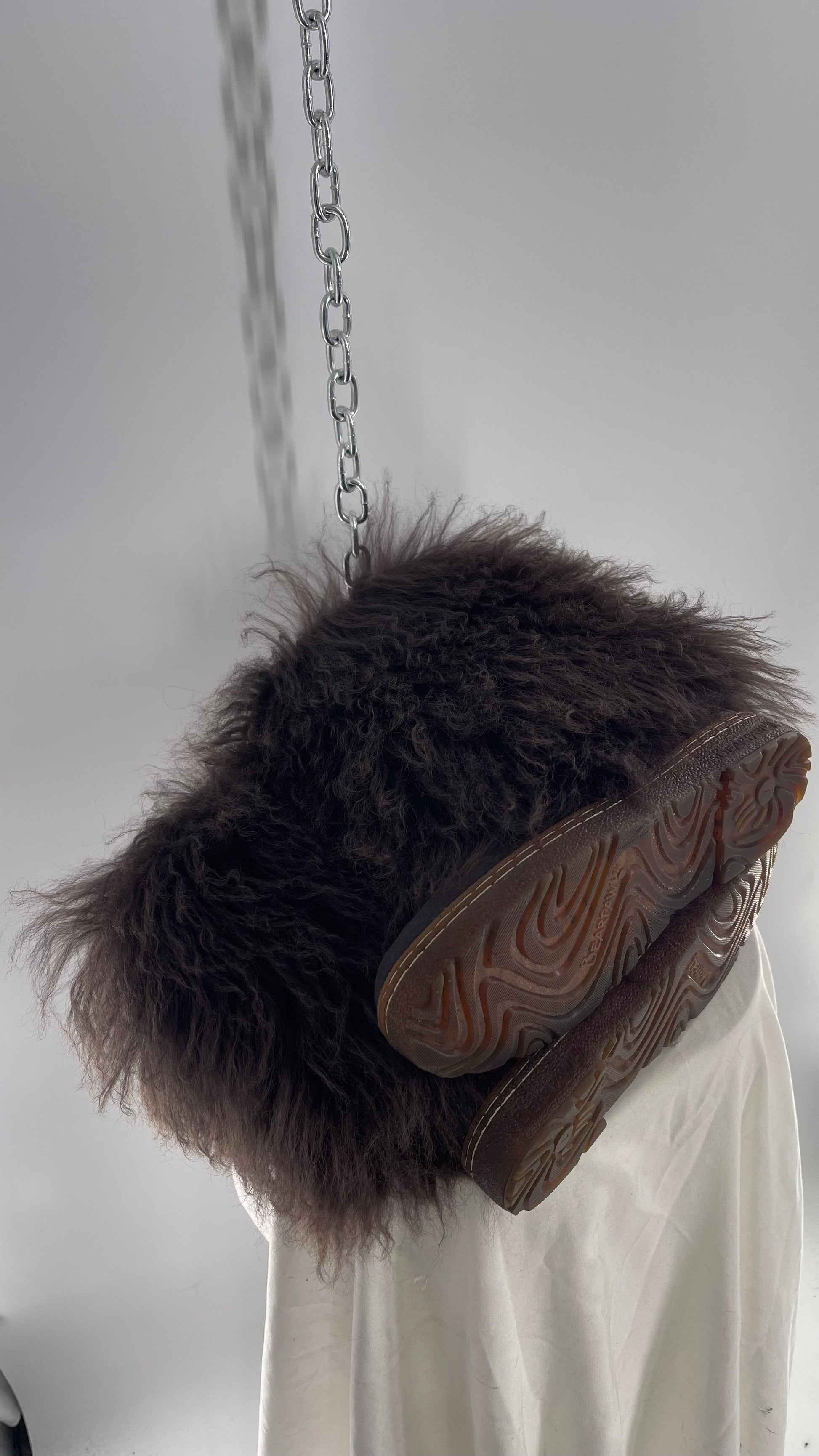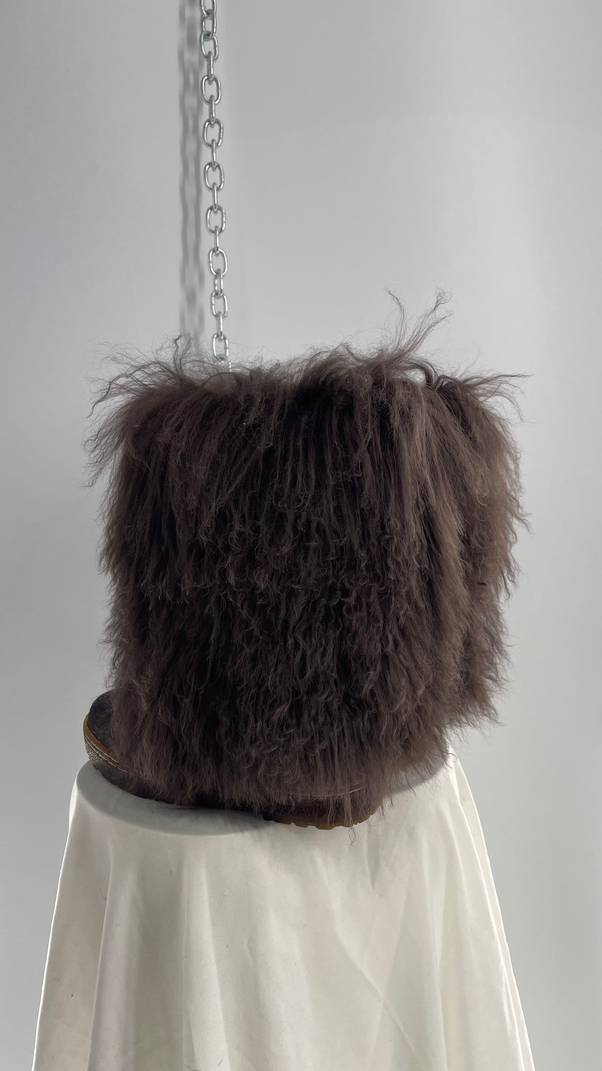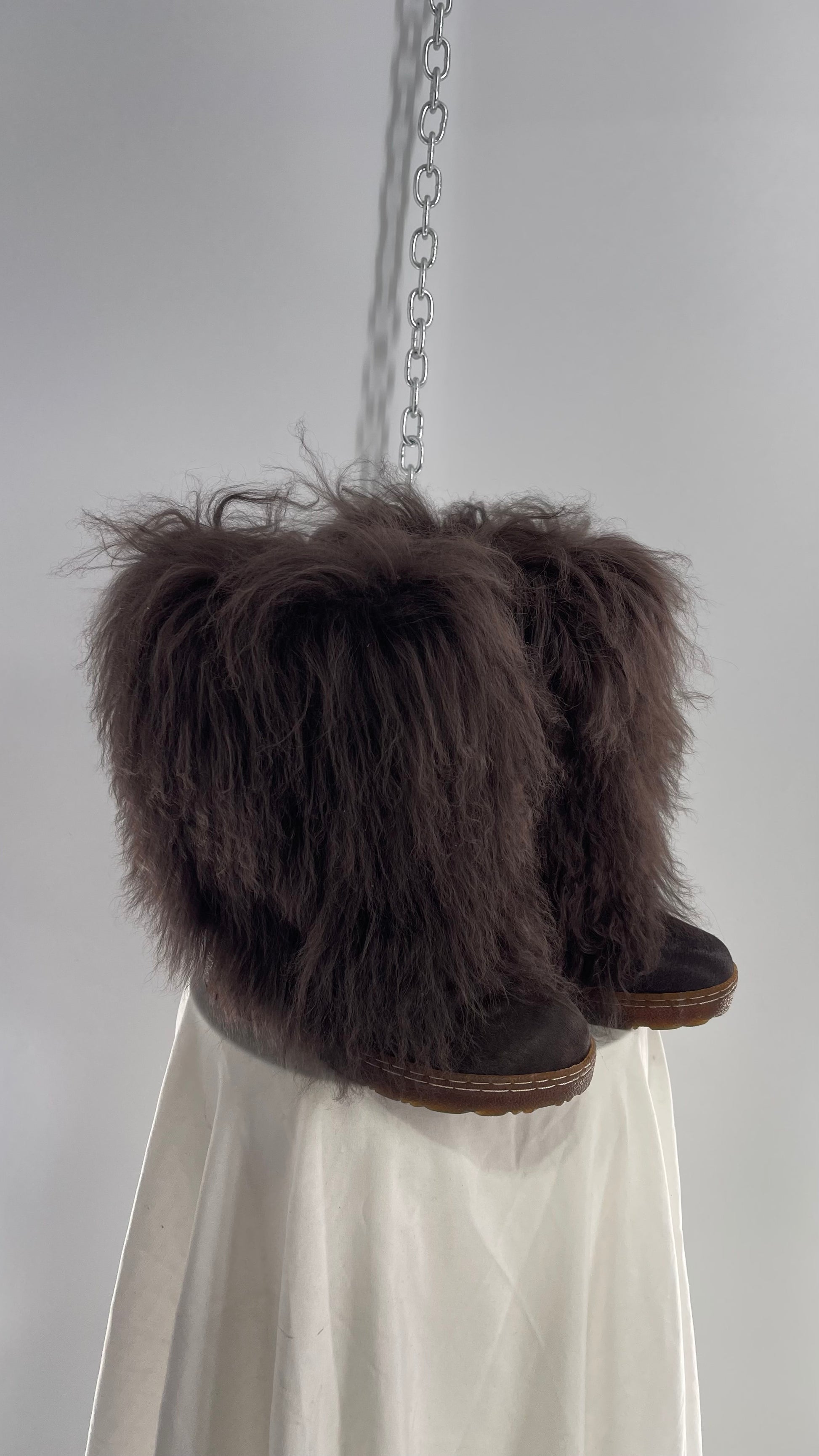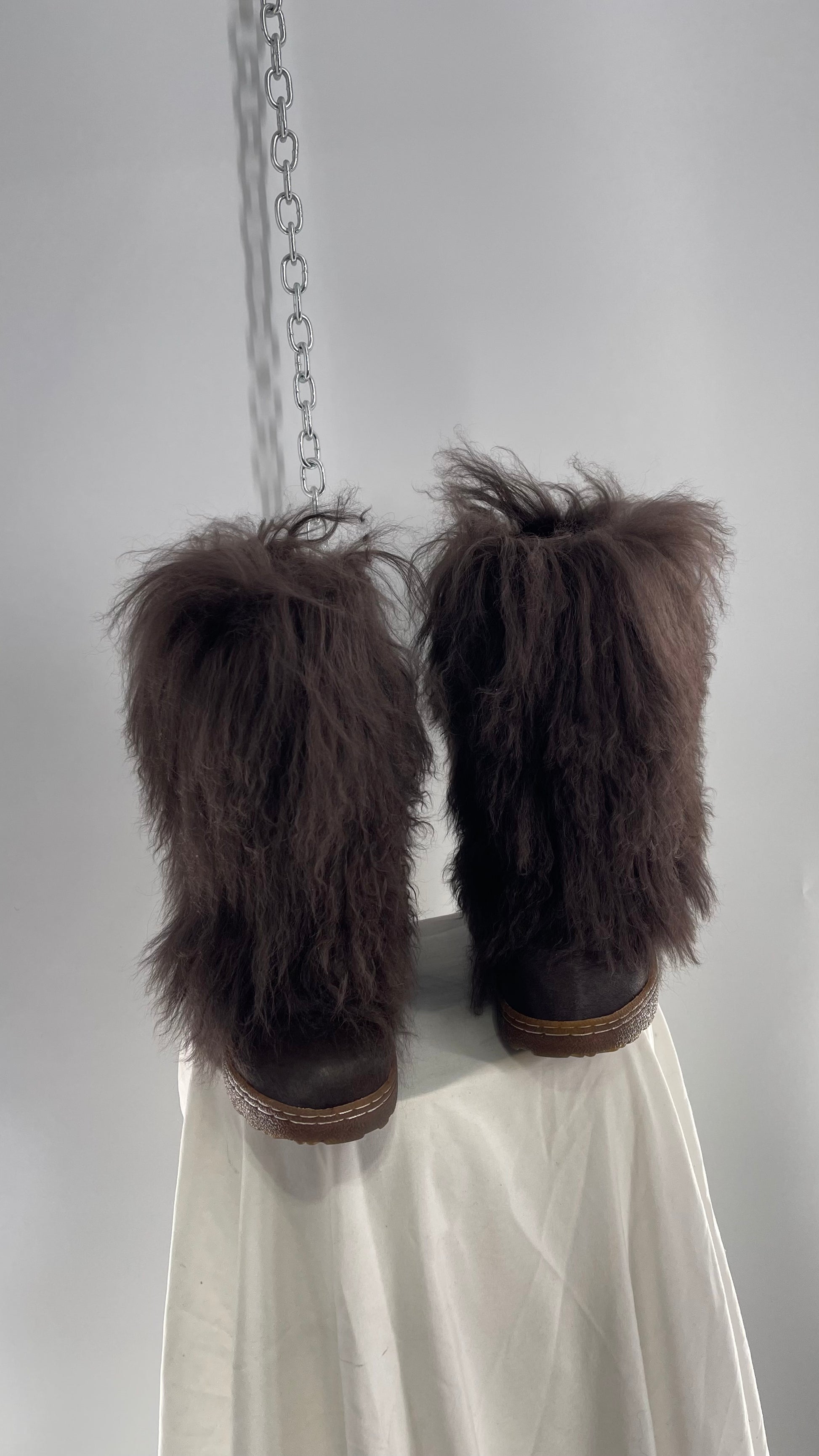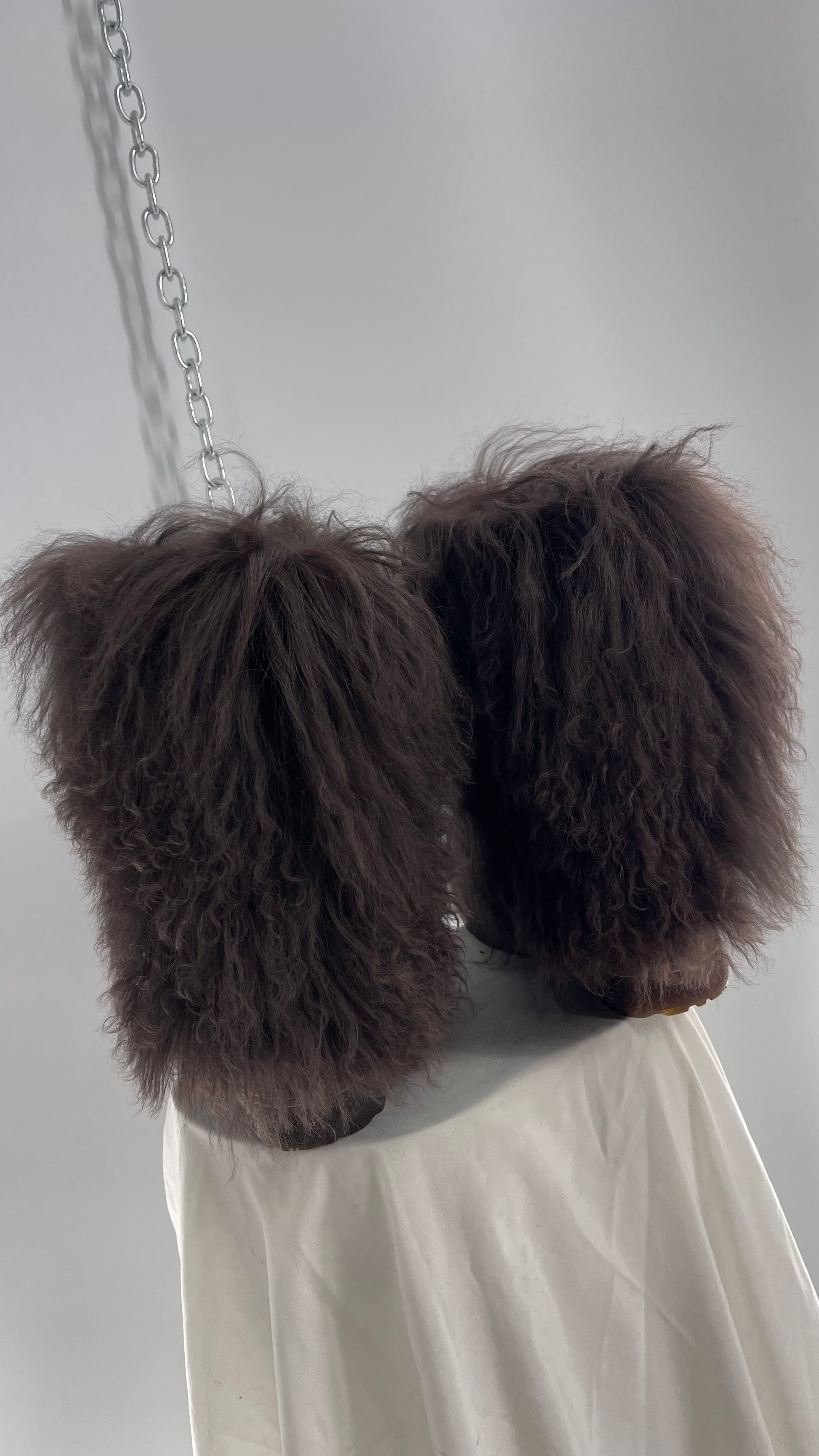 Vintage BEARPAW Boetis Chocolate Cow Hair and Curly Lamb Fur Exaggerated Fuzzy Boots (7)