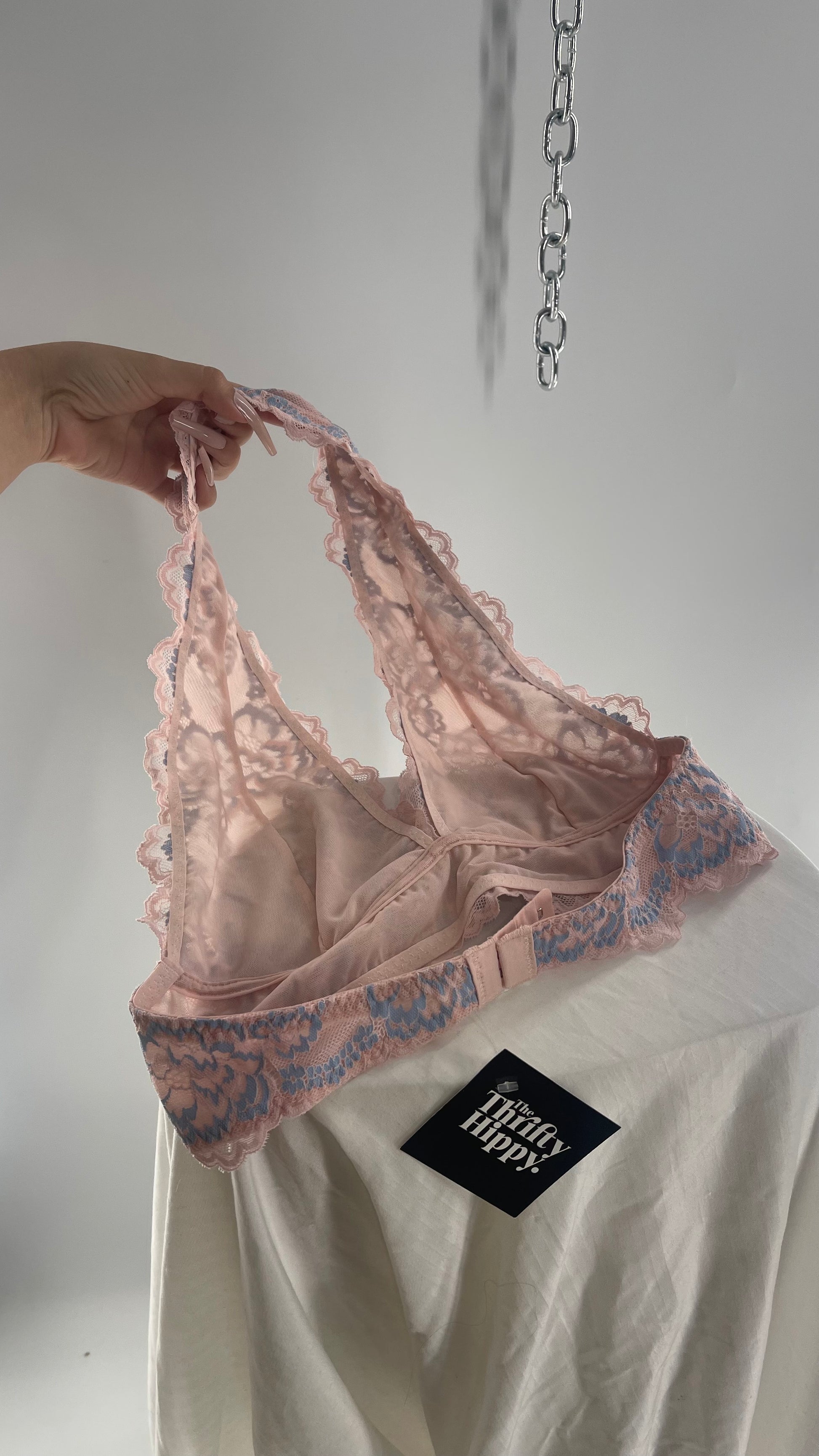 Pink and Powder Blue Delicate Lace Halter Bralette Never Worn