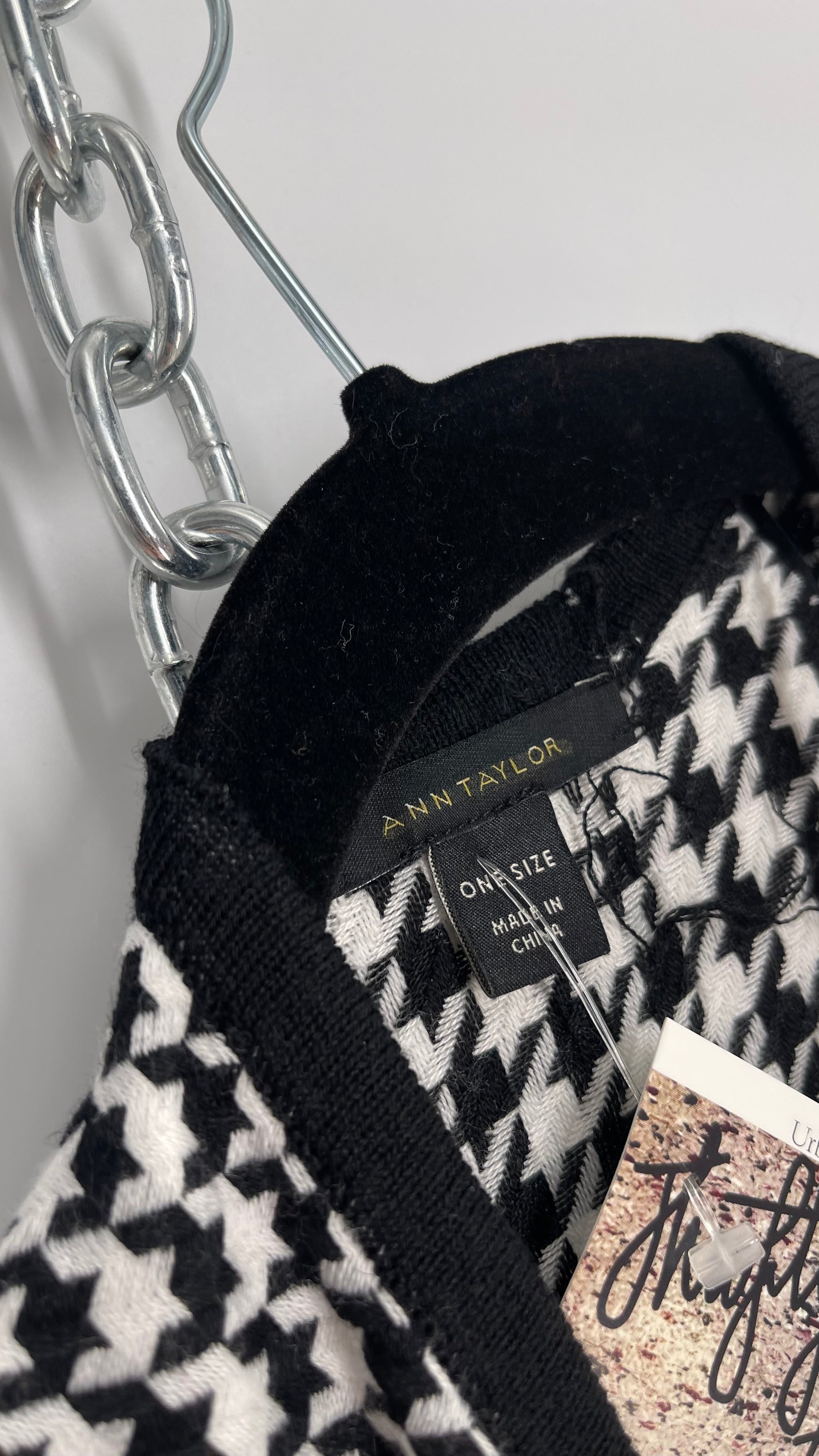 Ann Taylor Houndstooth Black and White Knit Scarf Cape (One Size)