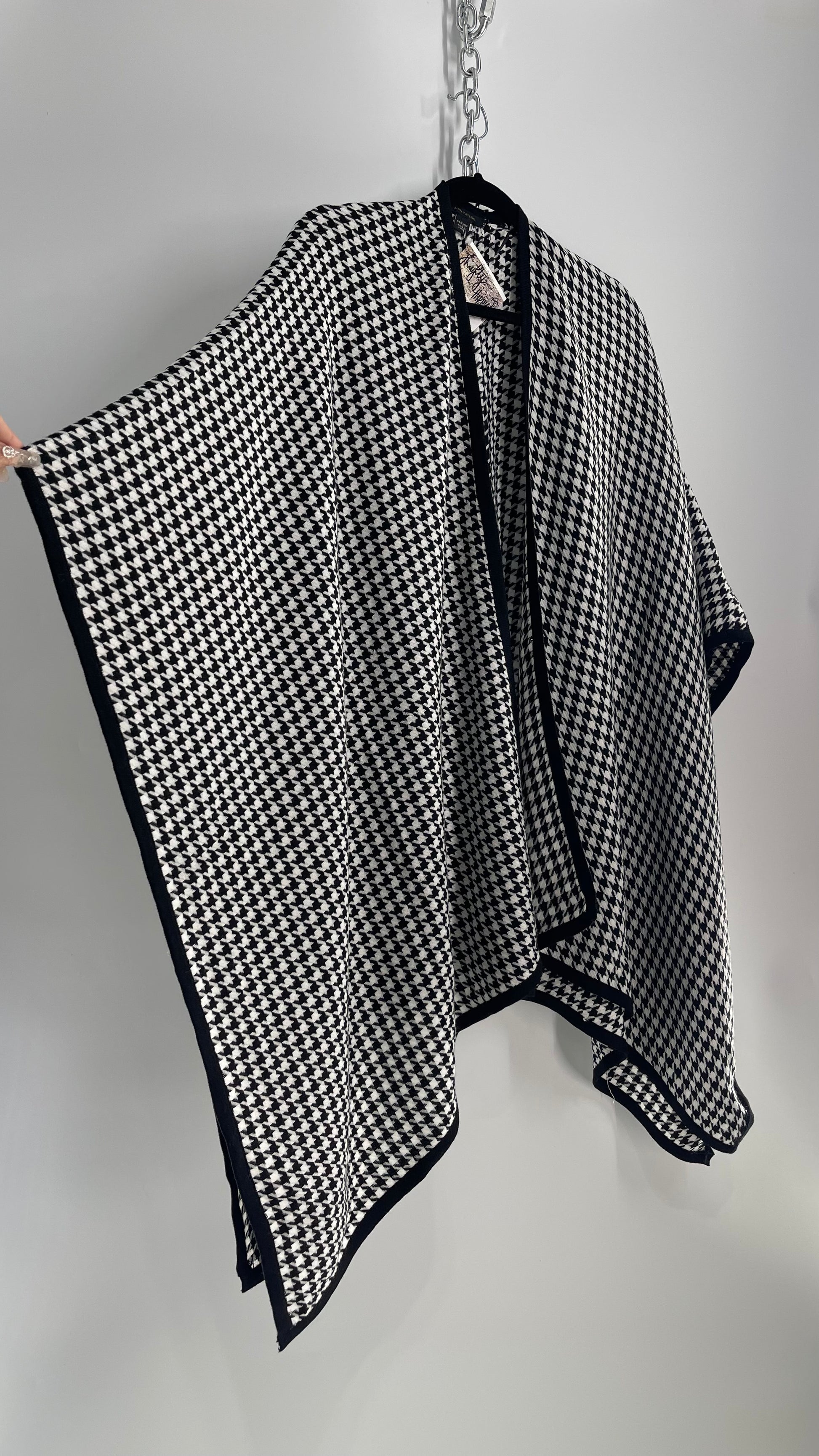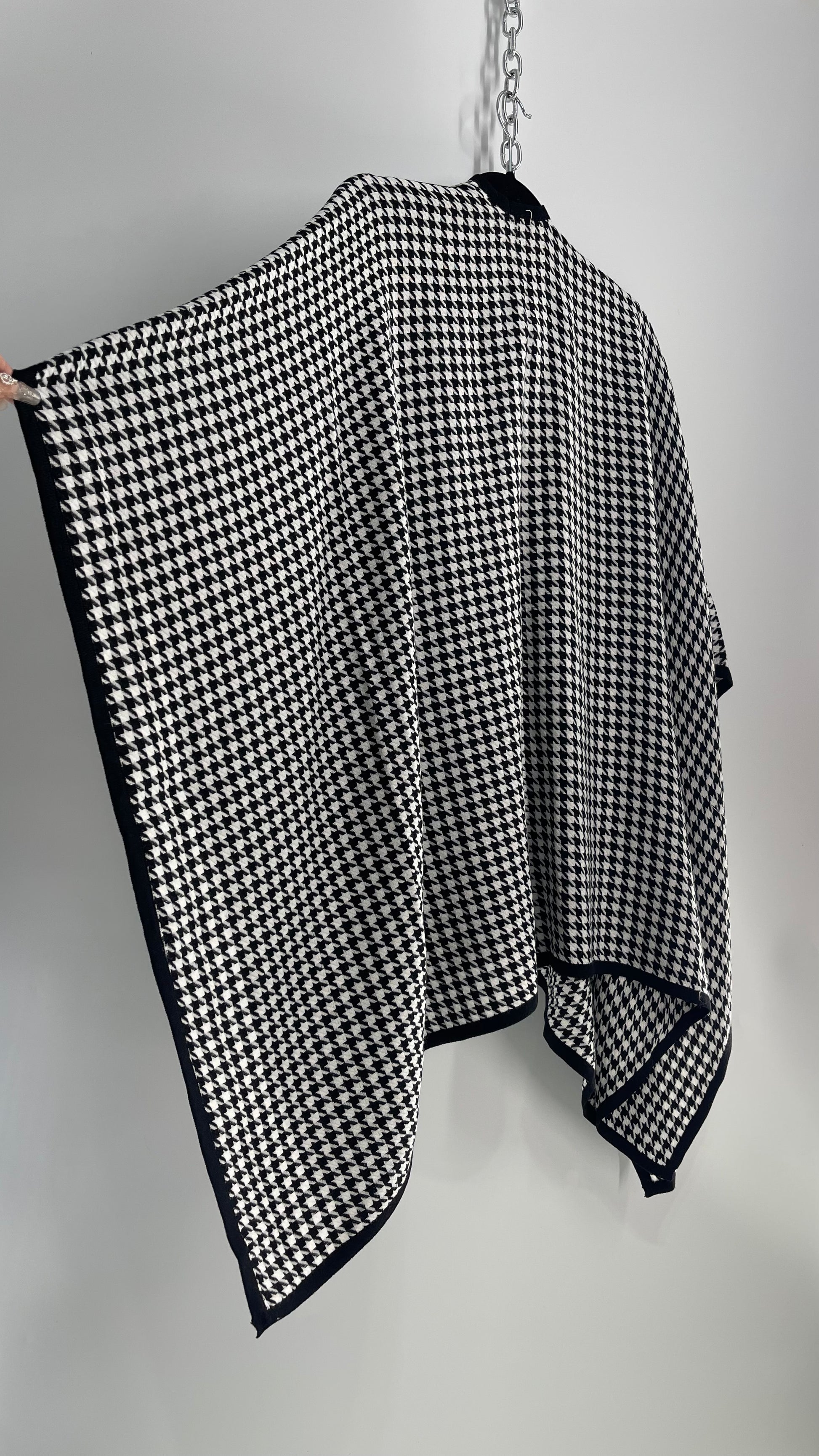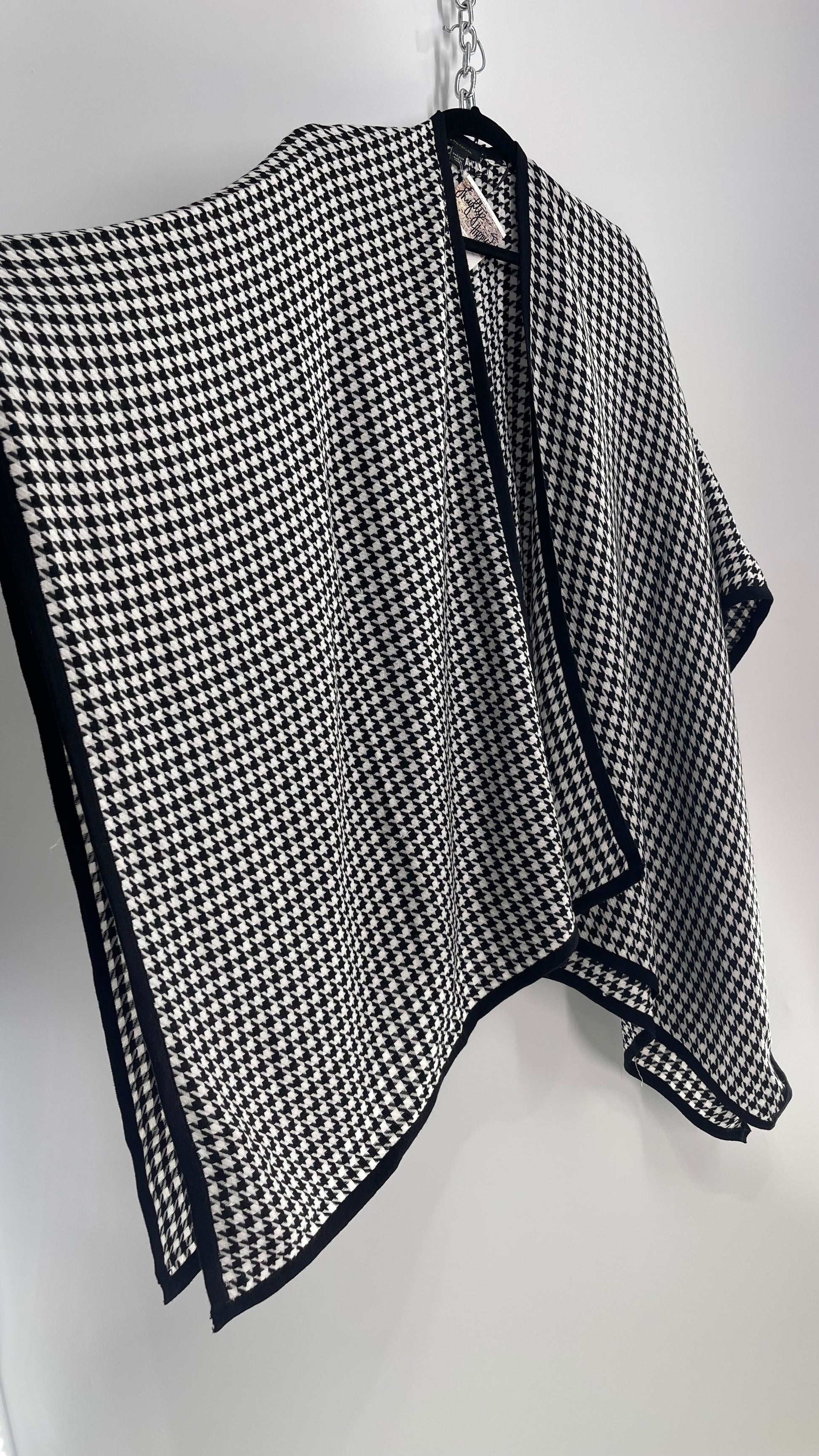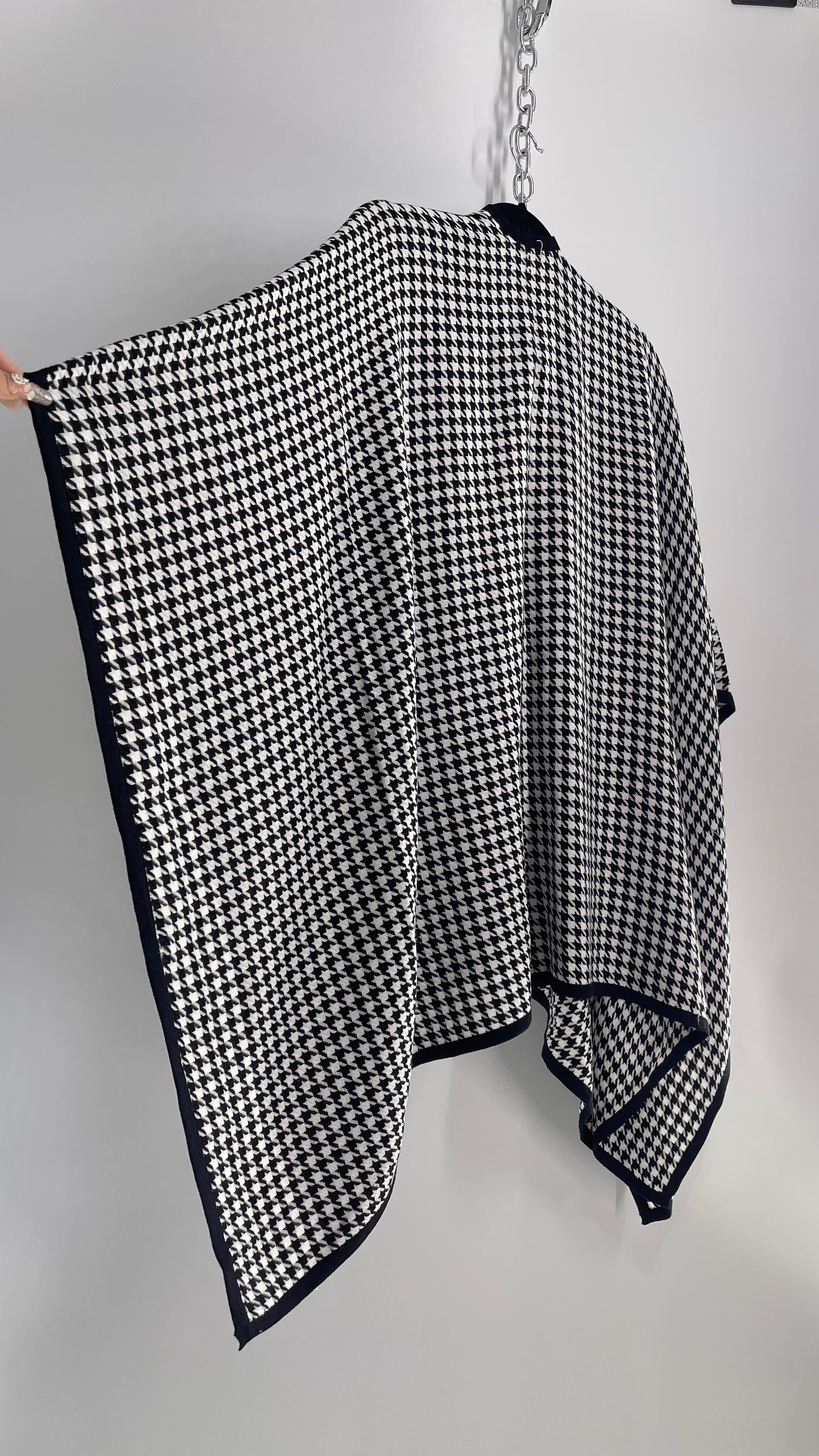 Ann Taylor Houndstooth Black and White Knit Scarf Cape