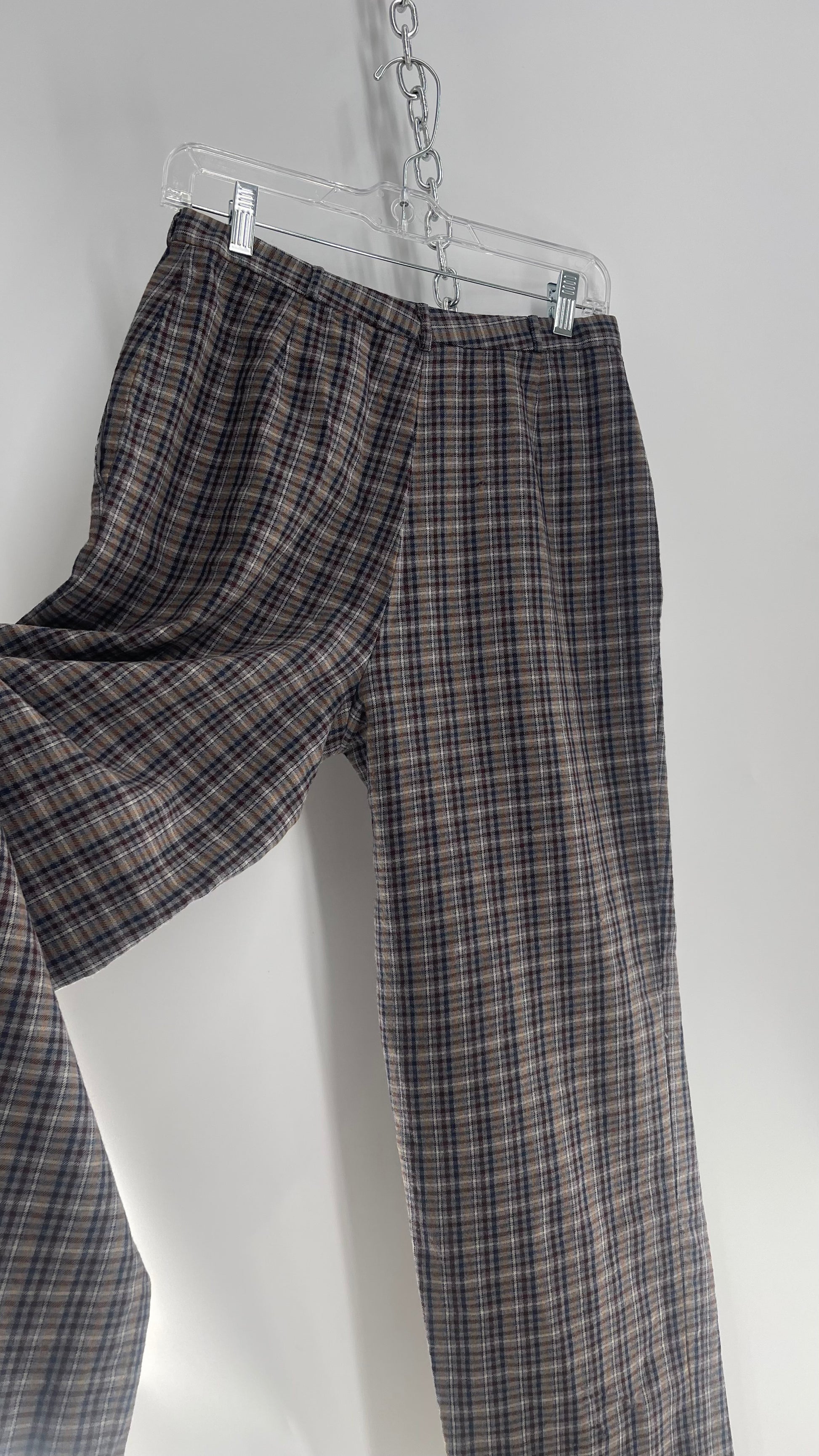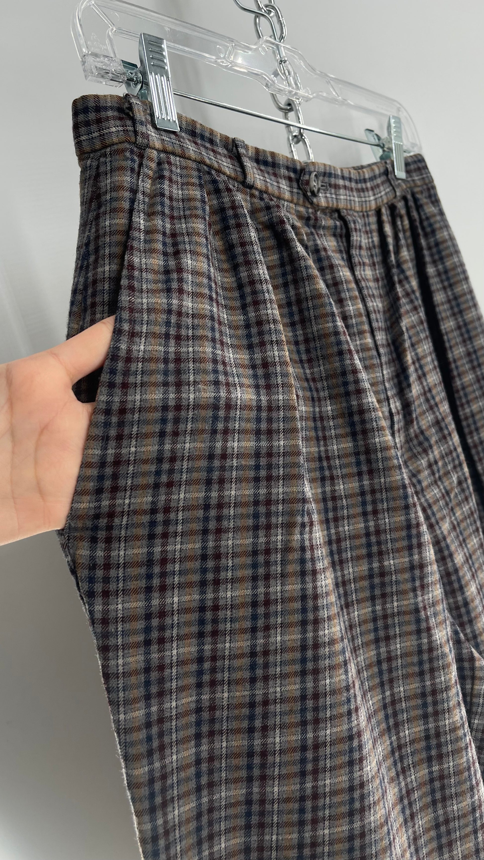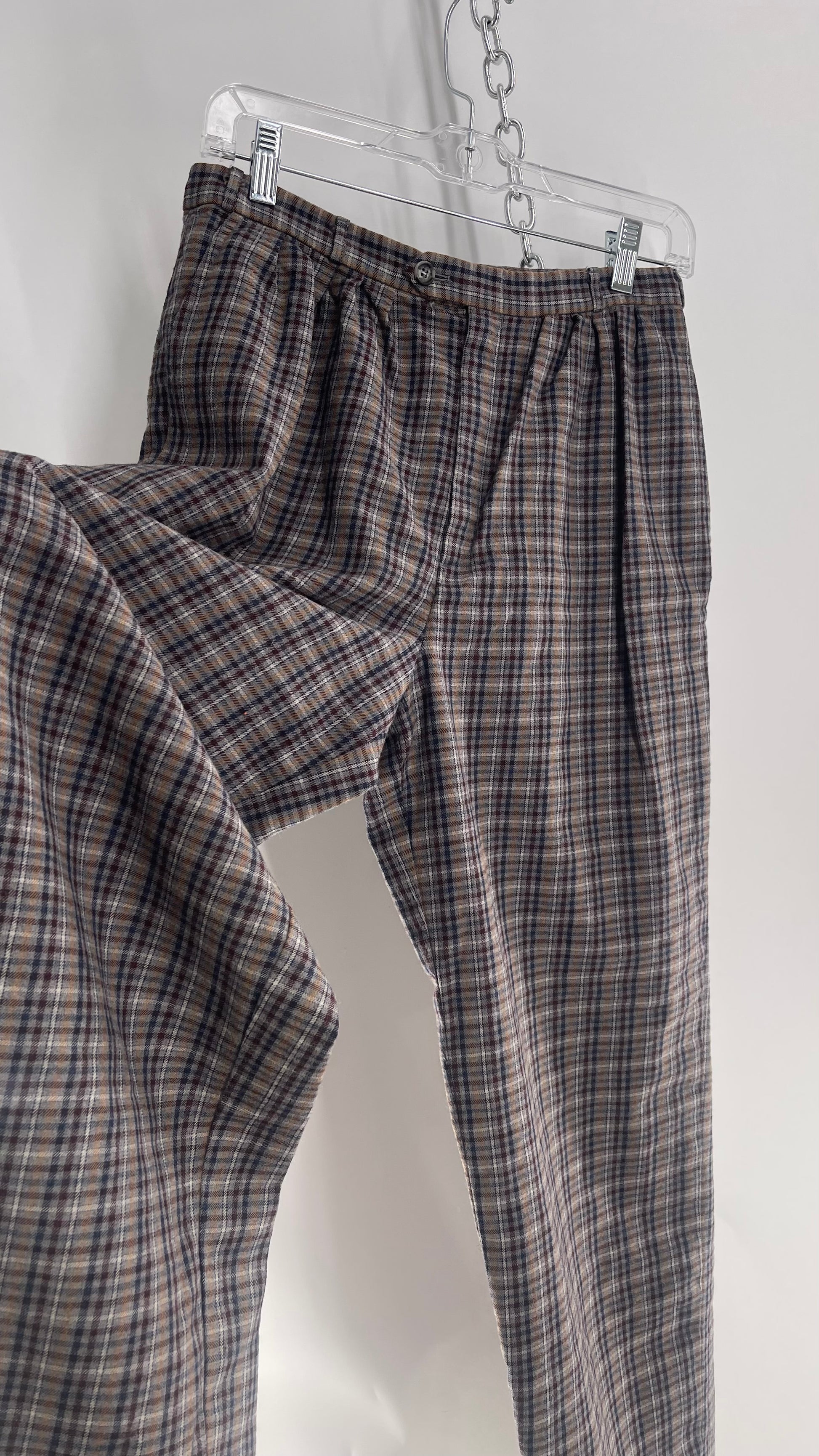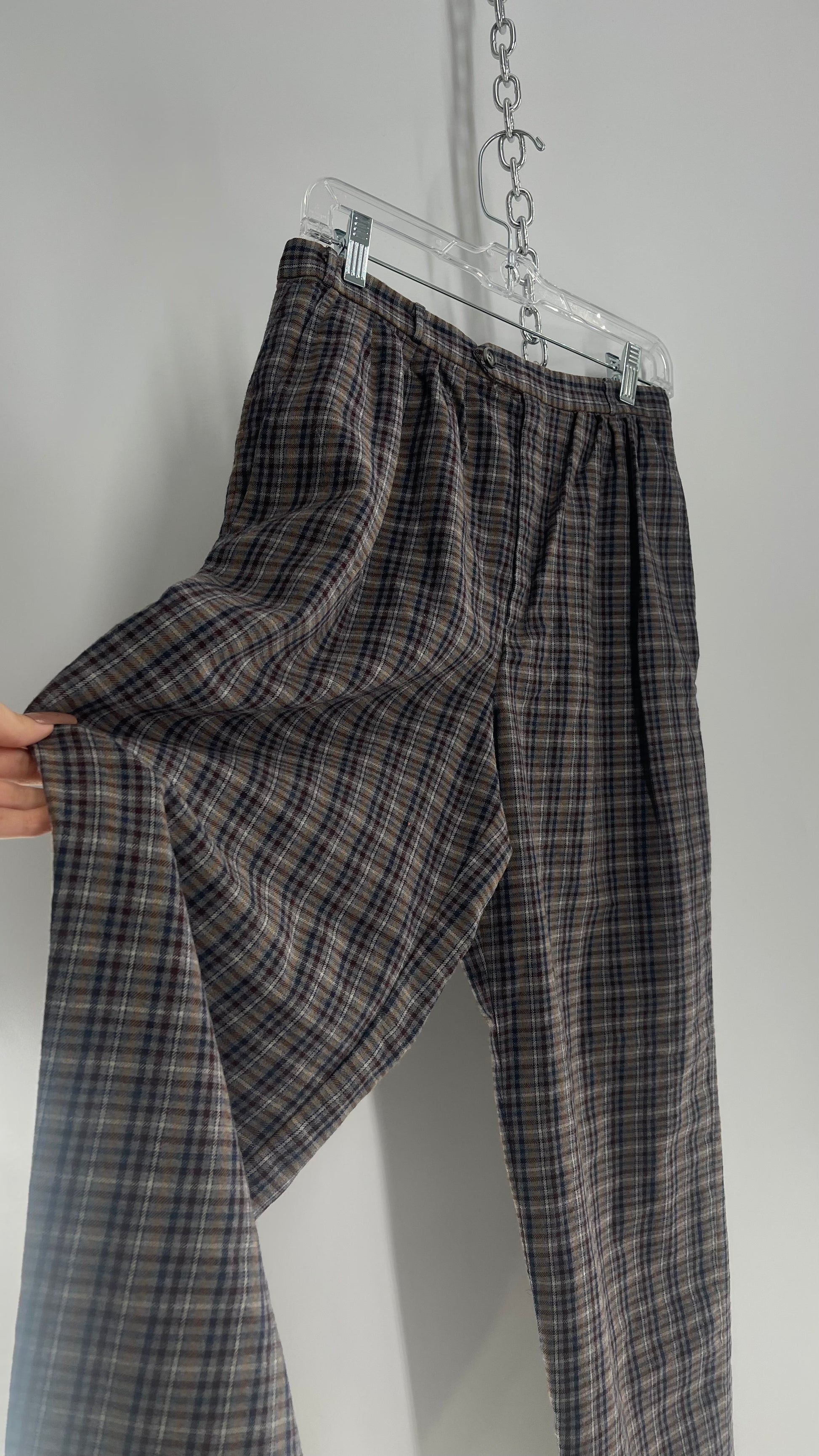 Vintage 100% Wool Gray Muted Tones Plaid Pleated Baggy Trousers (2)