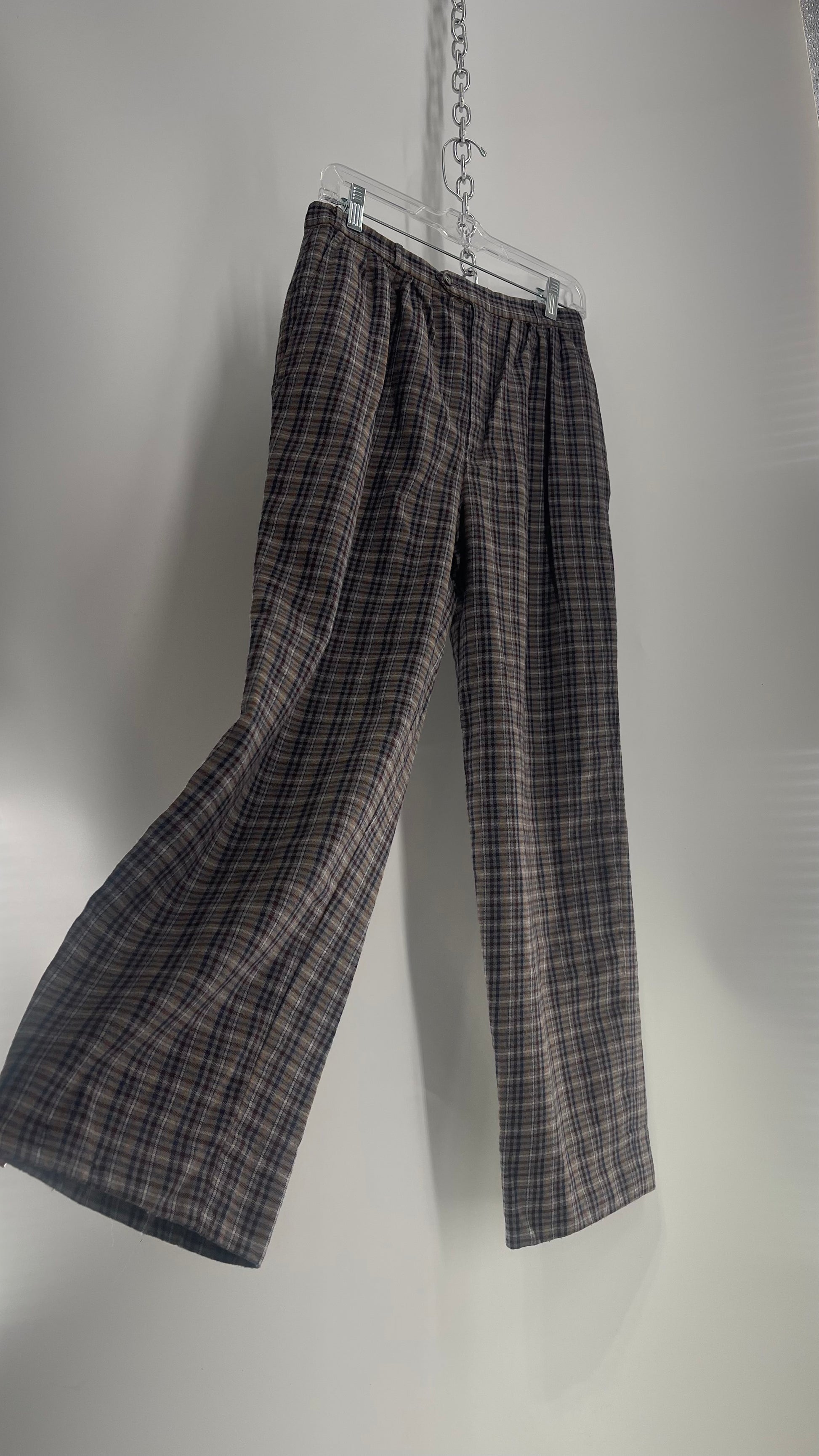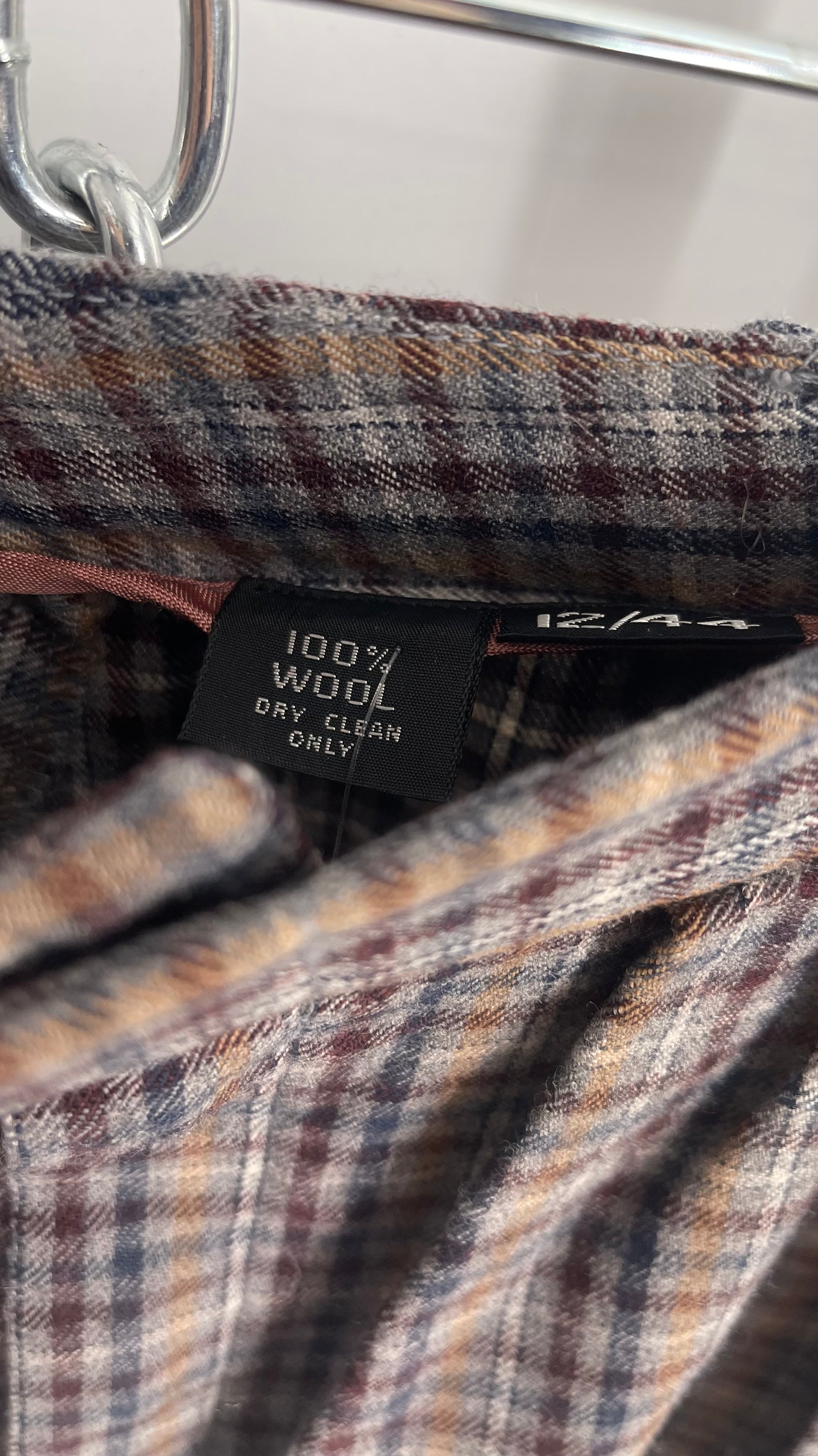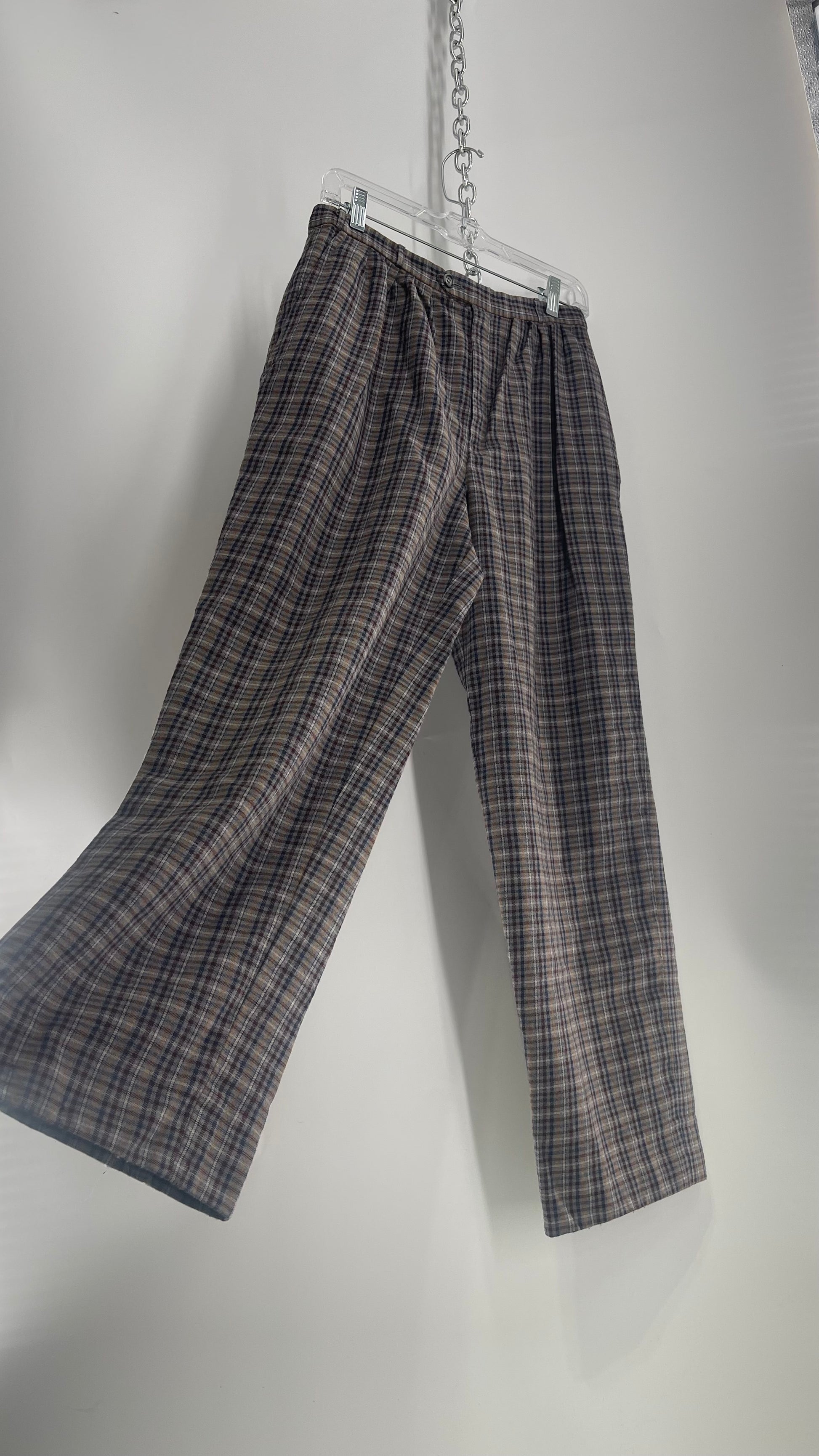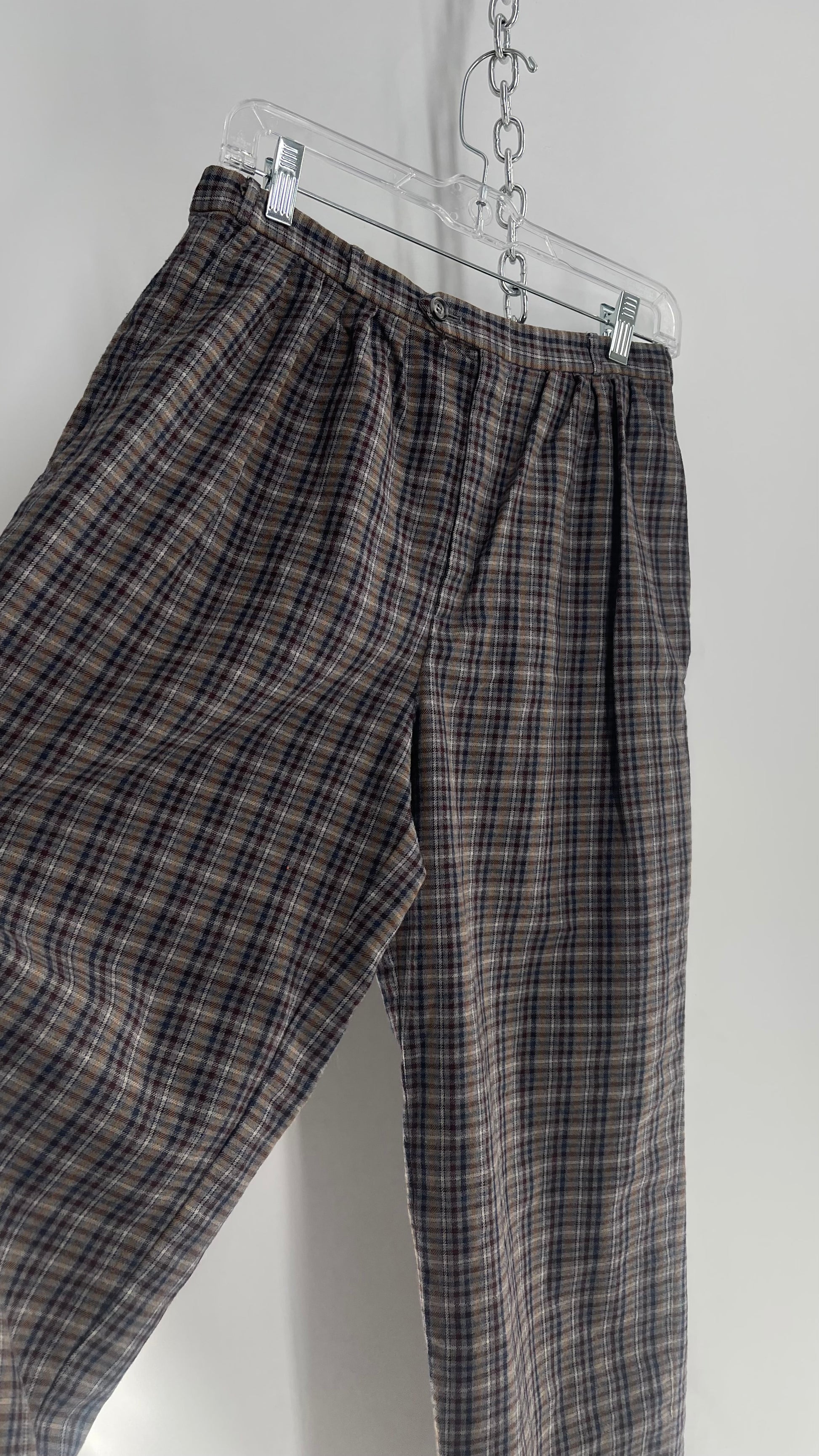 Vintage 100% Wool Gray Muted Tones Plaid Pleated Baggy Trousers (2)