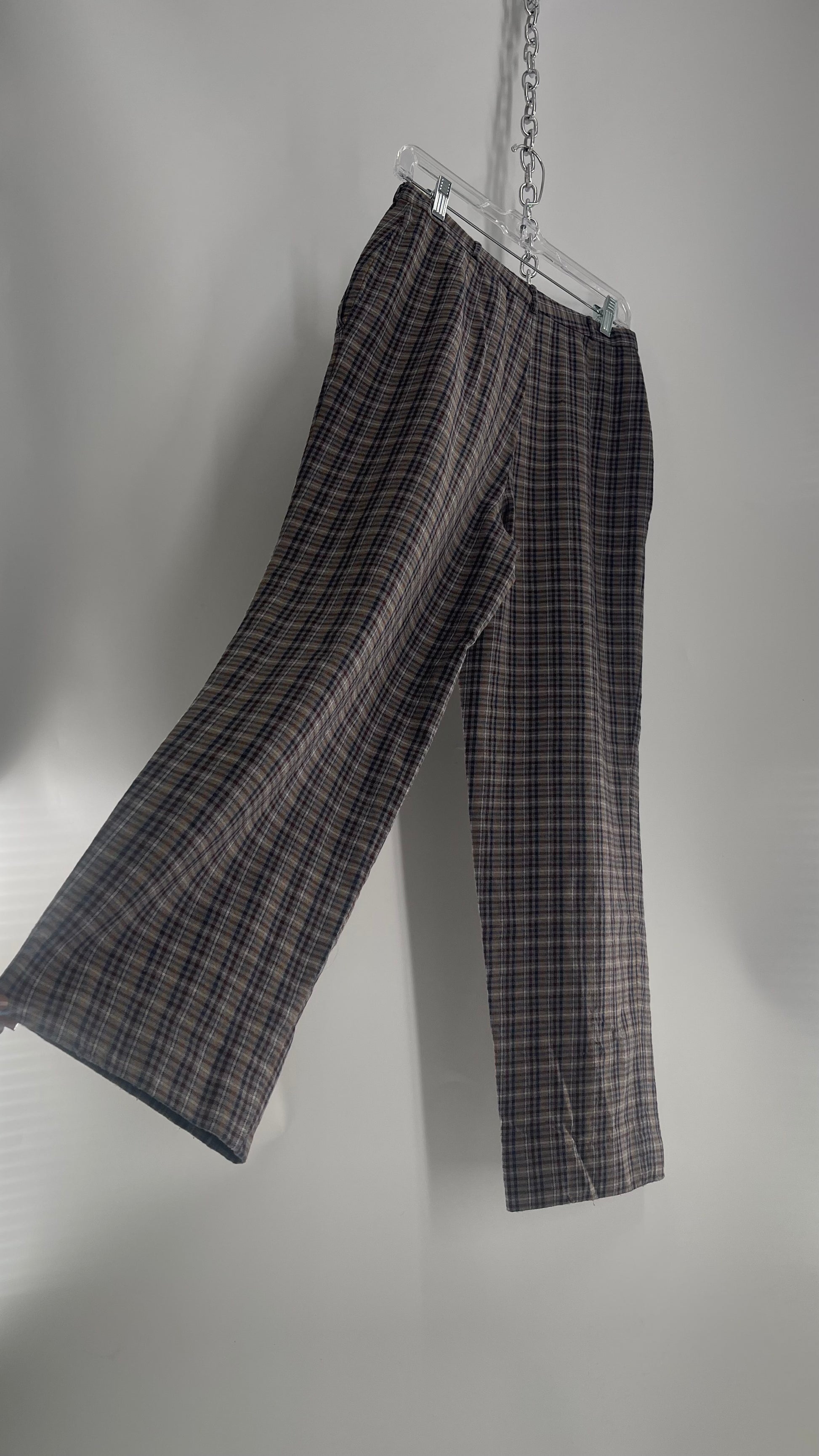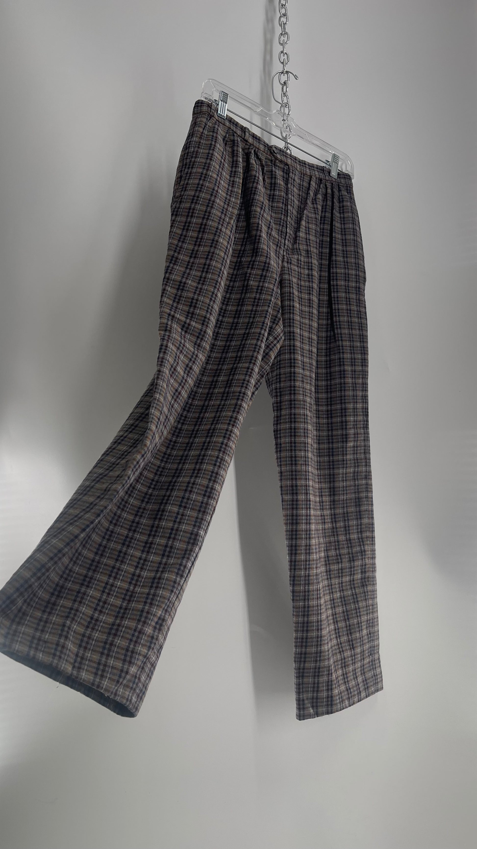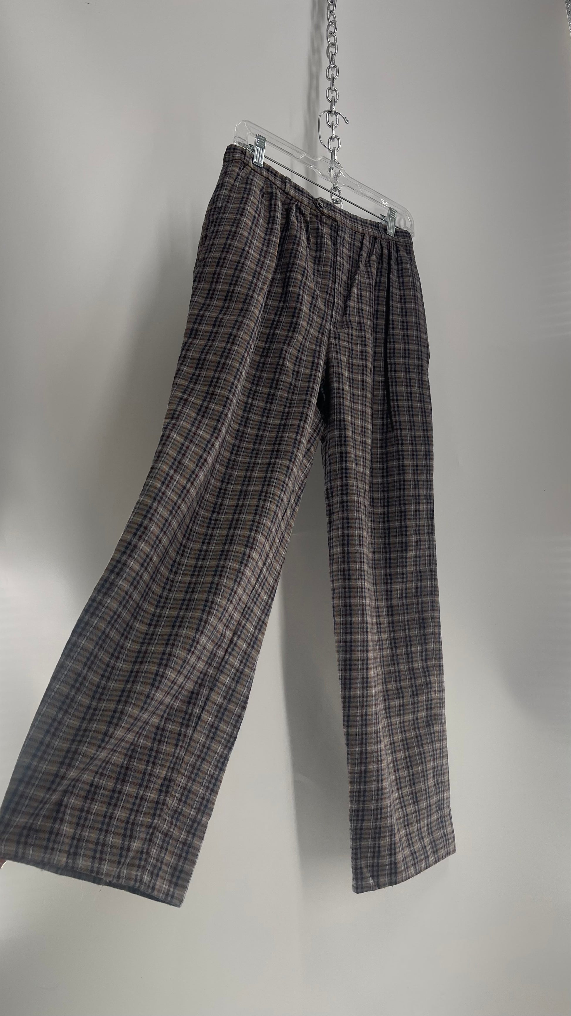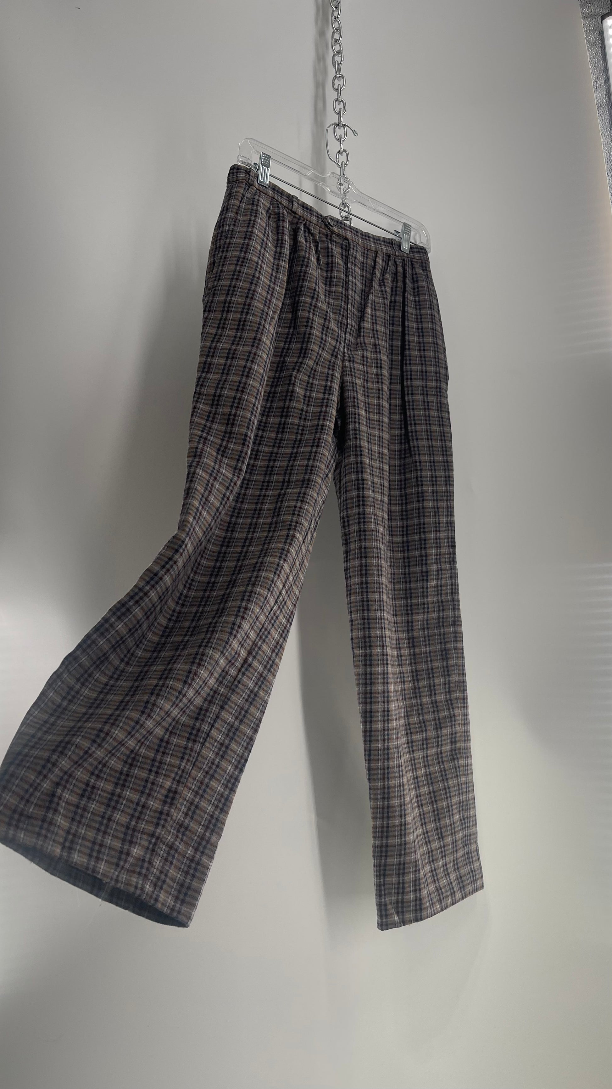 Vintage 100% Wool Gray Muted Tones Plaid Pleated Baggy Trousers (2)