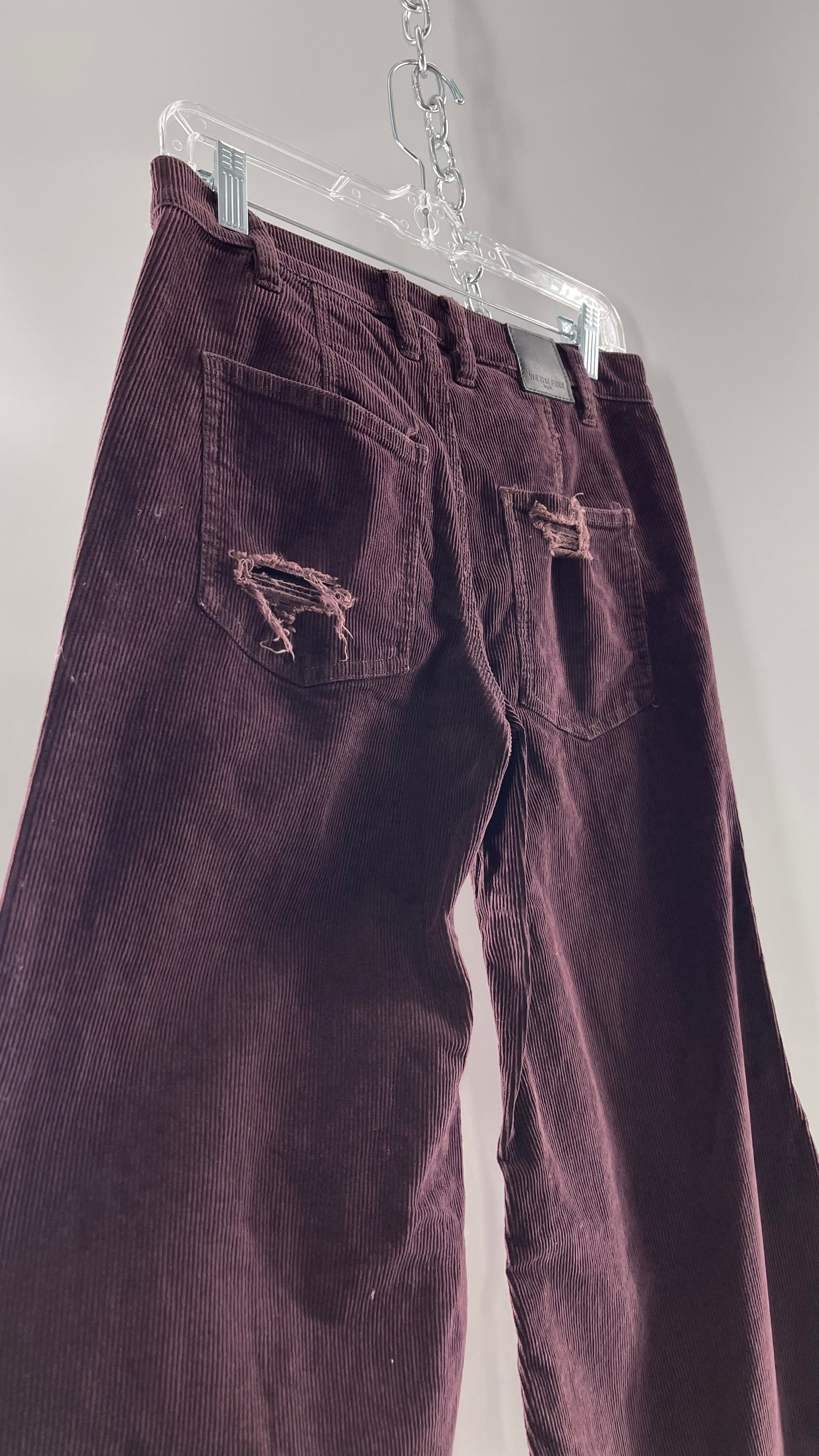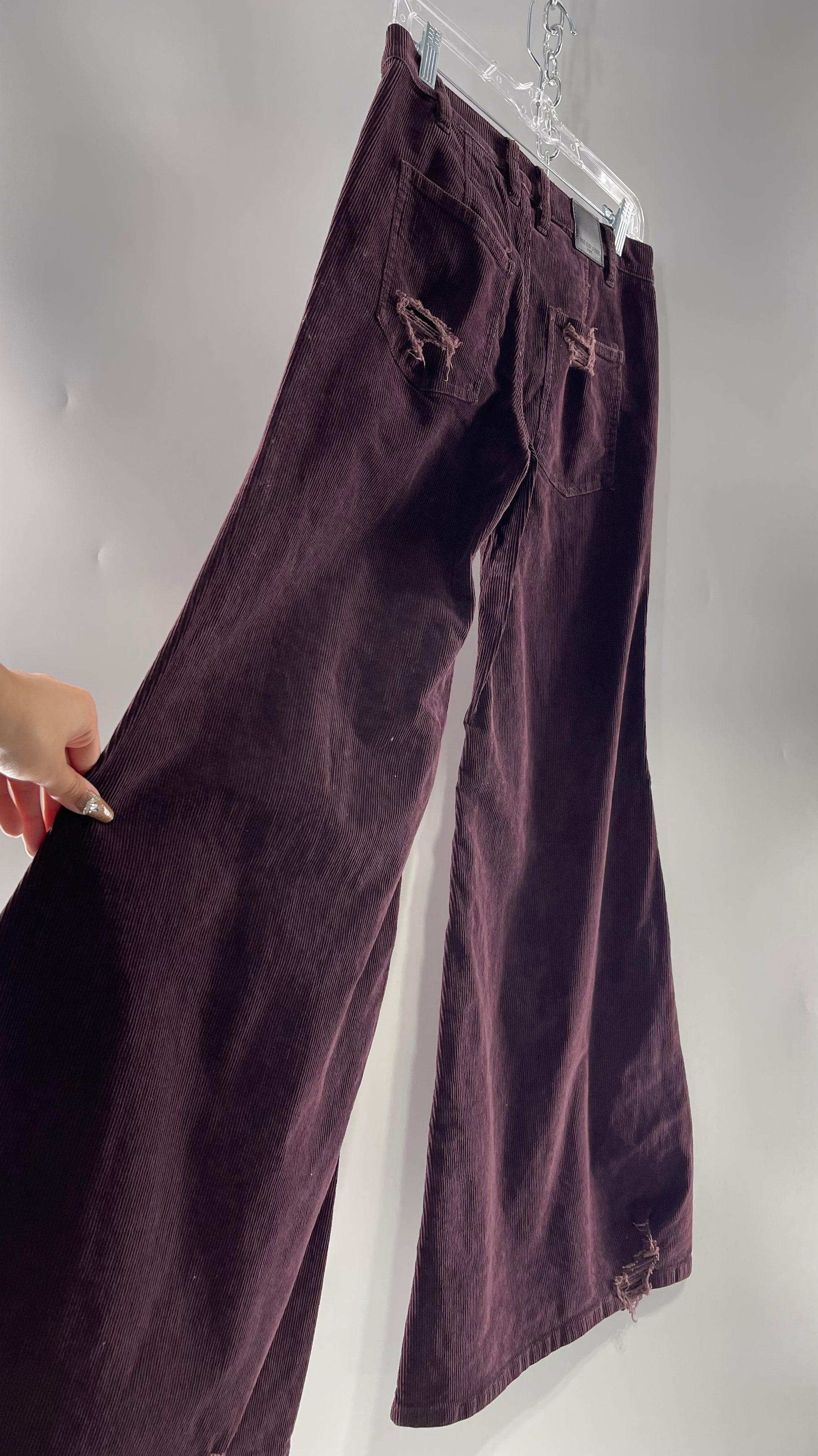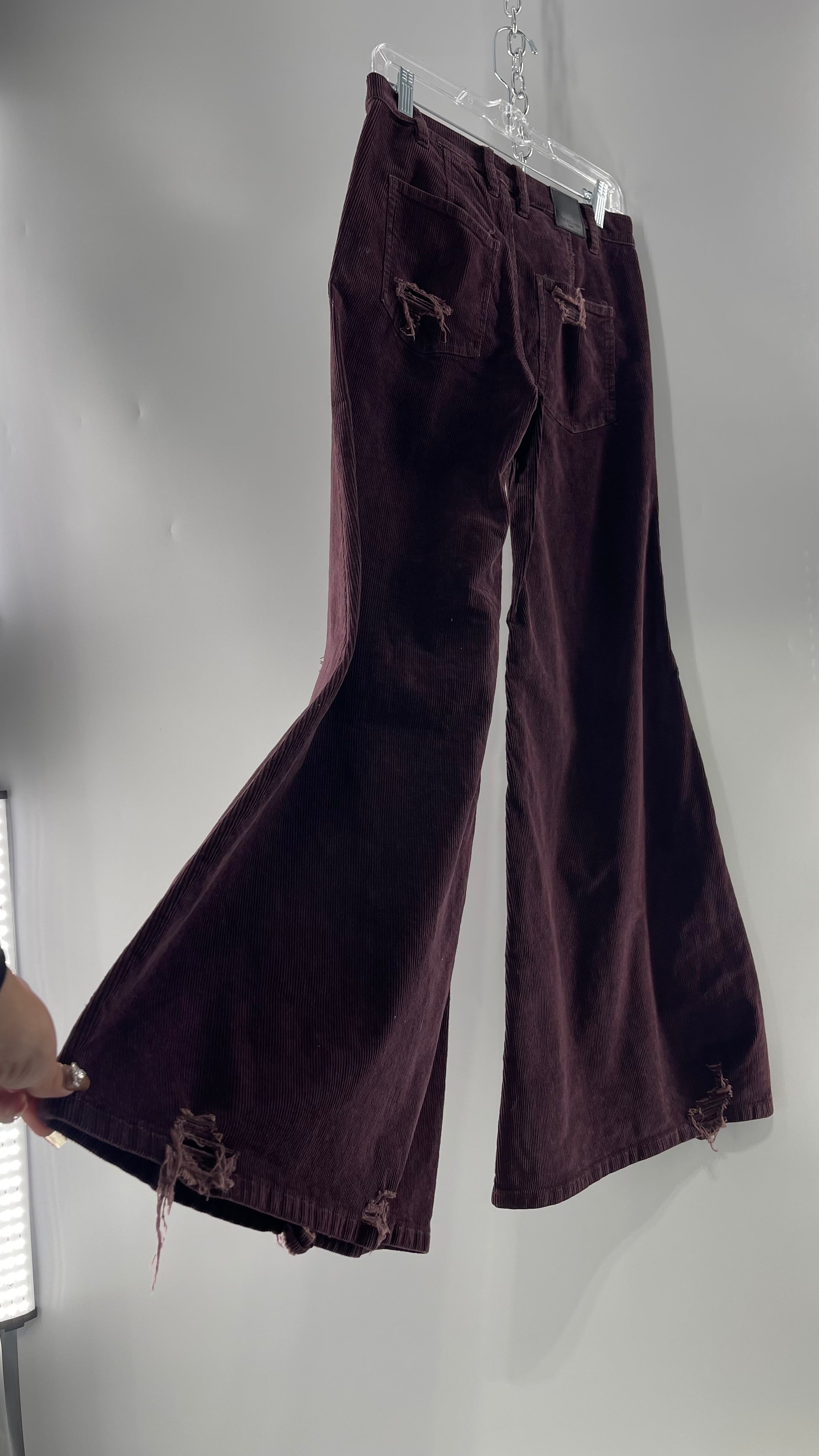 Free People Plum Corduroy Distressed Flare Bell Bottoms (27)