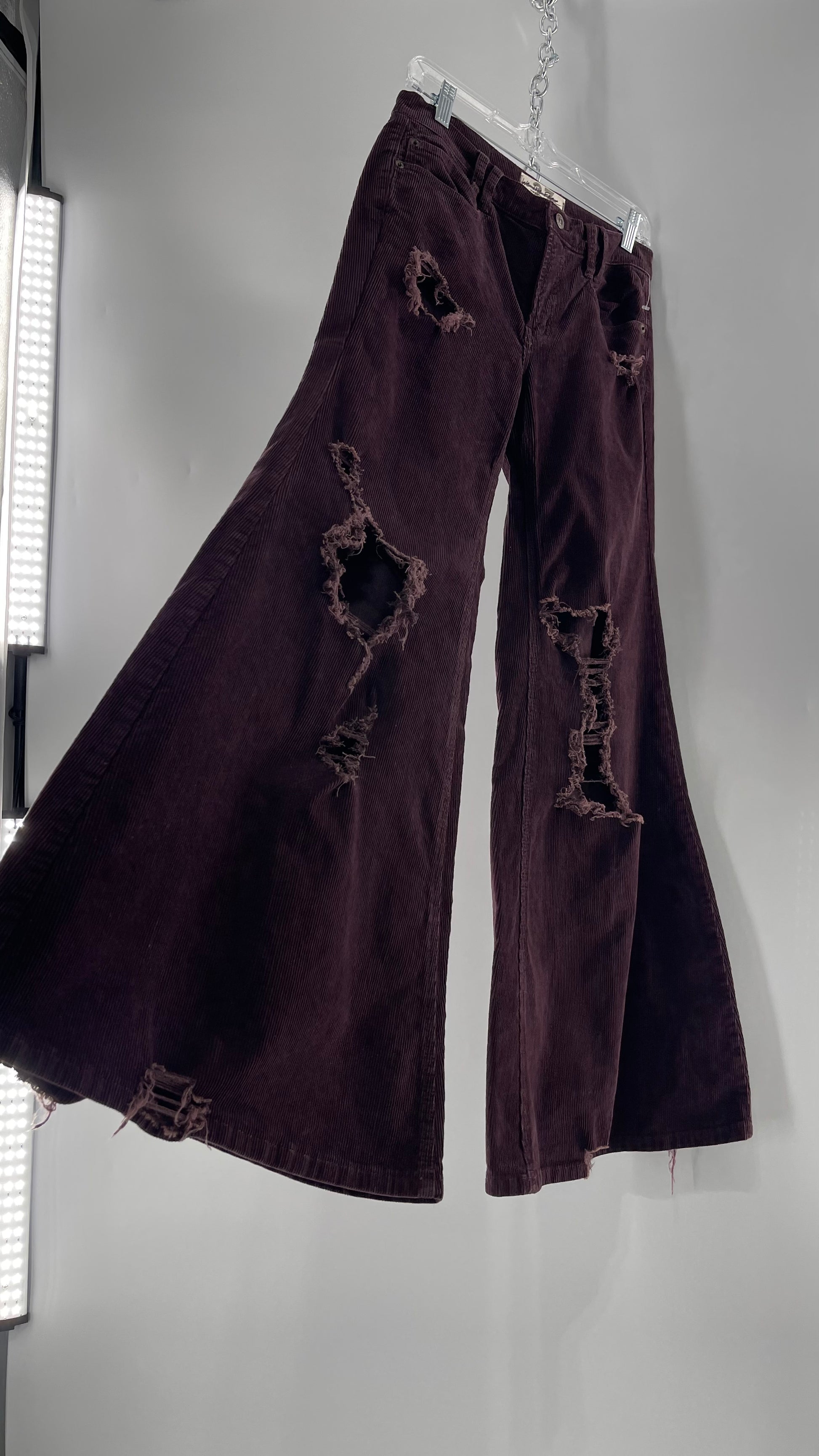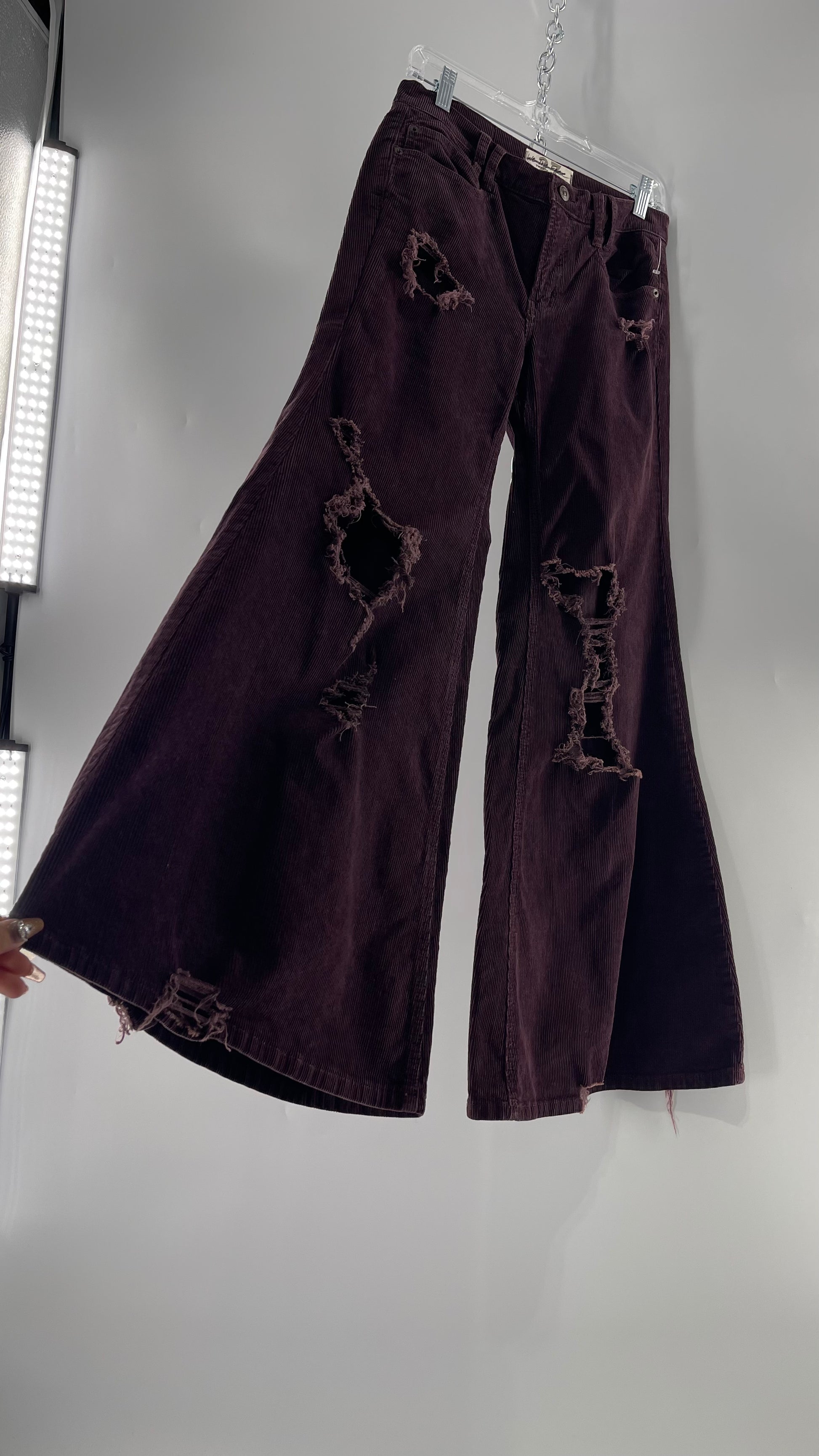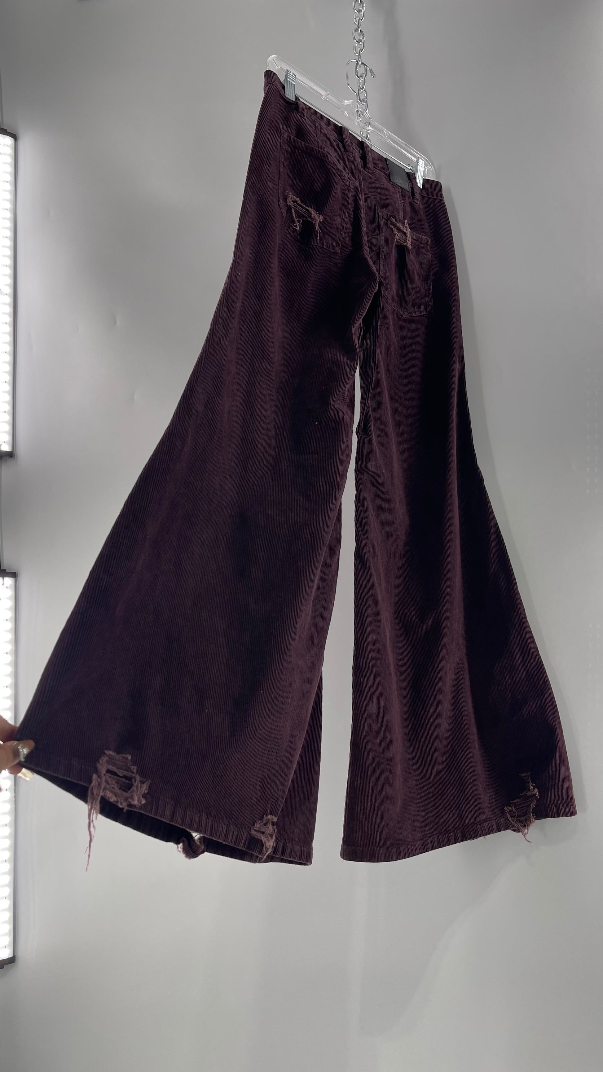 Free People Plum Corduroy Distressed Flare Bell Bottoms (27)