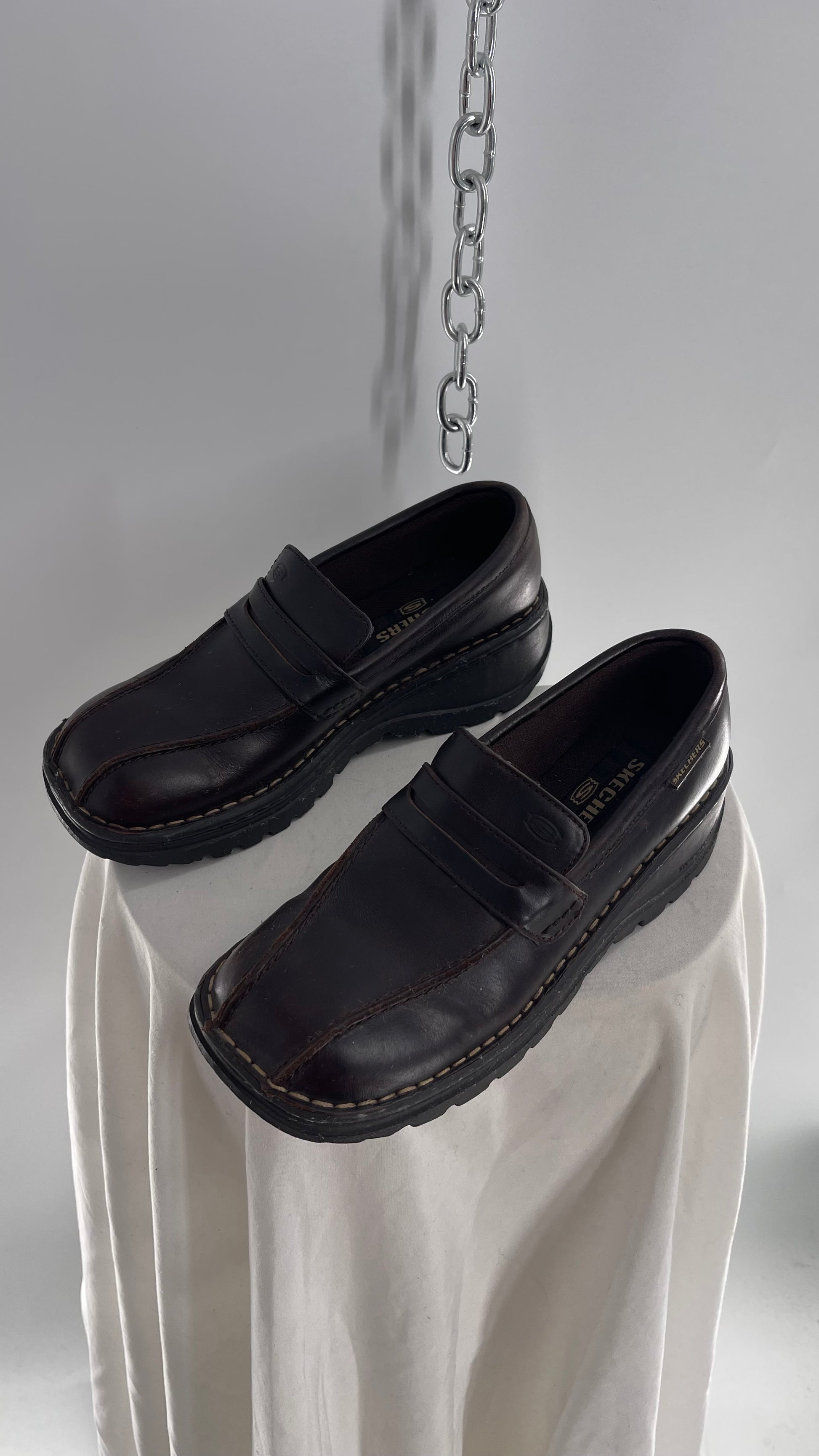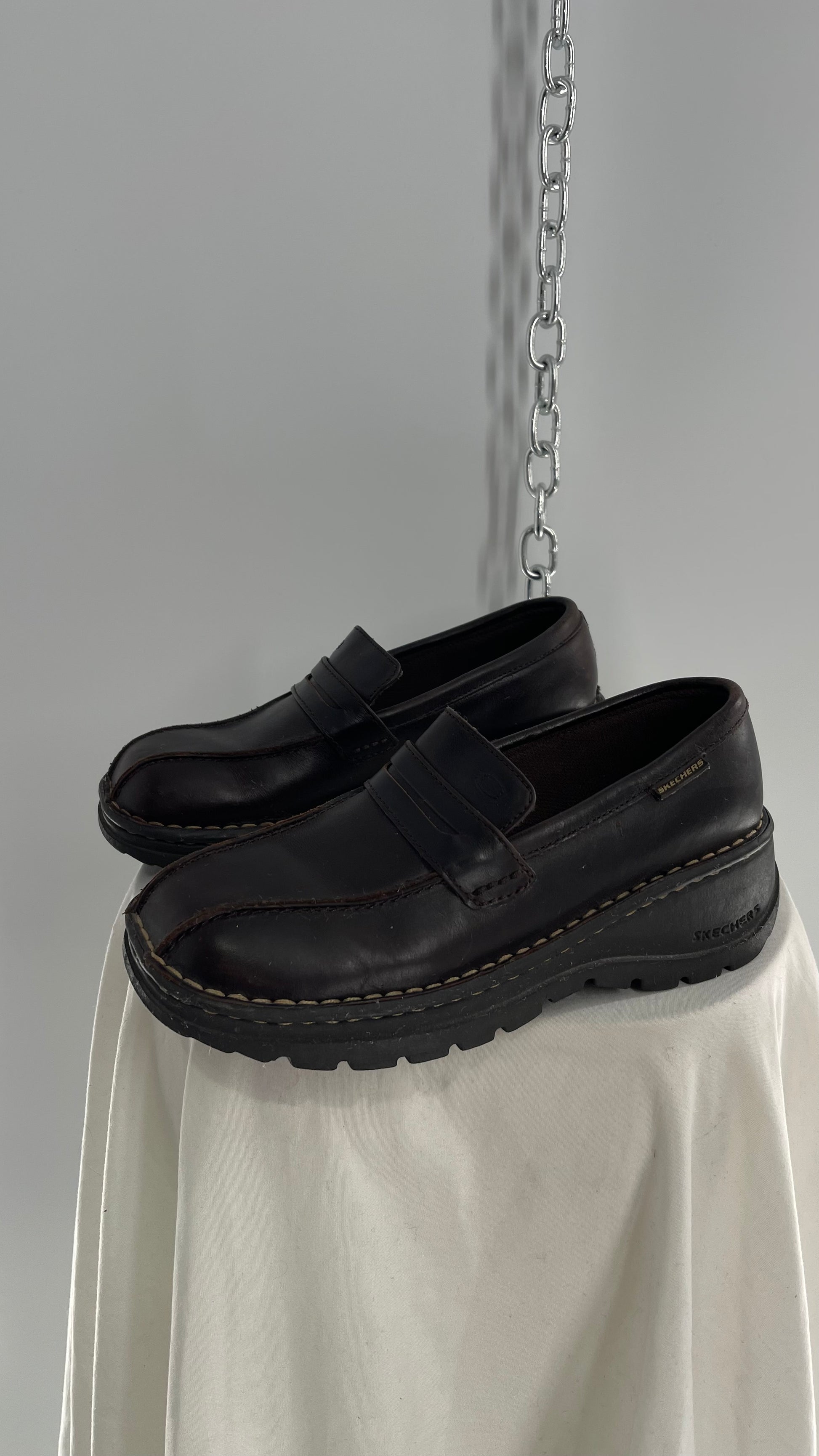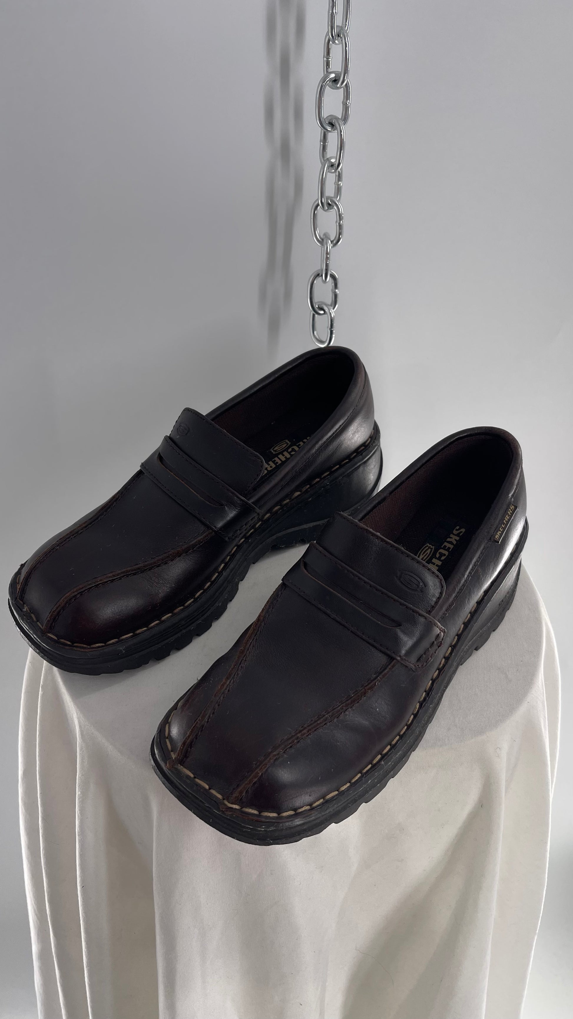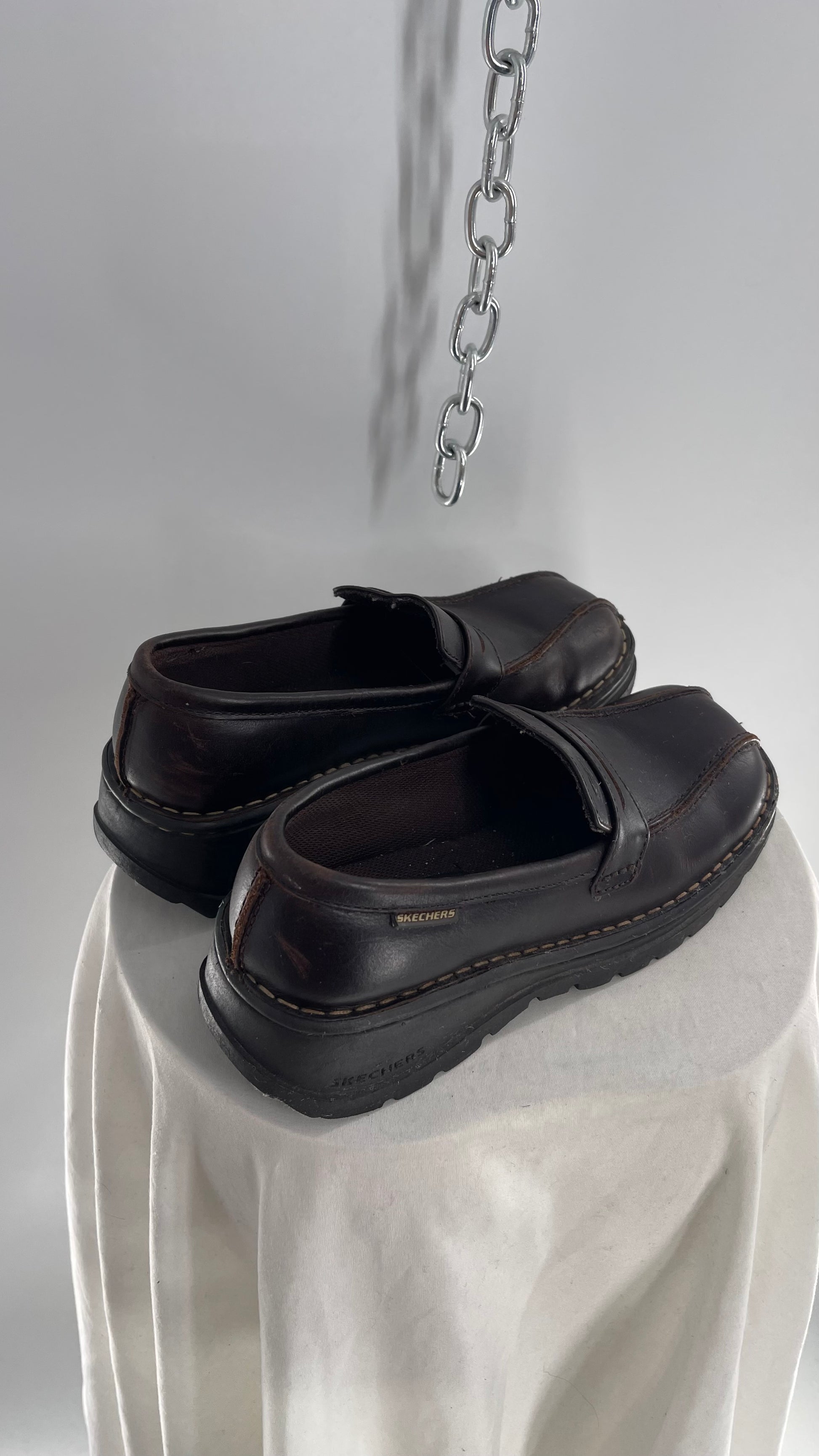 Rare Vintage Brown Leather Sketchers Loafers 1990s (7.5)