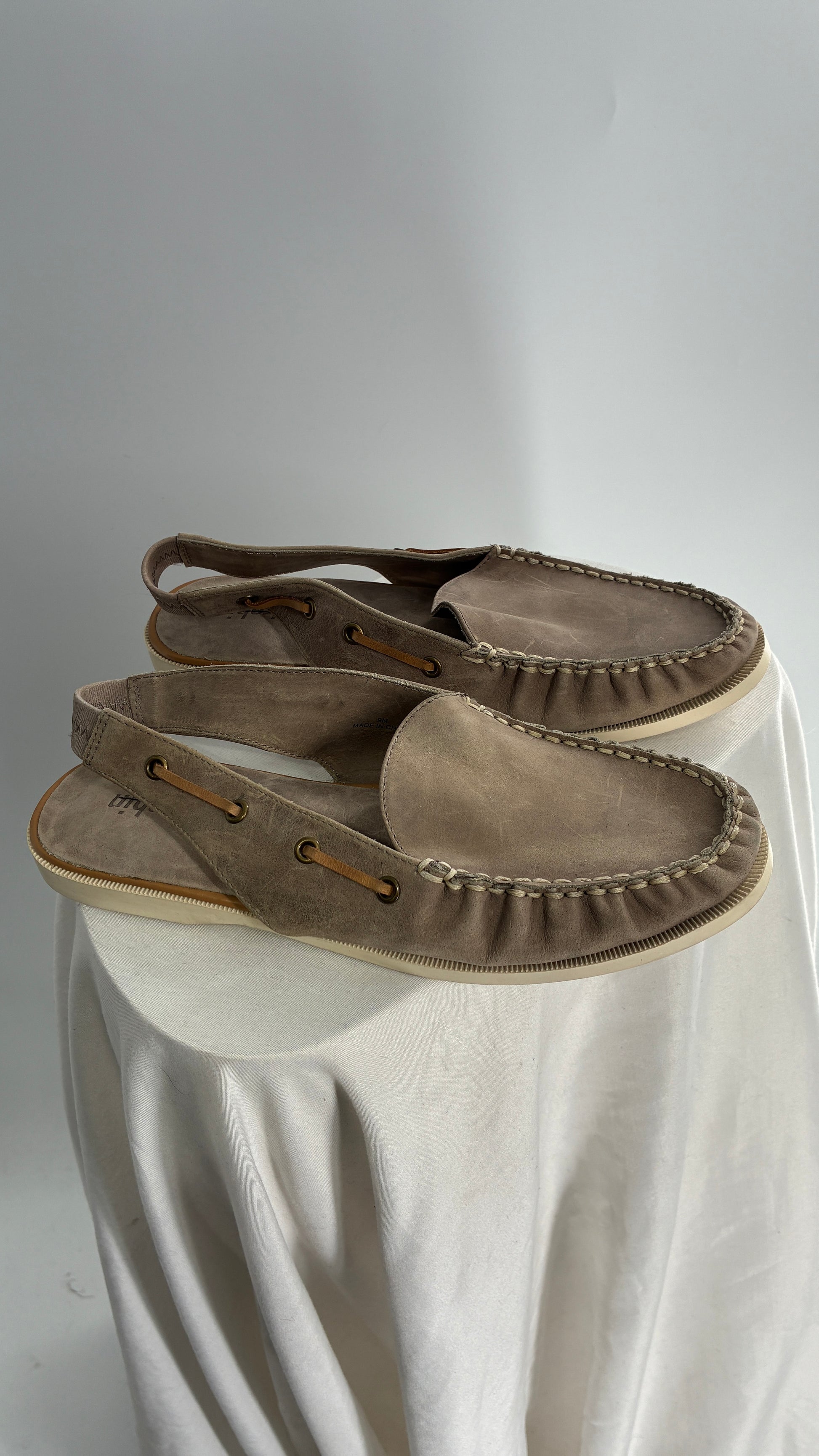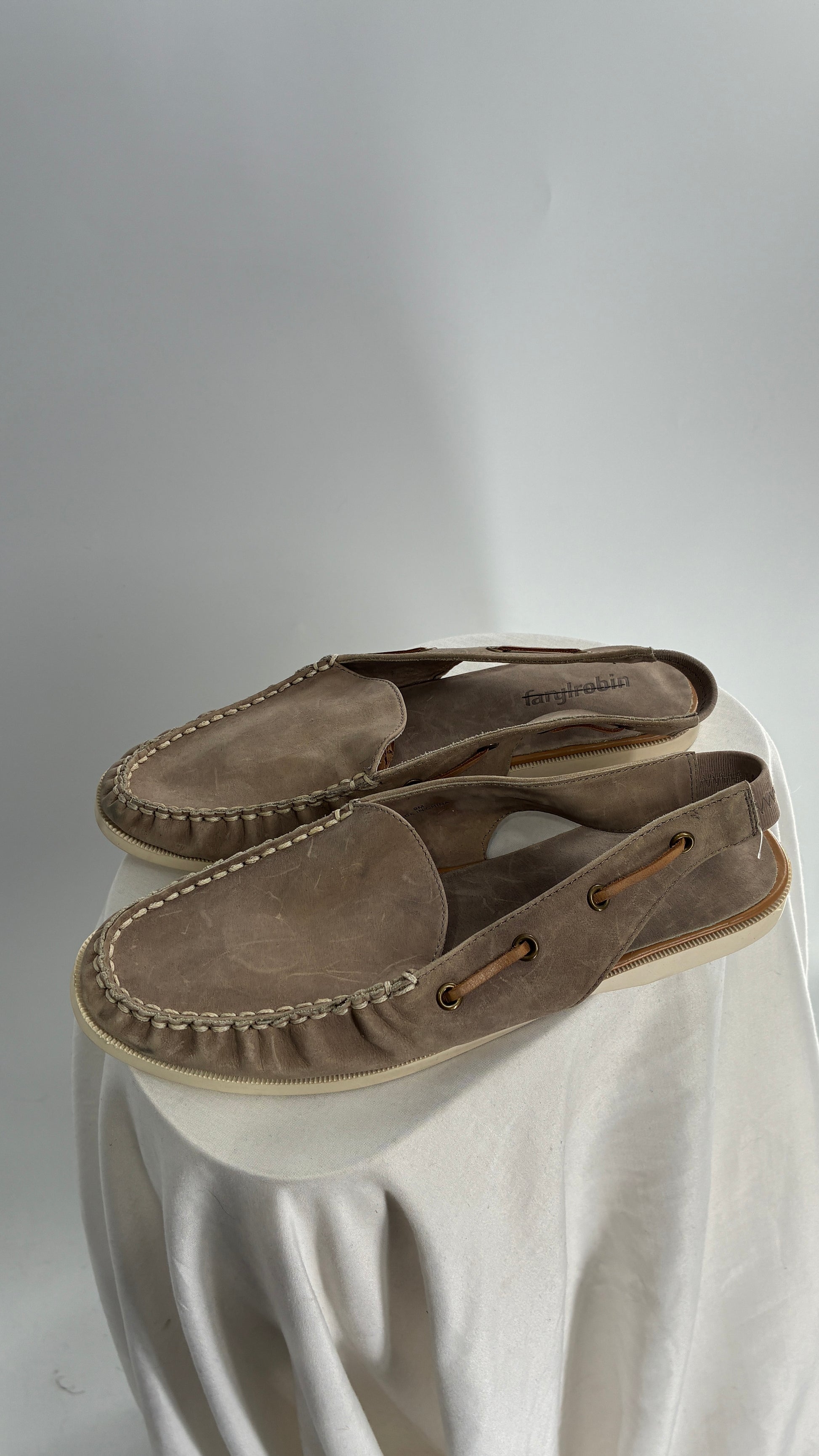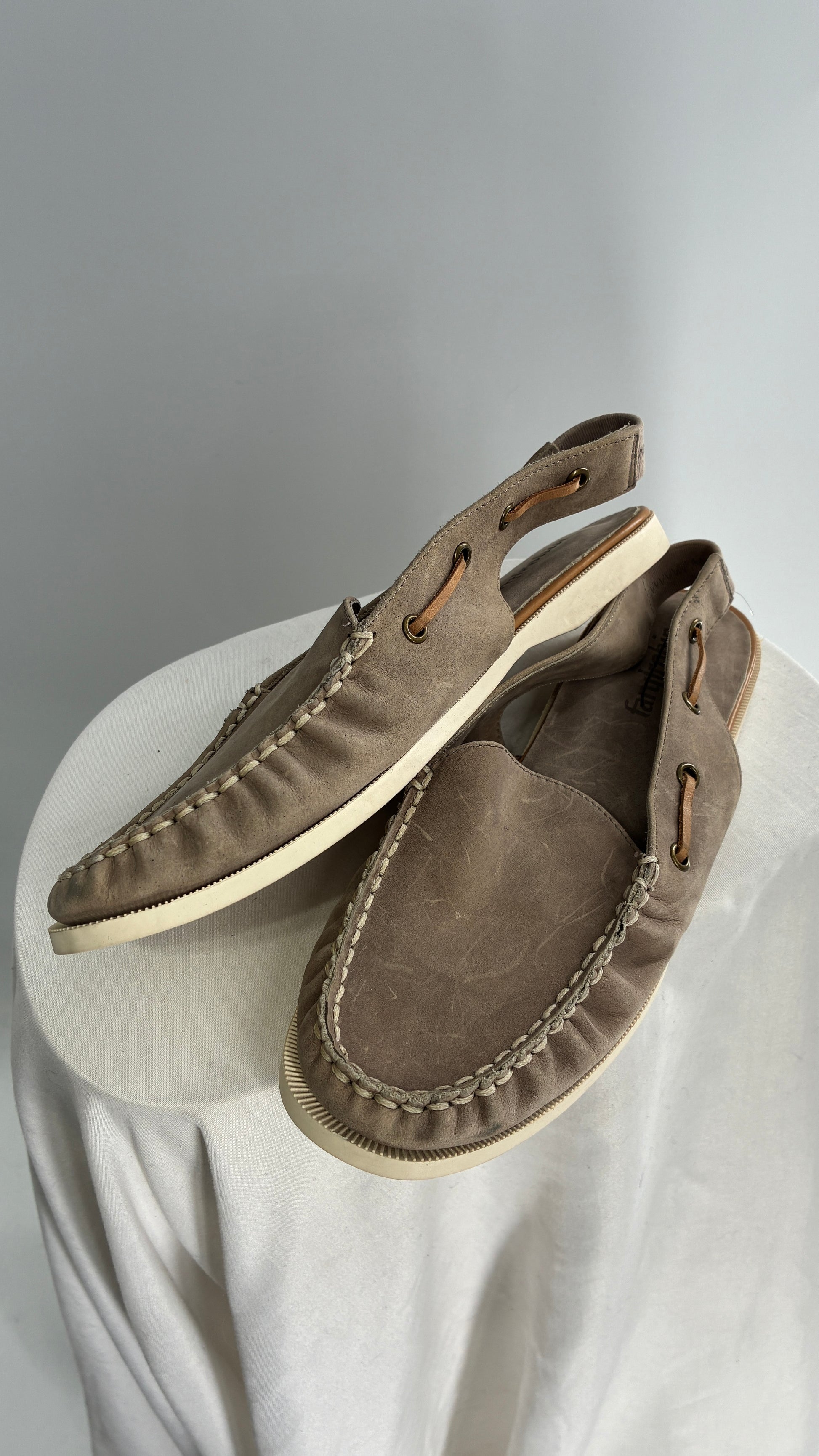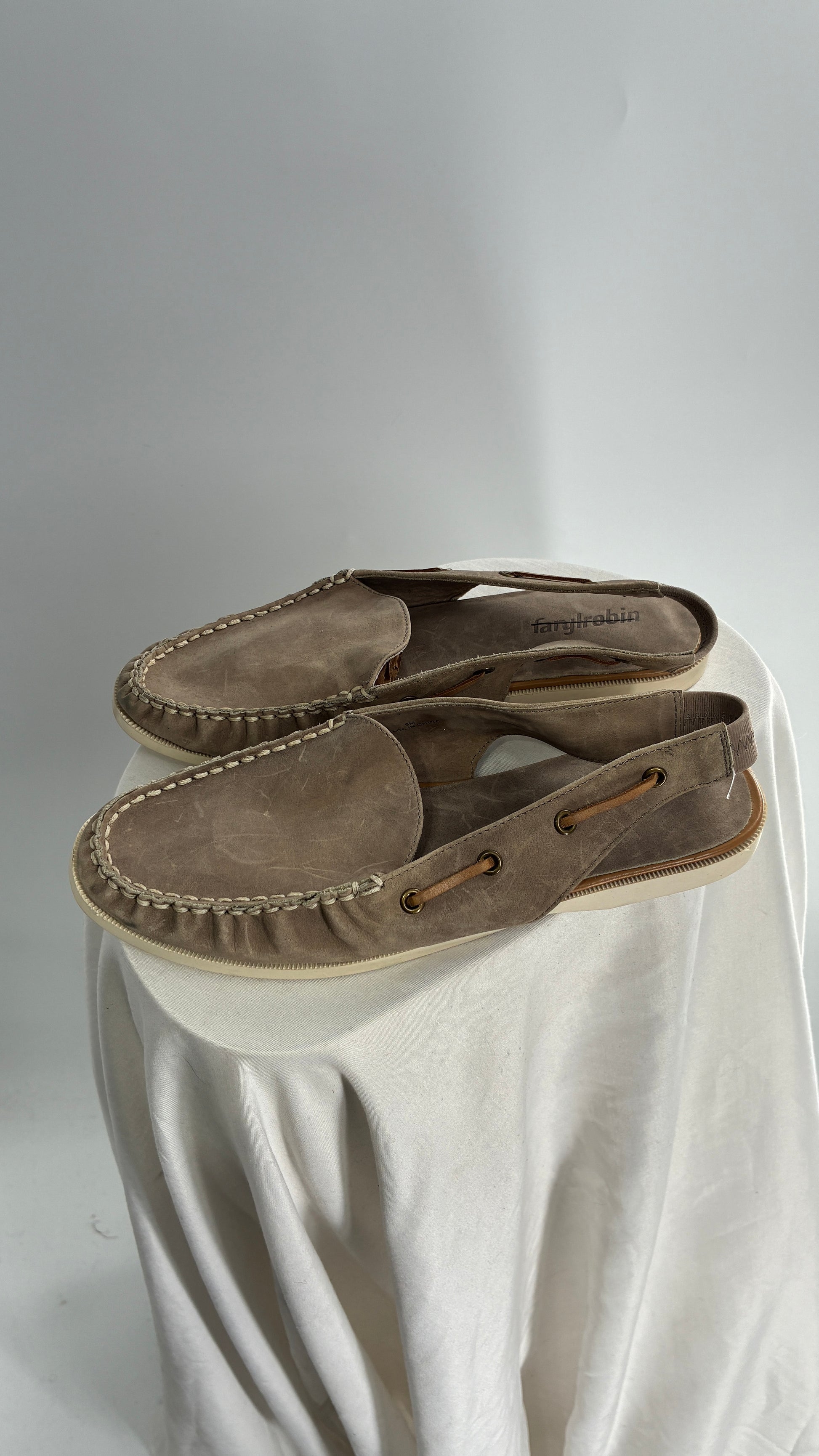 FARYL ROBIN Genuine Leather Taupe Slingback Boat Shoes (9)