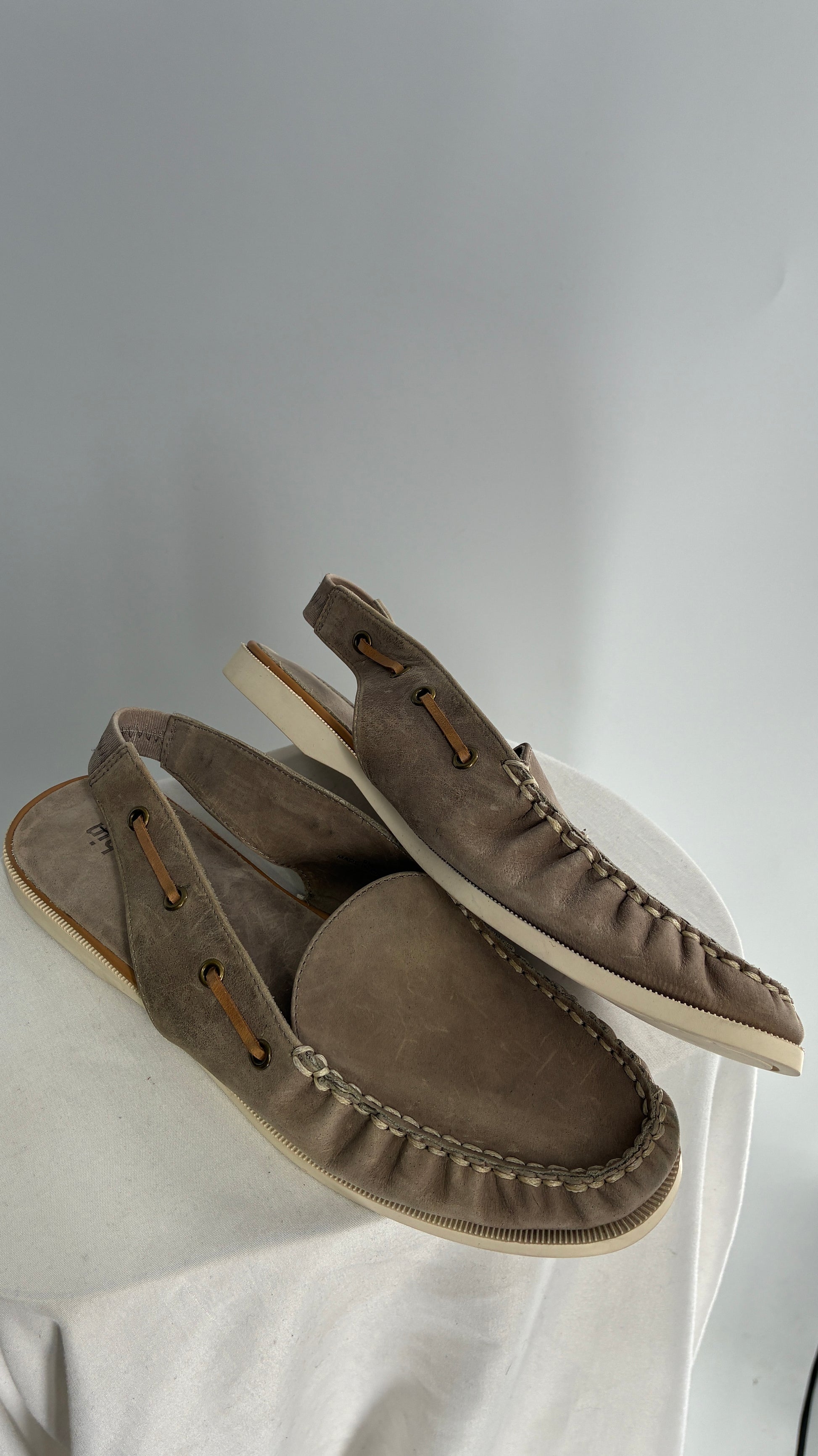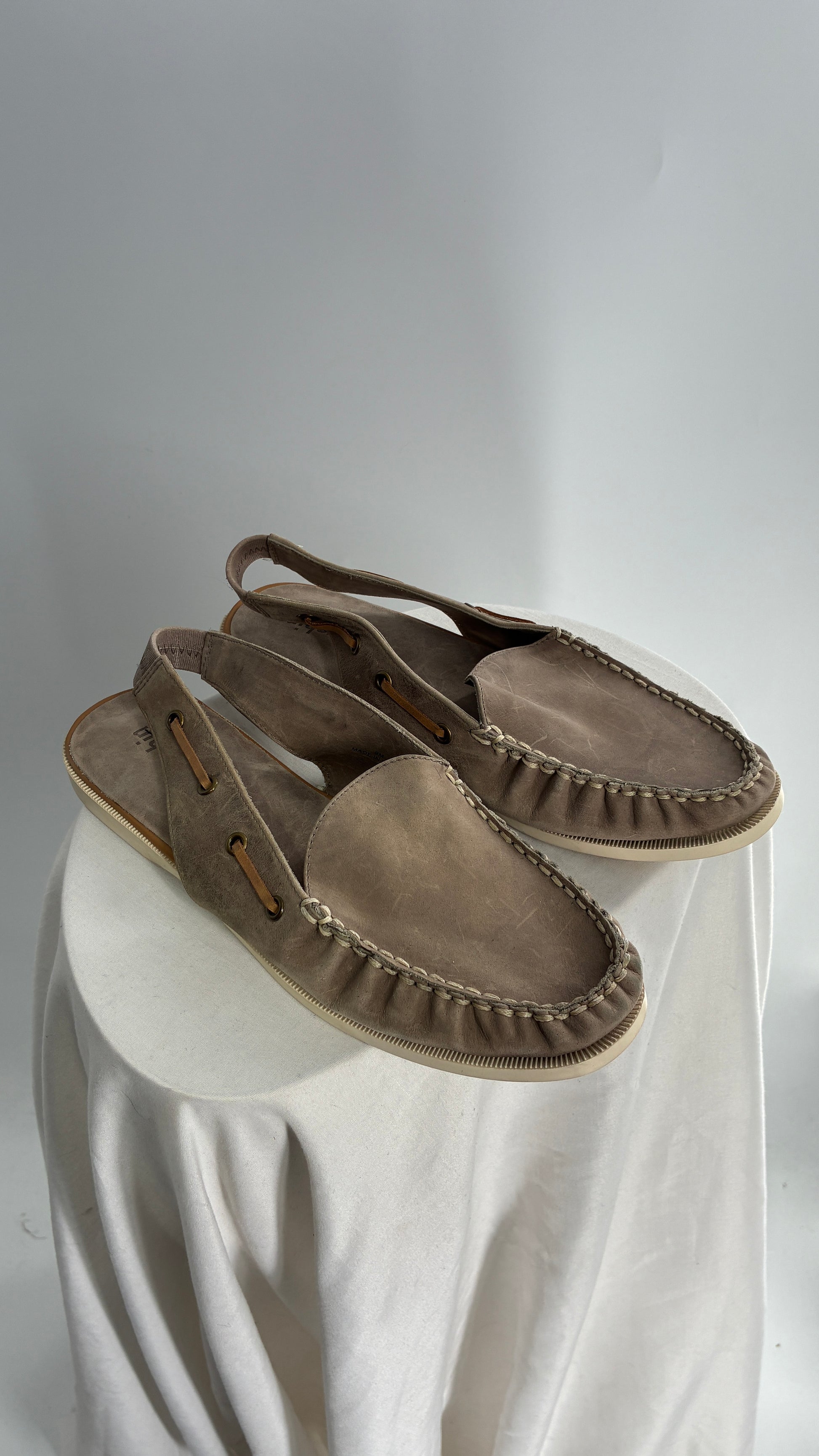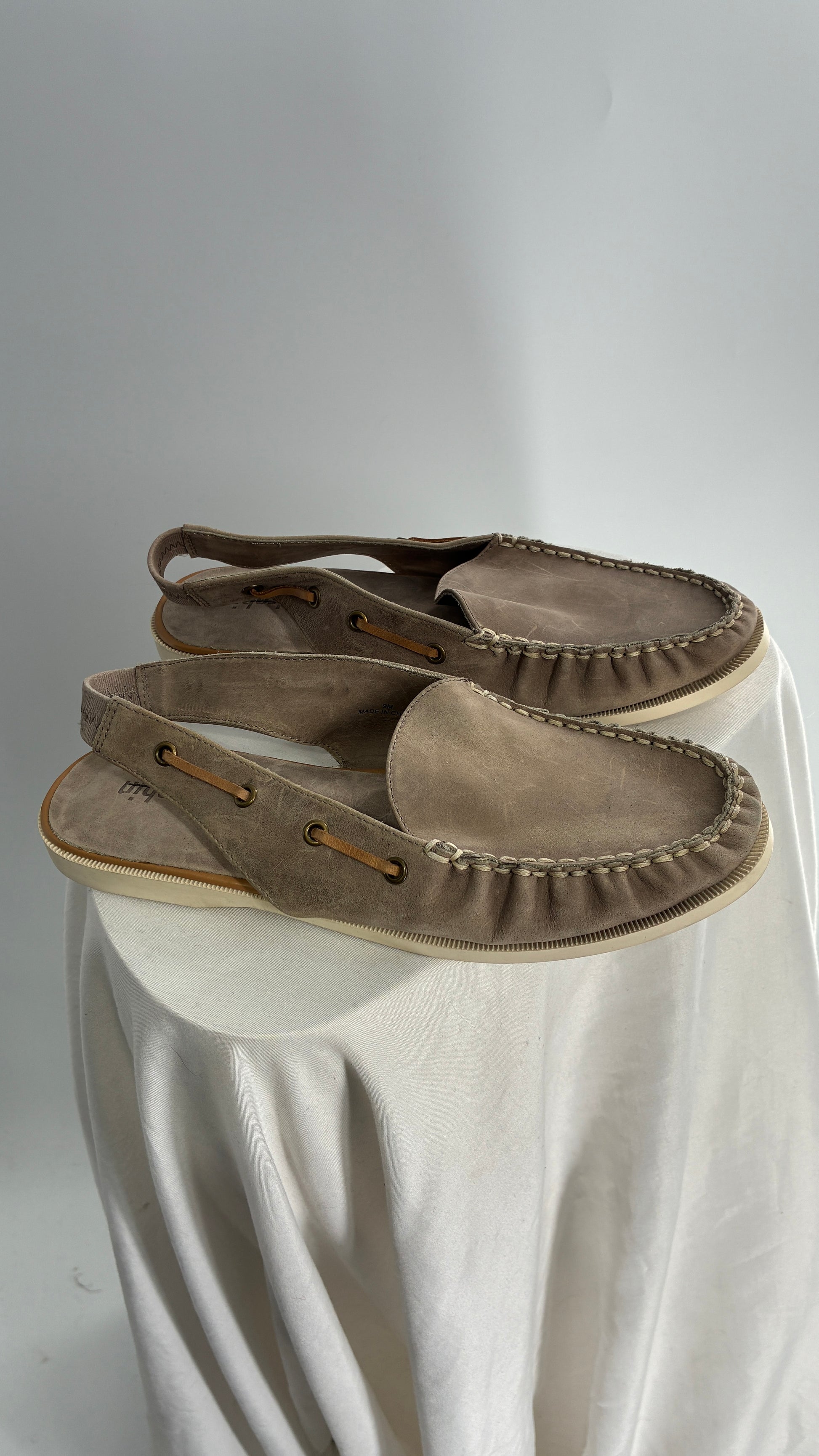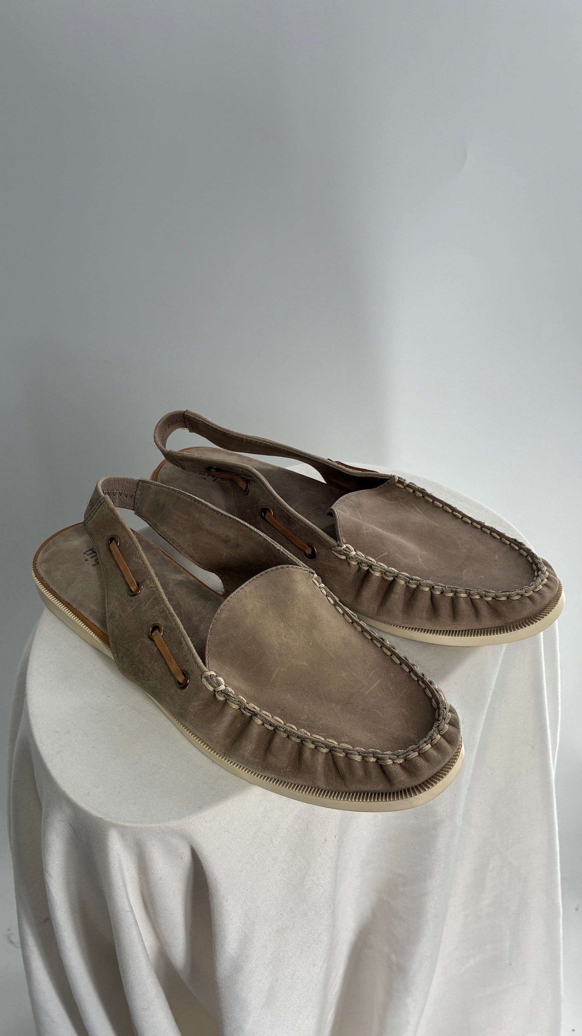 FARYL ROBIN Genuine Leather Taupe Slingback Boat Shoes (9)