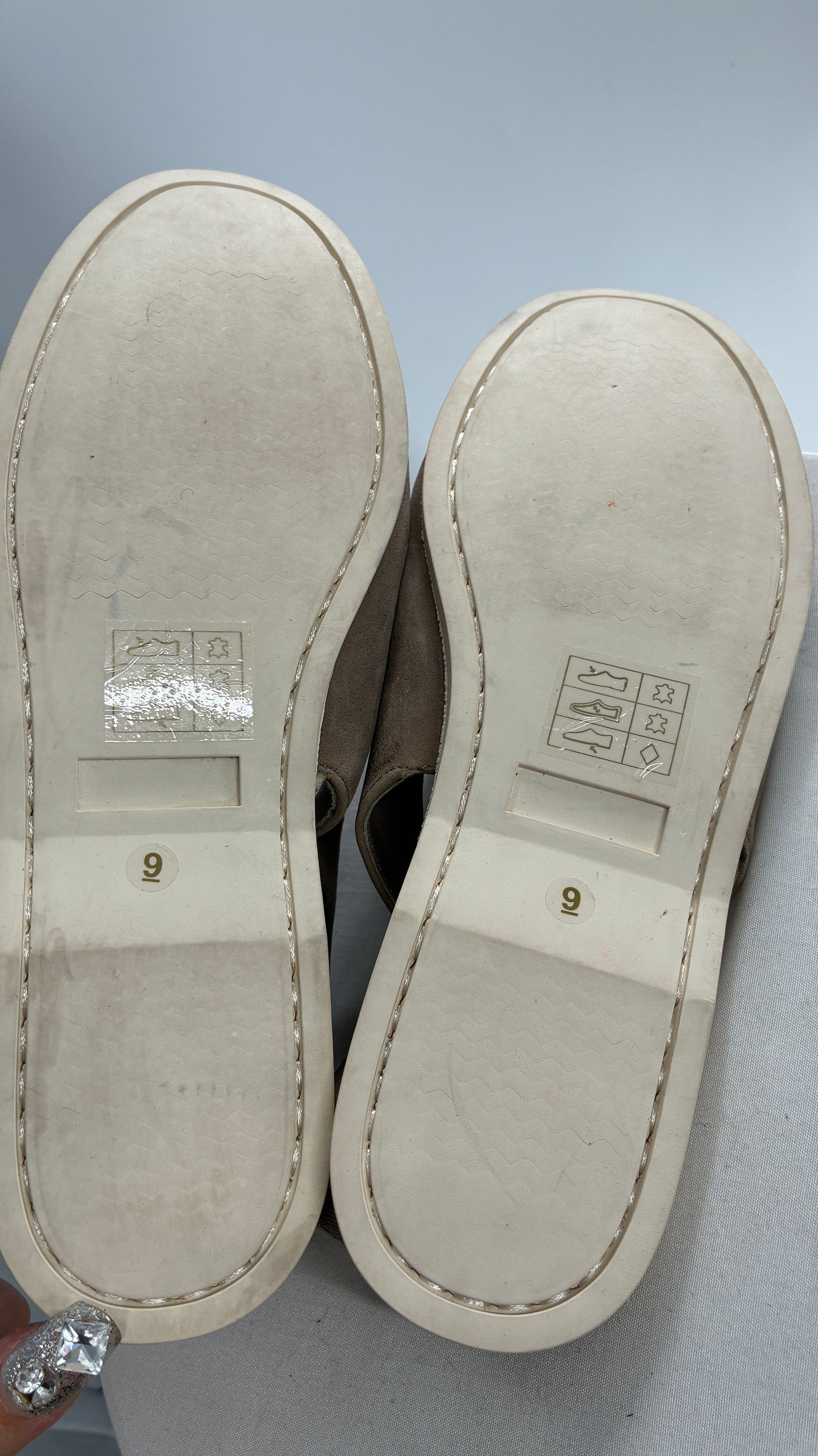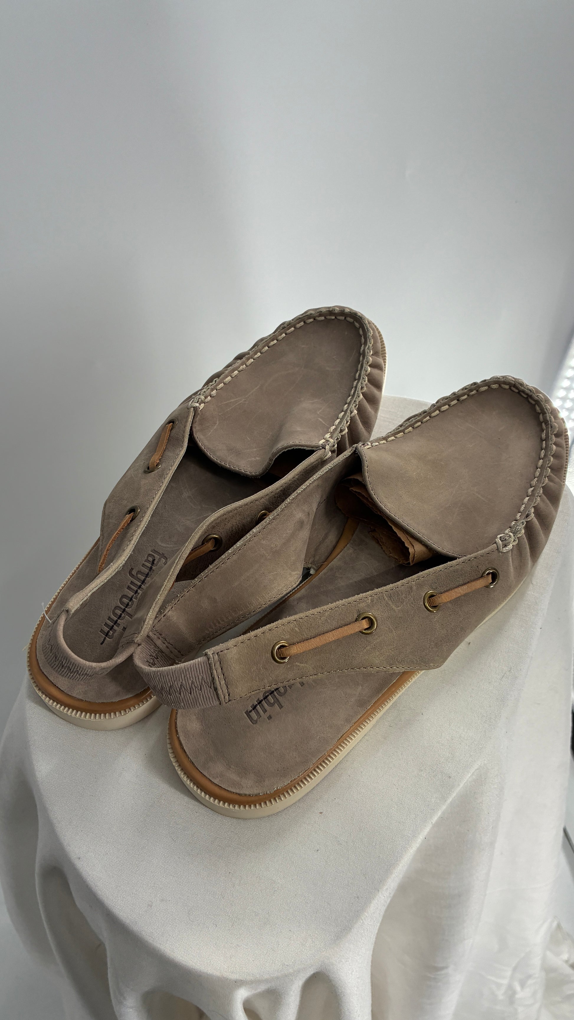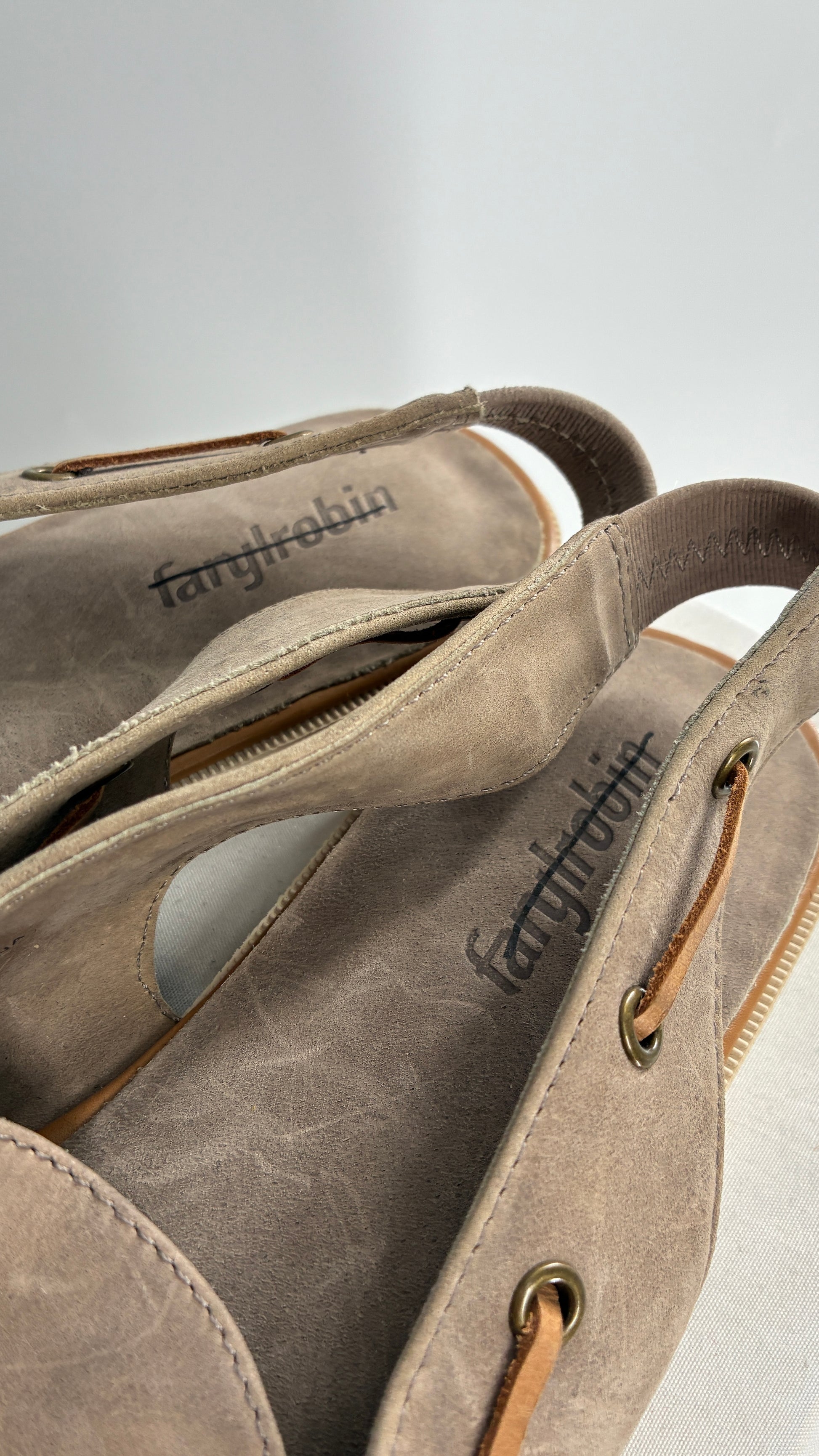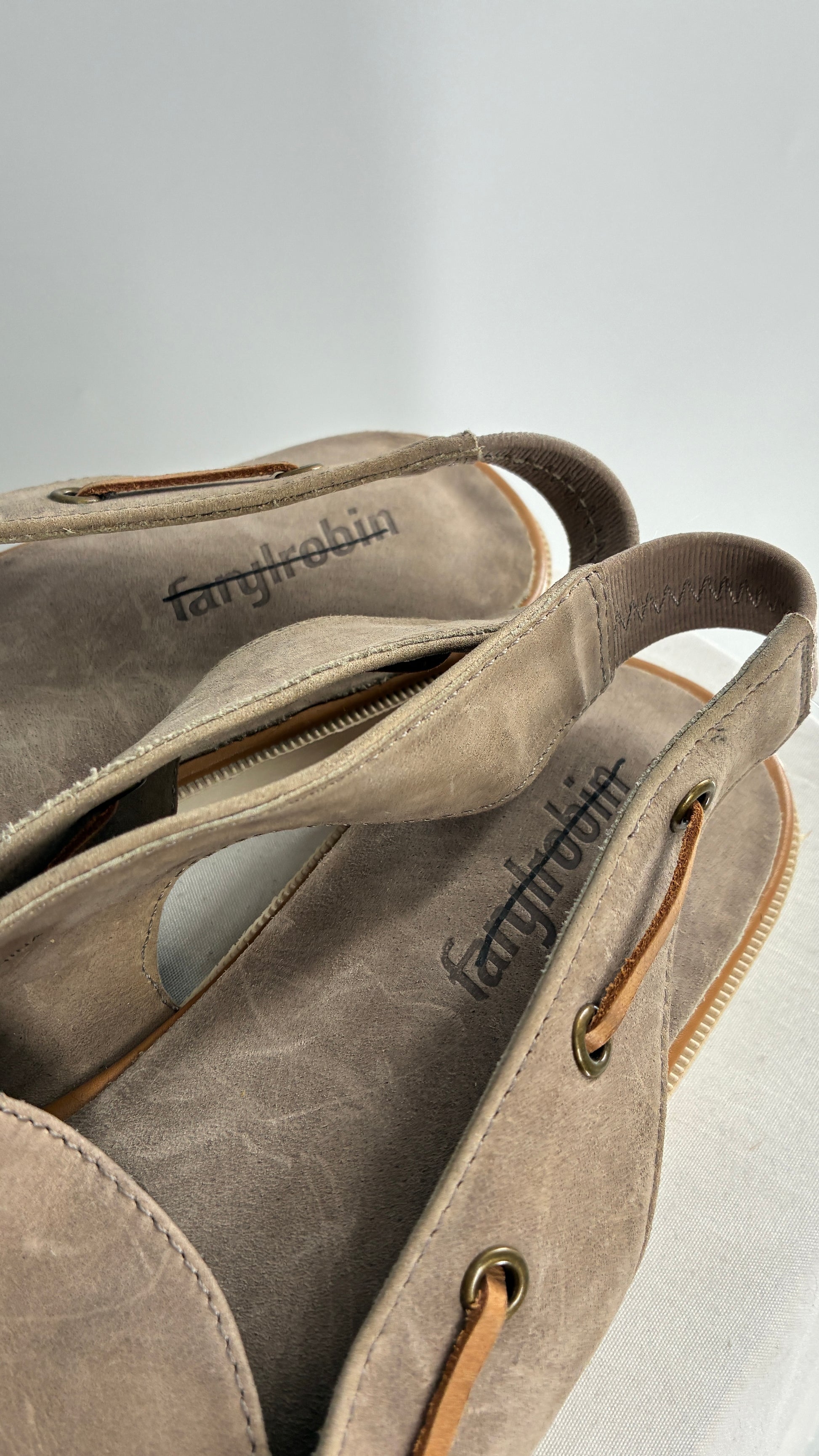 FARYL ROBIN Genuine Leather Taupe Slingback Boat Shoes (9)