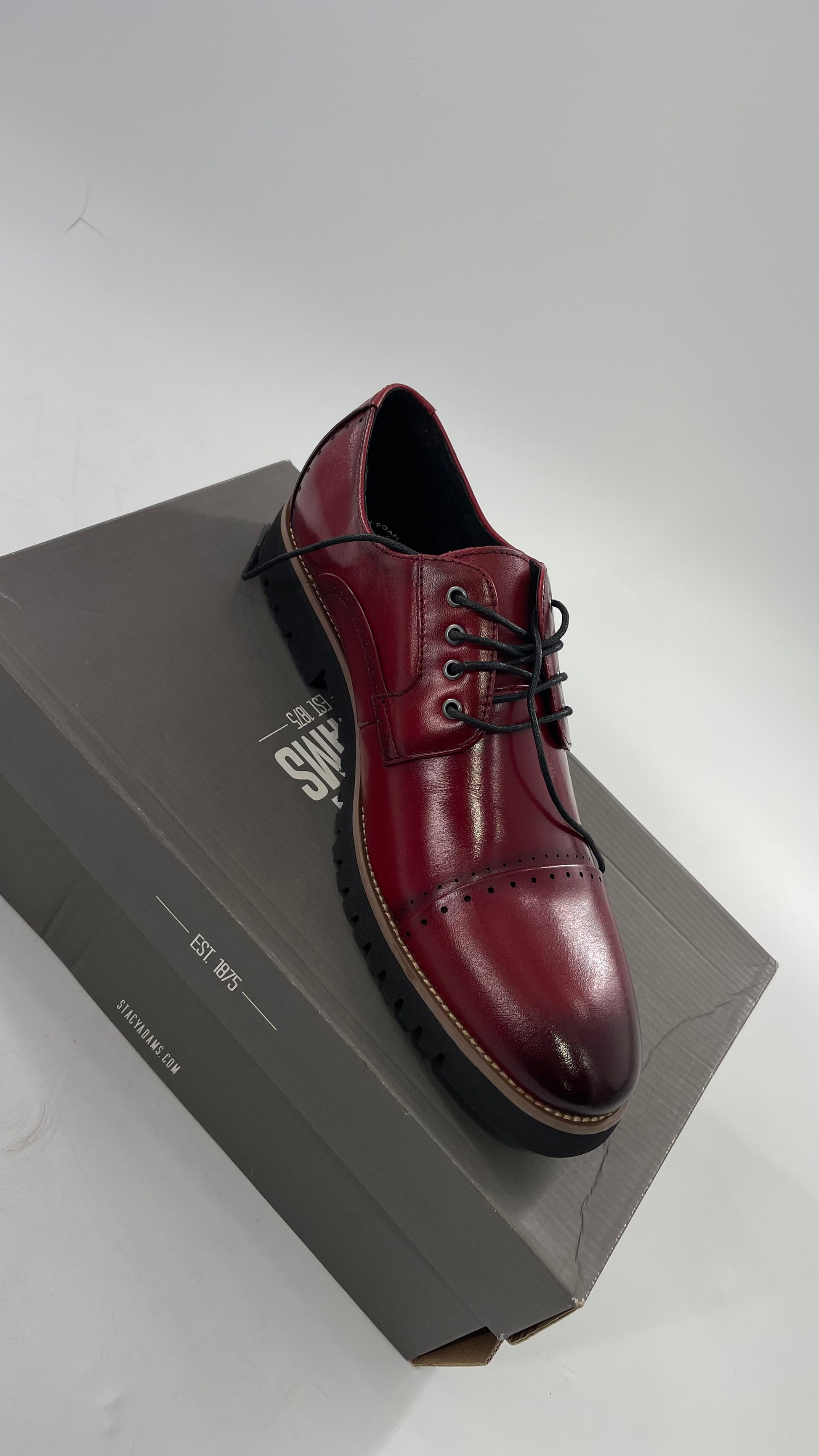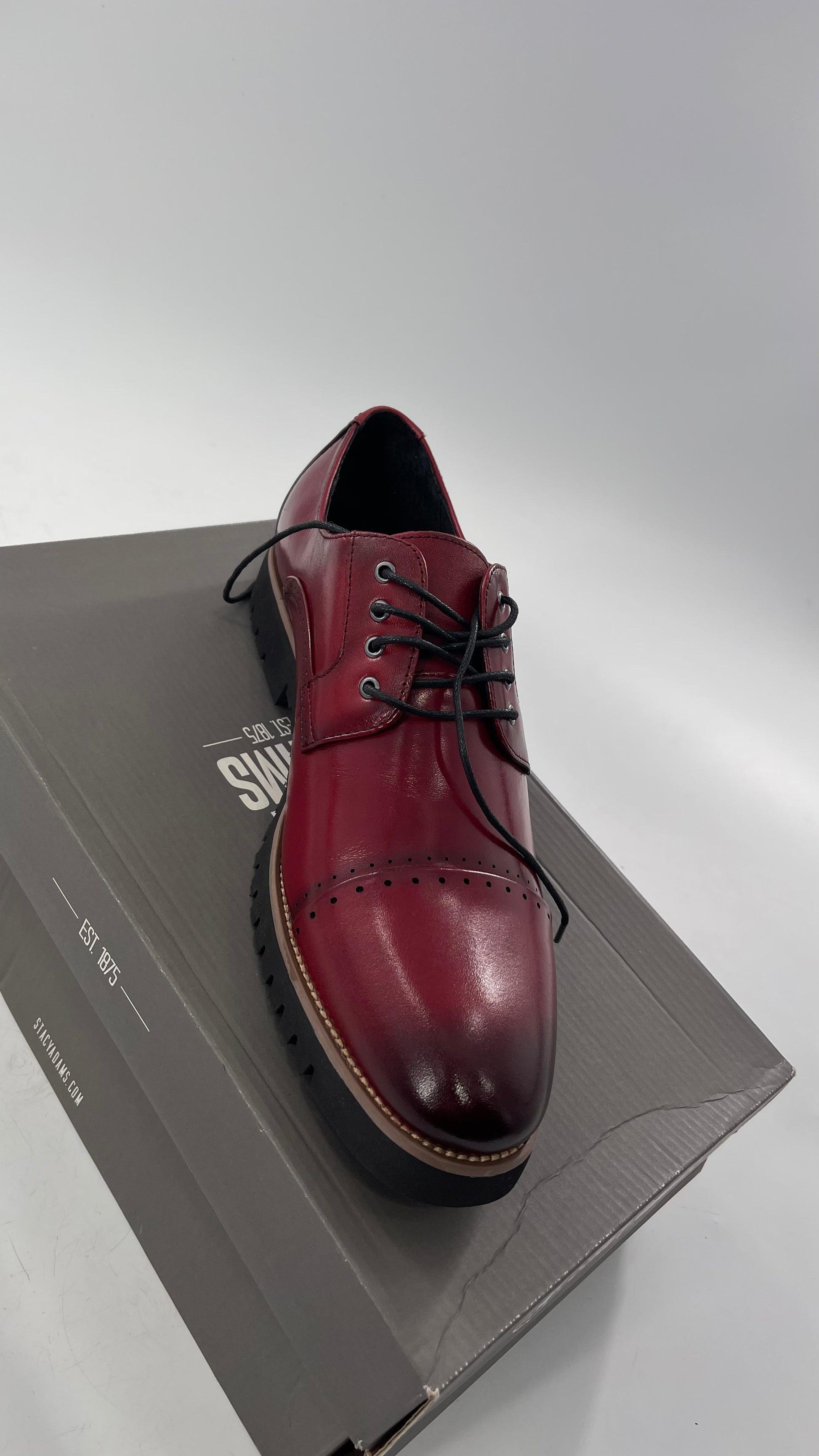 Stacy Adam’s Cherry Red Leather Oxfords with Cap Toe Detail (10)