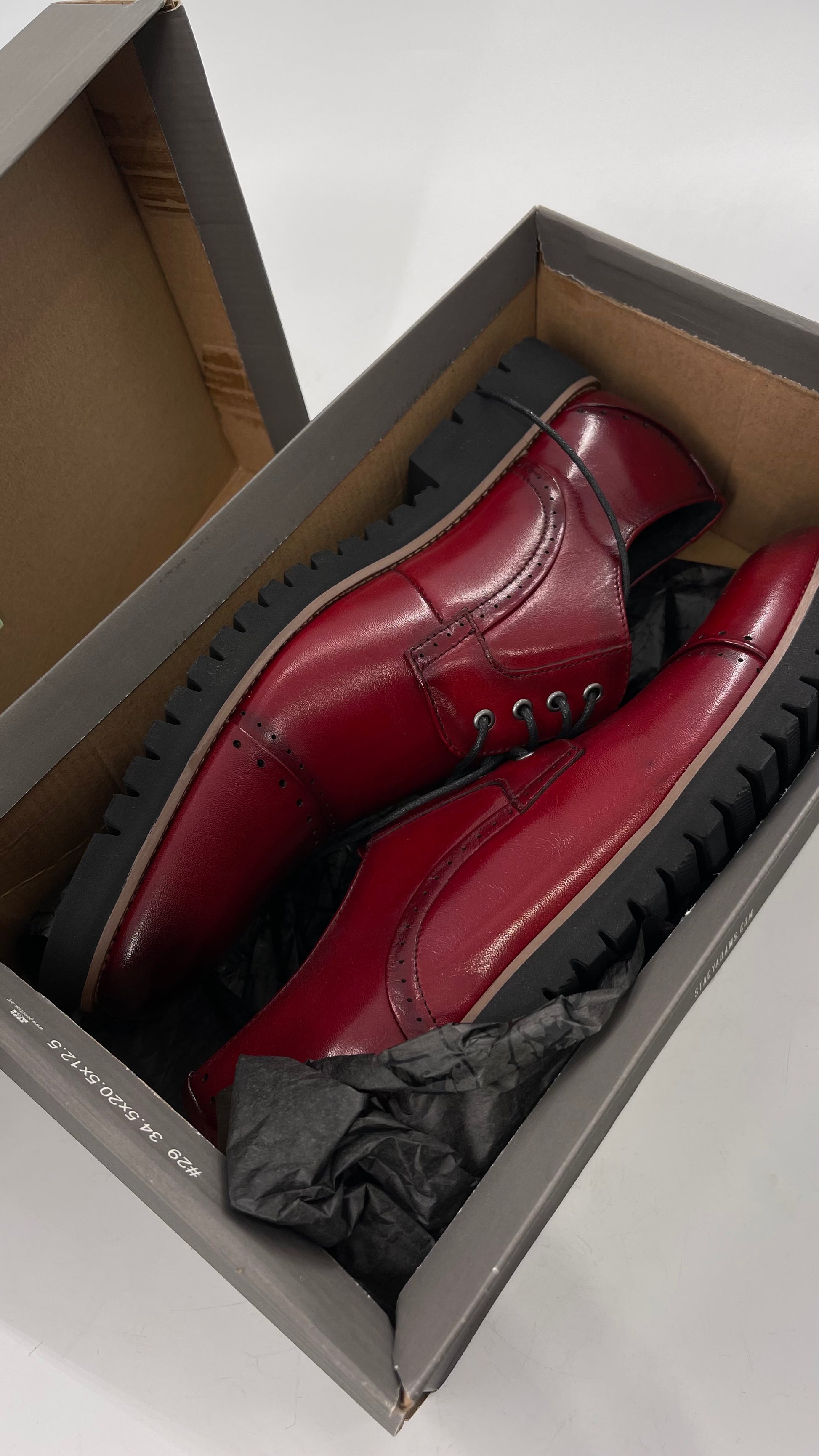 Stacy Adam’s Cherry Red Leather Oxfords with Cap Toe Detail (10) |