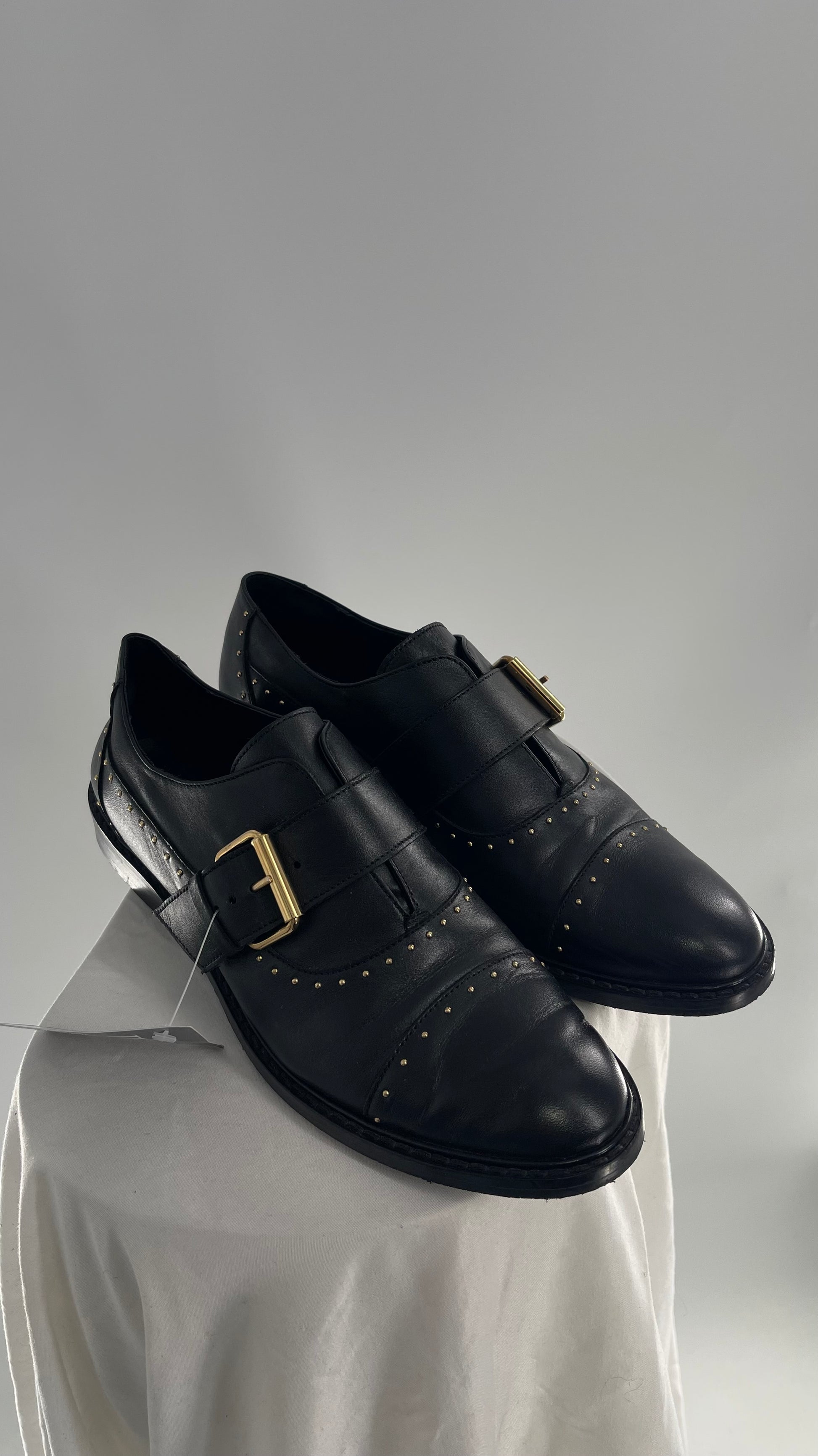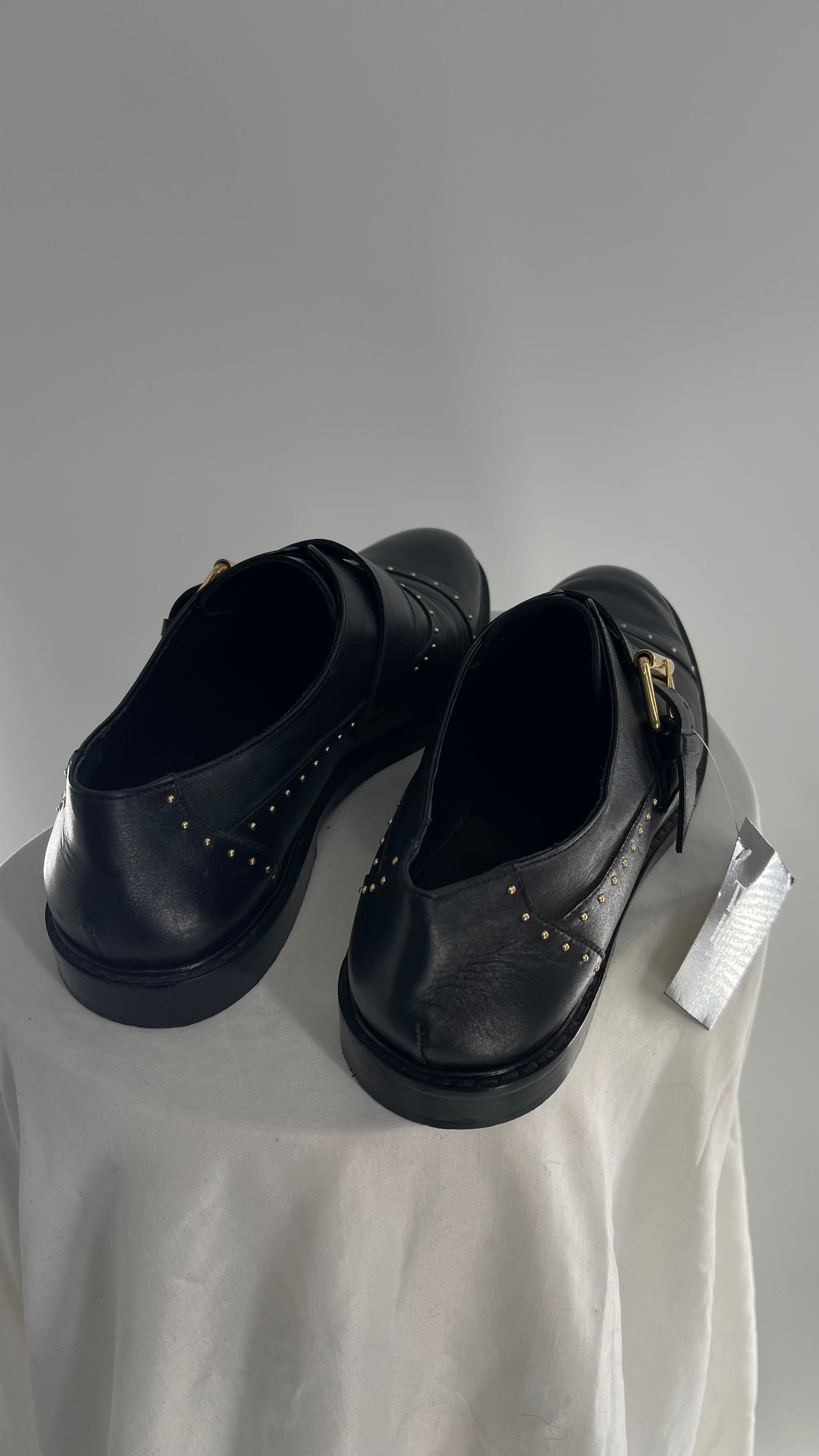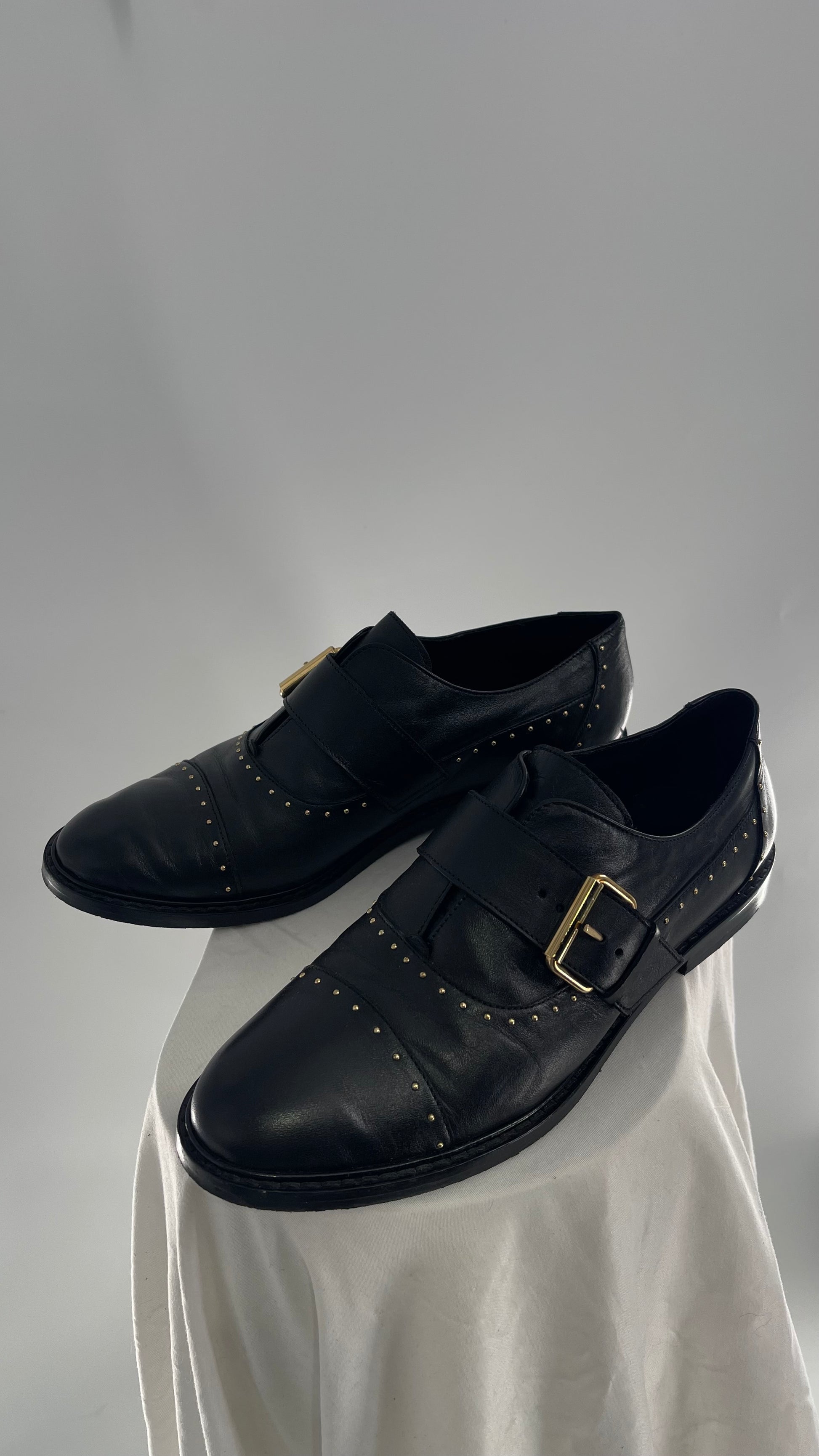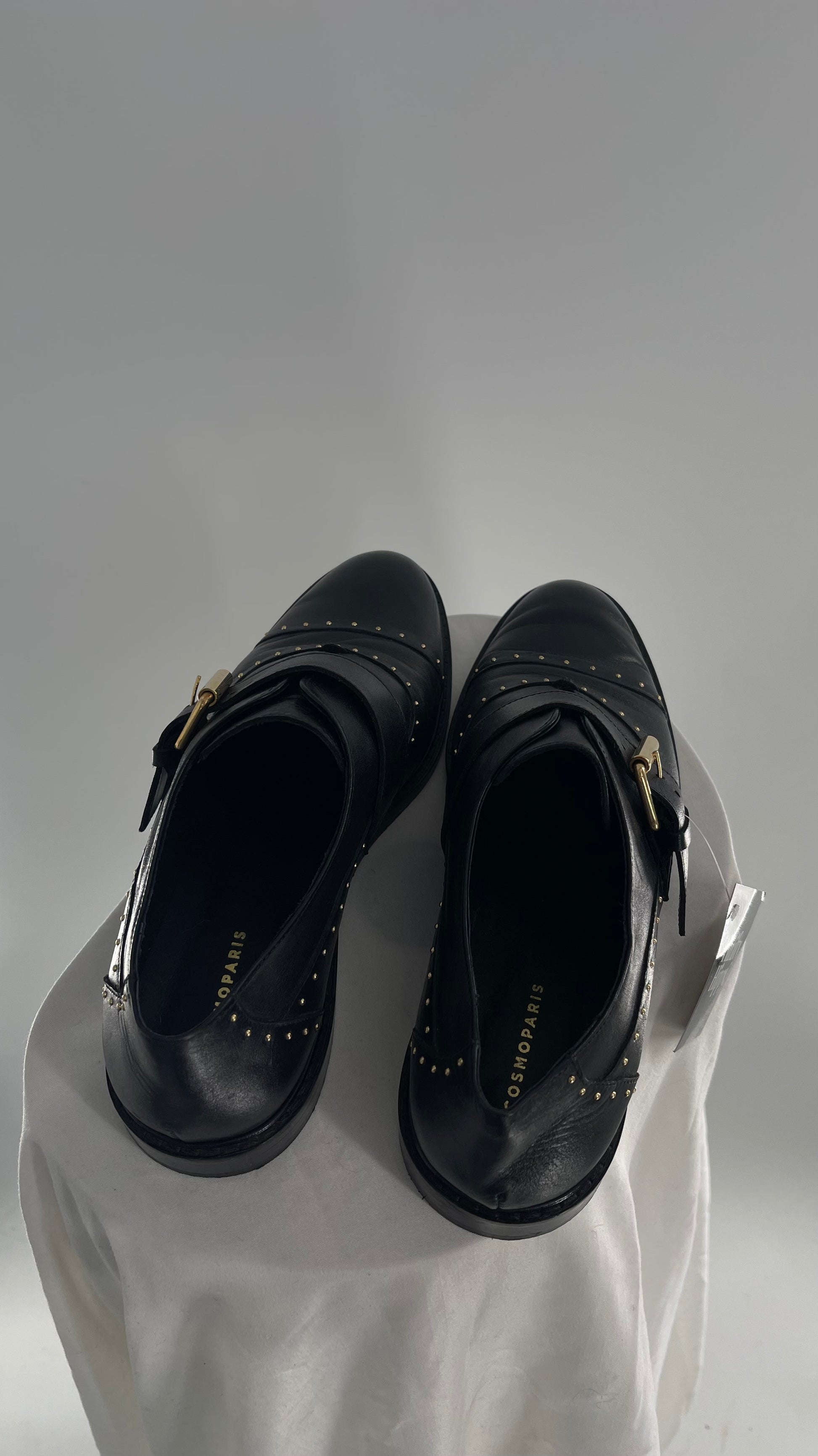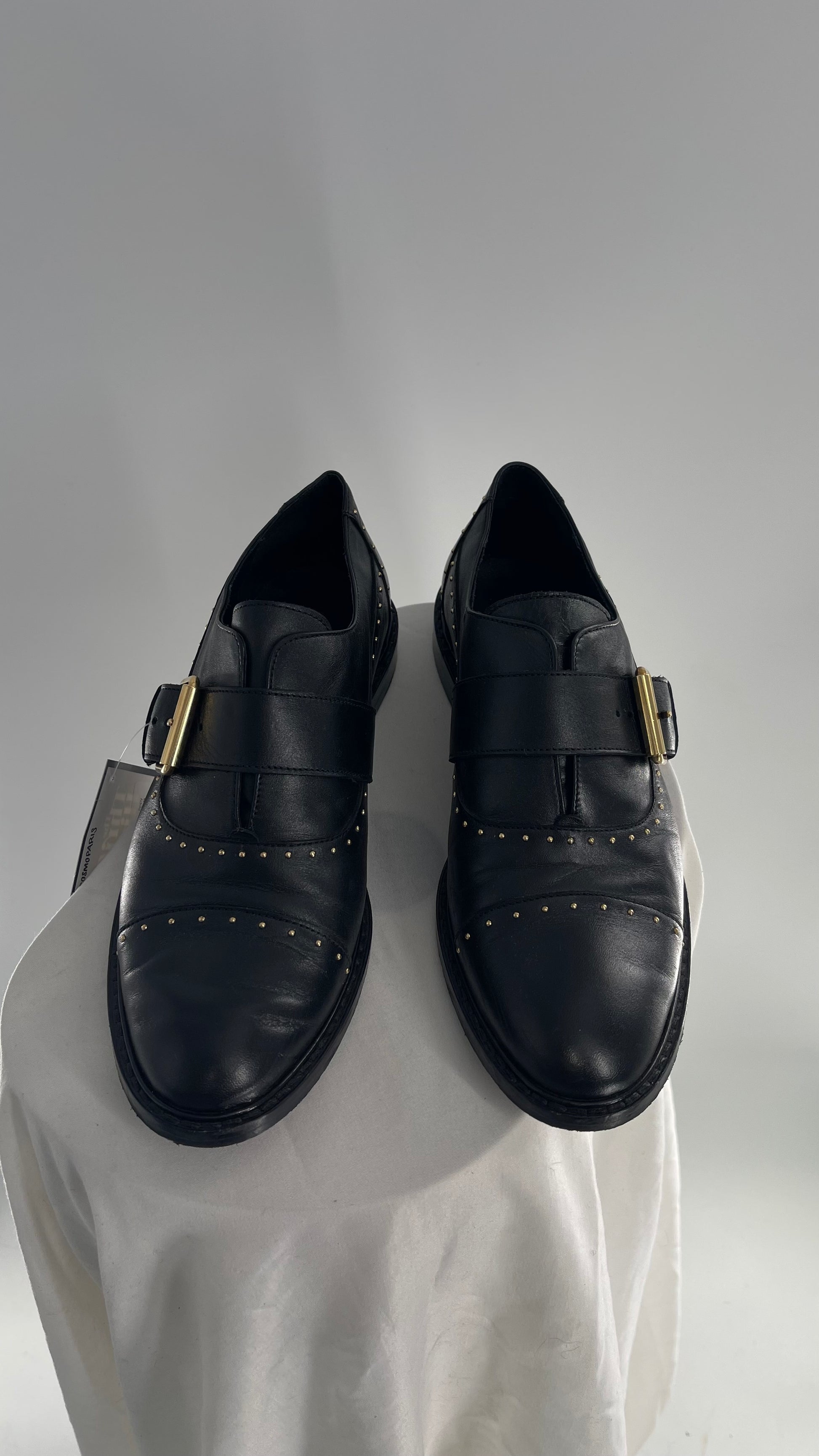 Vintage COSMOPARIS Black Leather Side Buckle Oxford with Gold Stud Details (39)