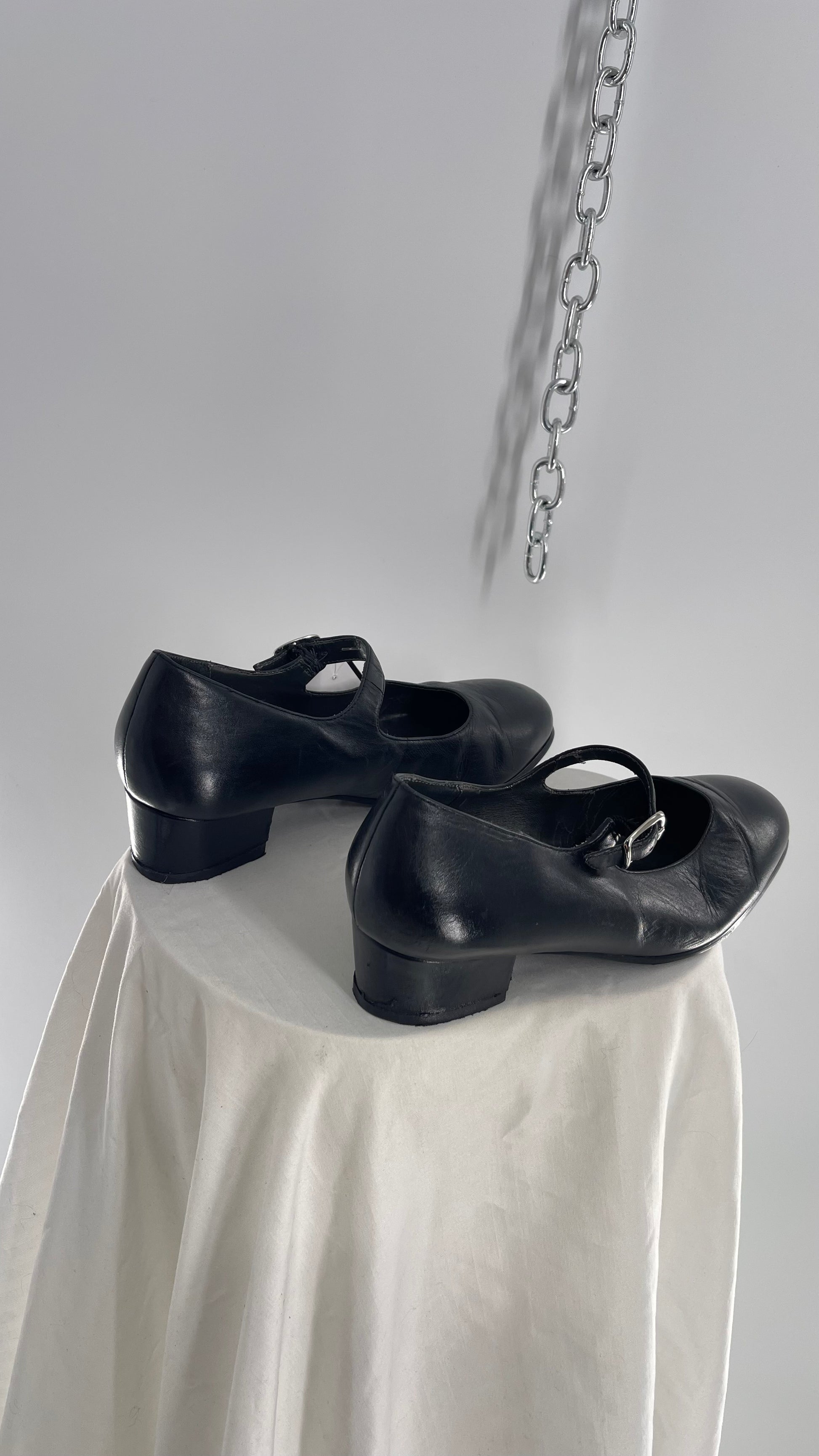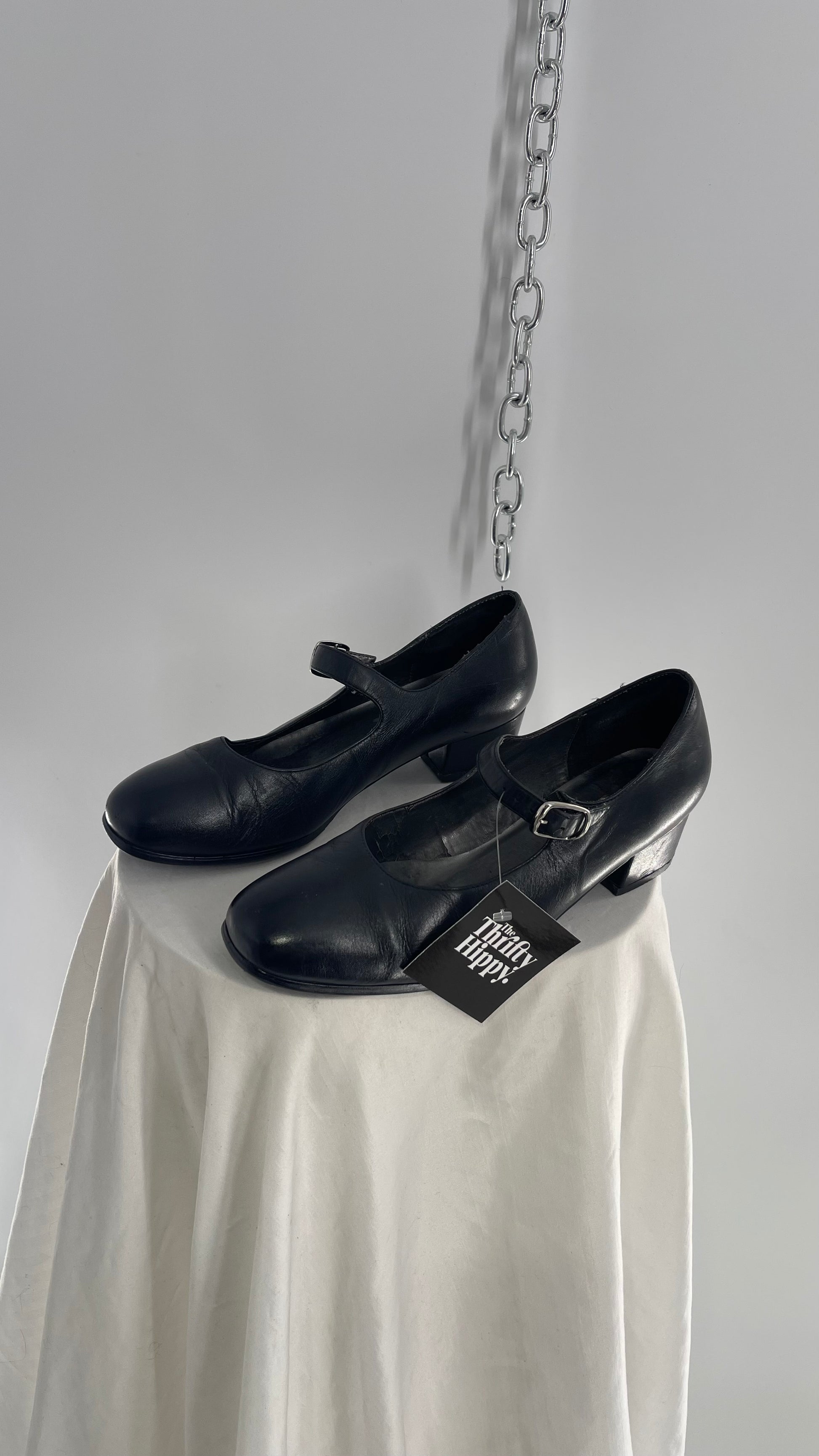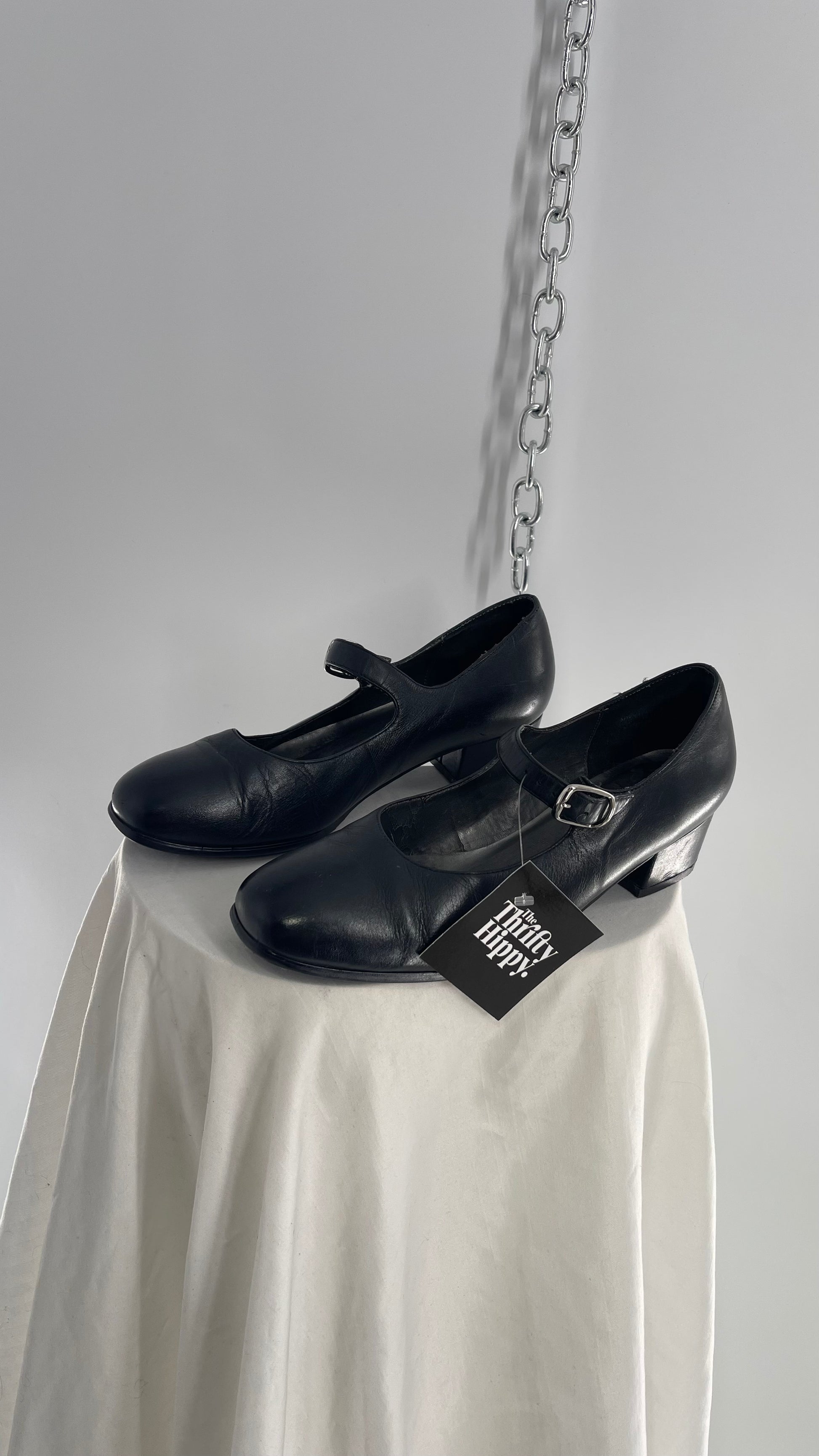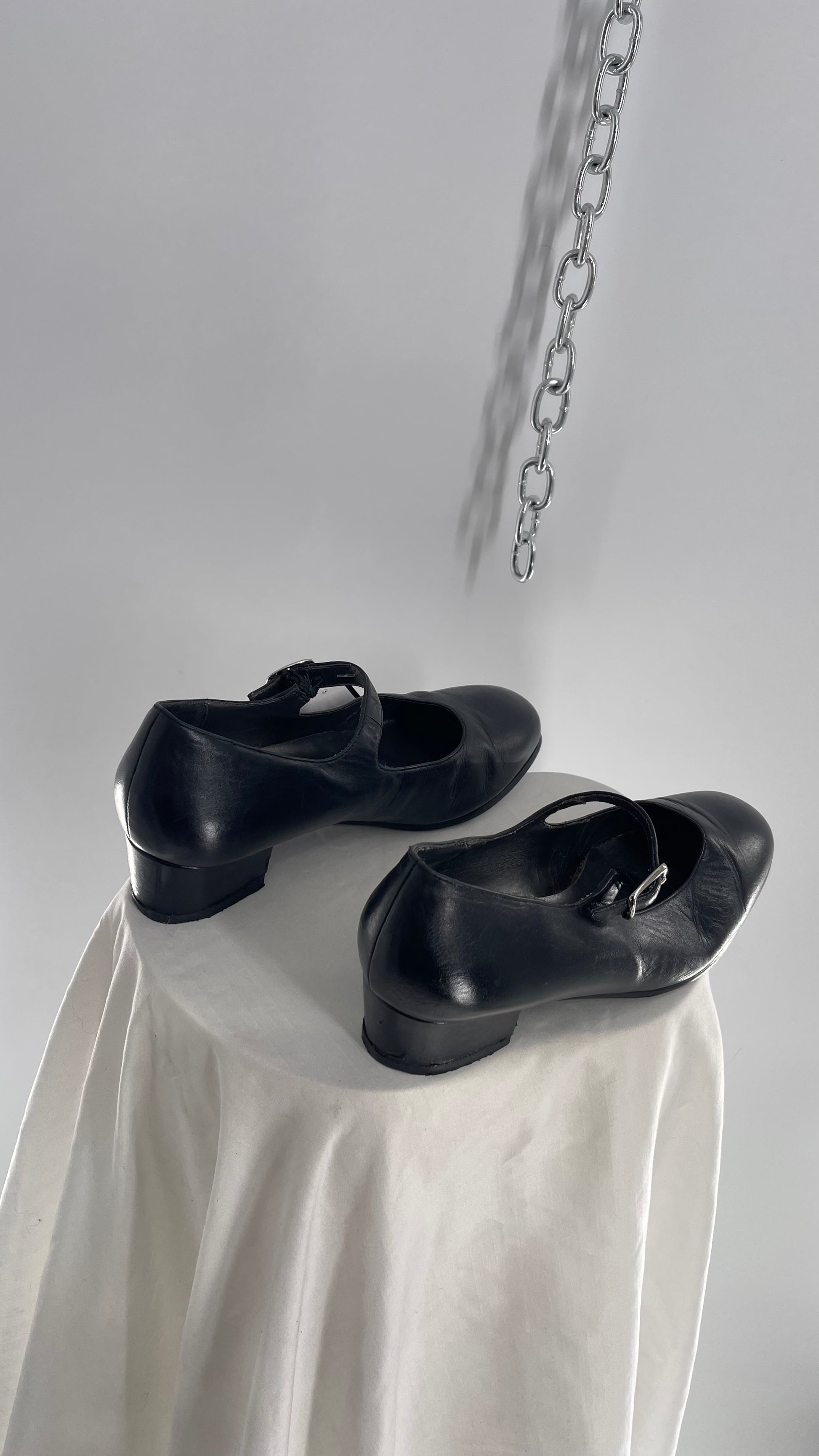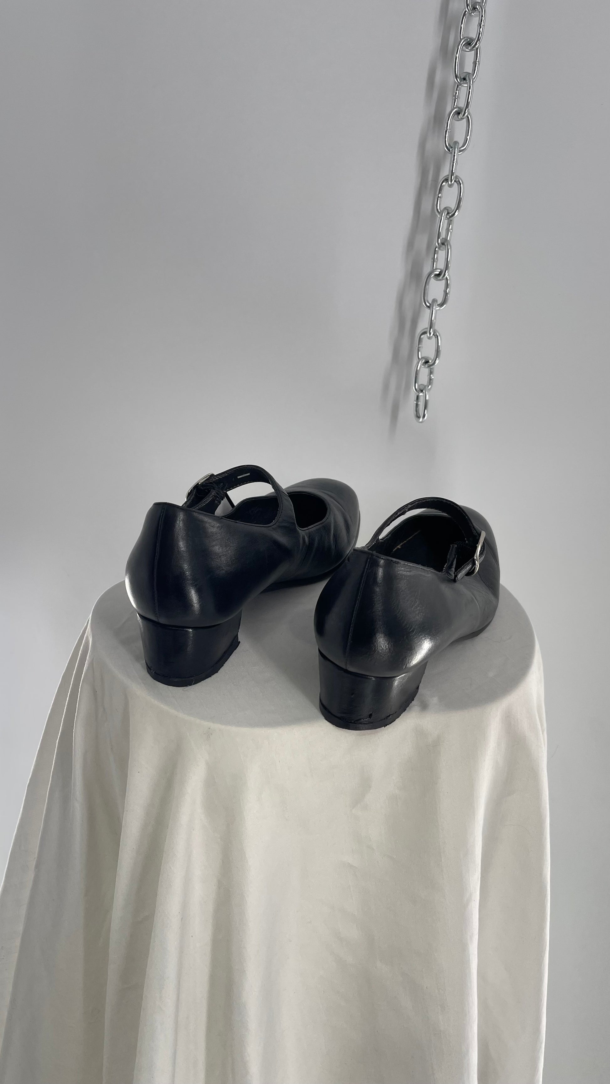 Vintage Black Leather Mary Jane Kitten Heels (8.5)