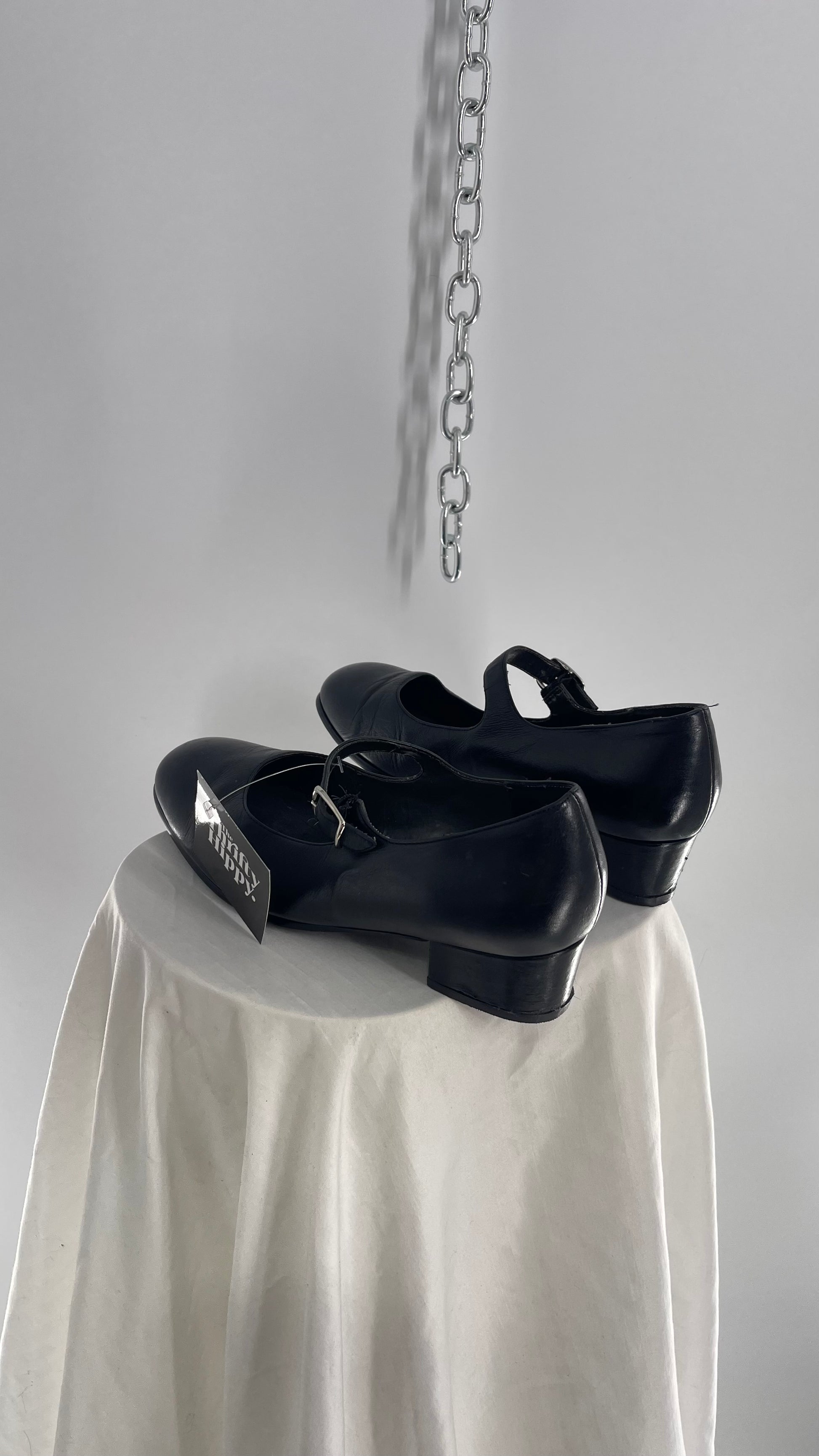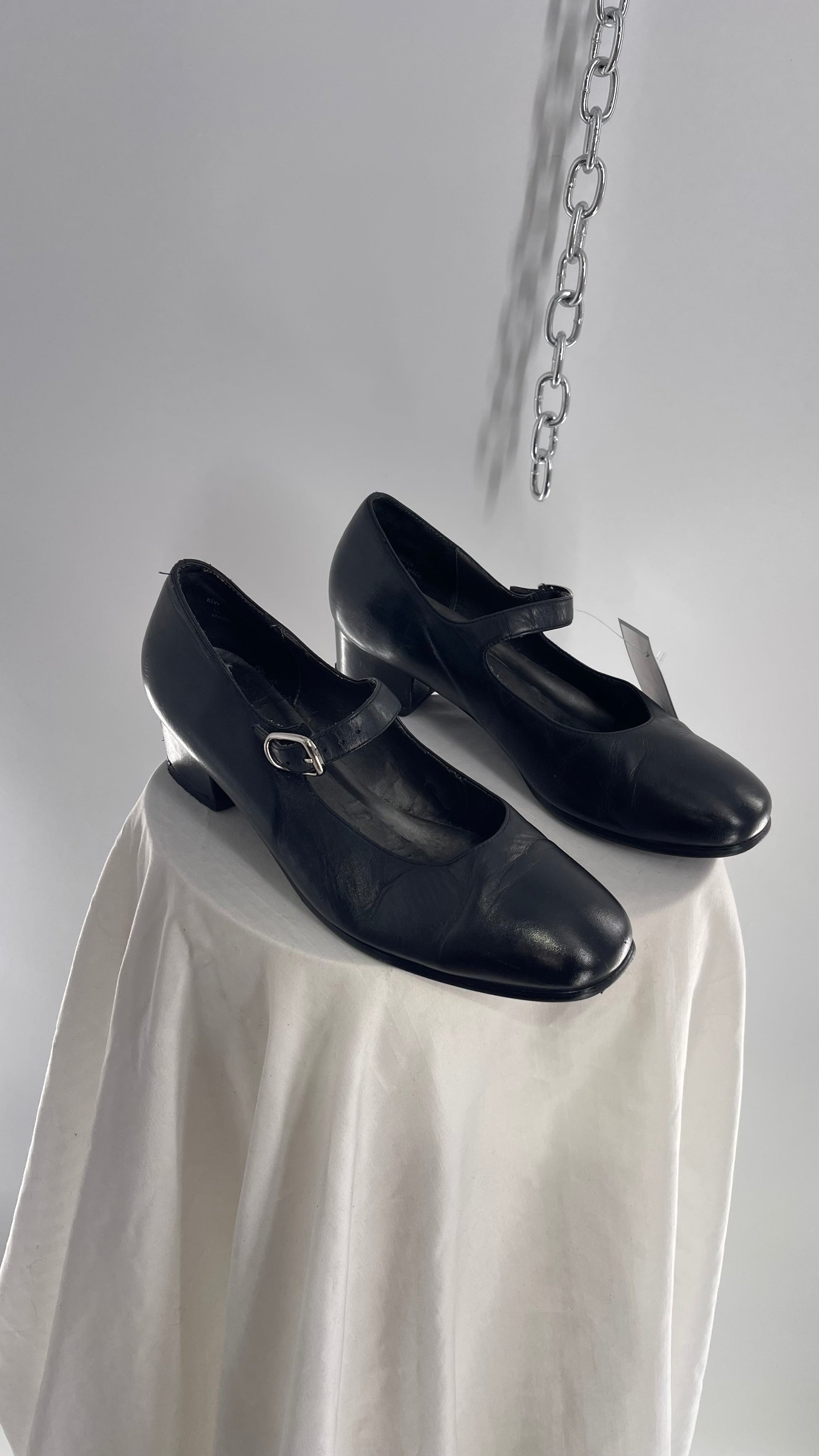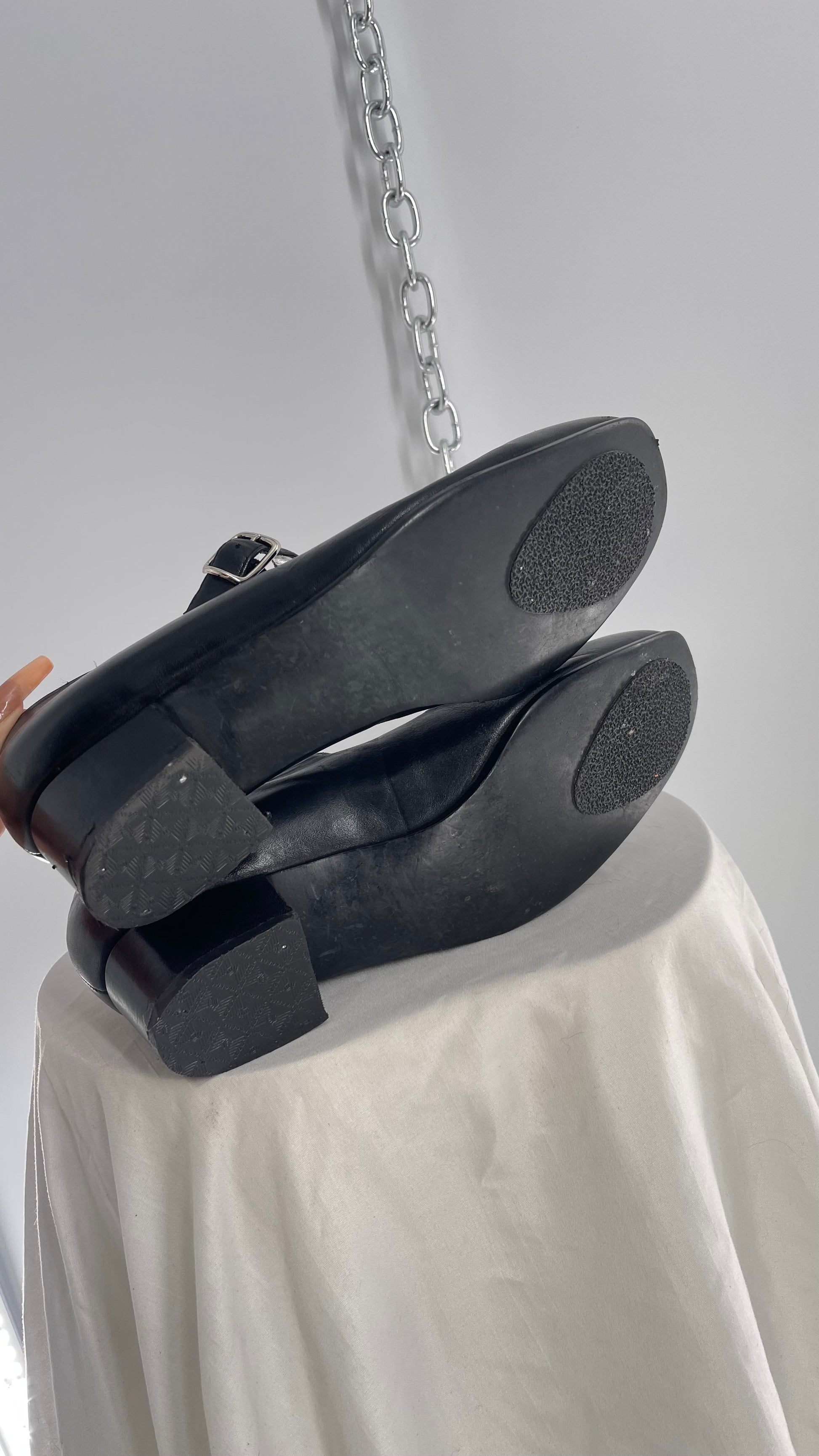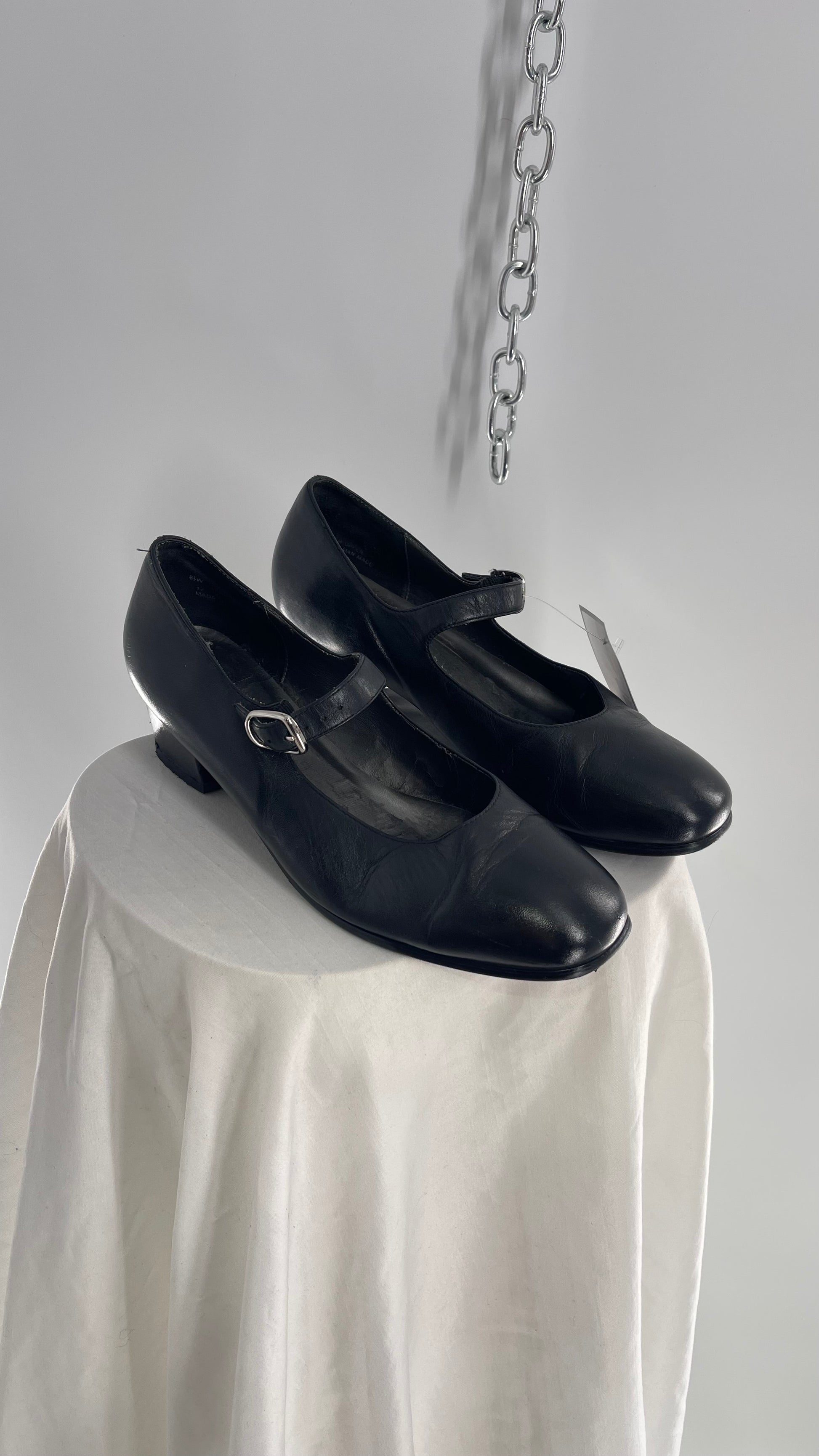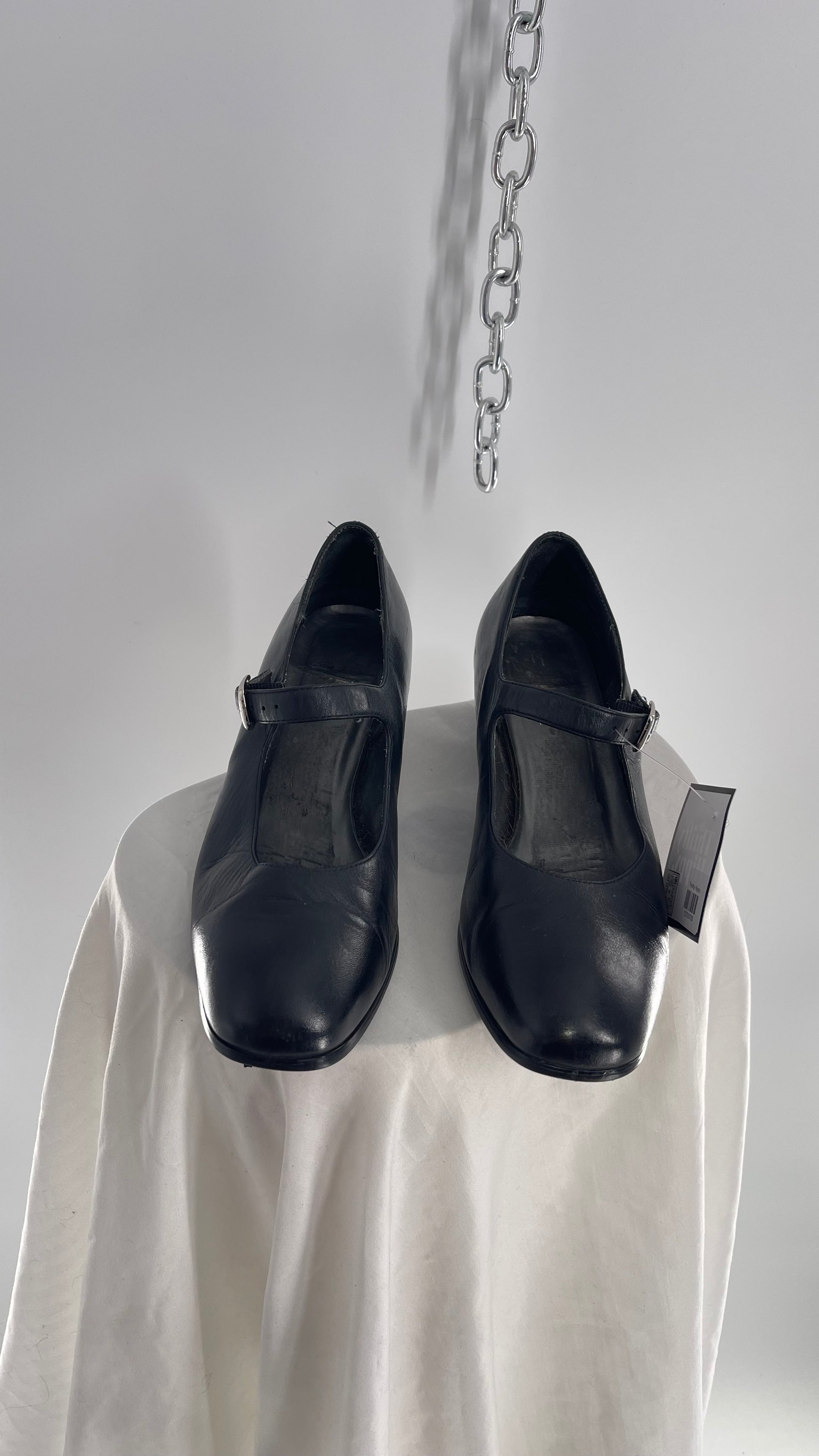Vintage Black Leather Mary Jane Kitten Heels (8.5)