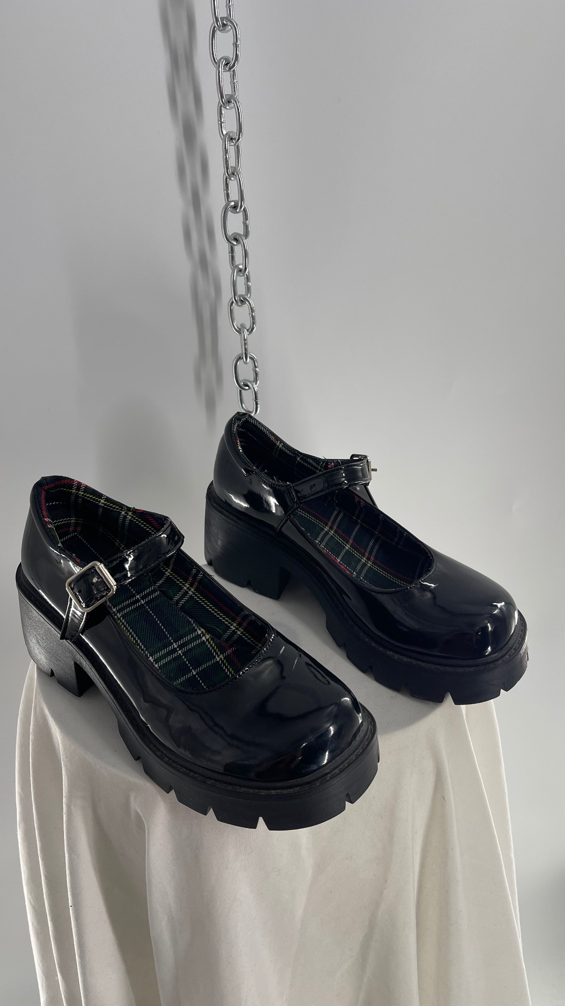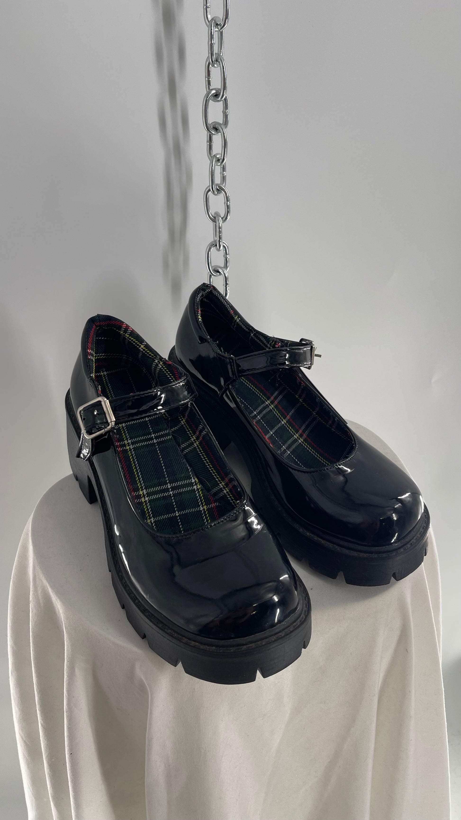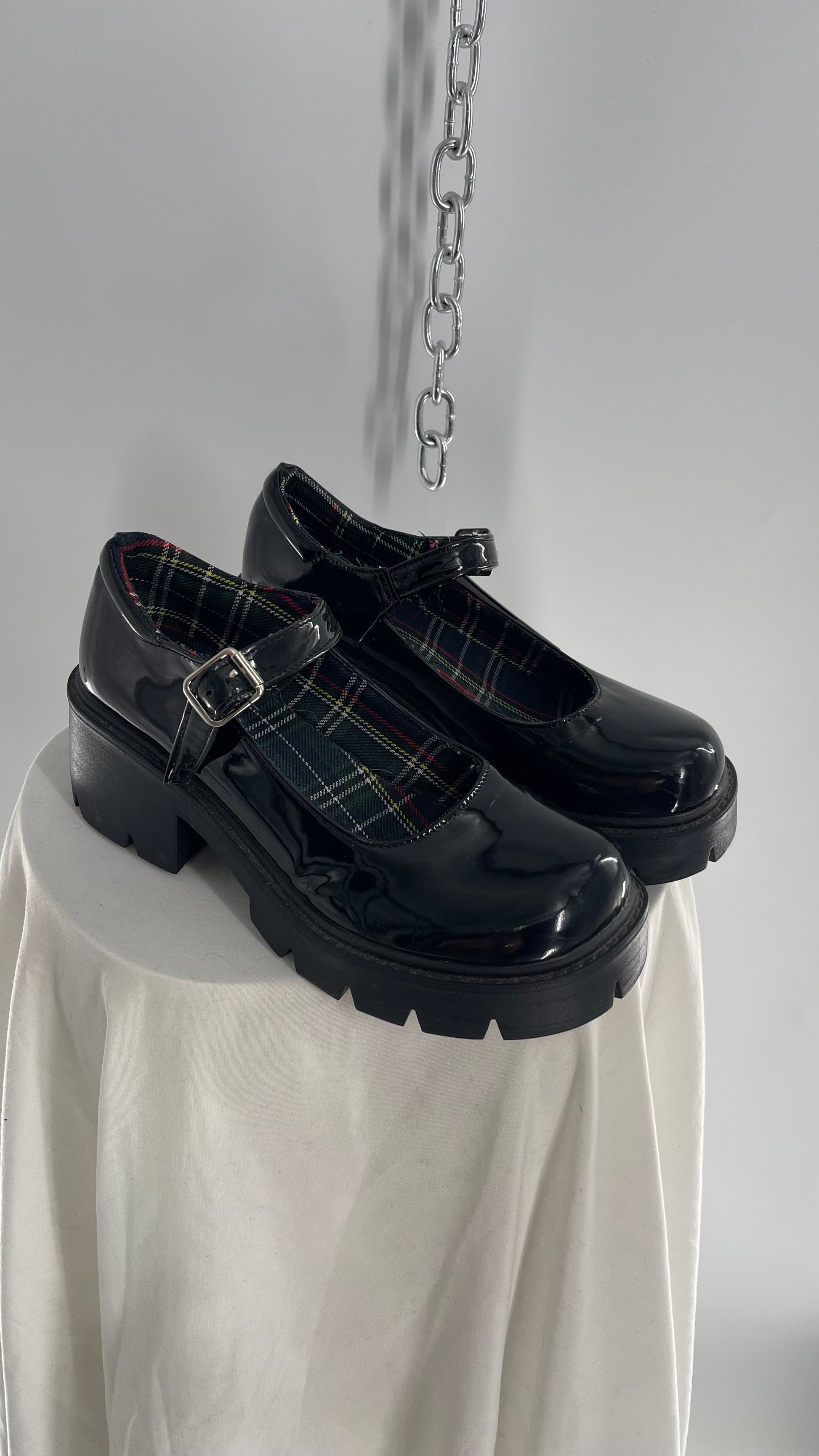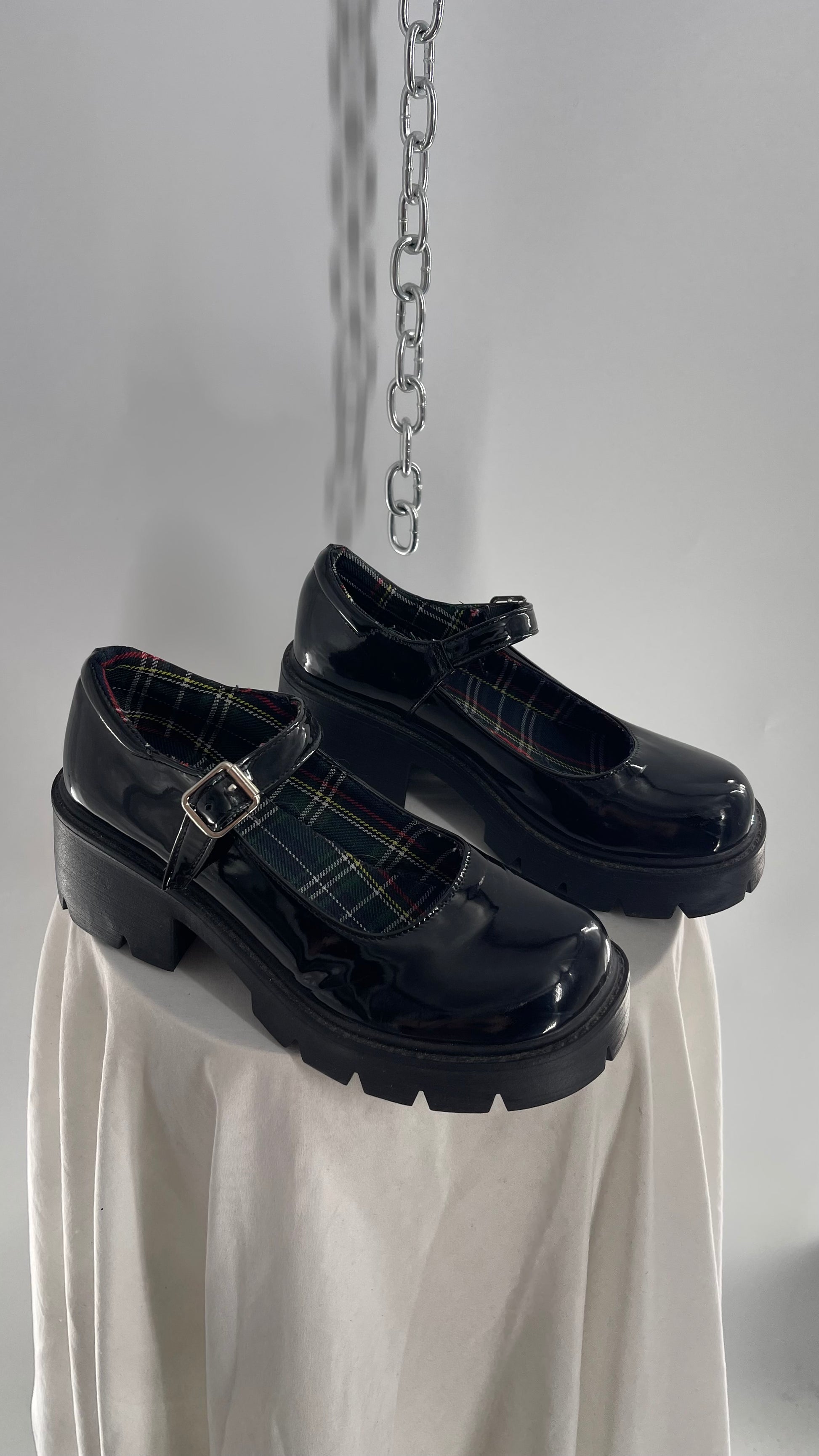 Black Patent Mary Janes with Chunky Platform and Plaid Lining (8)