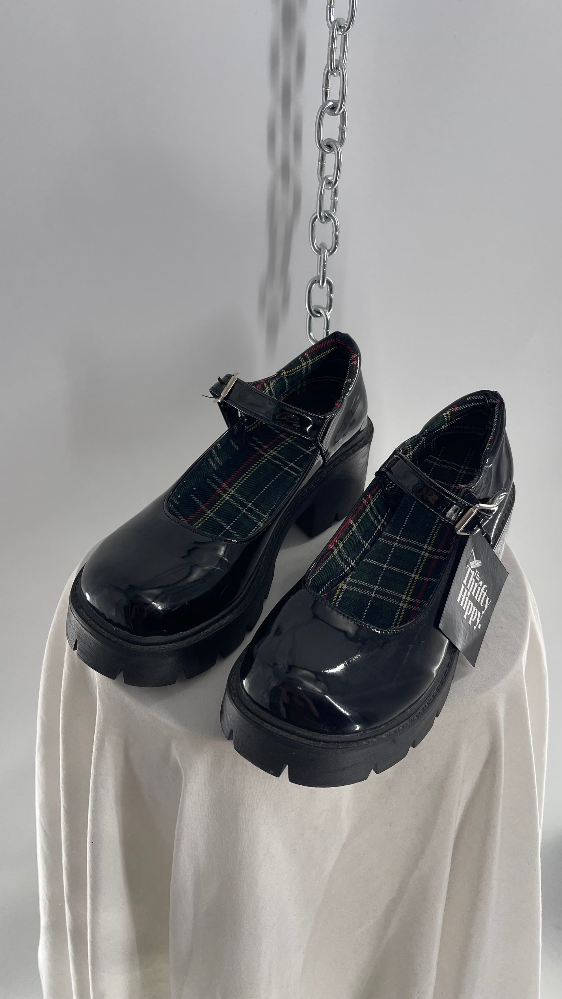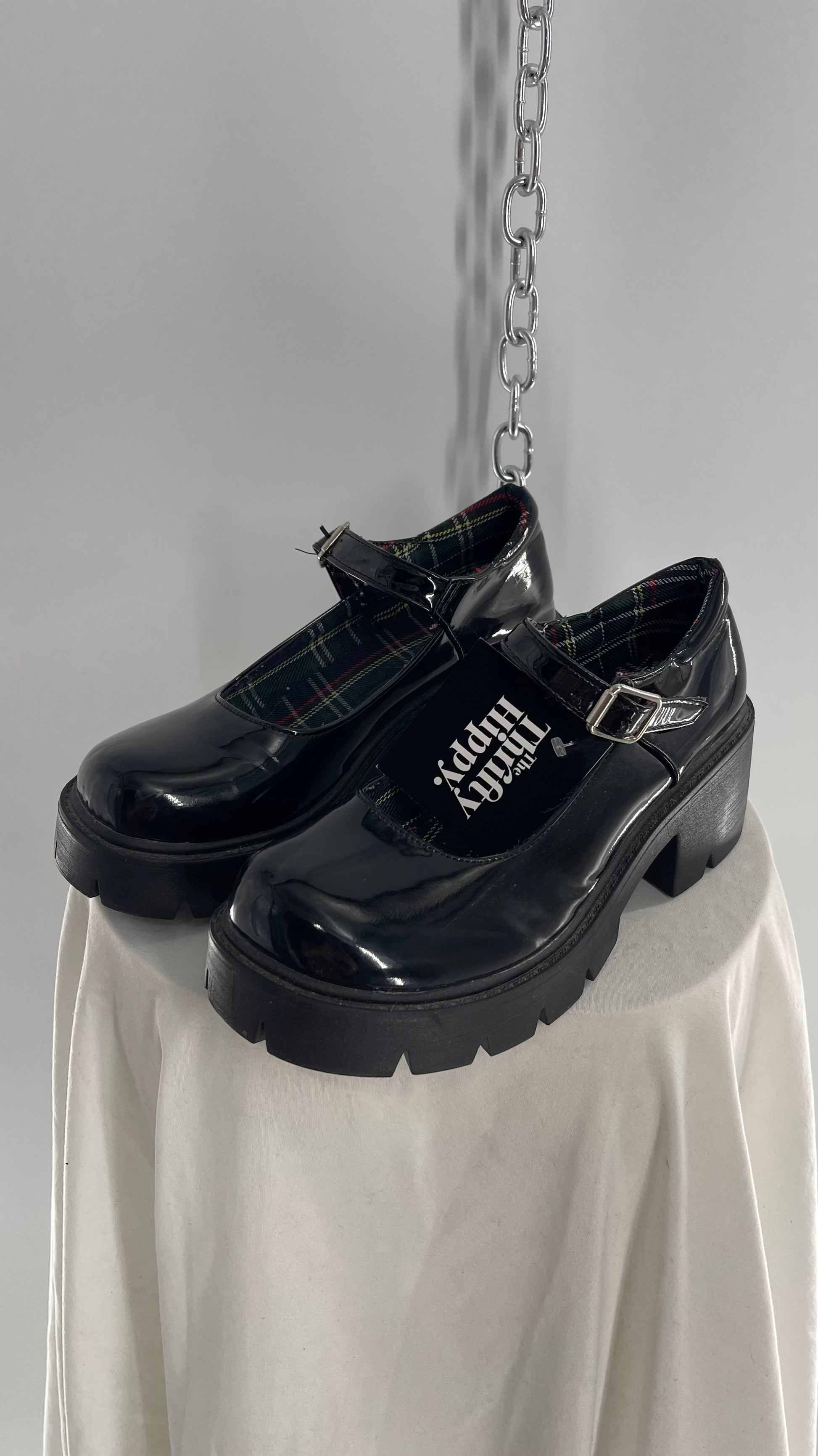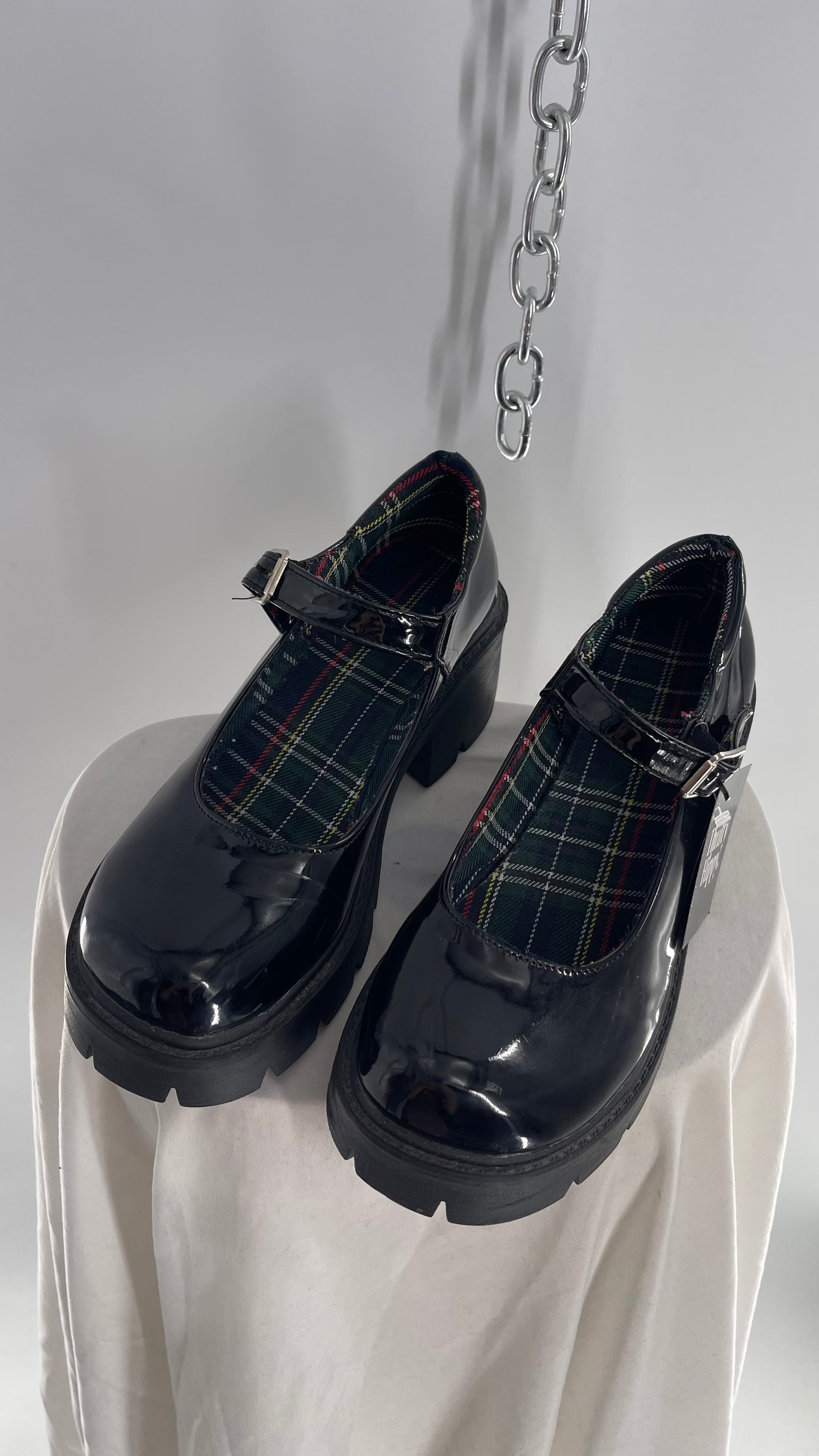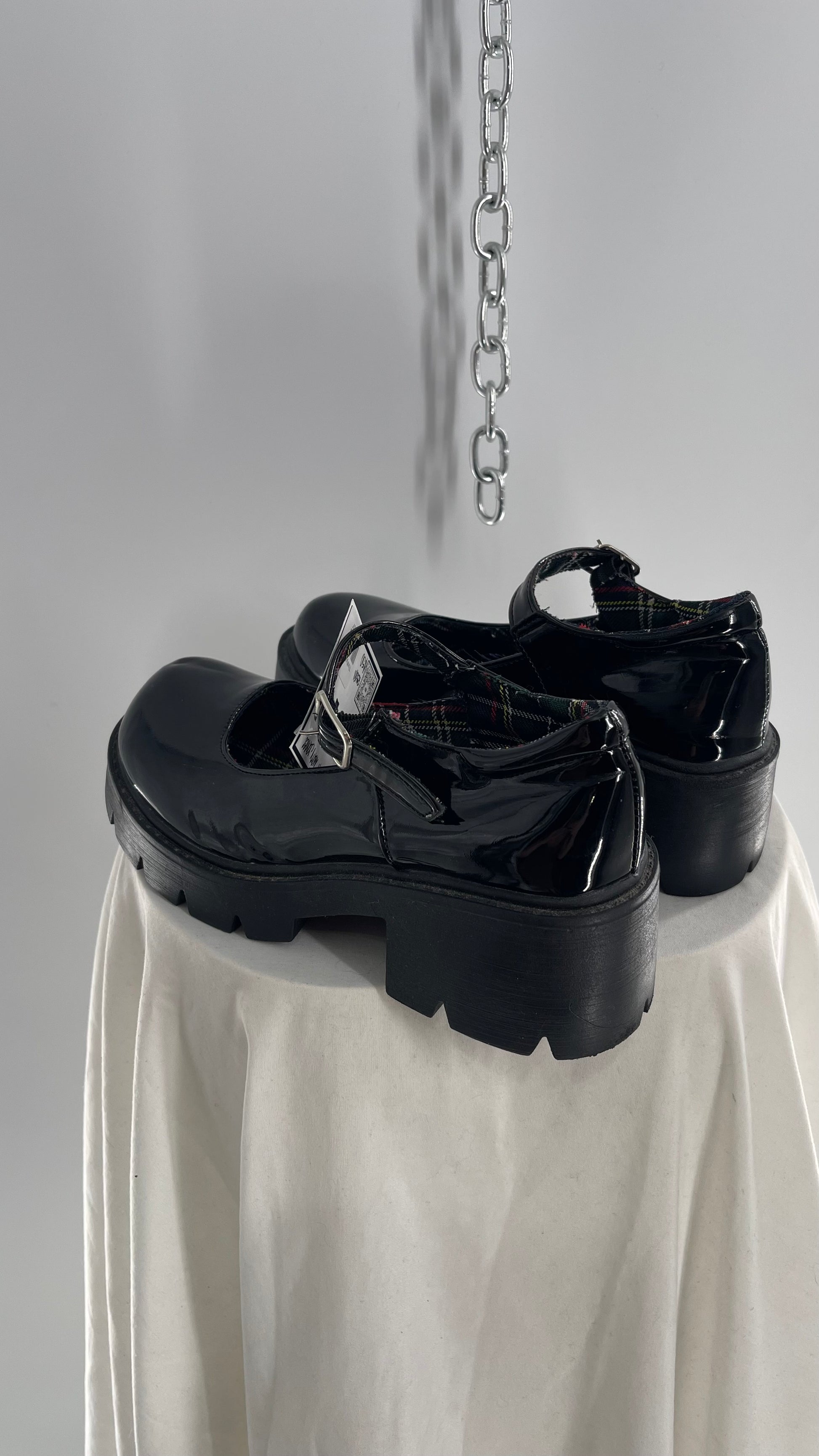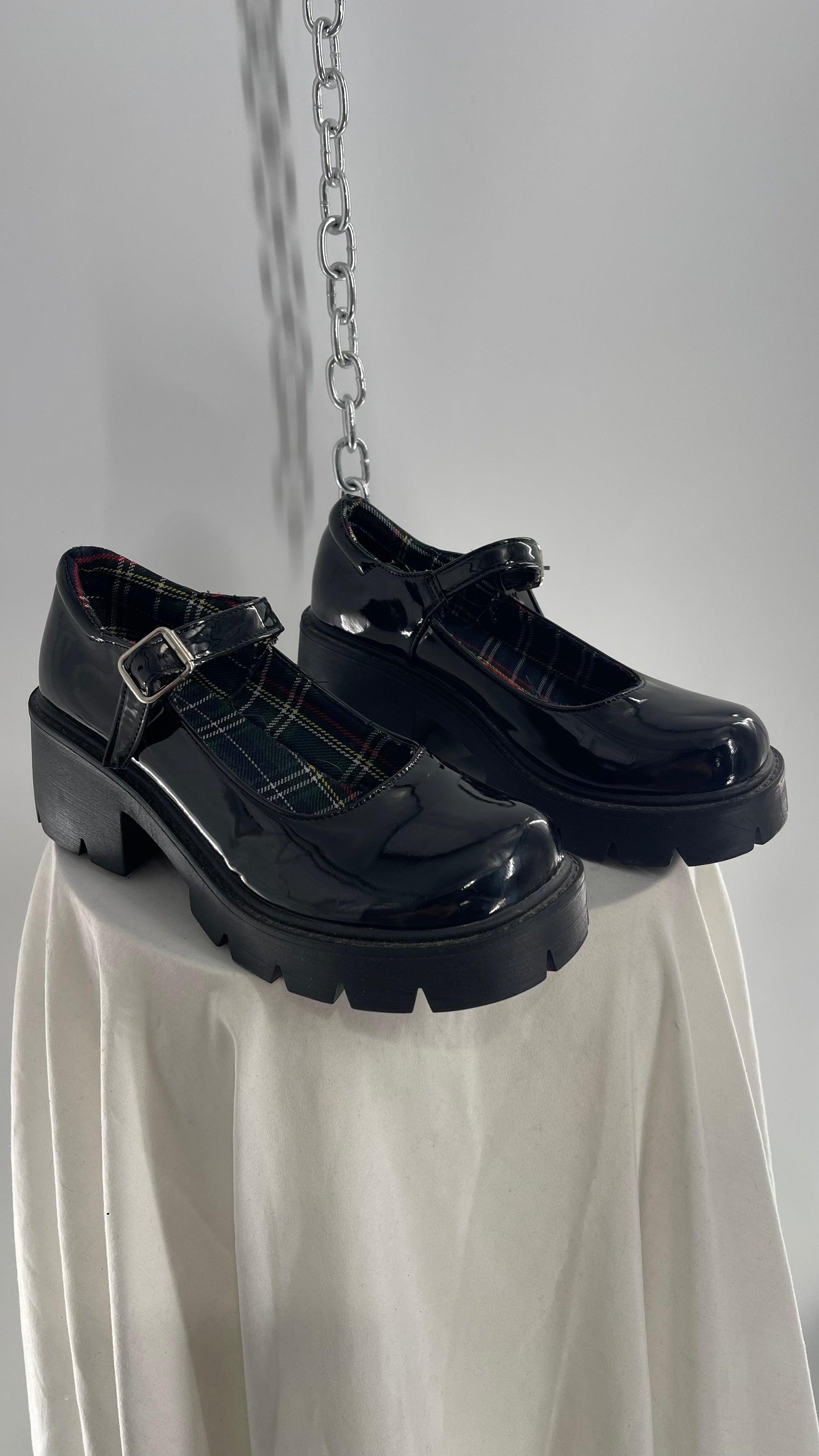 Black Patent Mary Janes with Chunky Platform and Plaid Lining (8)