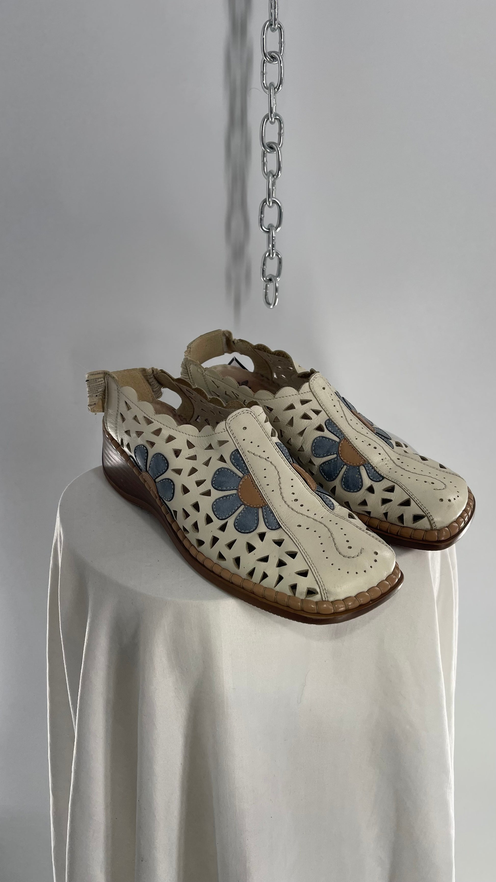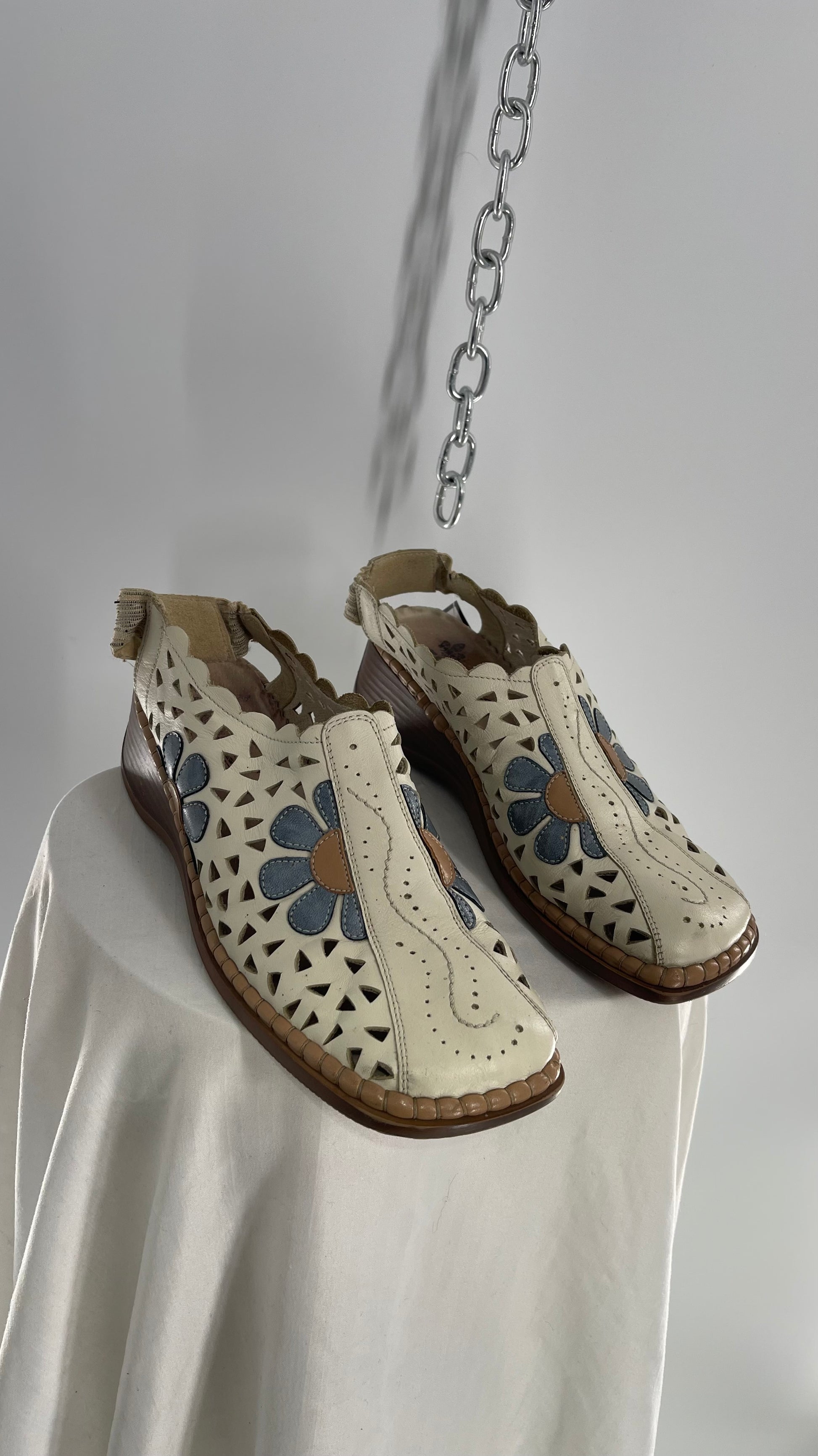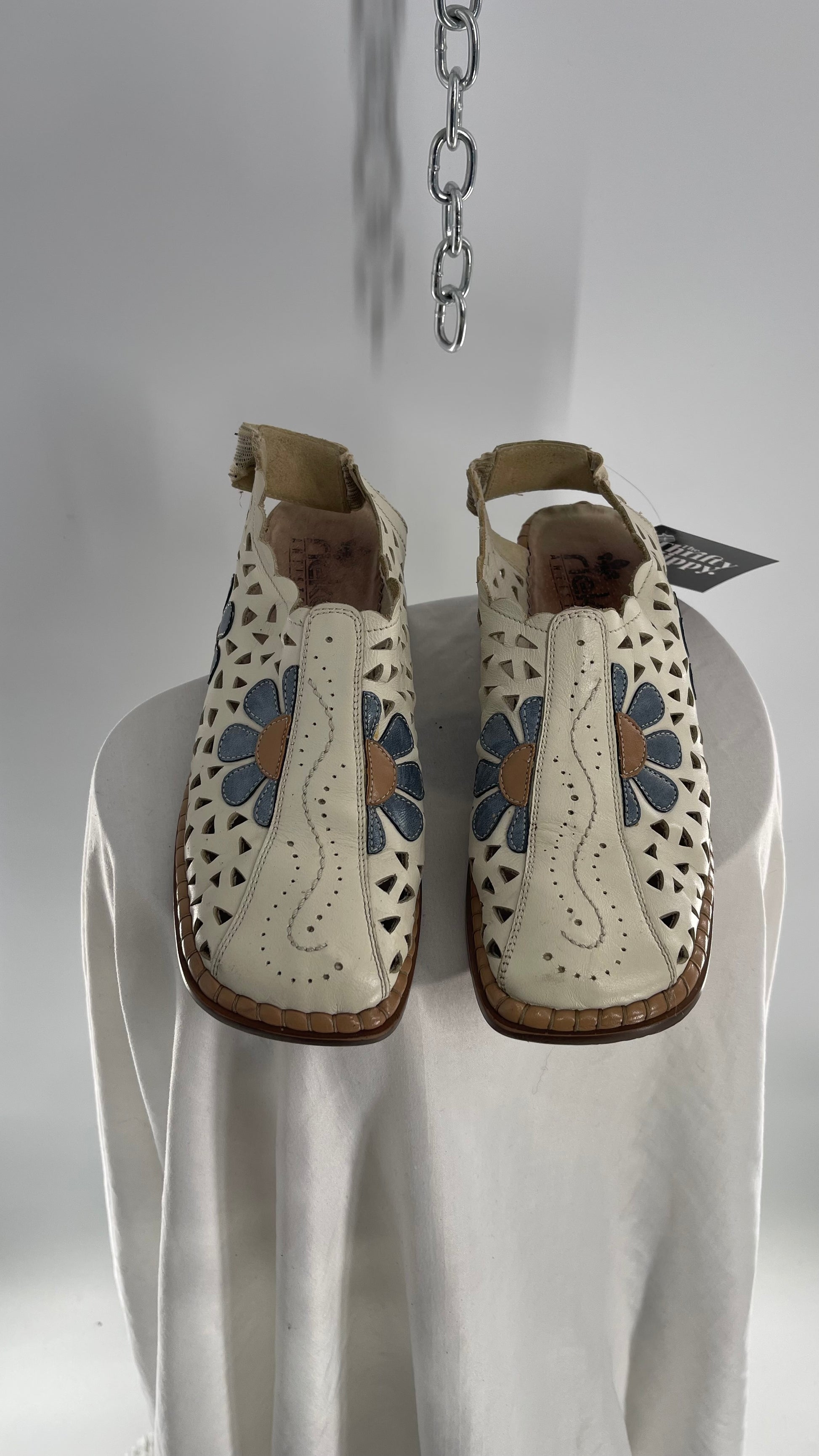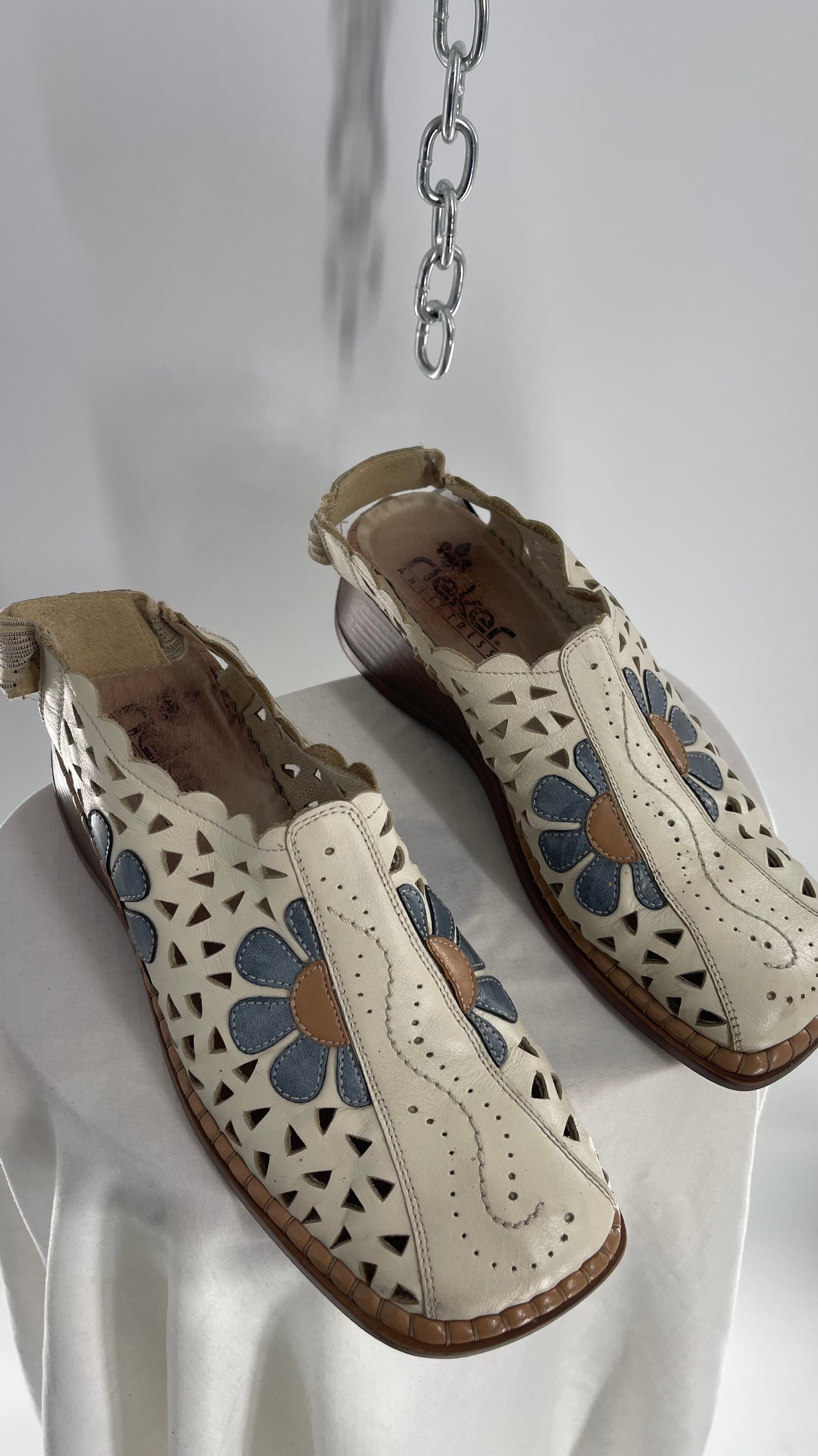 Vintage Rieker Leather Floral Laser Cut Sling back Sneaker (40)