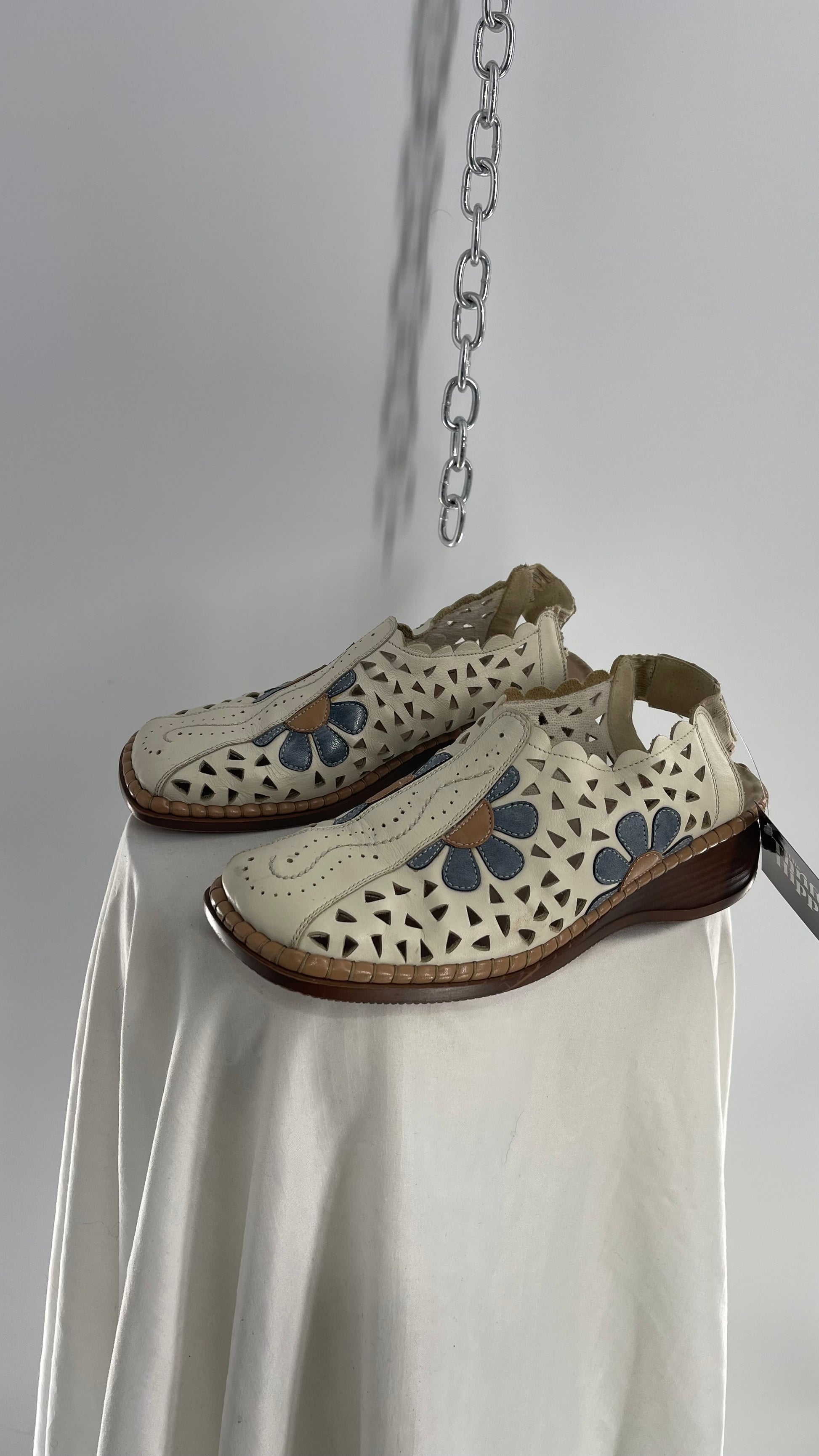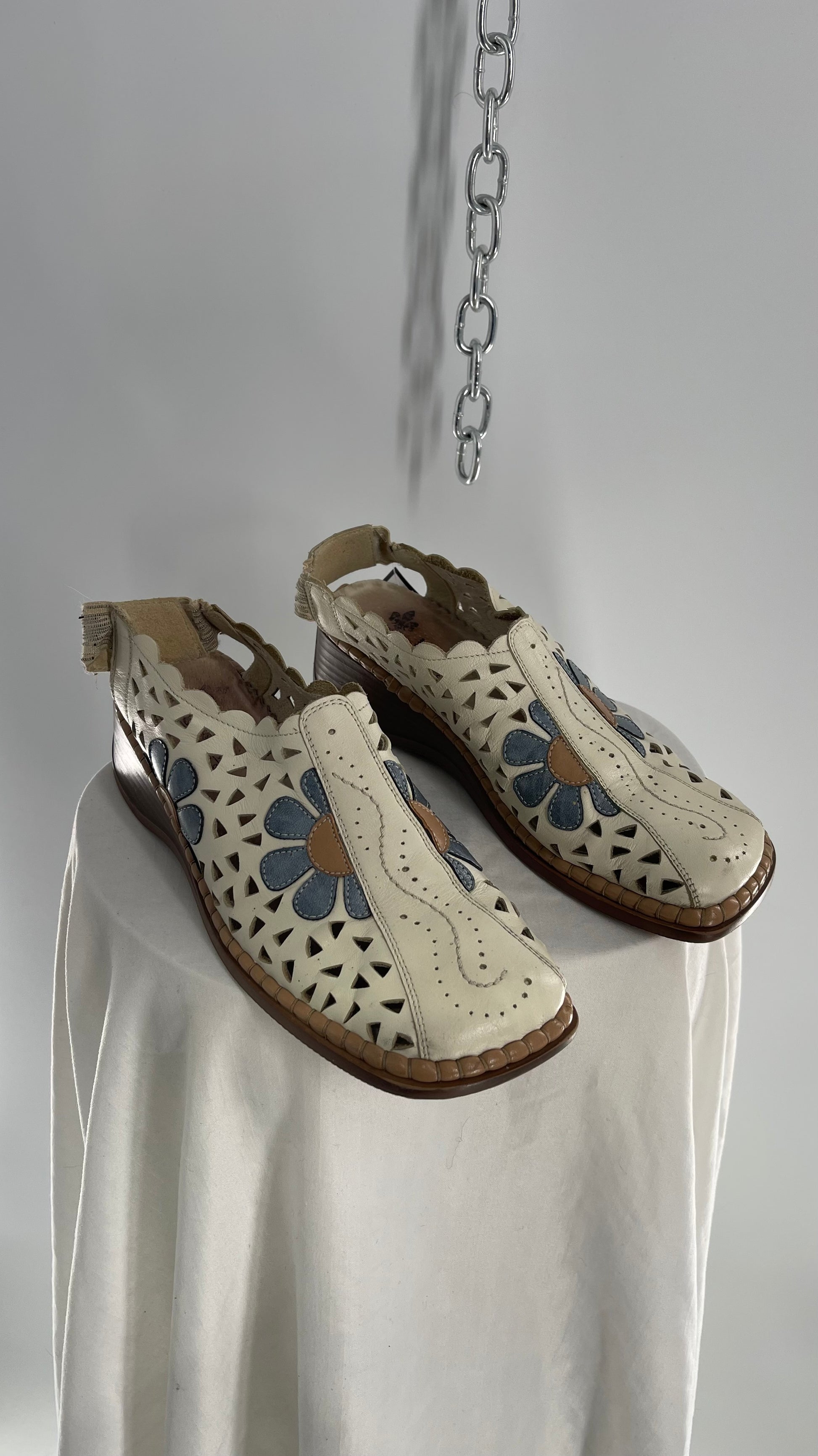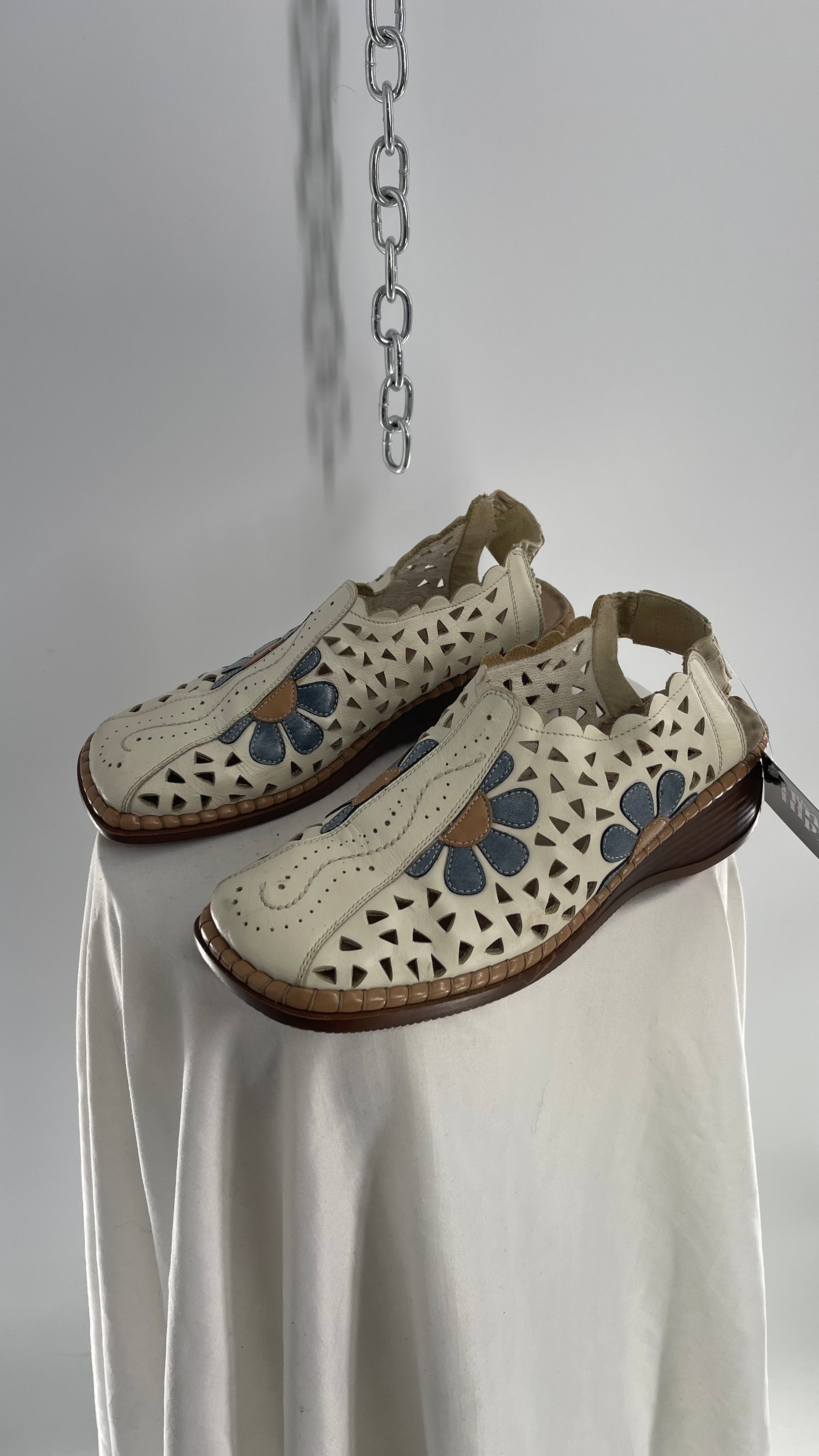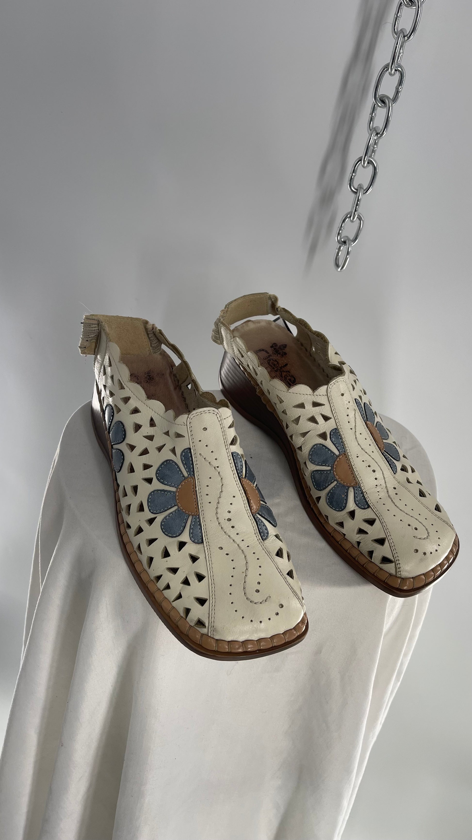 Vintage Rieker Leather Floral Laser Cut Sling back Sneaker (40)