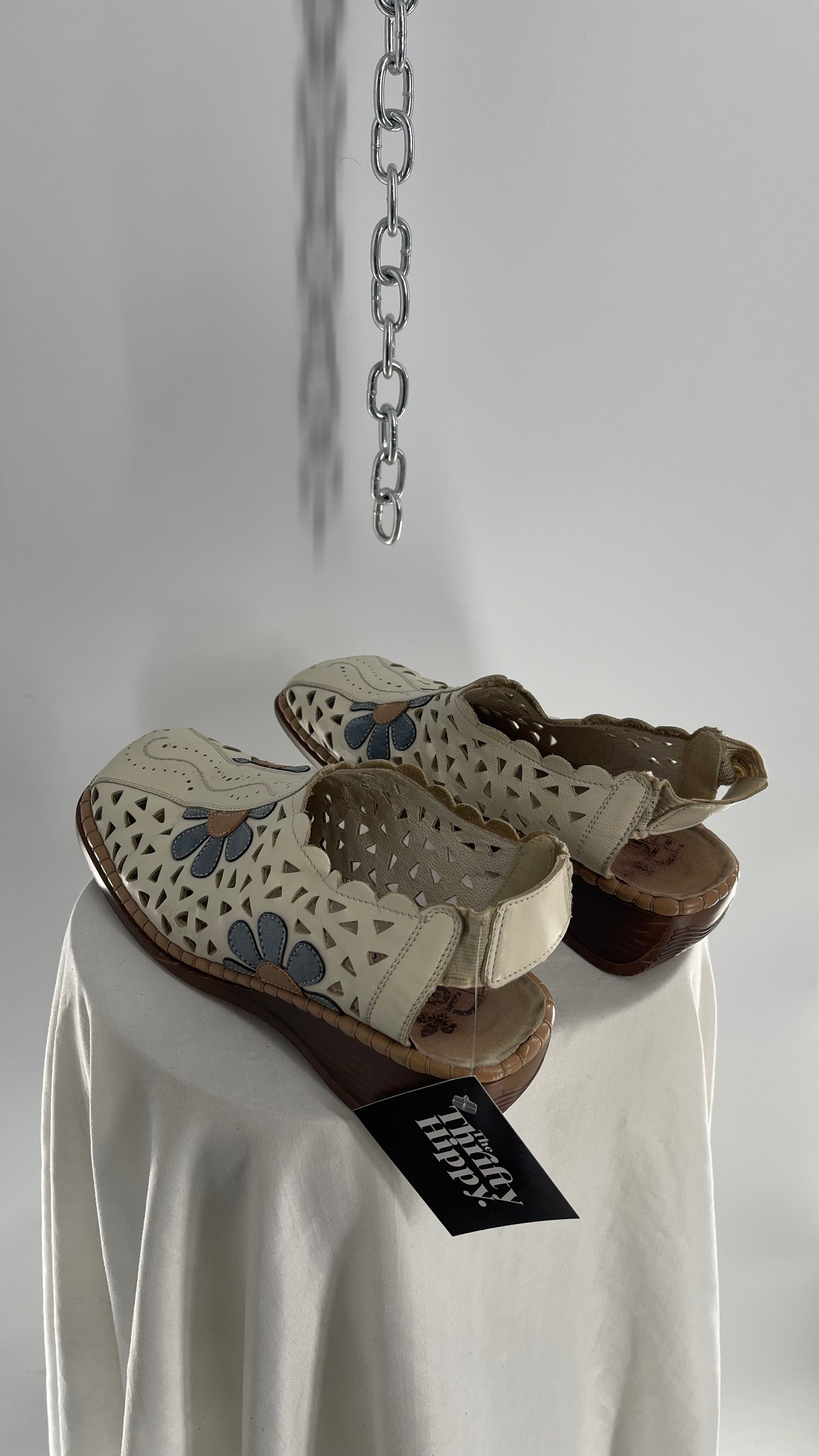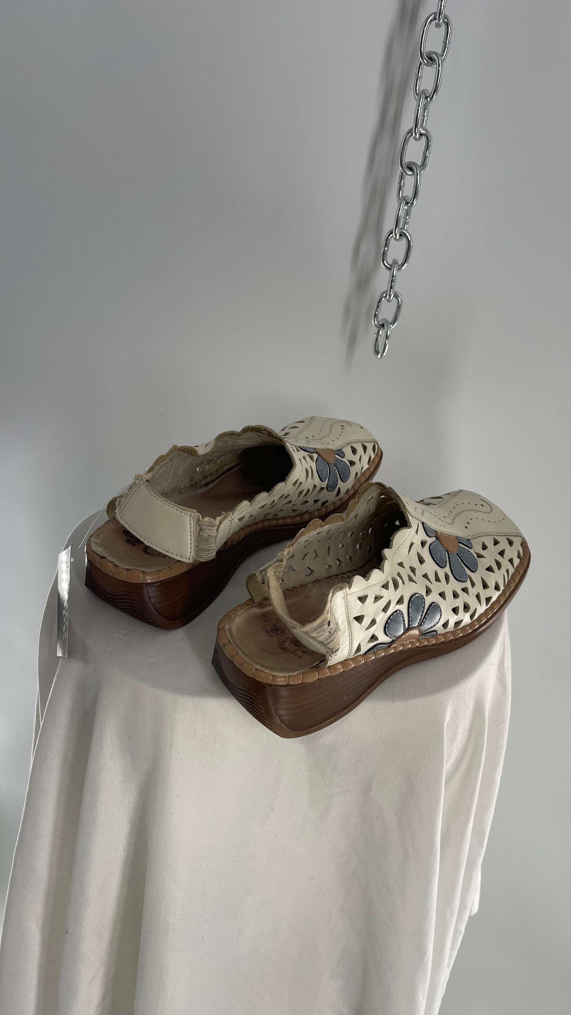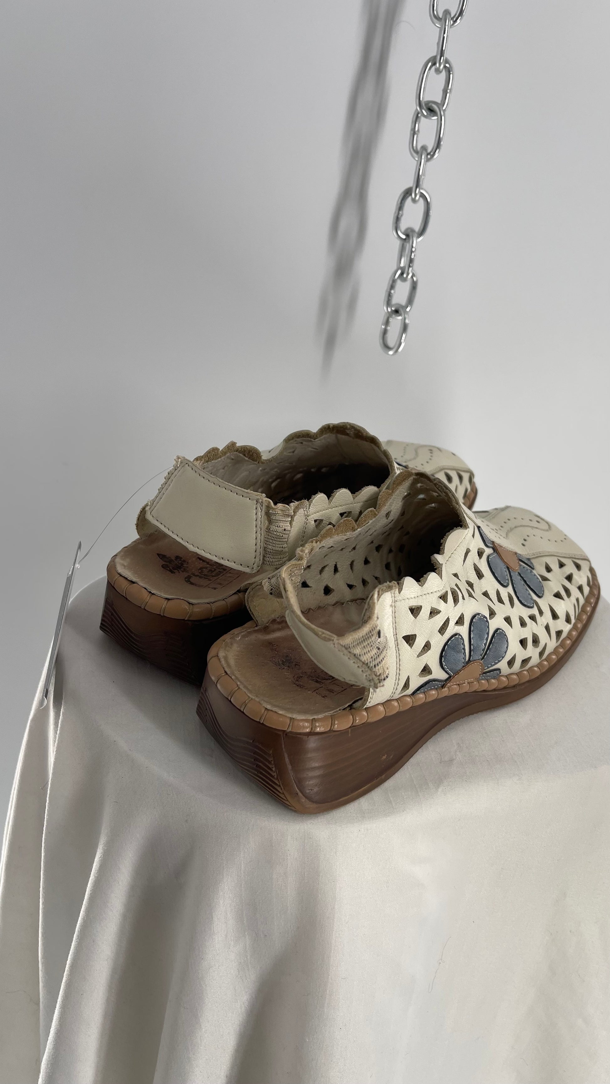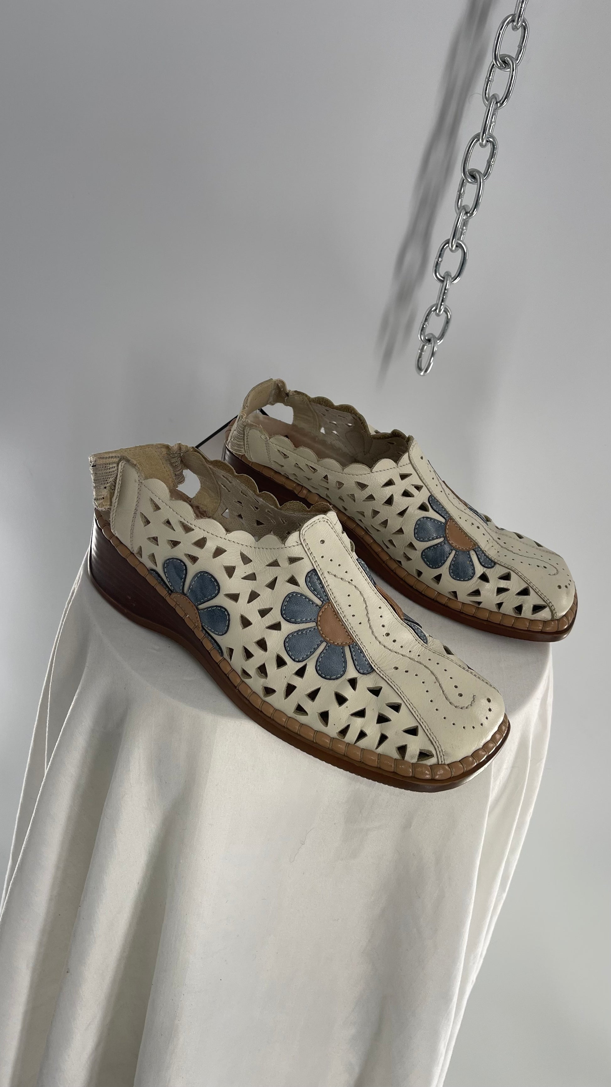 Vintage Rieker Leather Floral Laser Cut Sling back Sneaker (40)