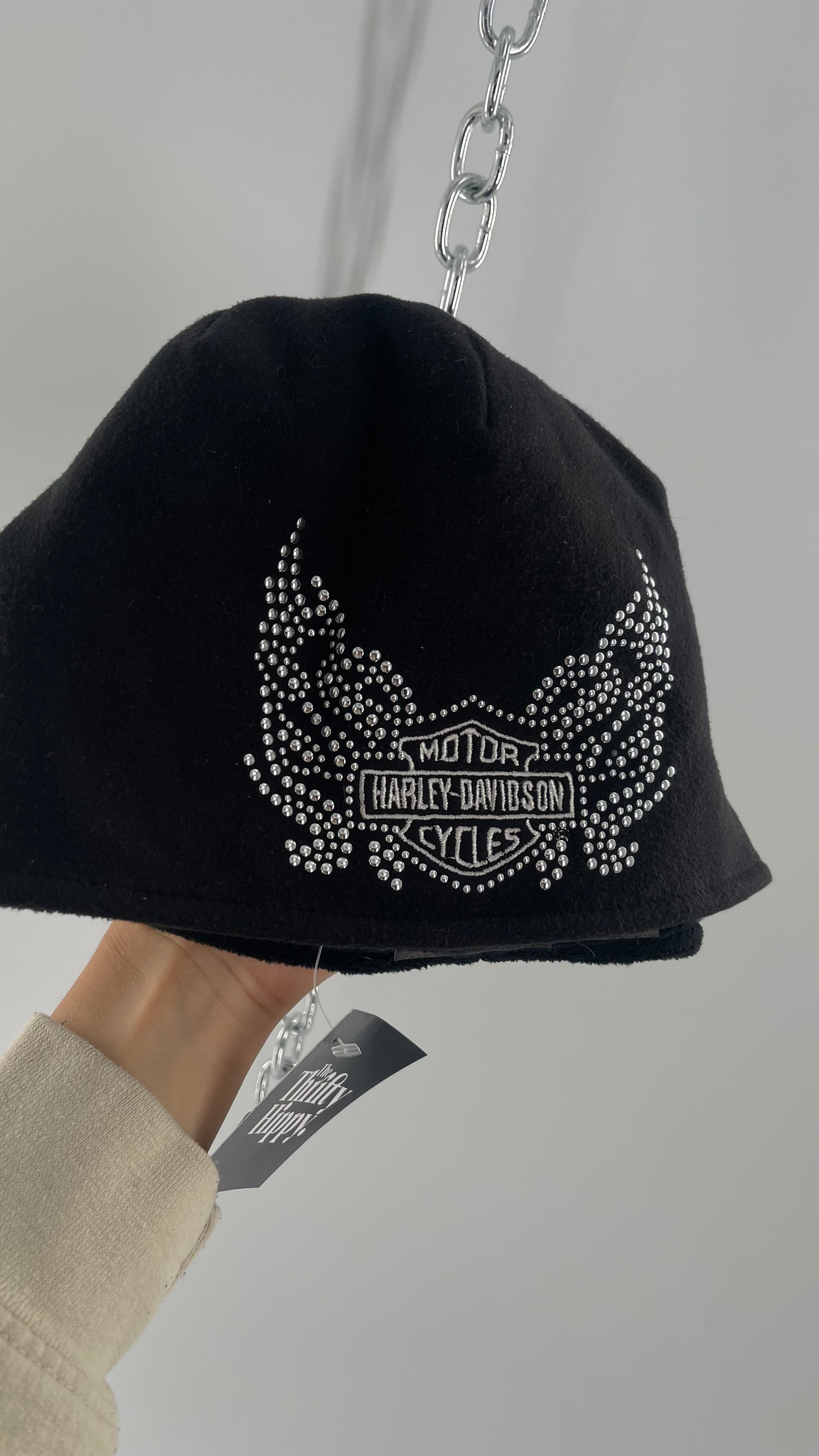 Vintage Harley Davidson Studded Bedazzled Beanie