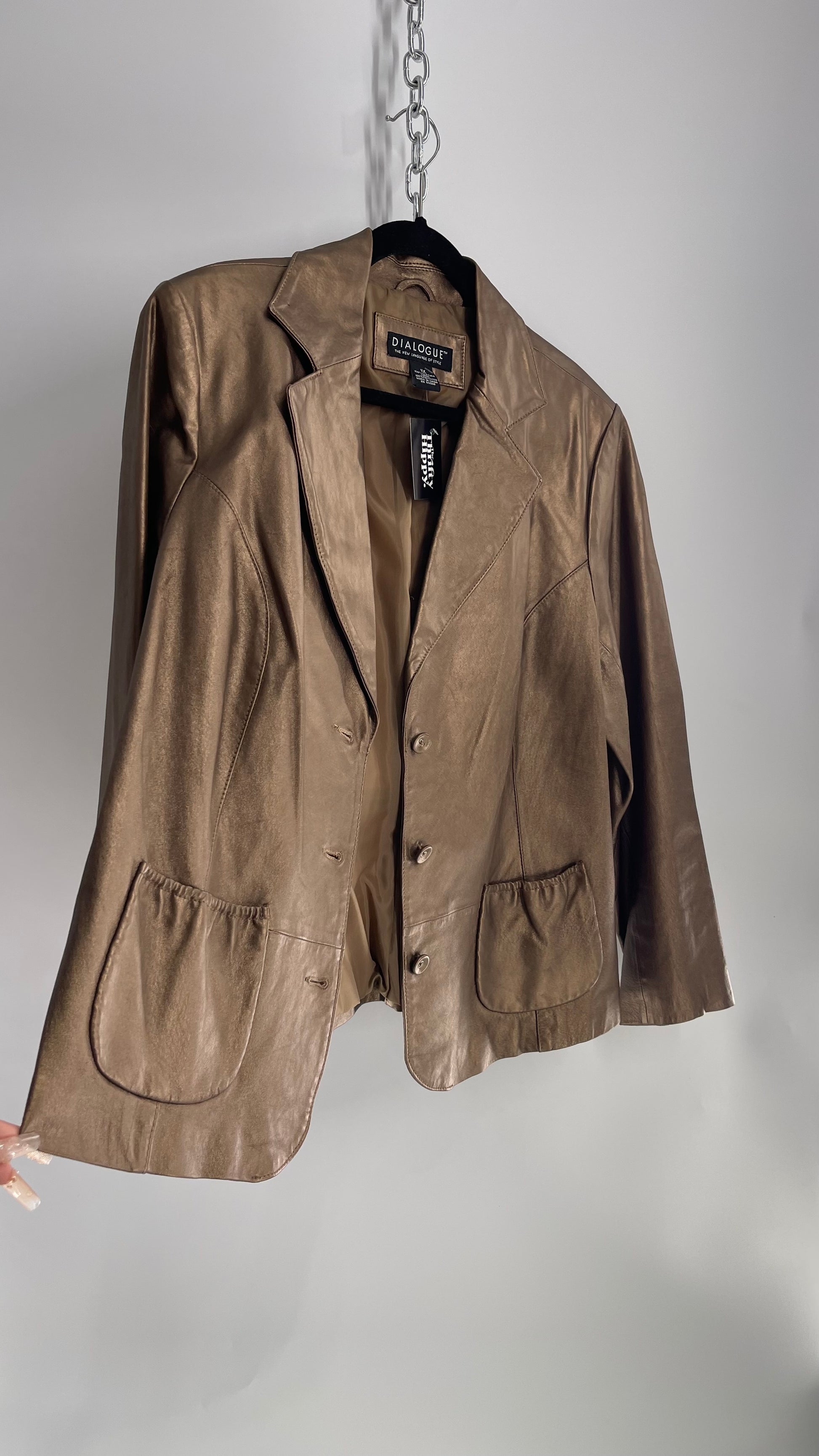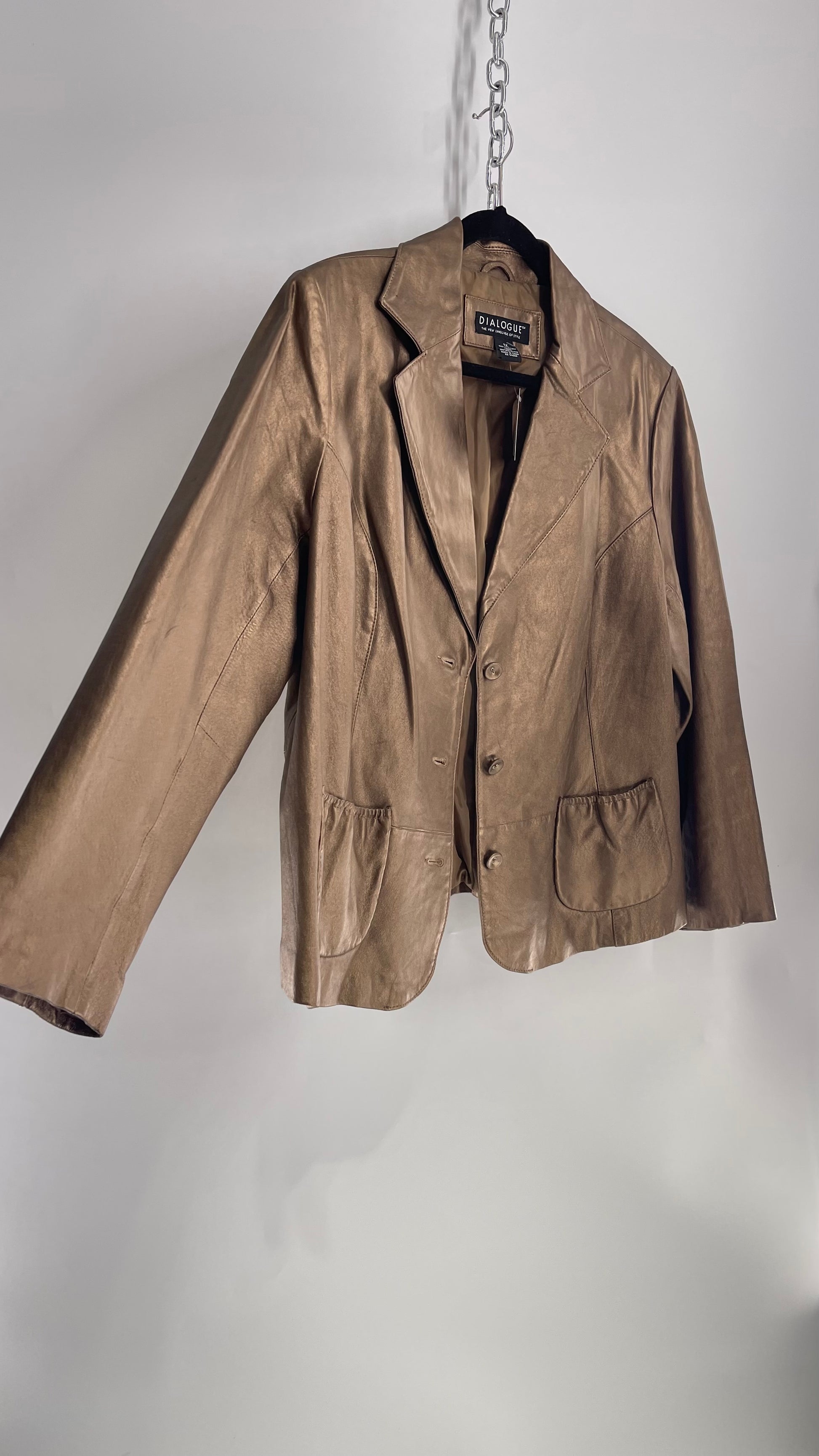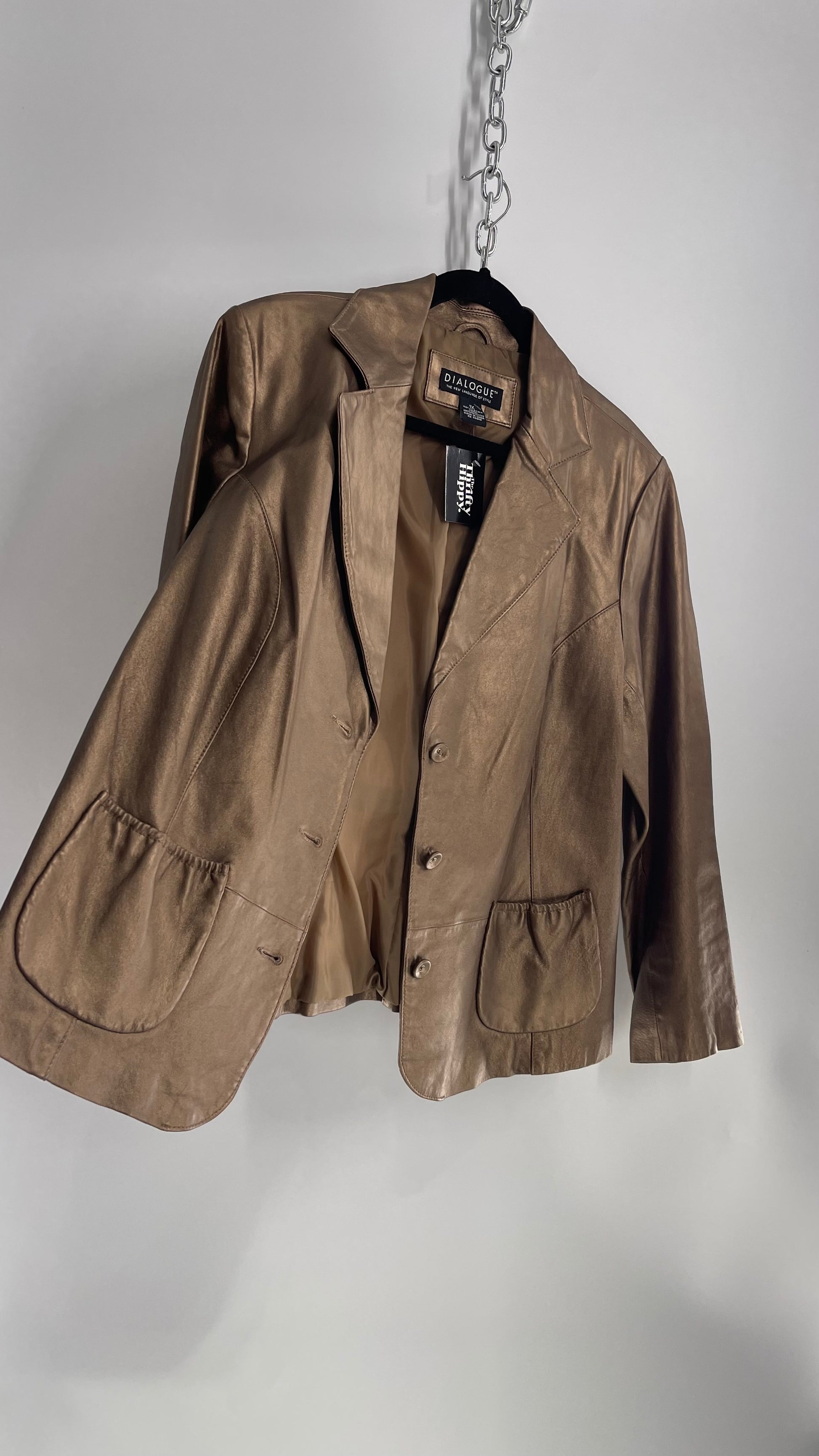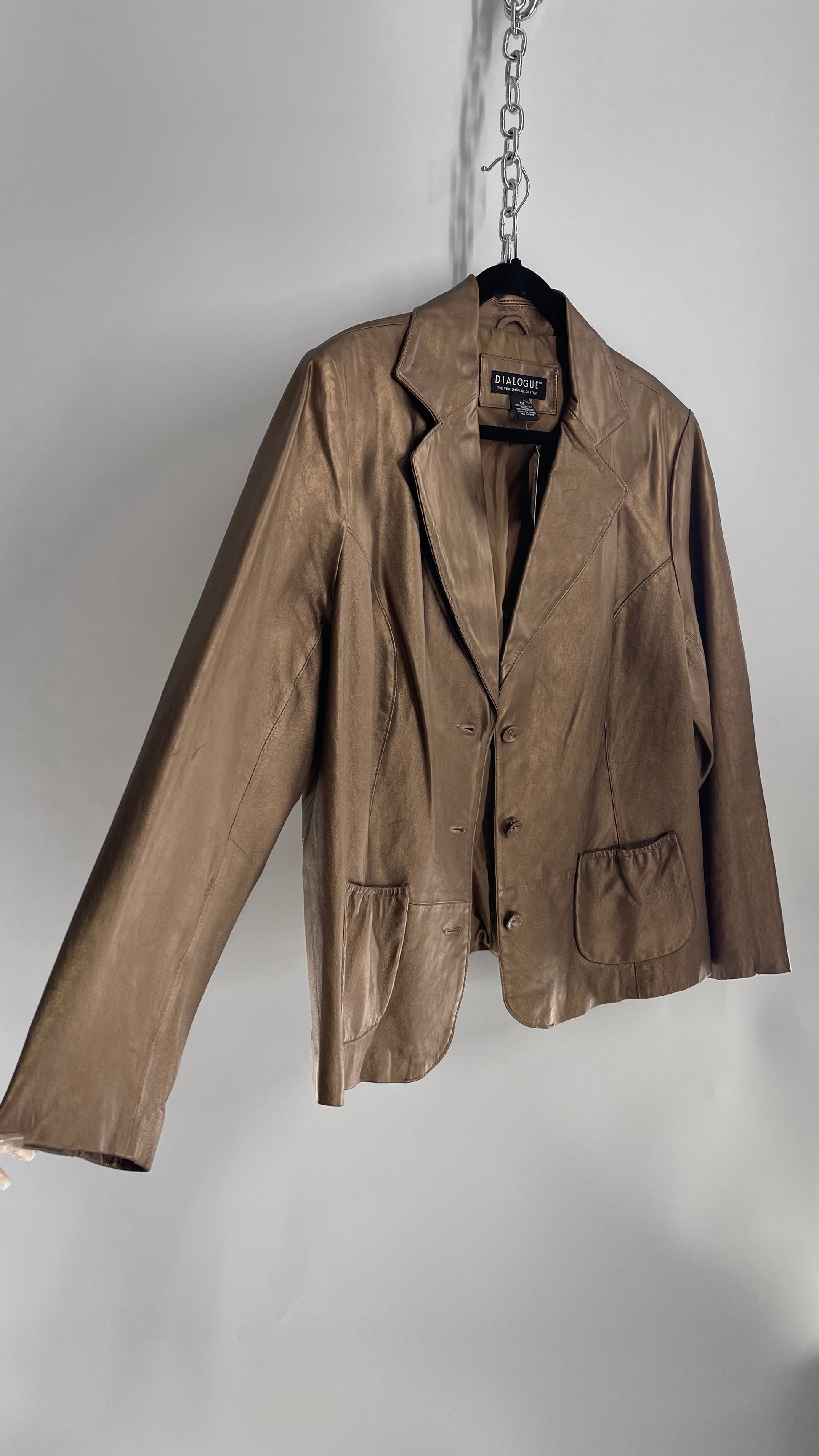 DIALOGUE Pearlescent Metallic Bronze Leather Blazer (XL)