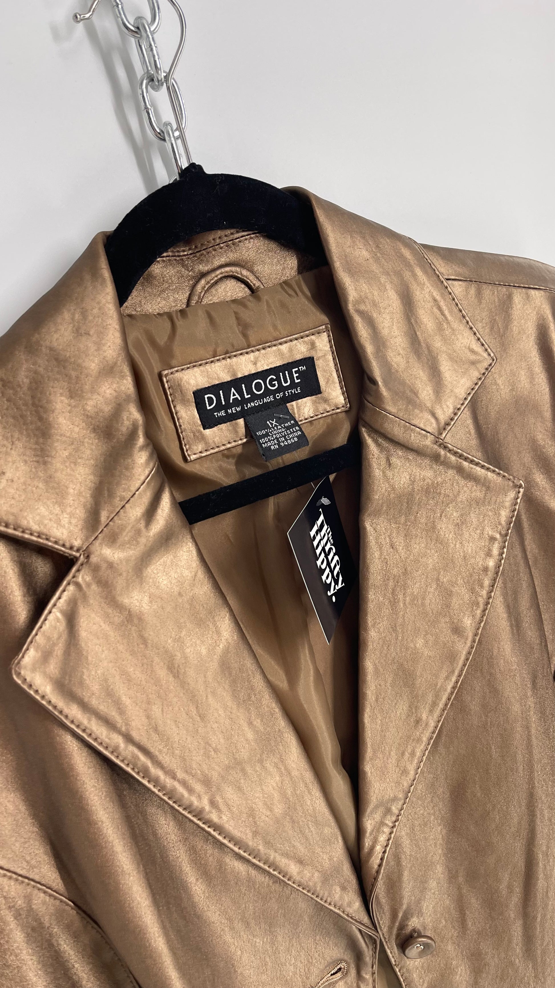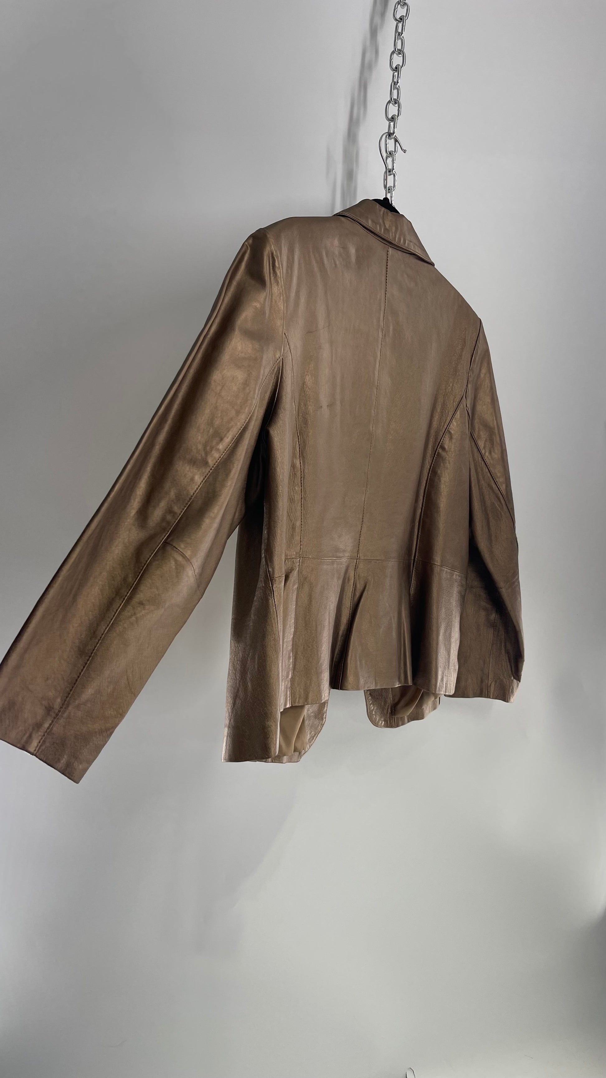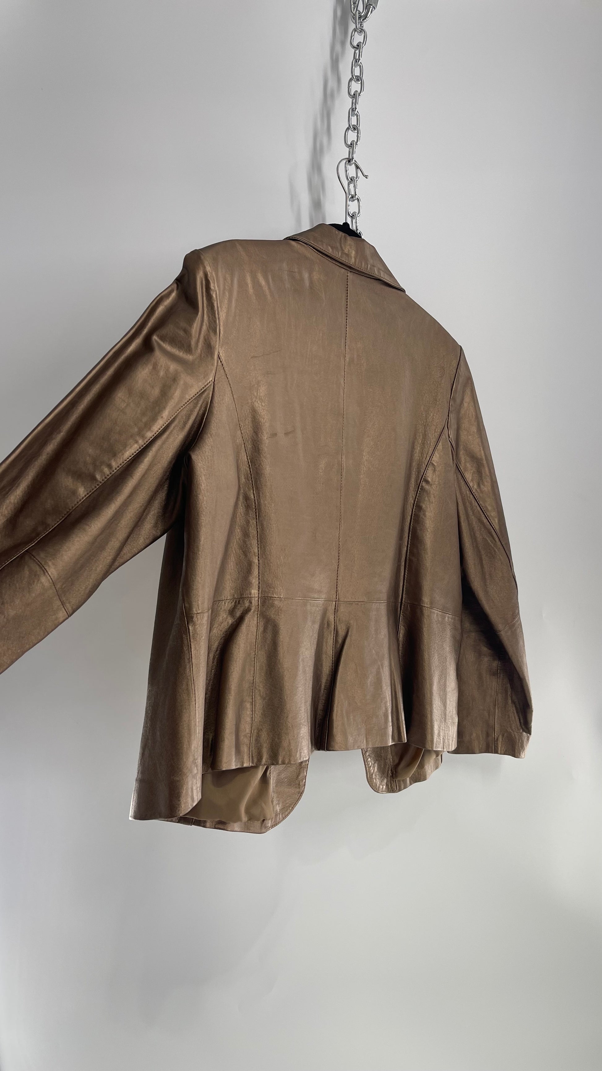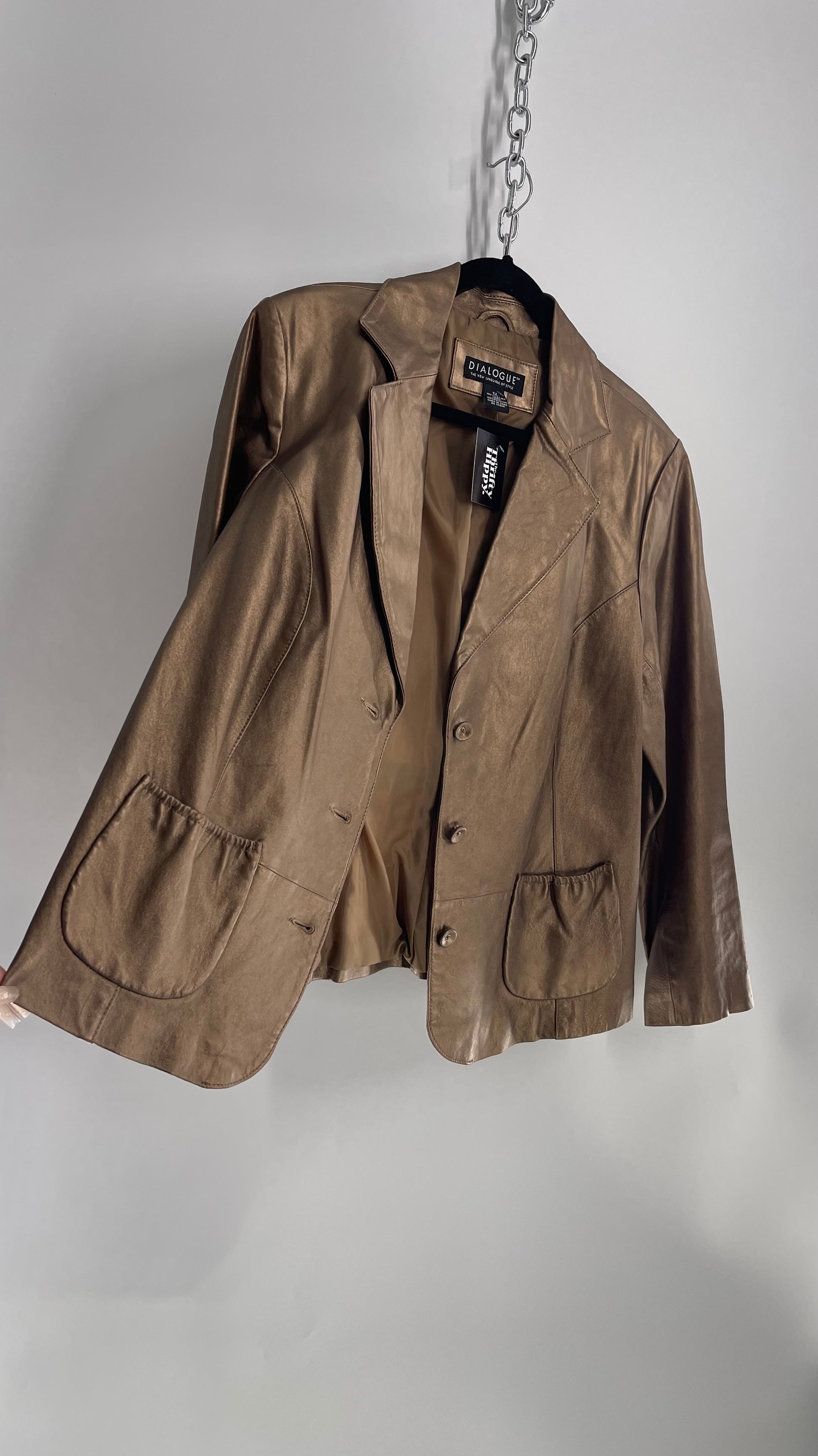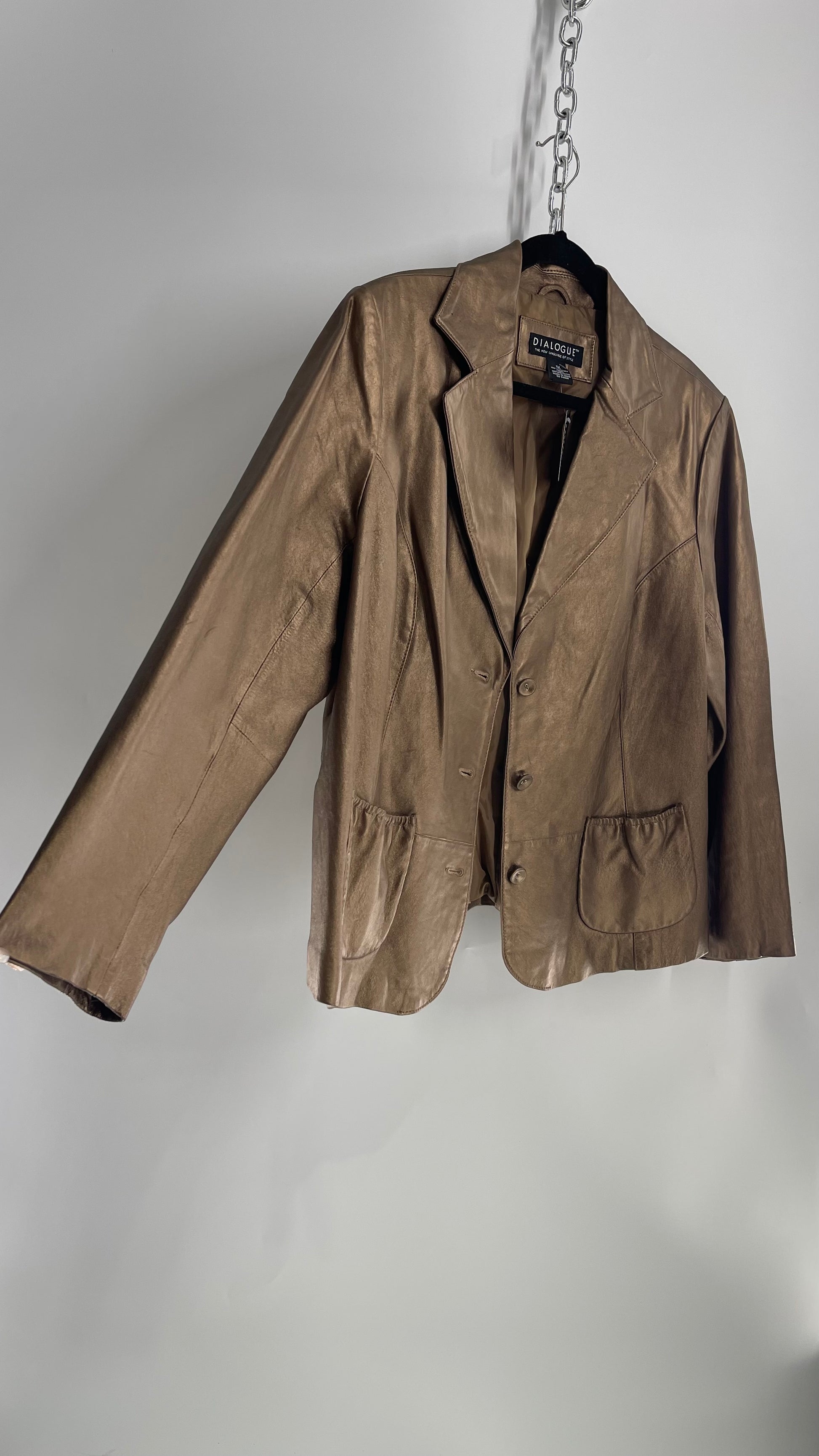 DIALOGUE Pearlescent Metallic Bronze Leather Blazer (XL)