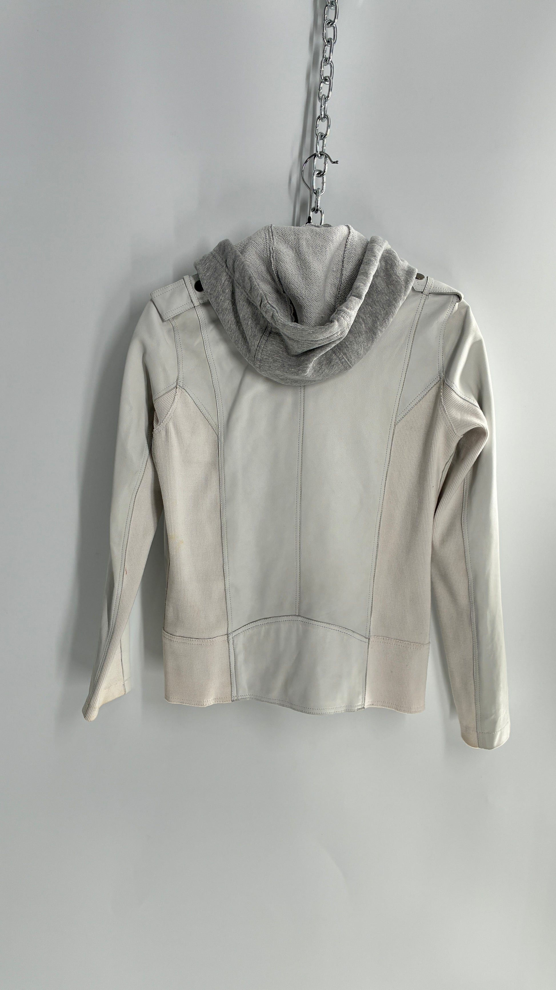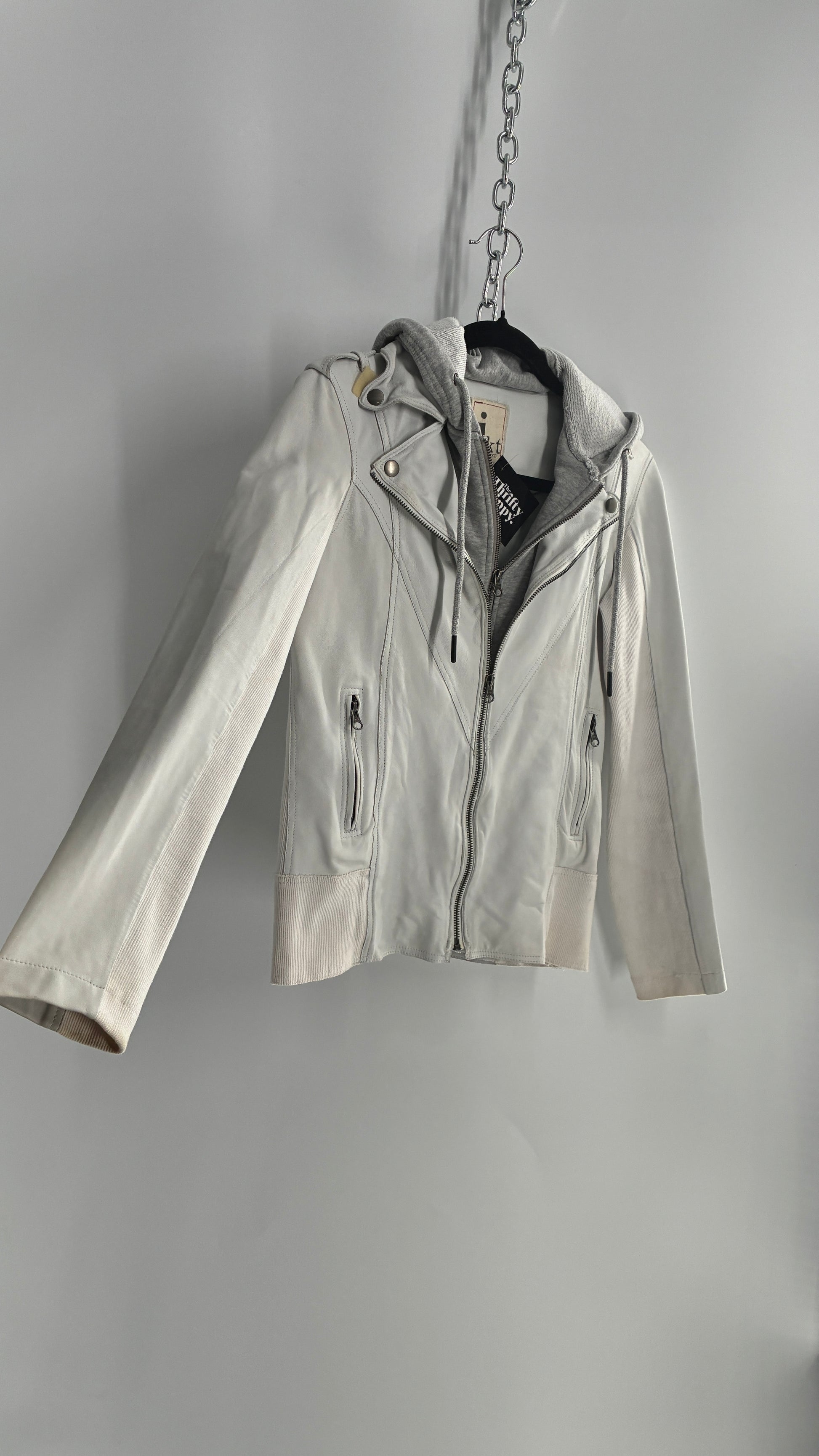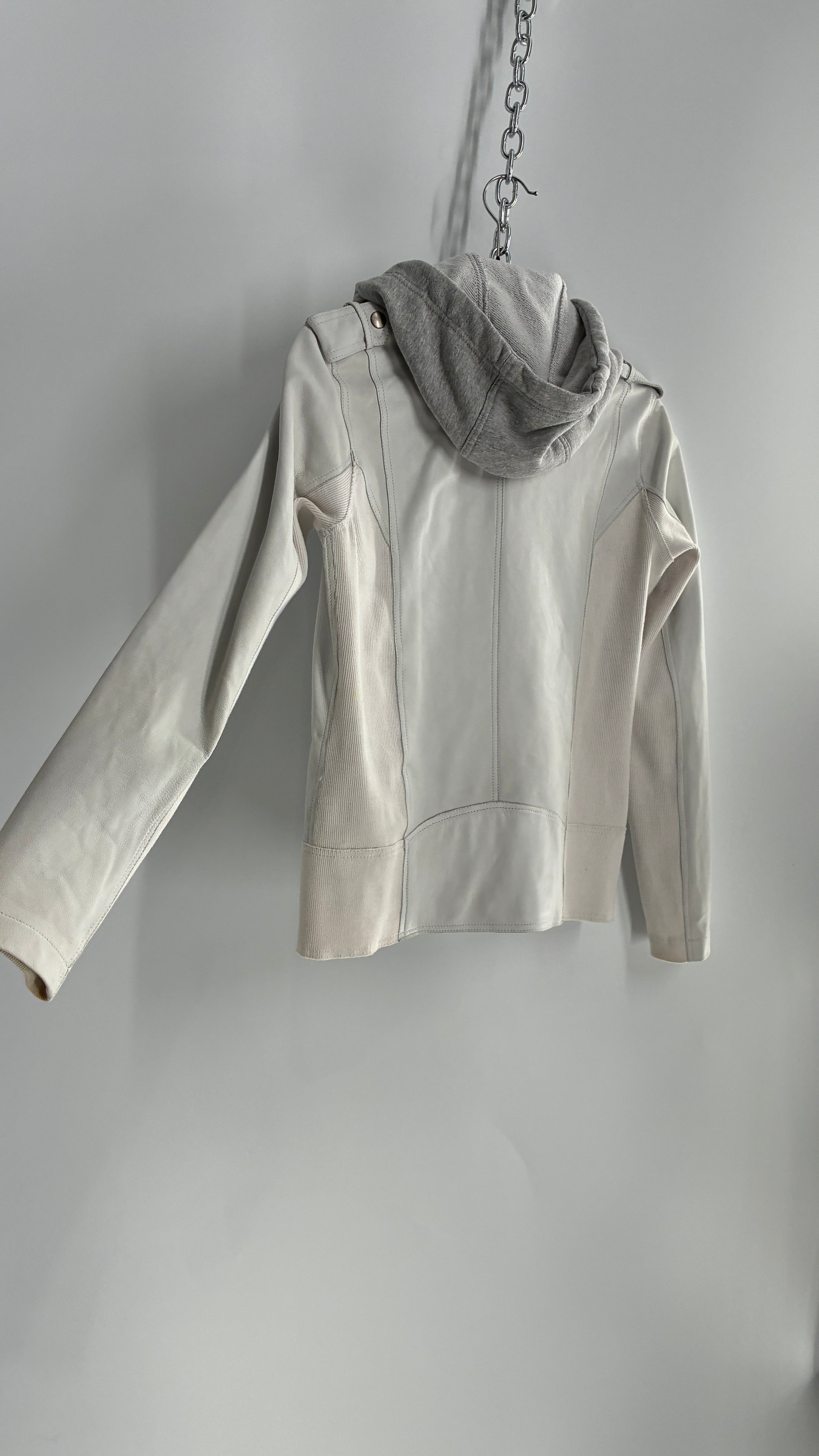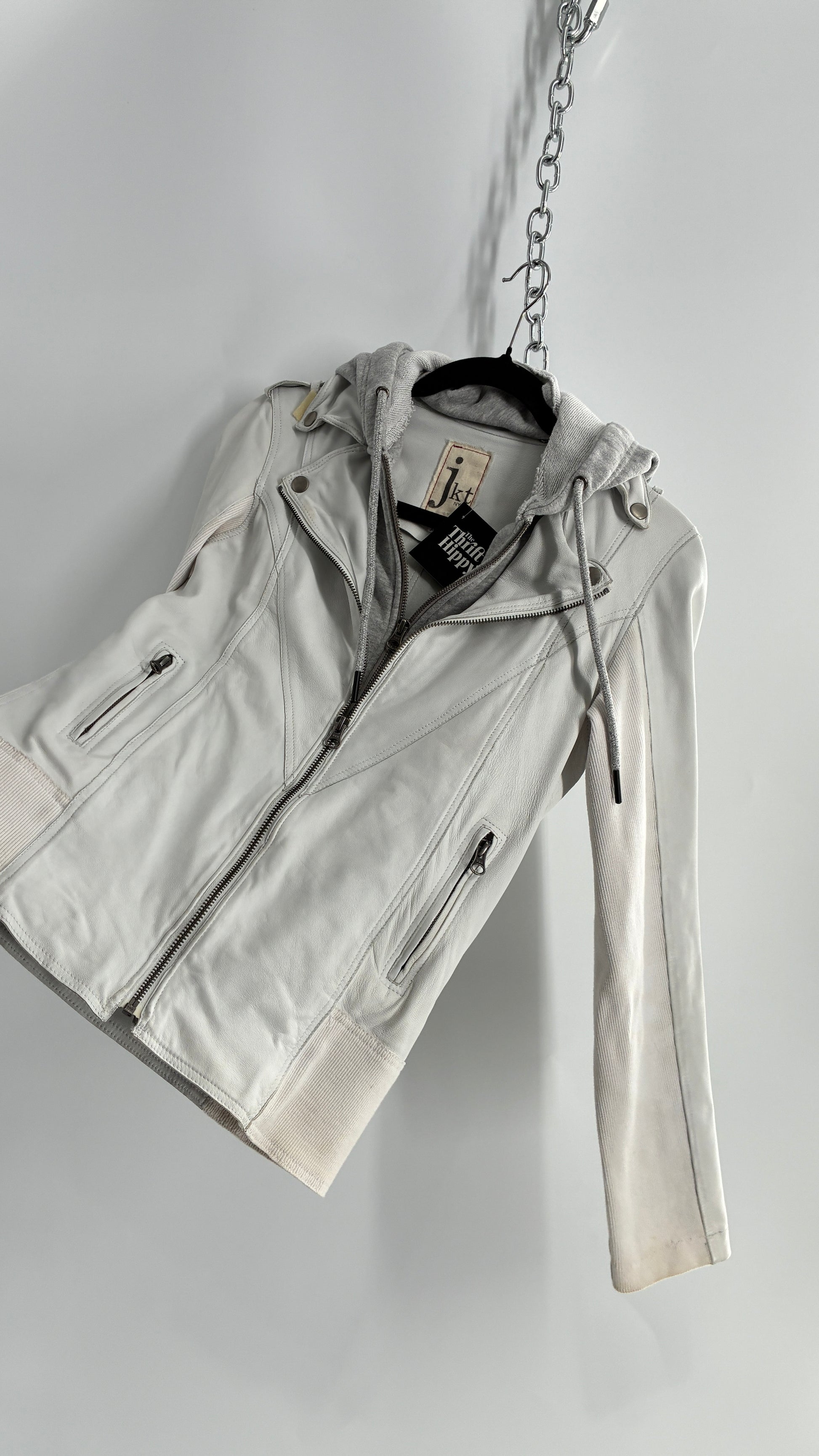 Jakett White Molly Burnished White Genuine Leather Double Layer Moto Jacket with Removable Grey Hoodie Insert (XS)