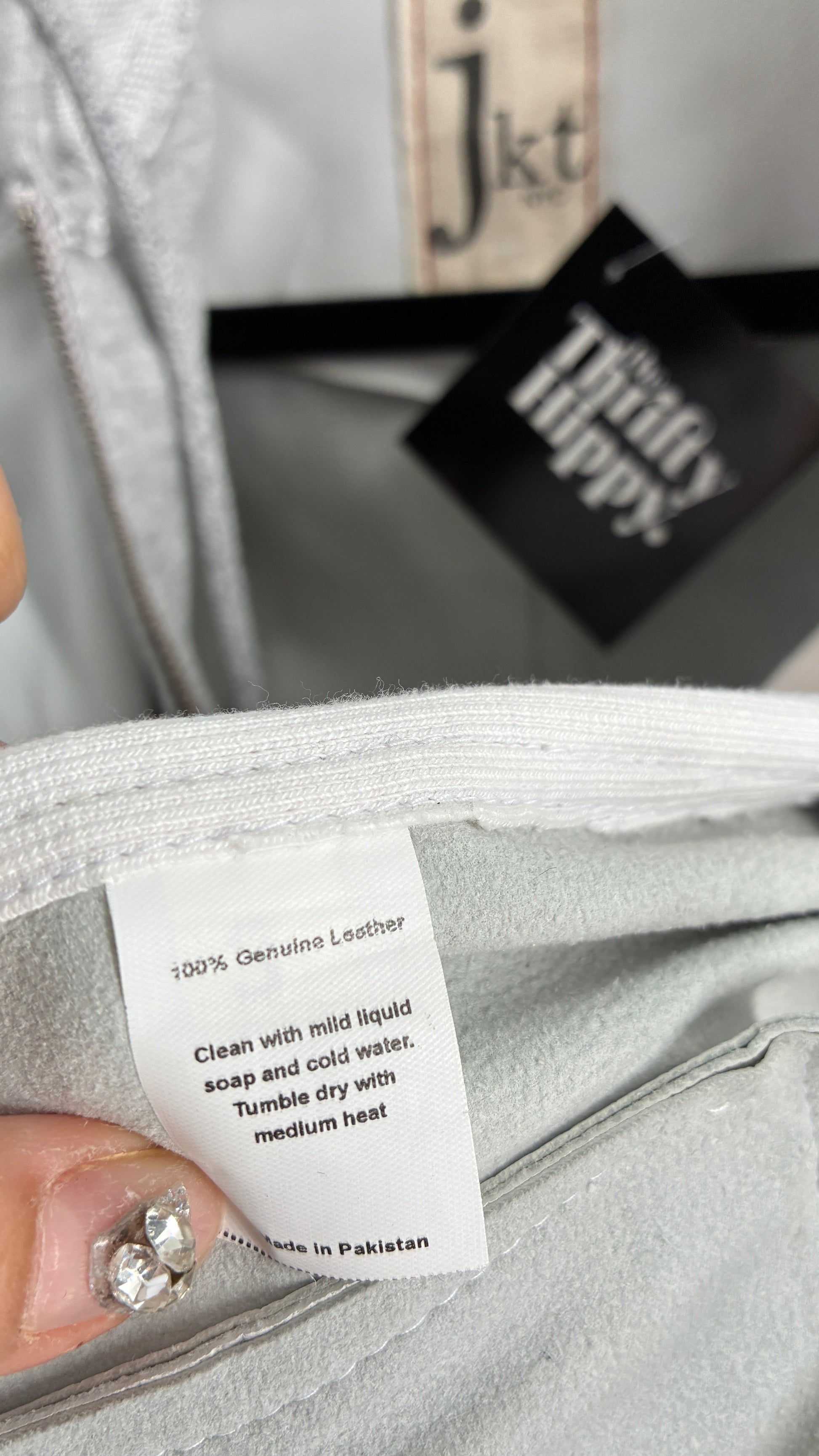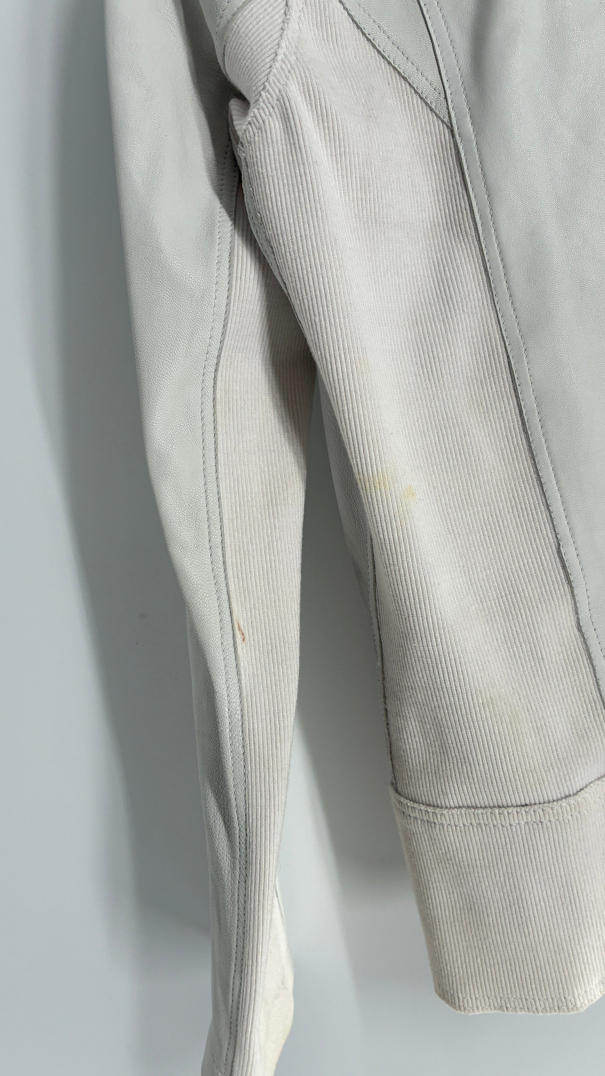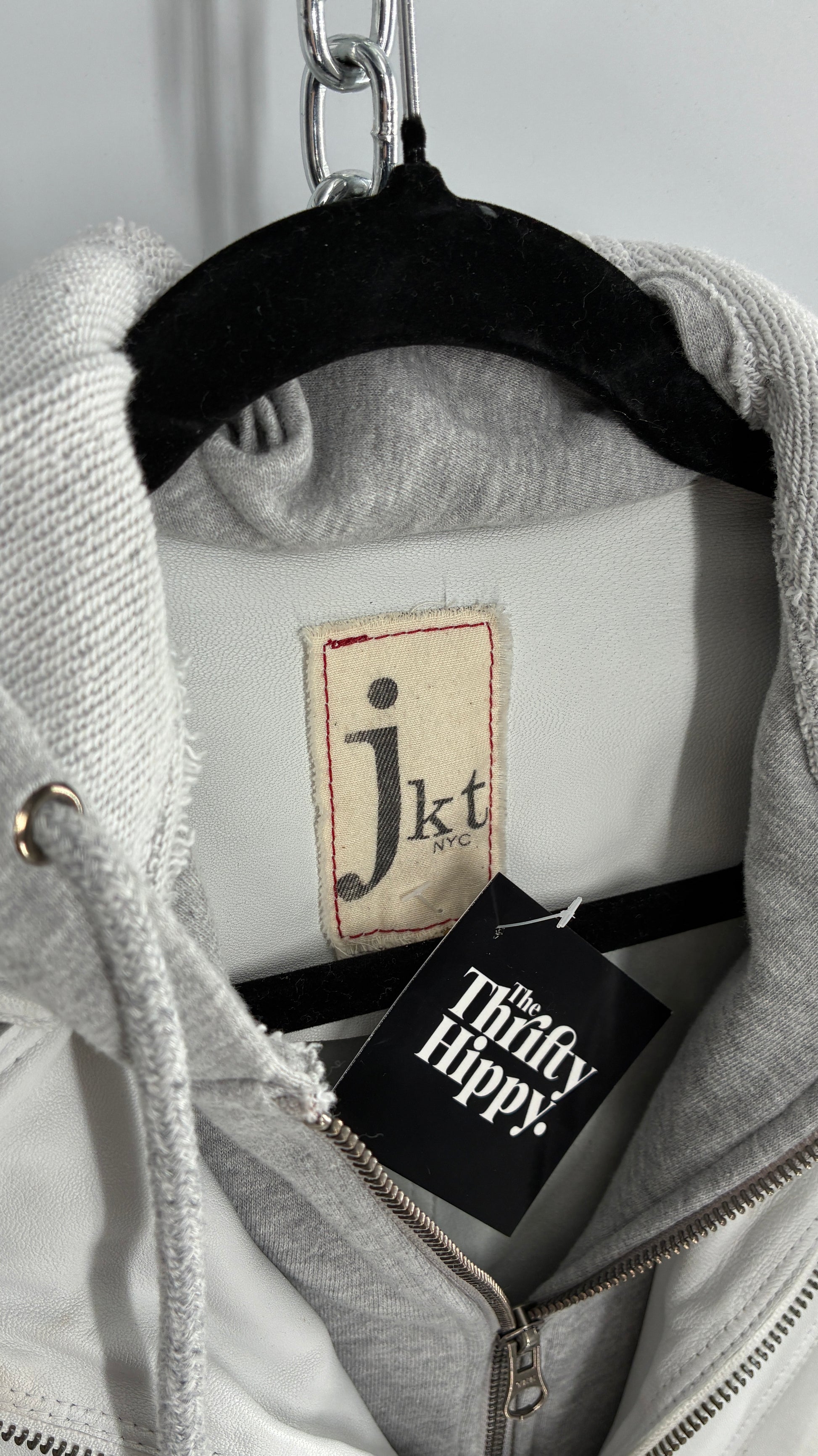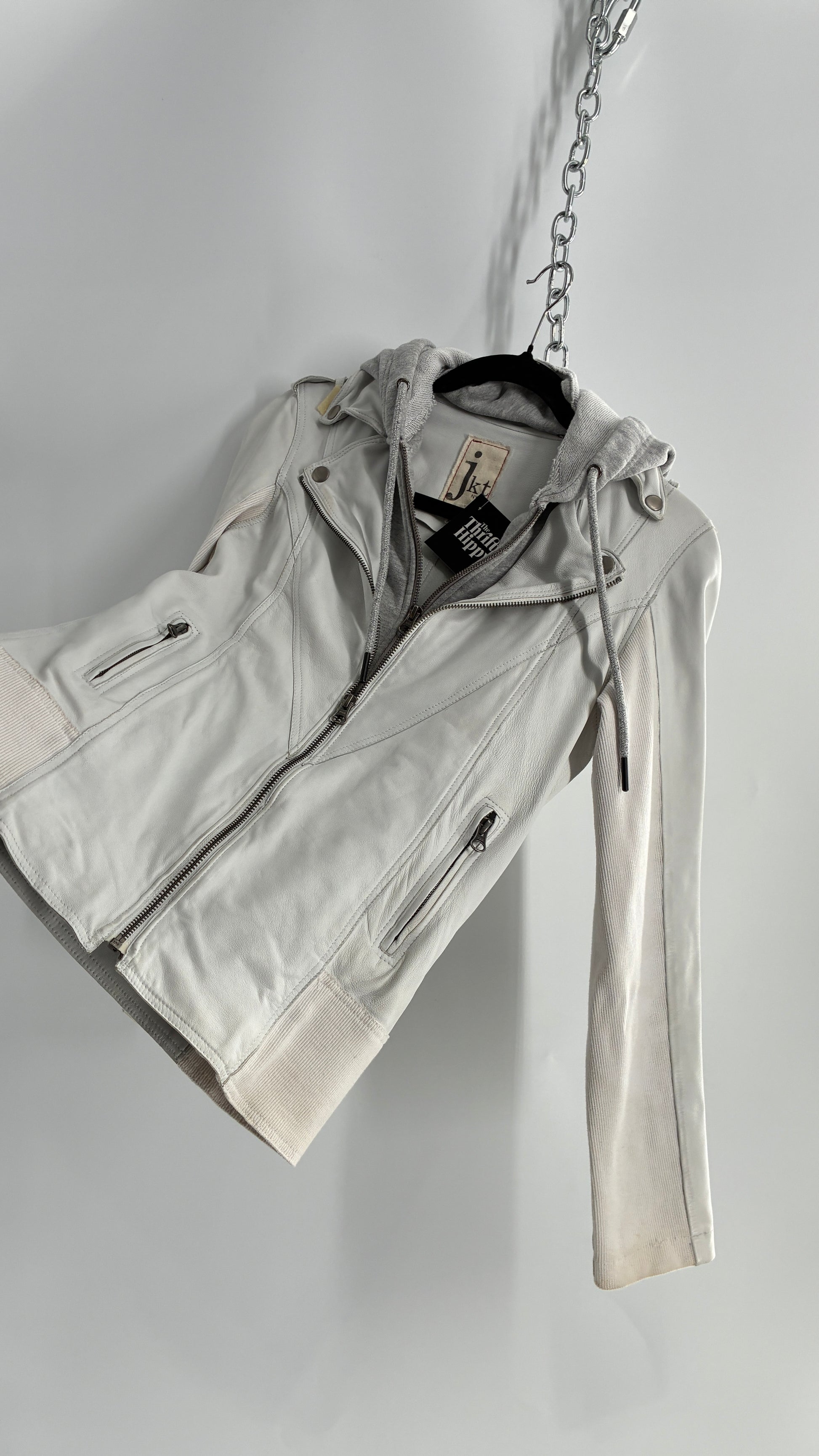 Jakett White Molly Burnished White Genuine Leather Double Layer Moto Jacket with Removable Grey Hoodie Insert (XS)