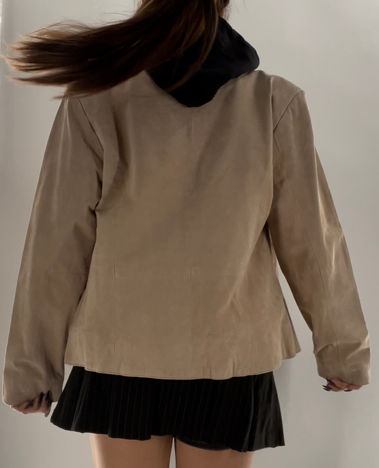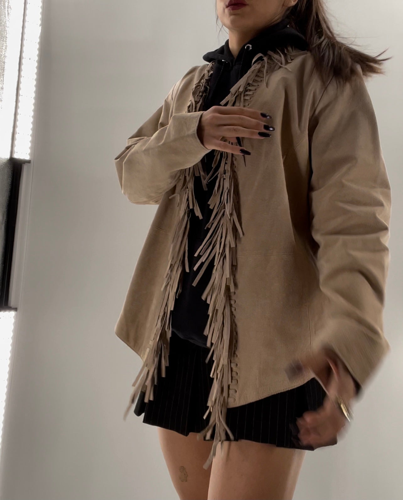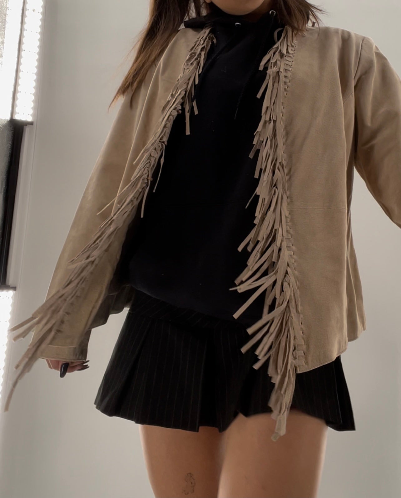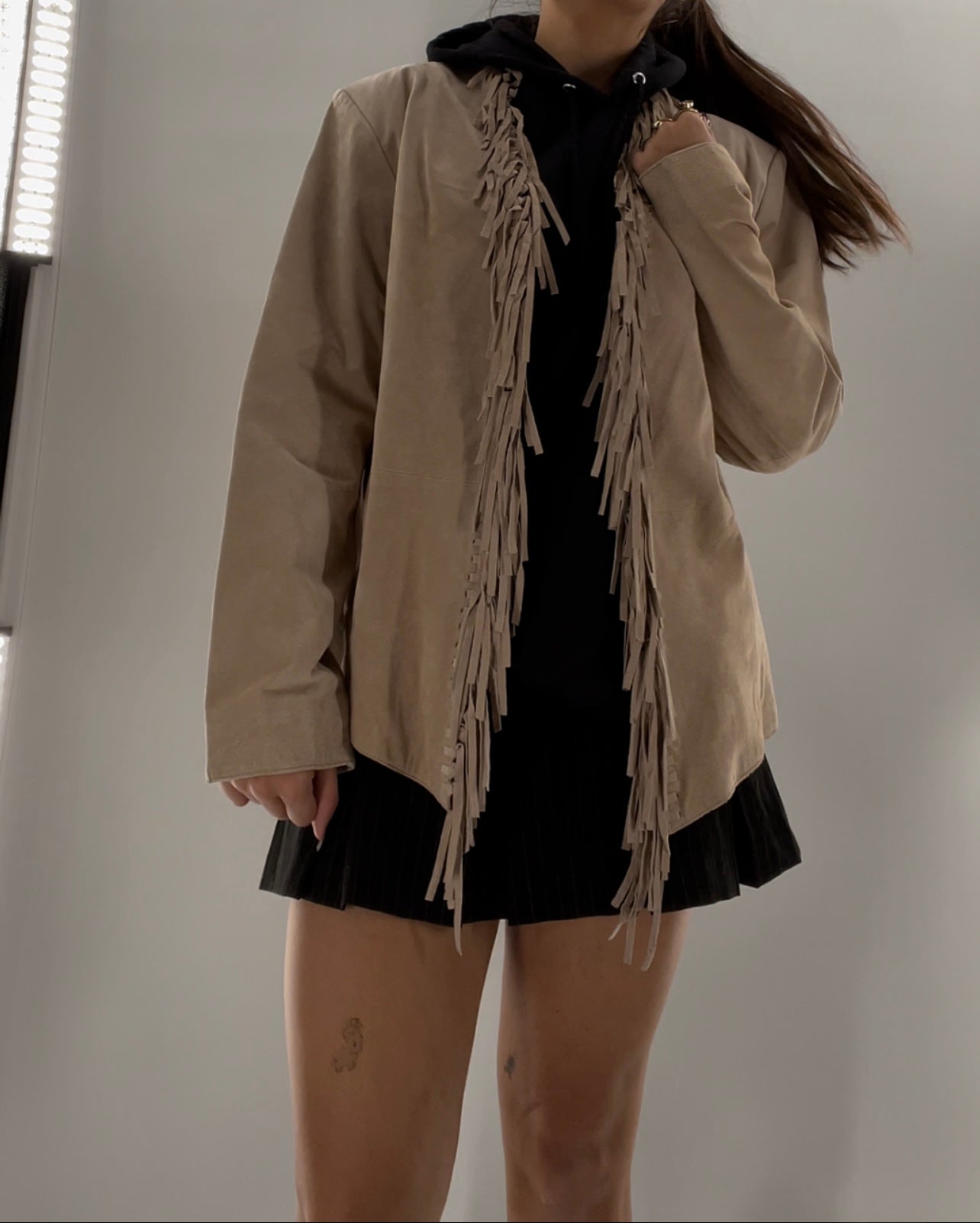 Deadstock Vintage DIALOGUE beige genuine suede leather jacket lined with suede fringe and tags attached