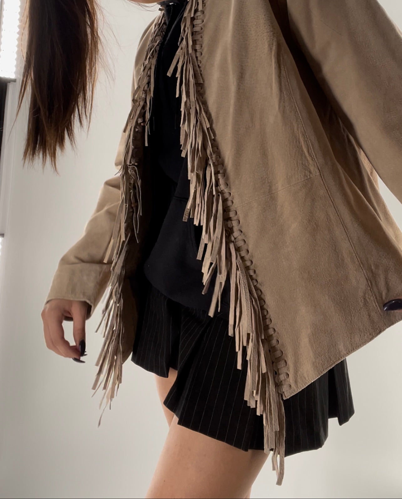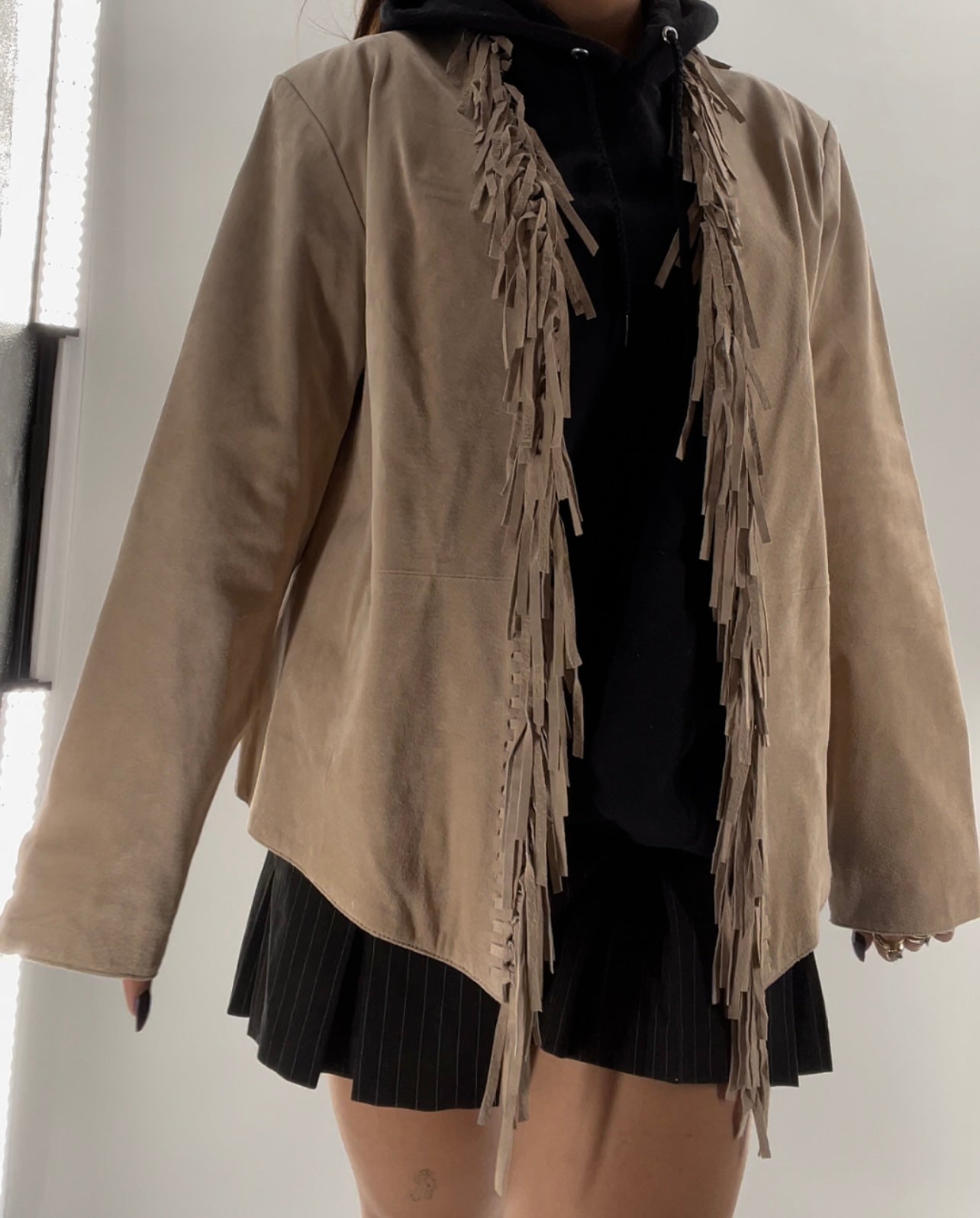 DIALOGUE Vintage Beige Suede Fringe Jacket (Large)