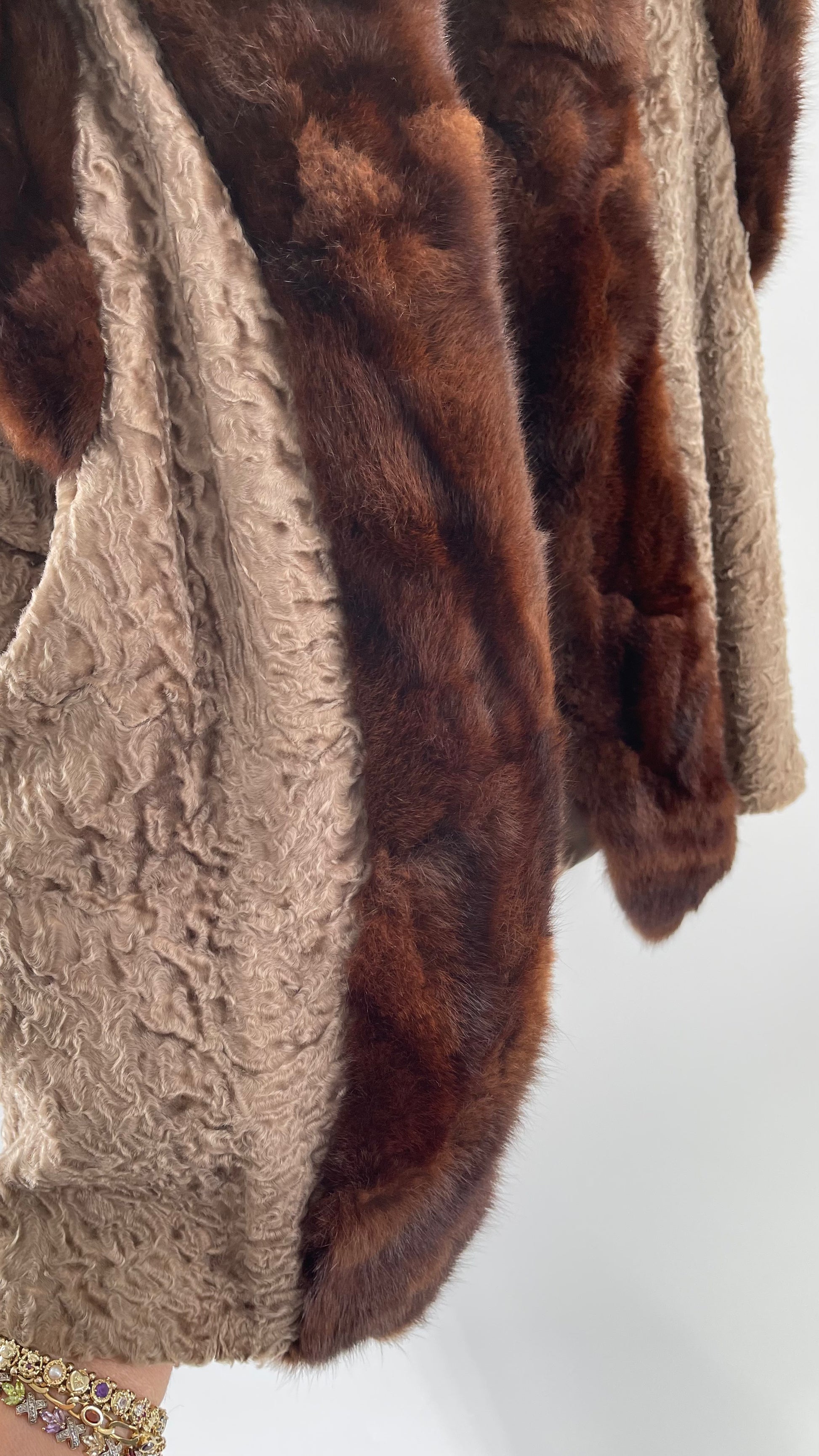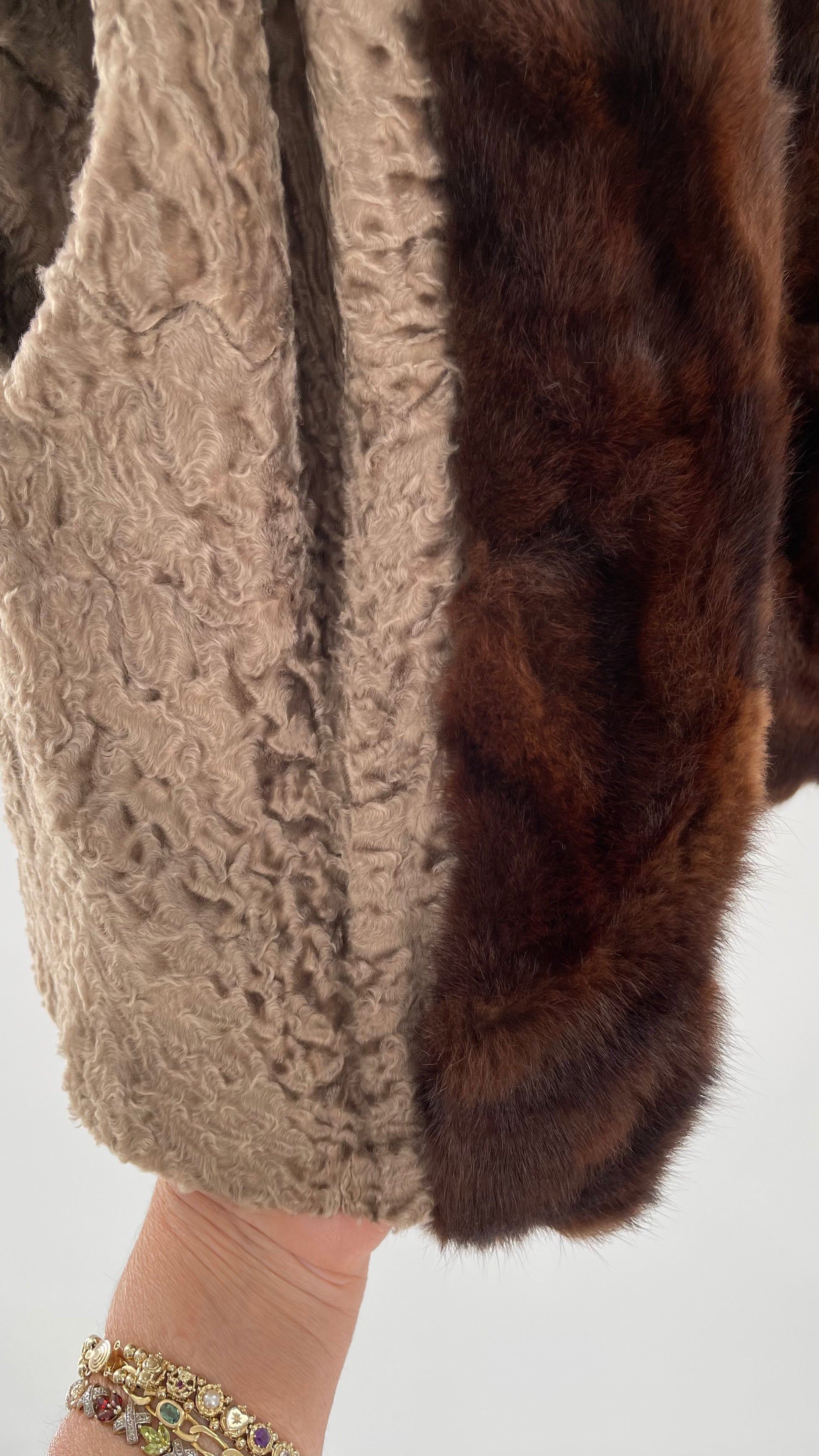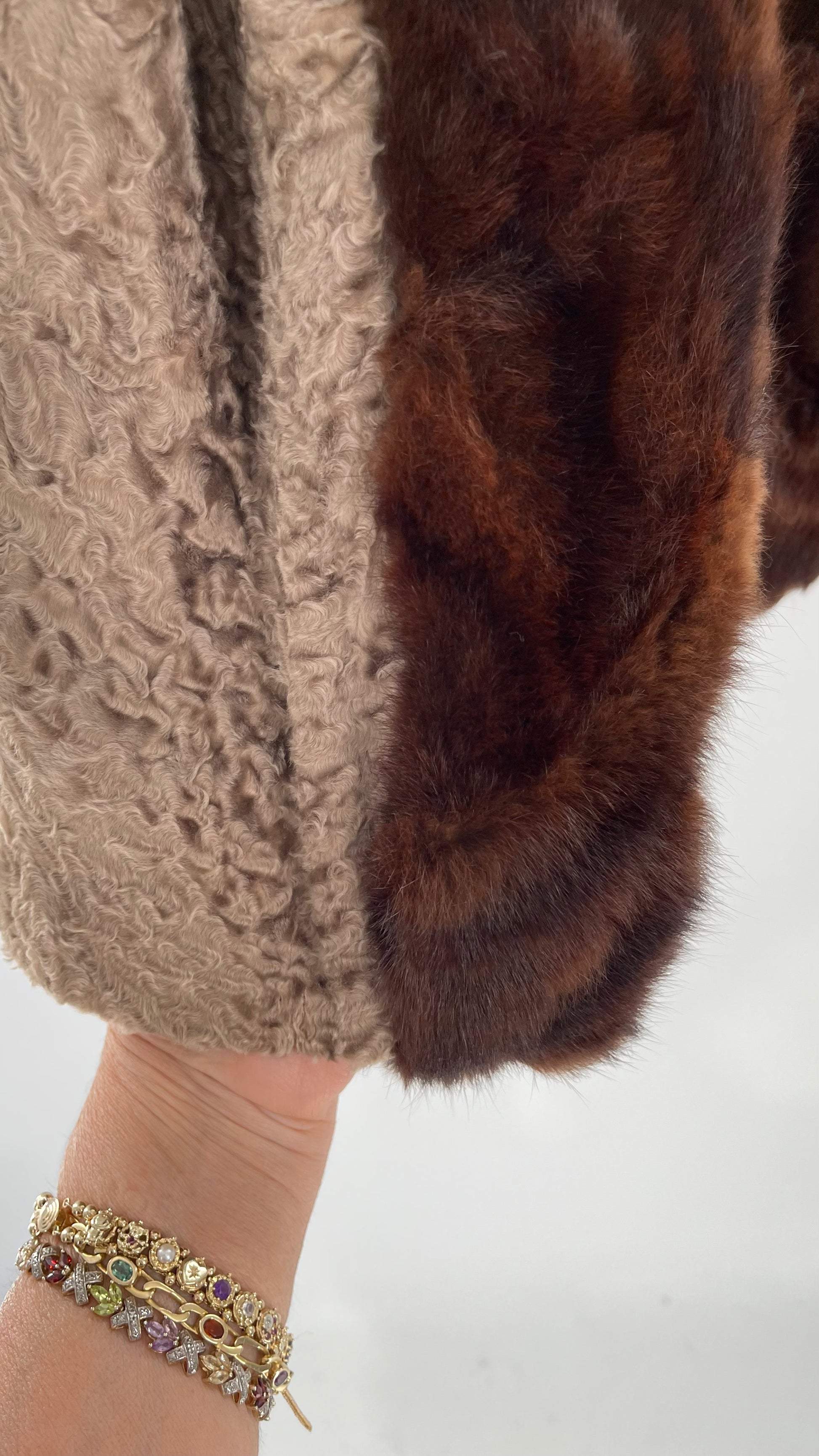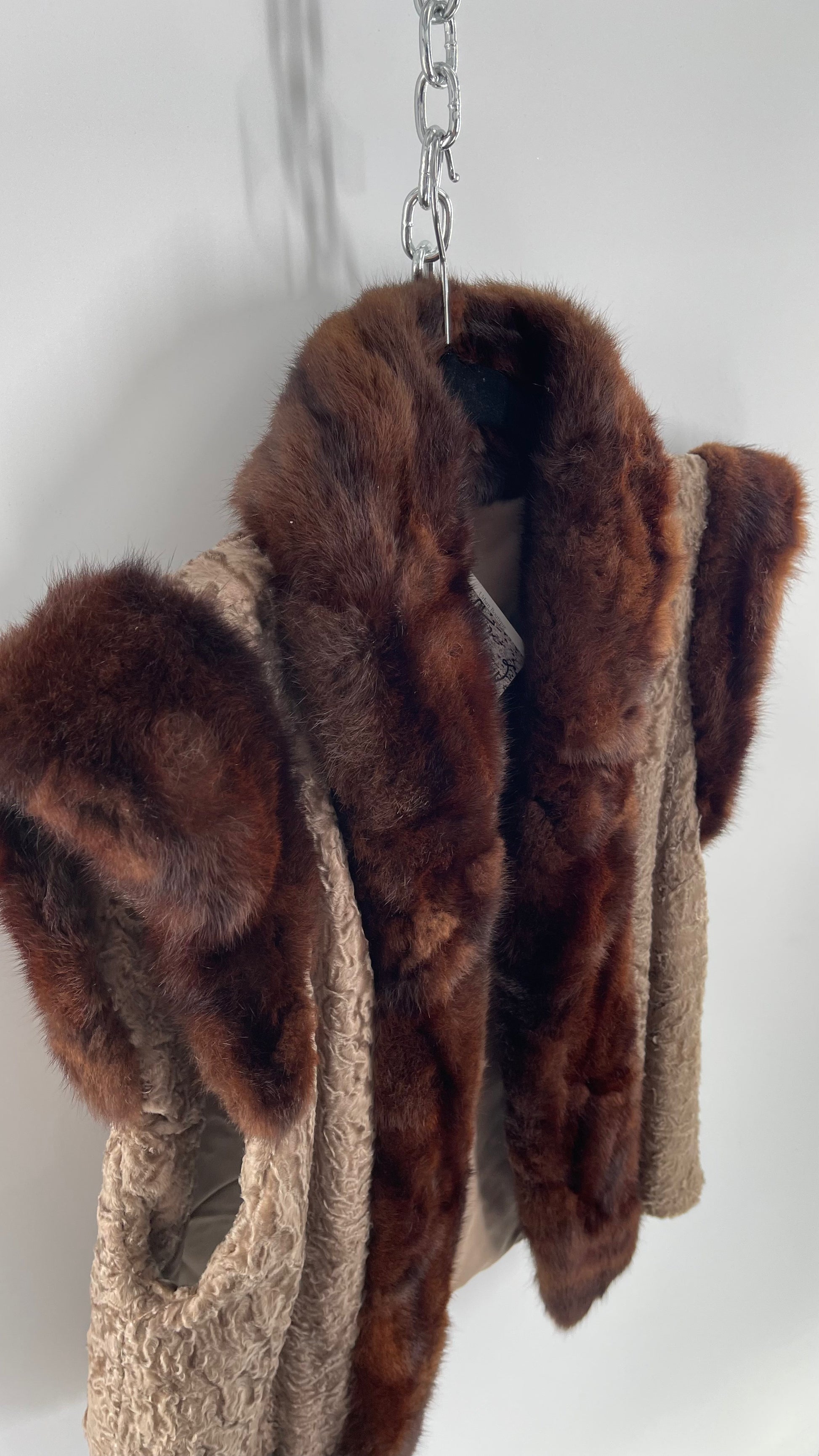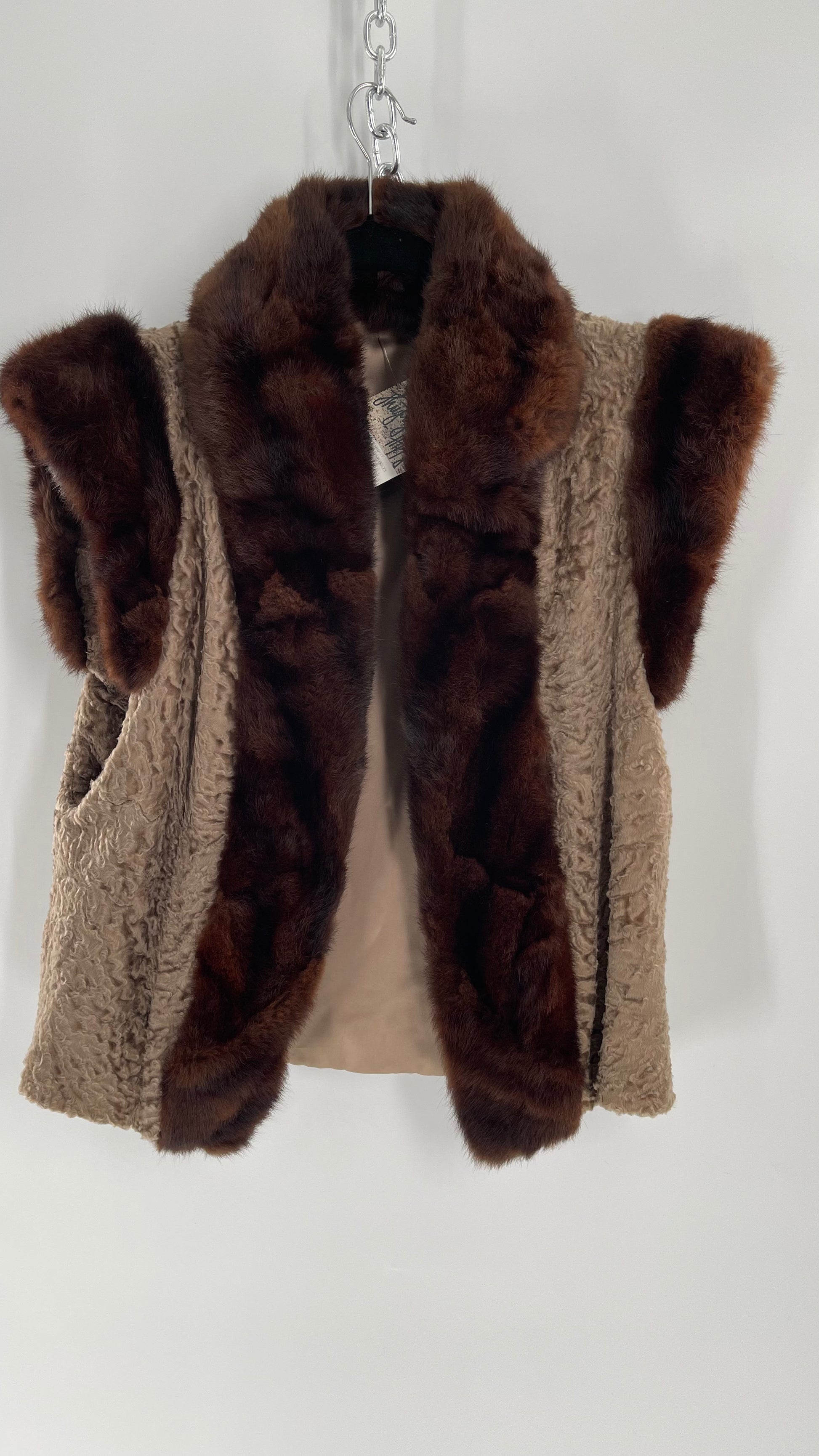 Vintage Genuine Fur Vest Handmade with what appears to be sheared, wavy lamb fur body and contrasting fur trim