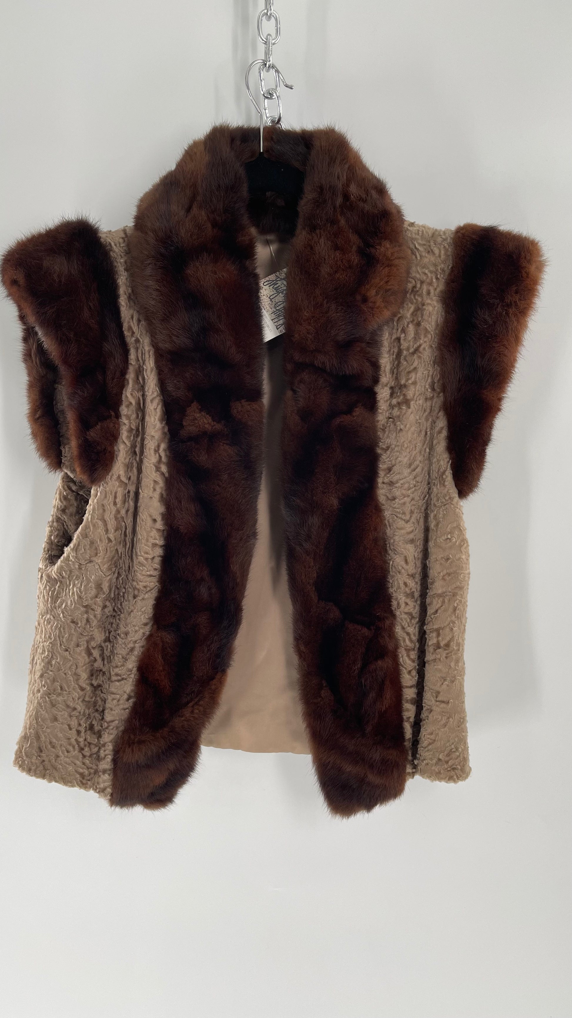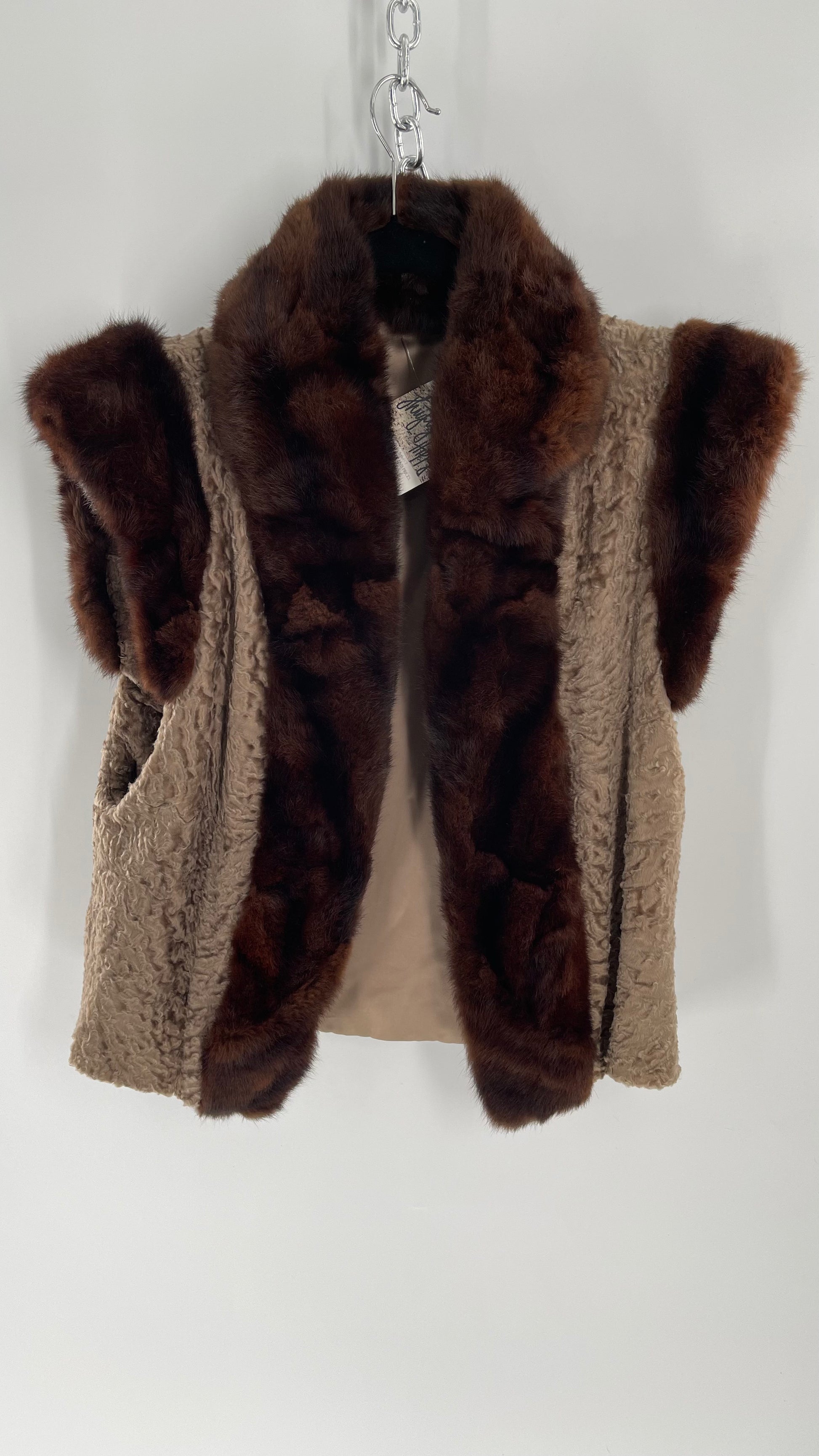 Vintage Hand Made Genuine Contrast Fur Vest (S/M)