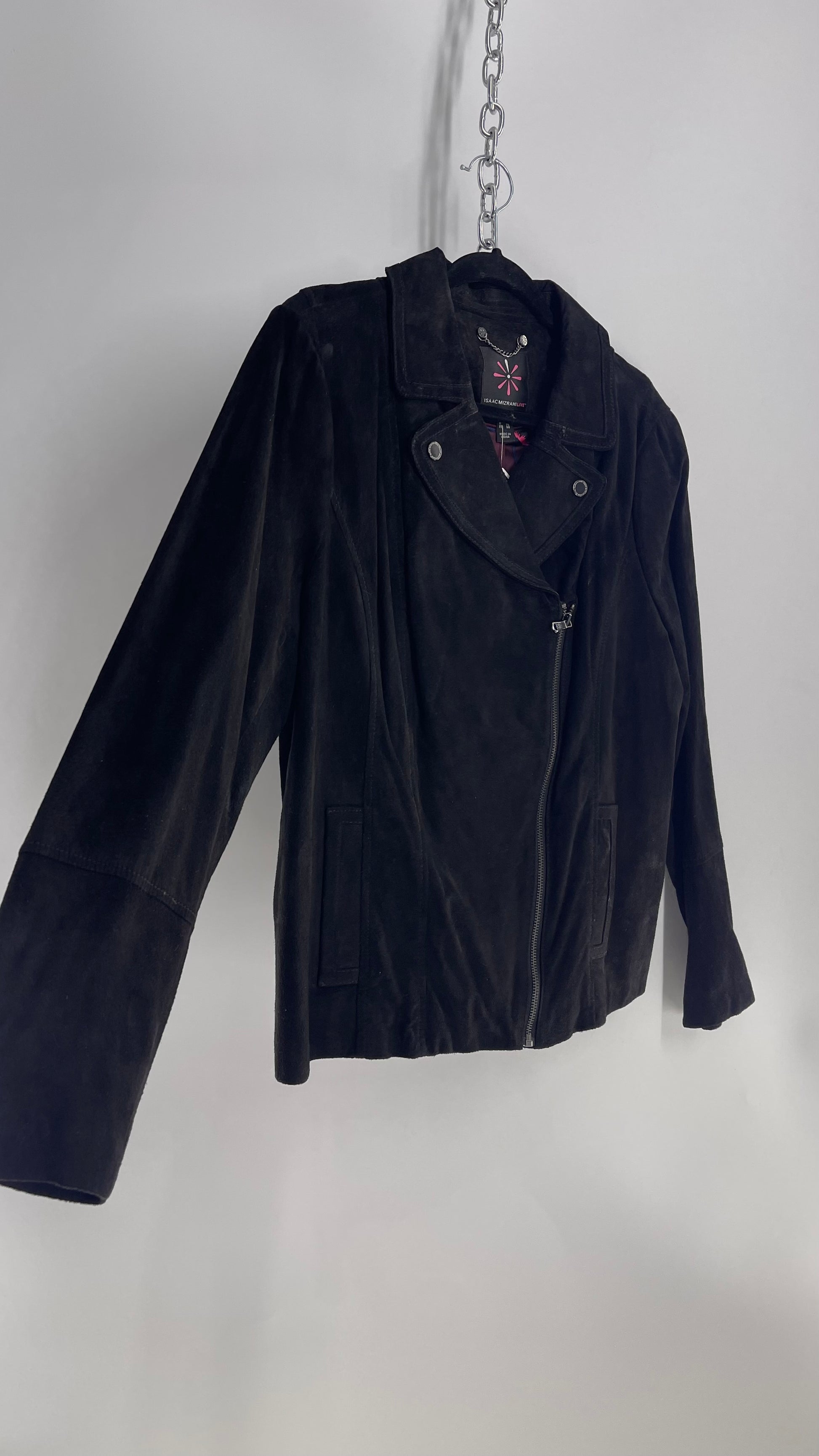 Isaac Mizrah Black Suede Leather Motorcycle Jacket
