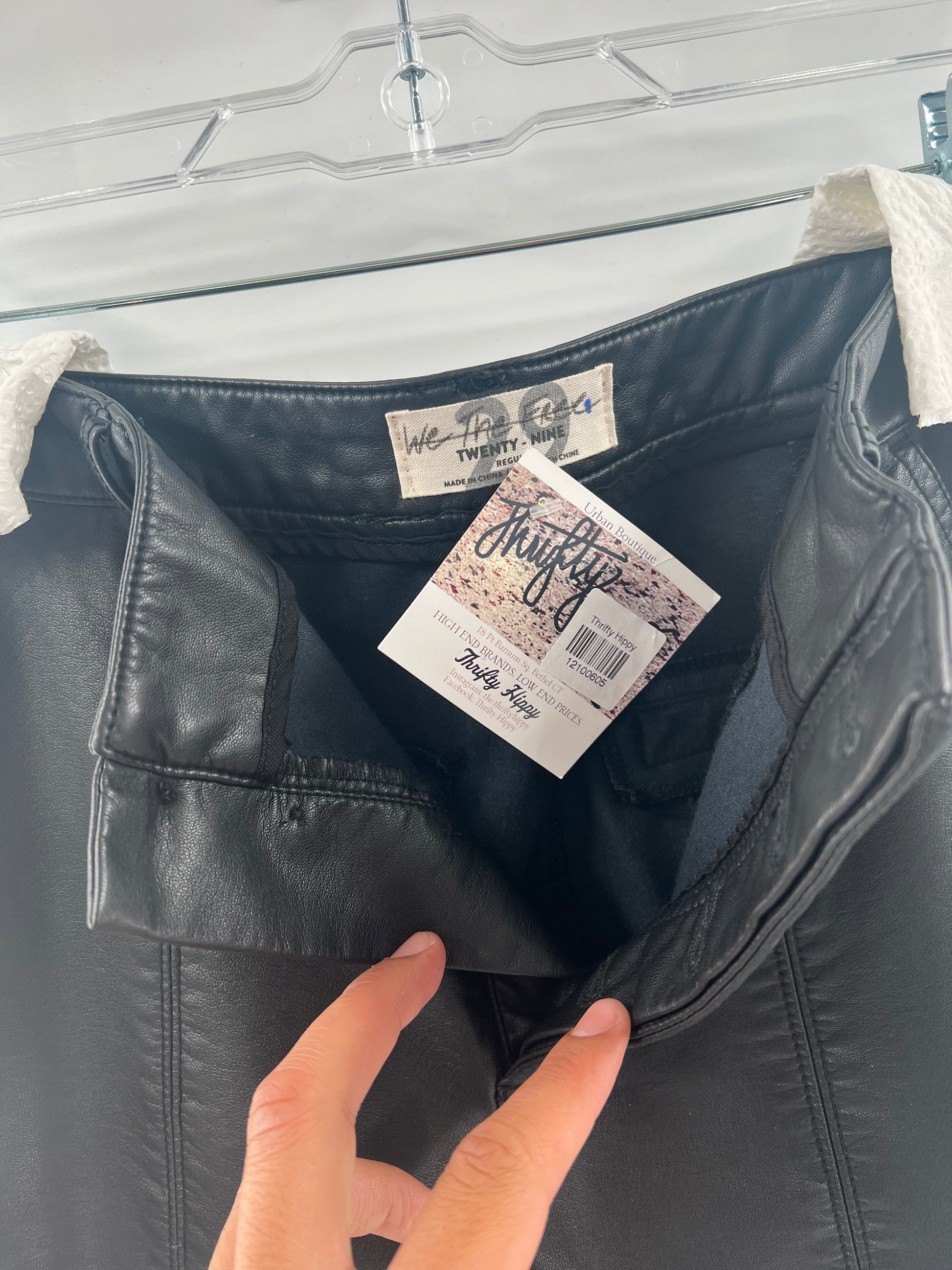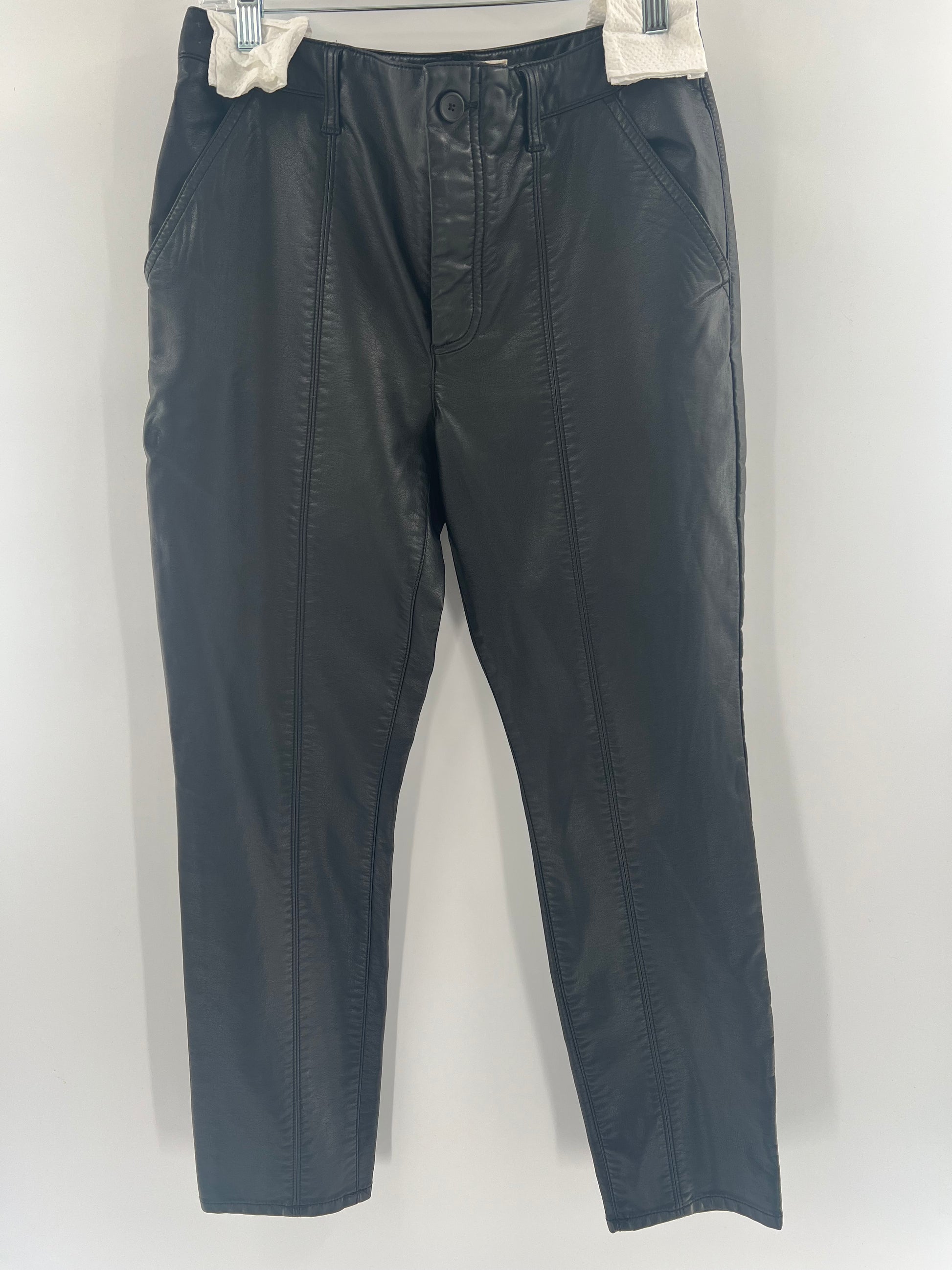Free People Black Faux Leather Regular Button Up Pants (Size 29)