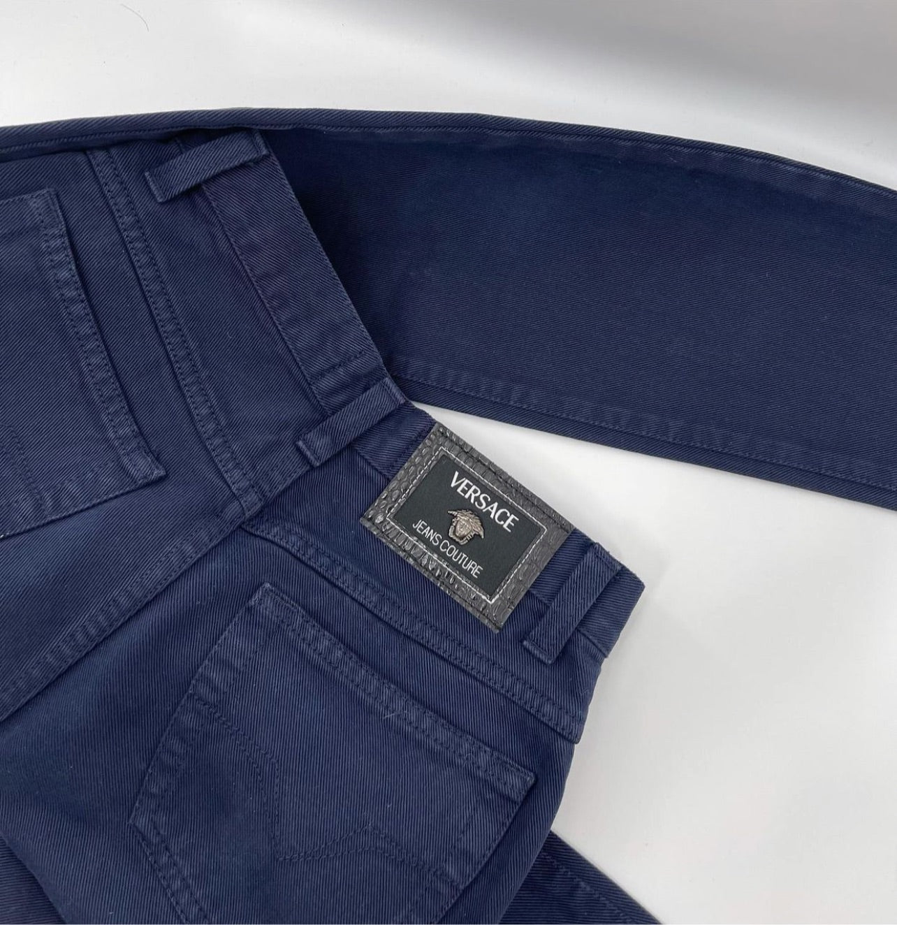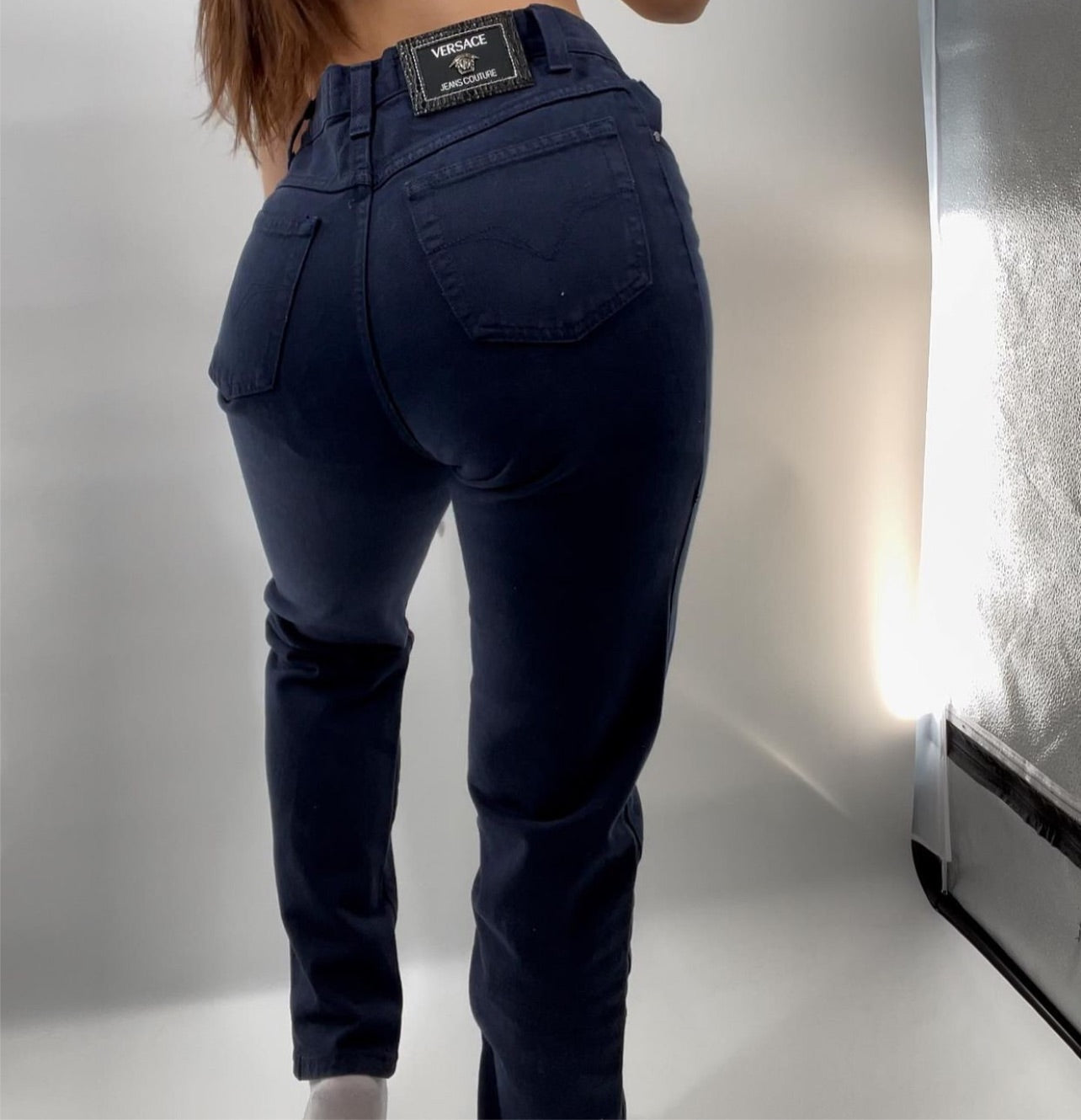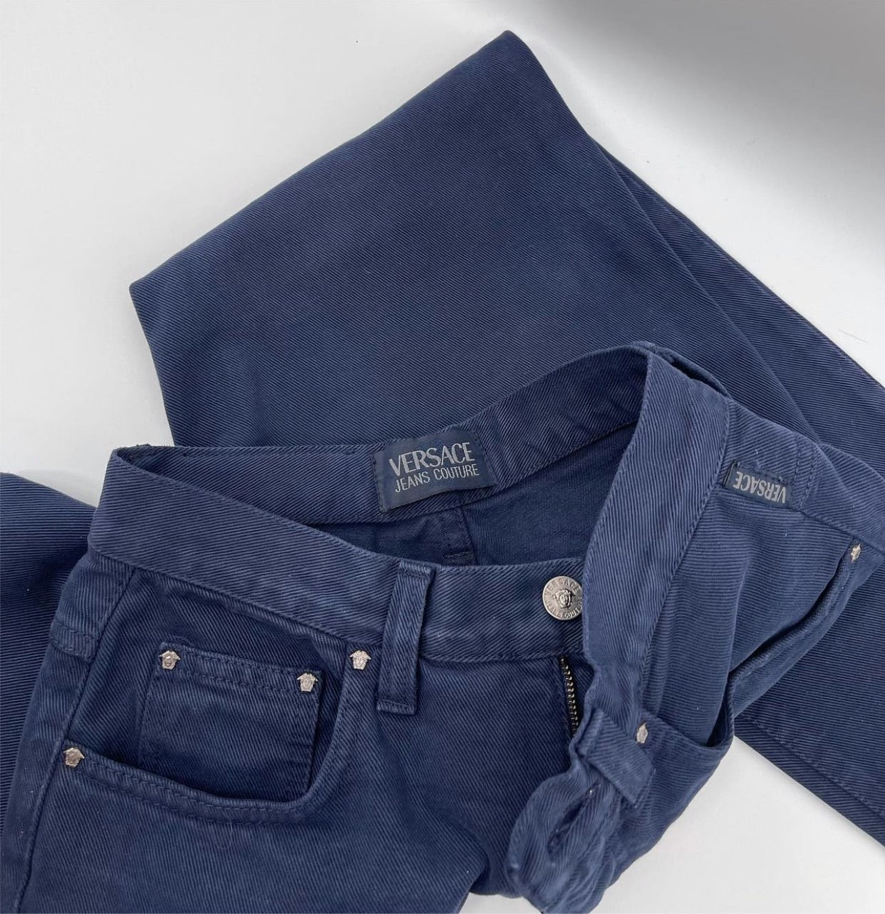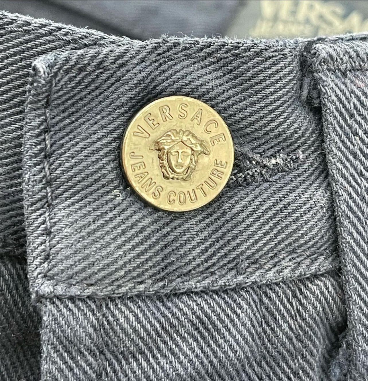 A rare, vintage find that has us drooling, these Versace bottoms have it allll… the coveted high rise inseam, the iconic, branded jacron, the Medusa metal details, the tight thigh-loose calf fit… these jeans are a once in a lifetime find