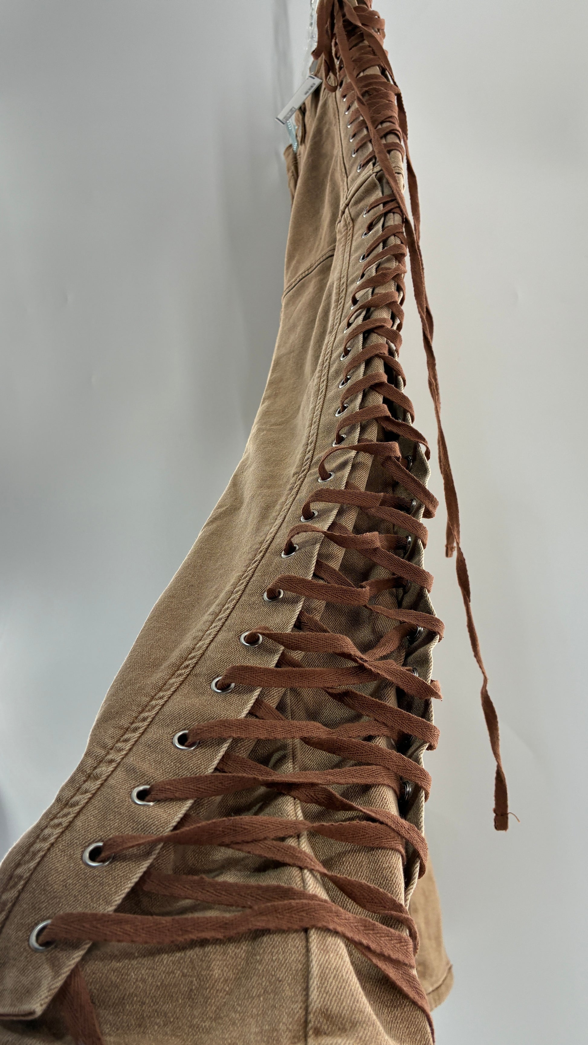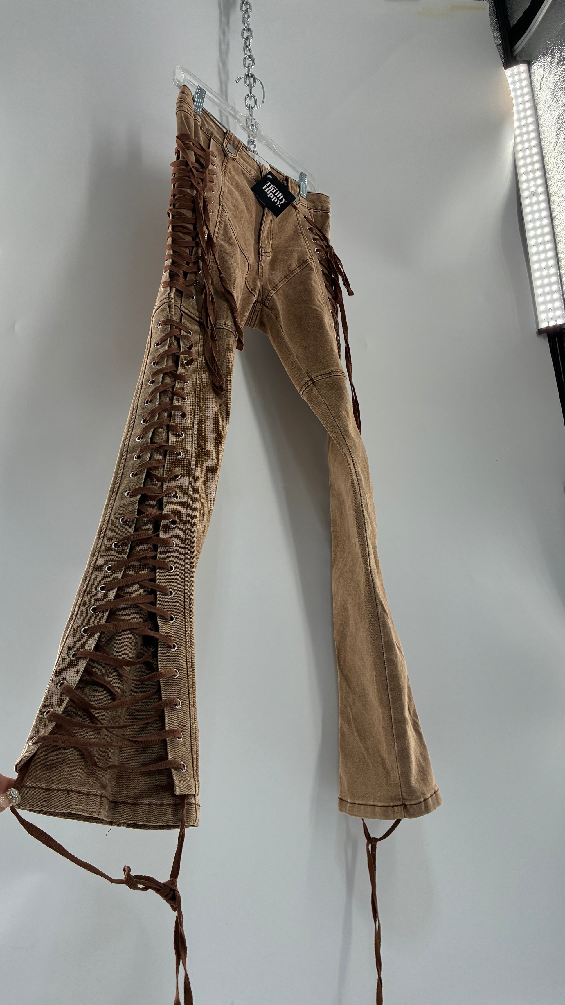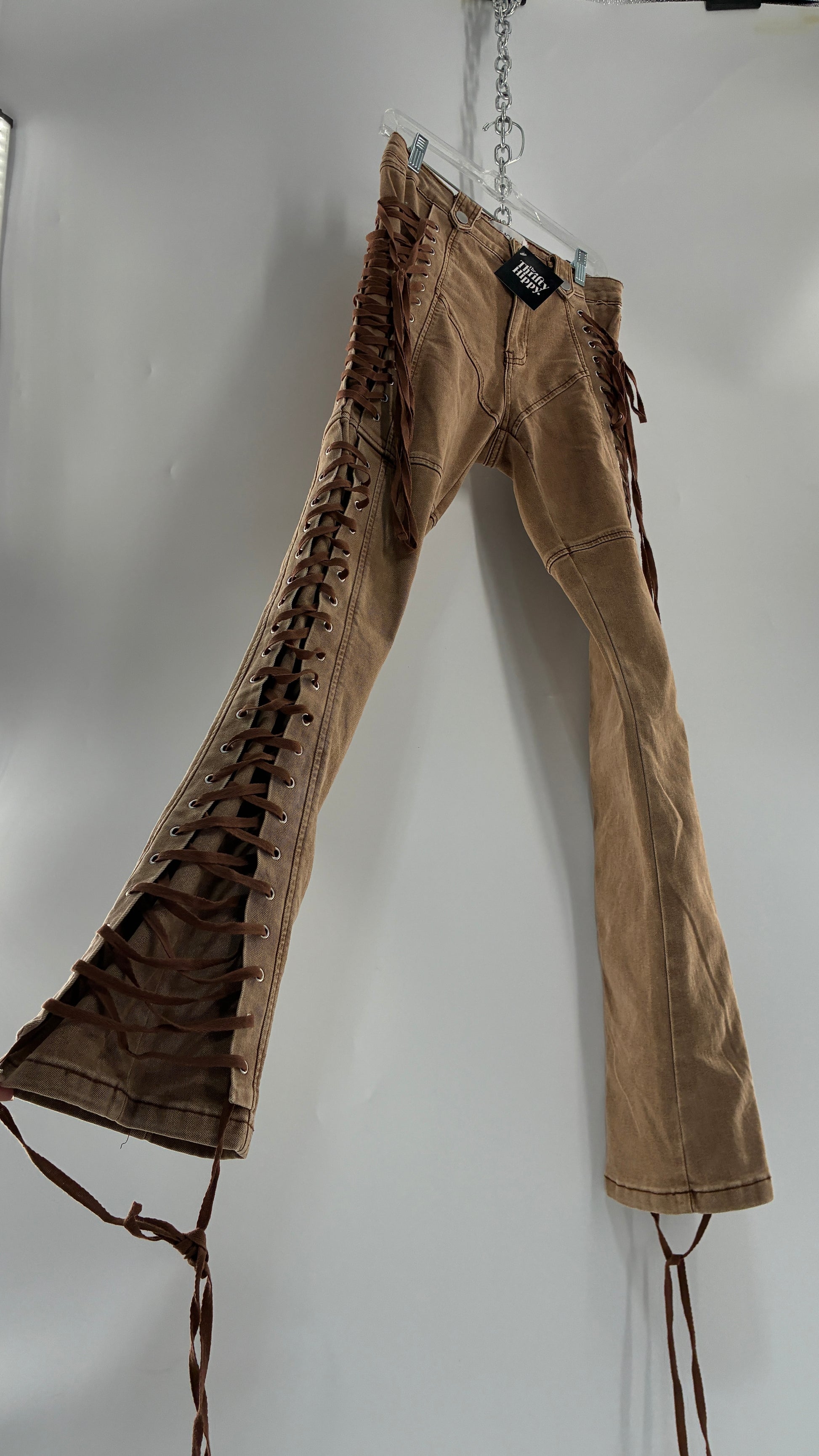 FASHION NOVA Side Tie Faded Brown Jeans (Medium)