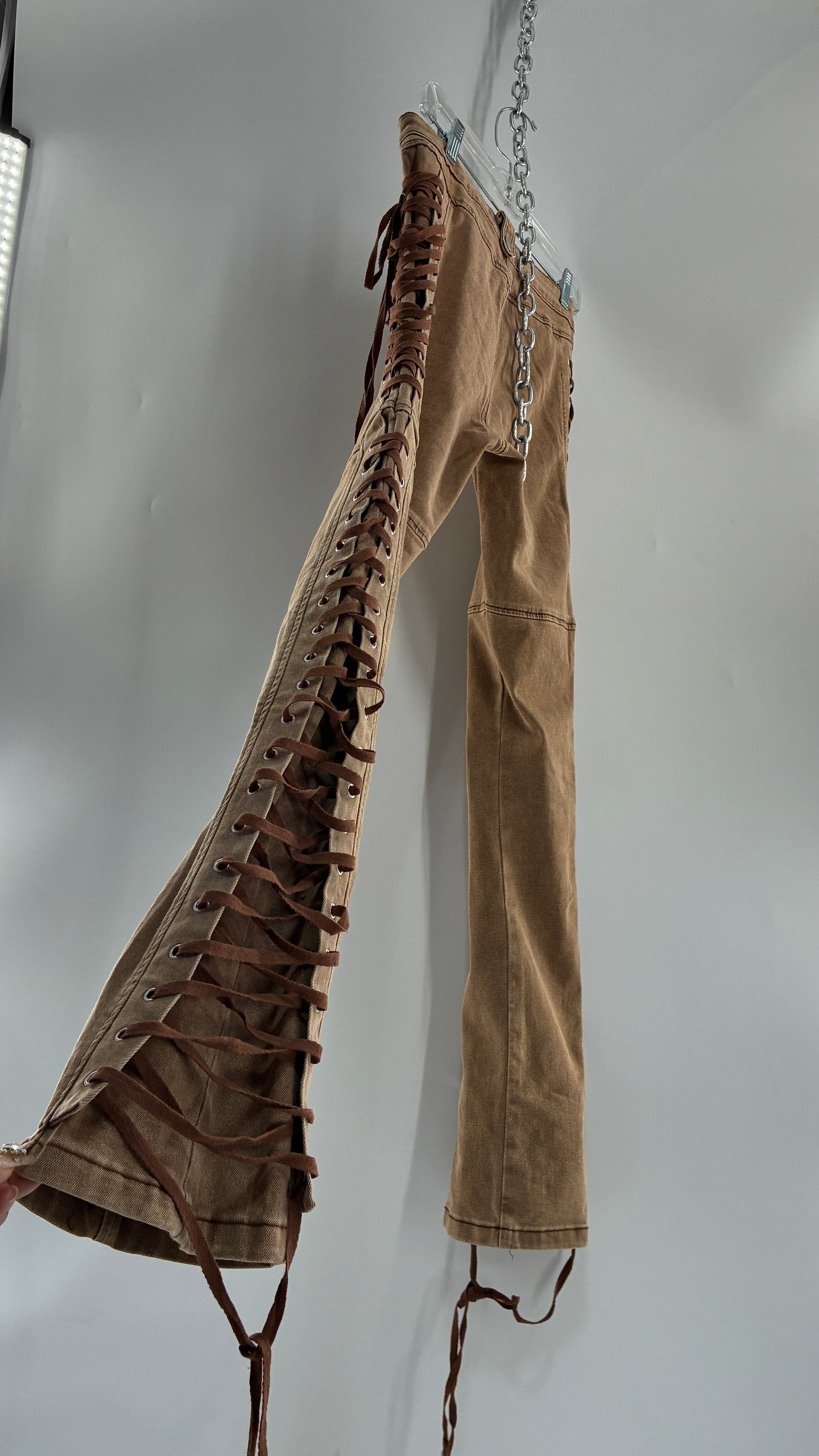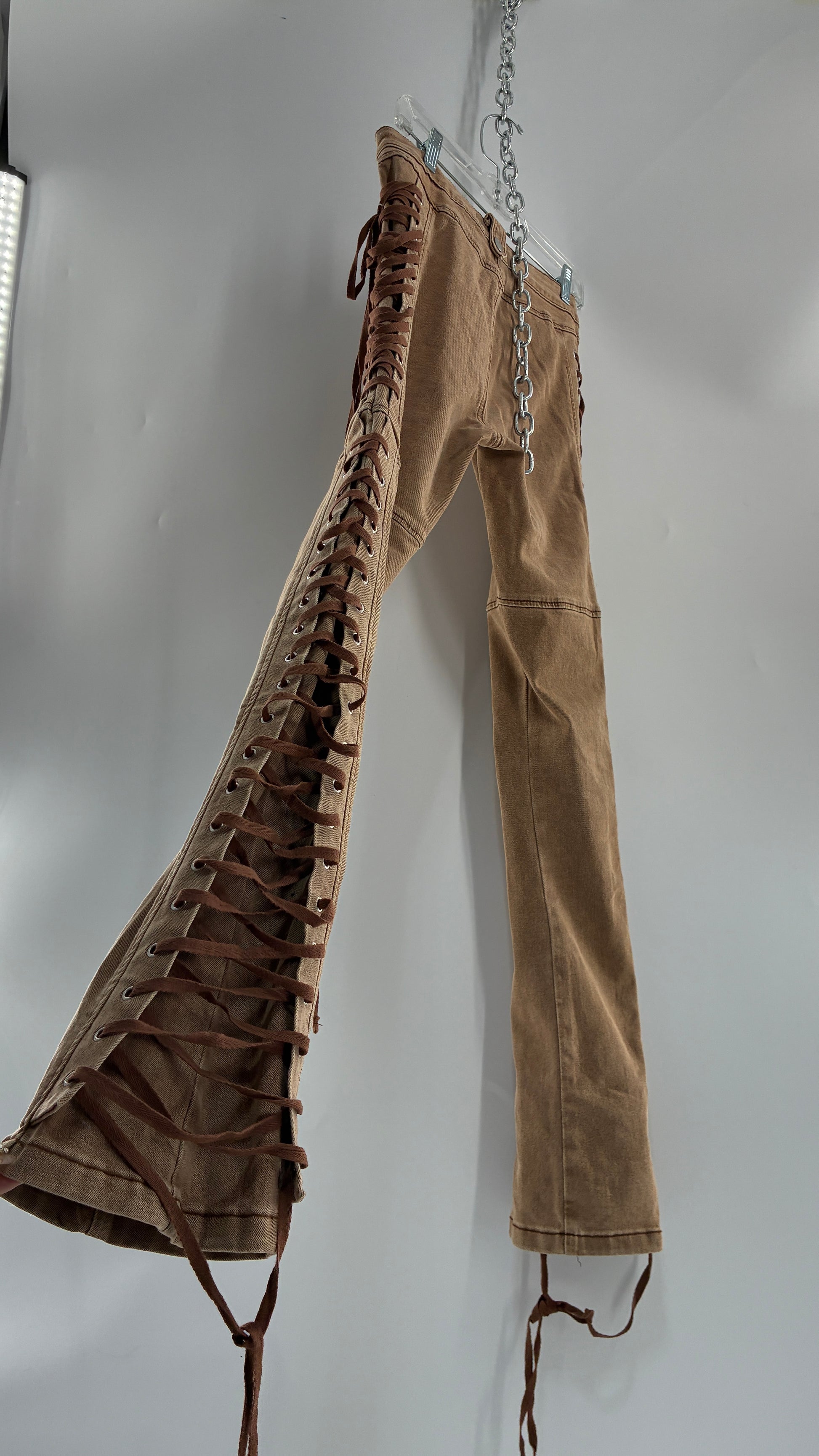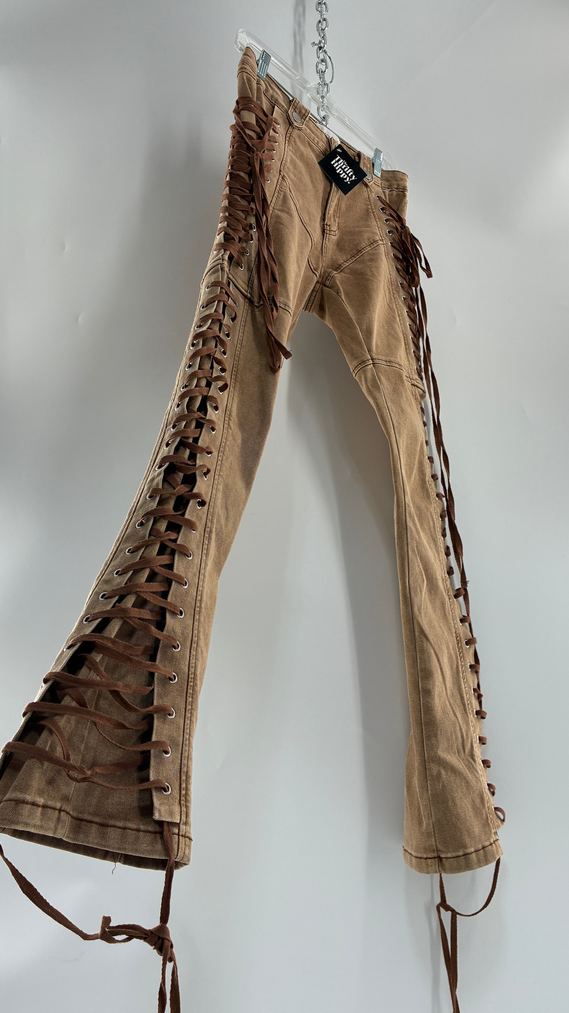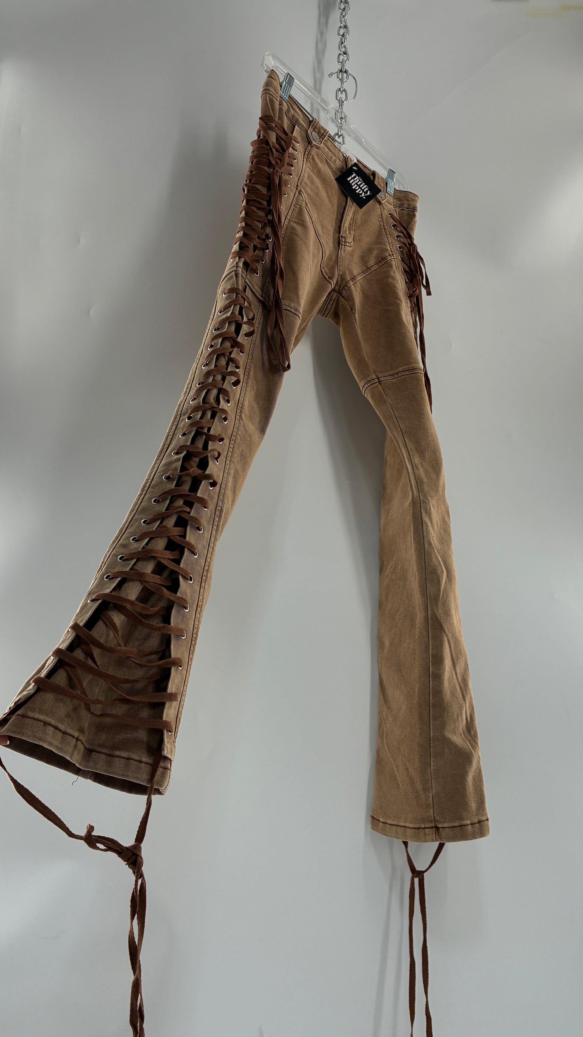 FASHION NOVA Side Tie Faded Brown Jeans (Medium)