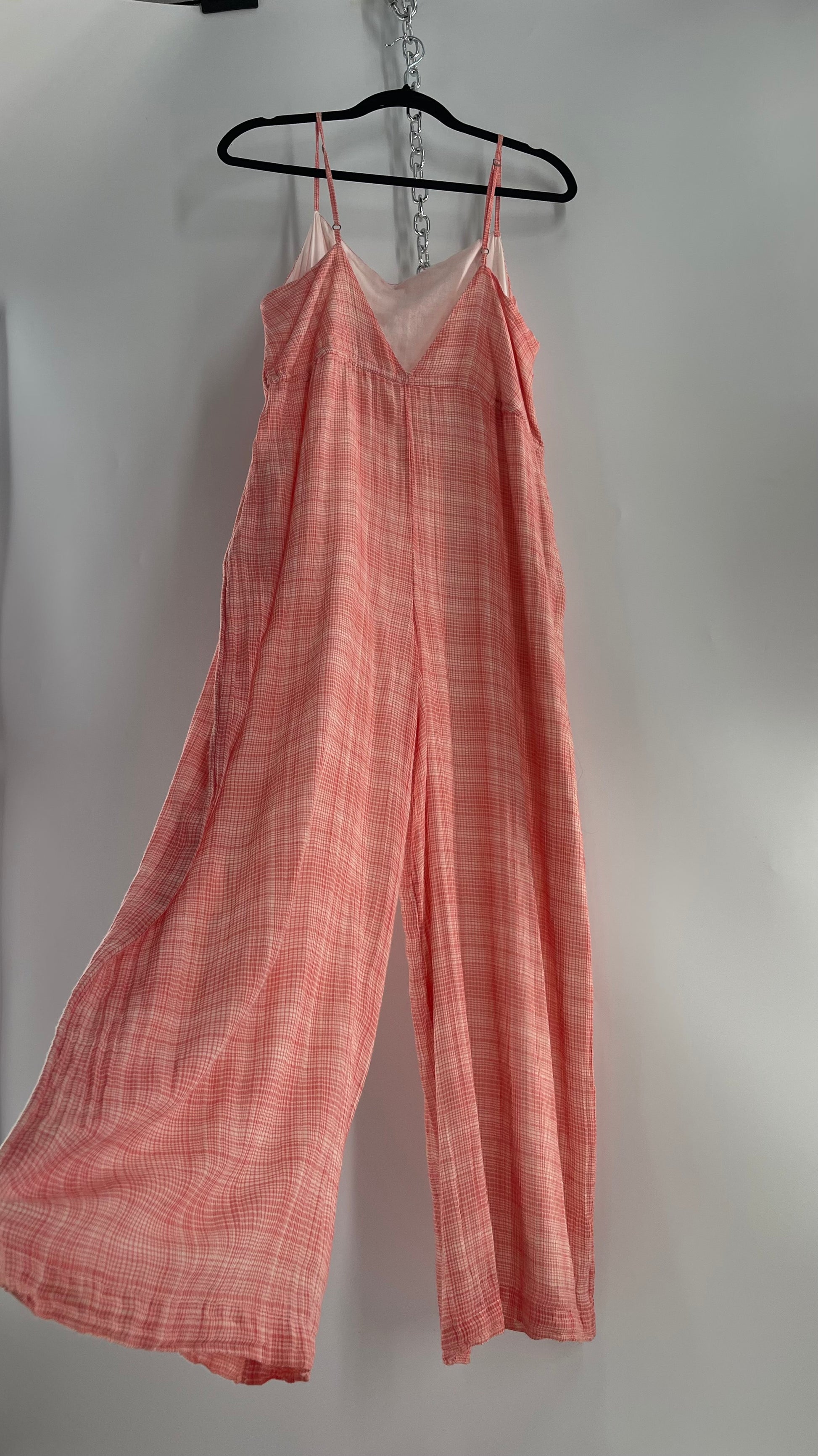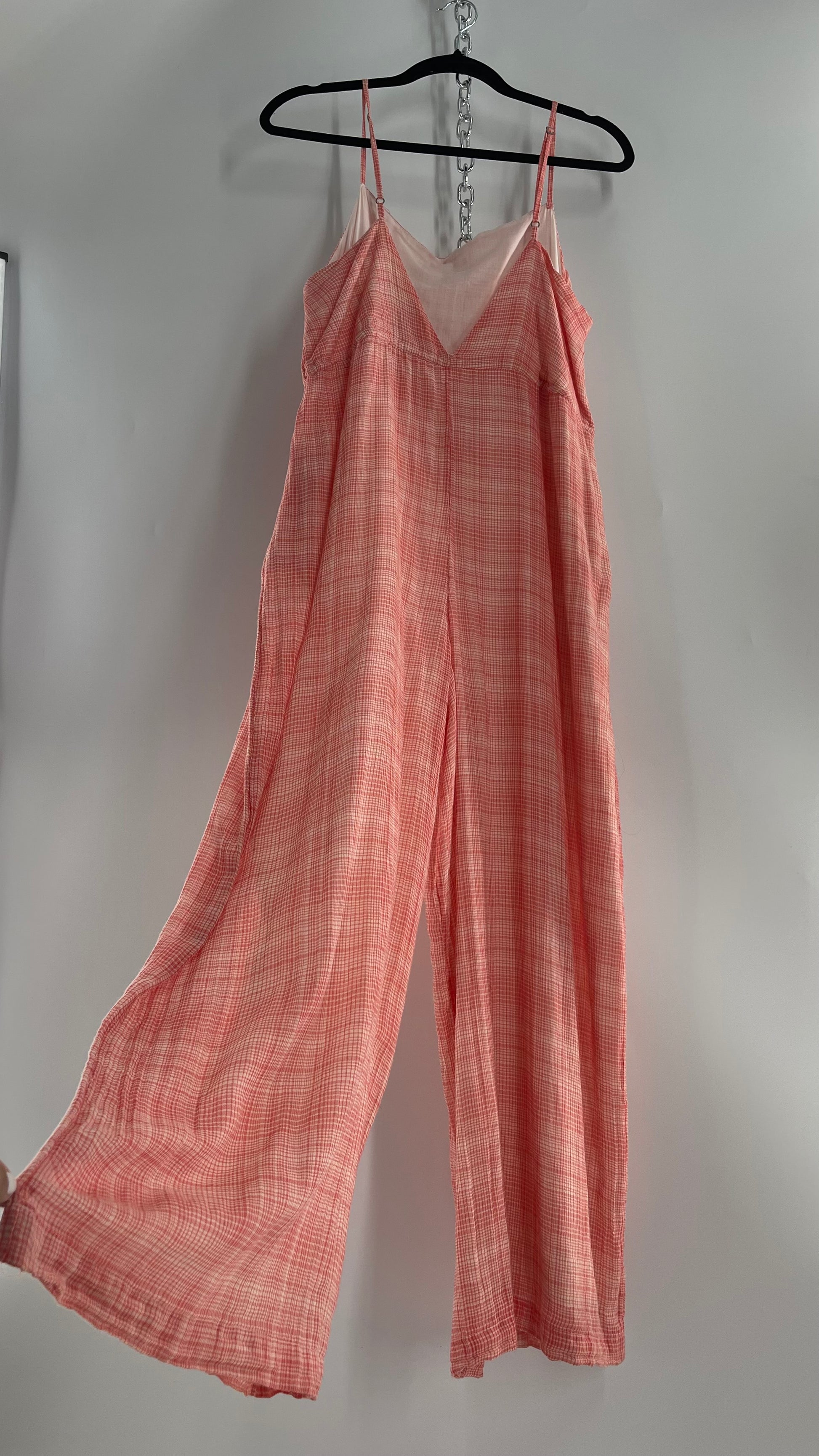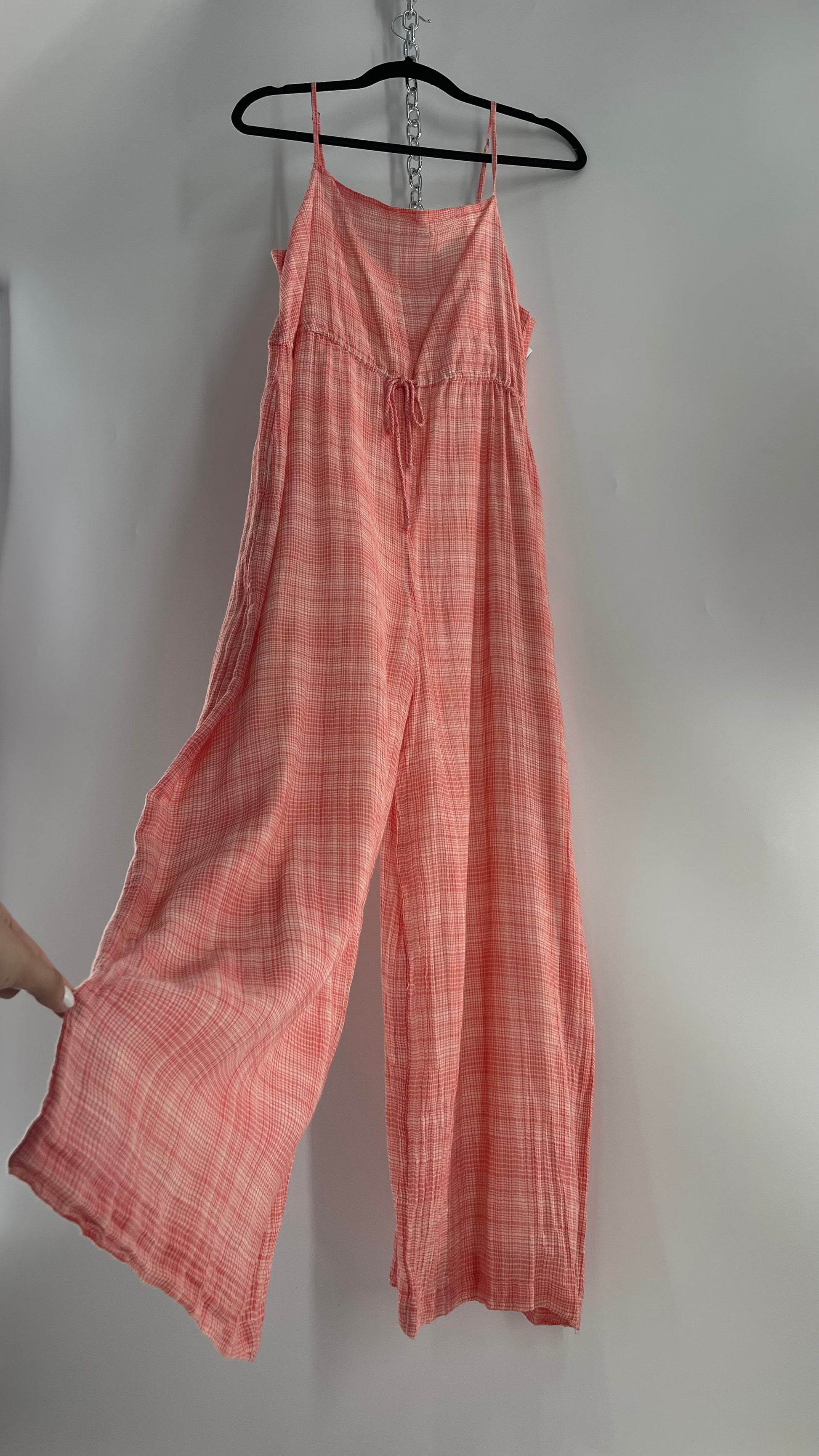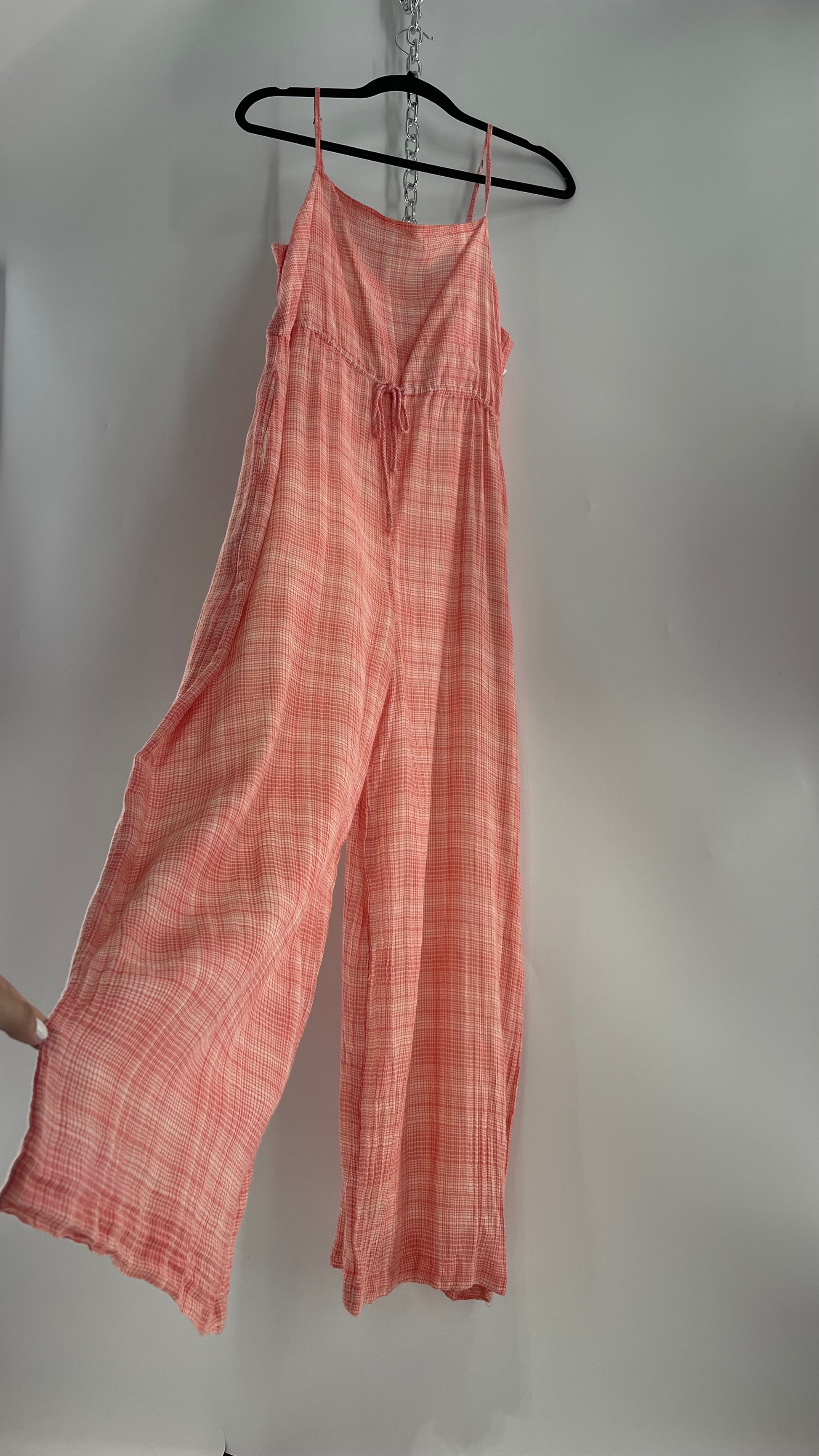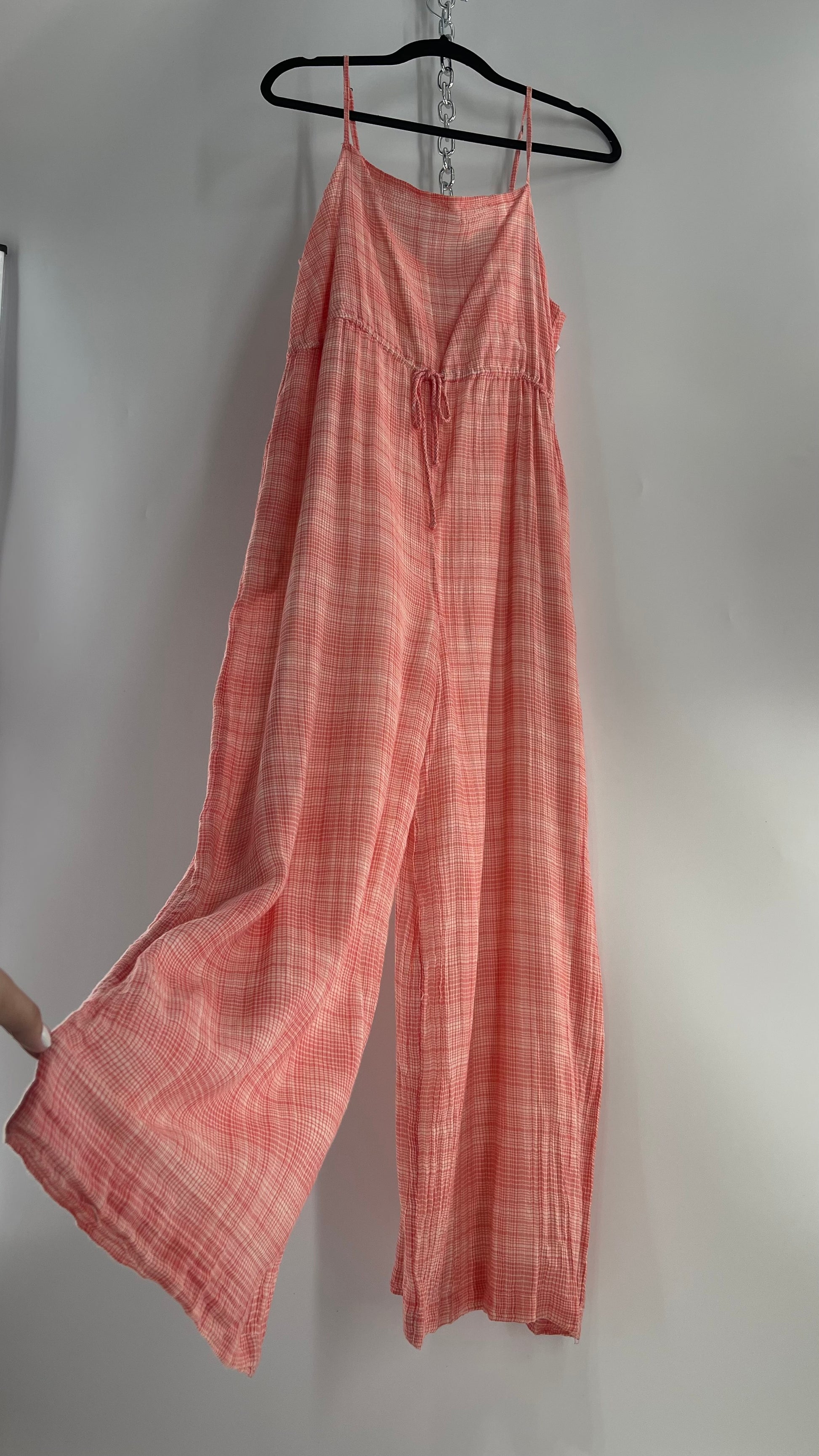 Urban Outfitters Gingham Plaid Red Picnic Jumpsuit (Large)