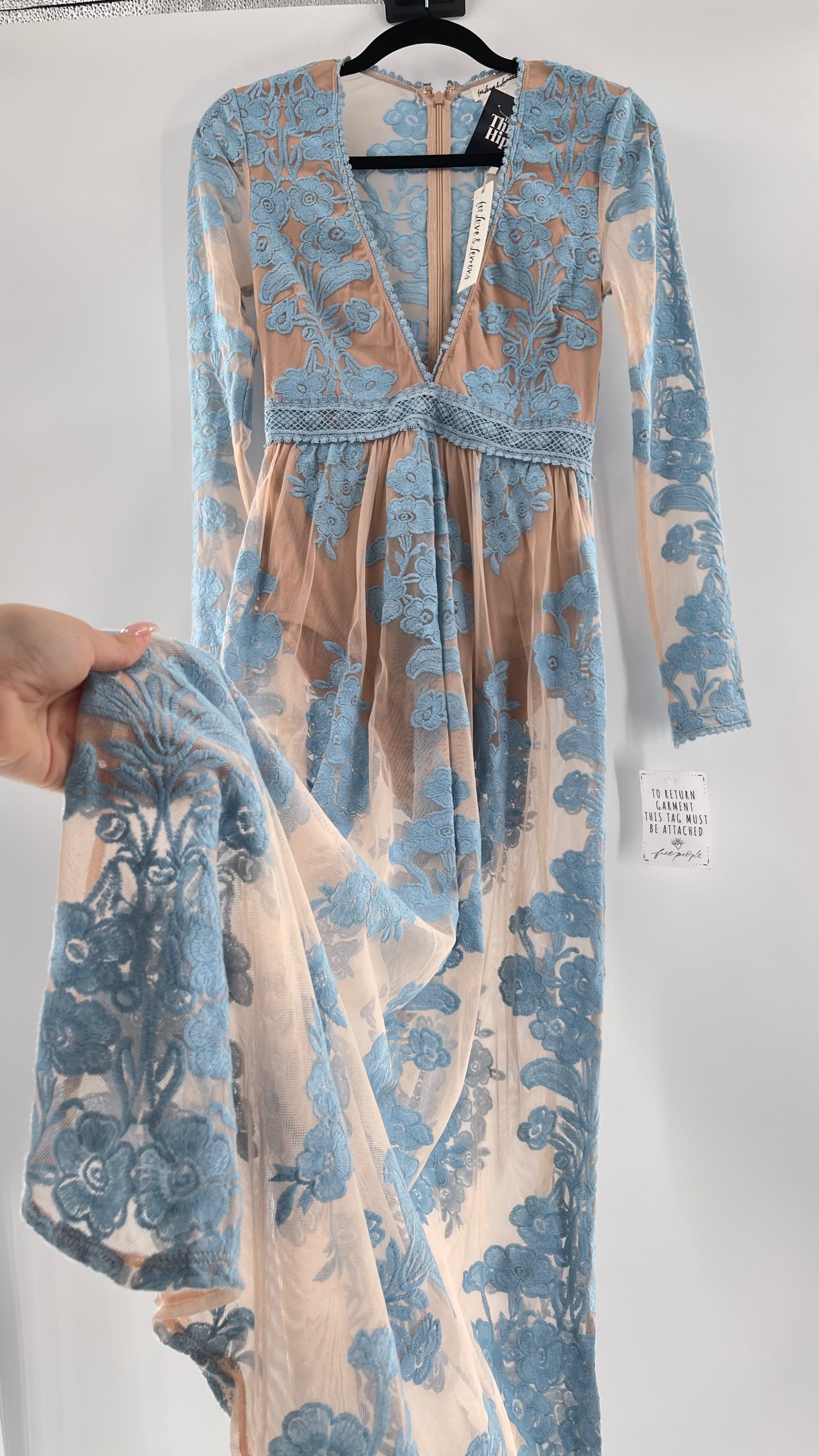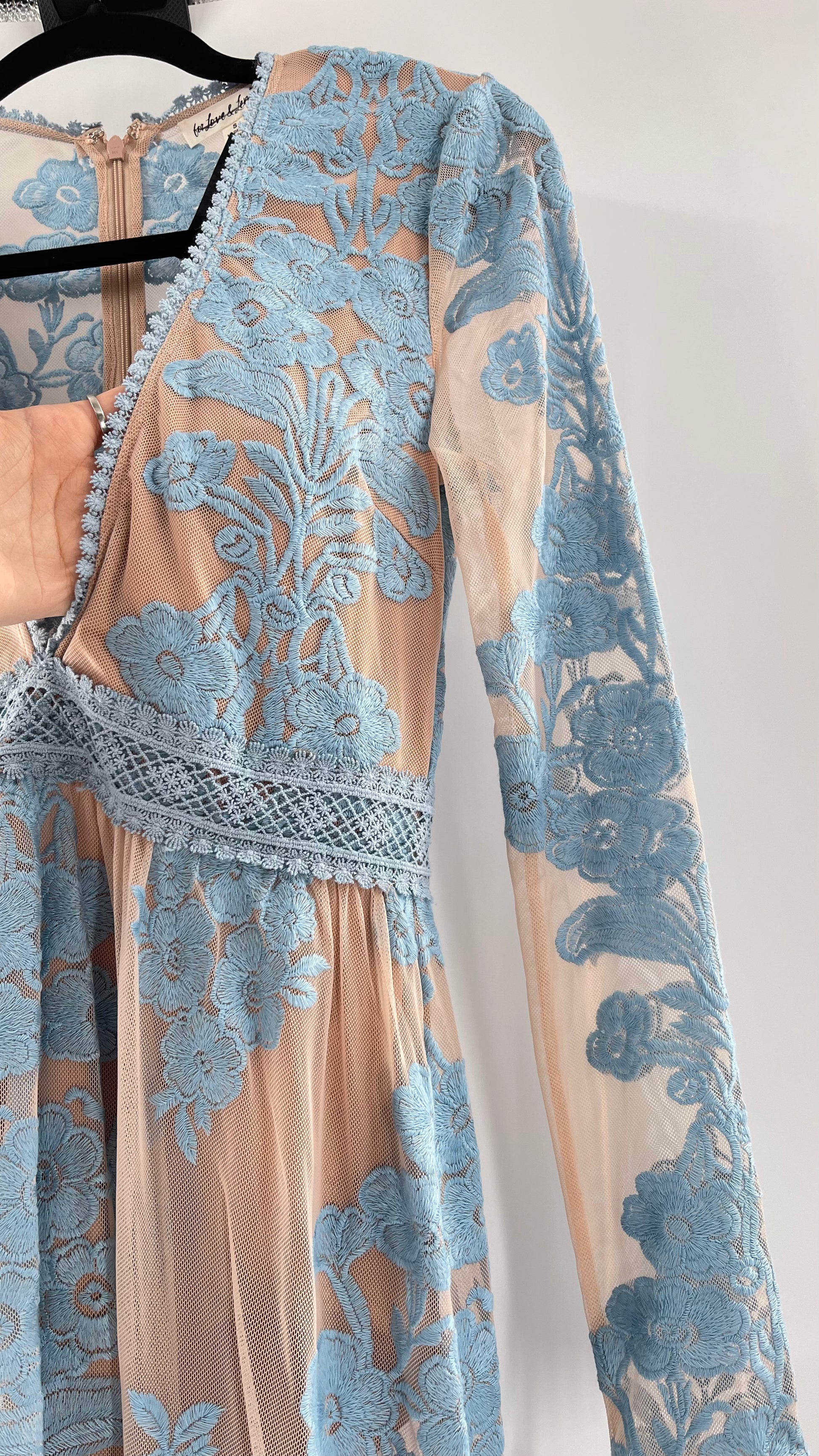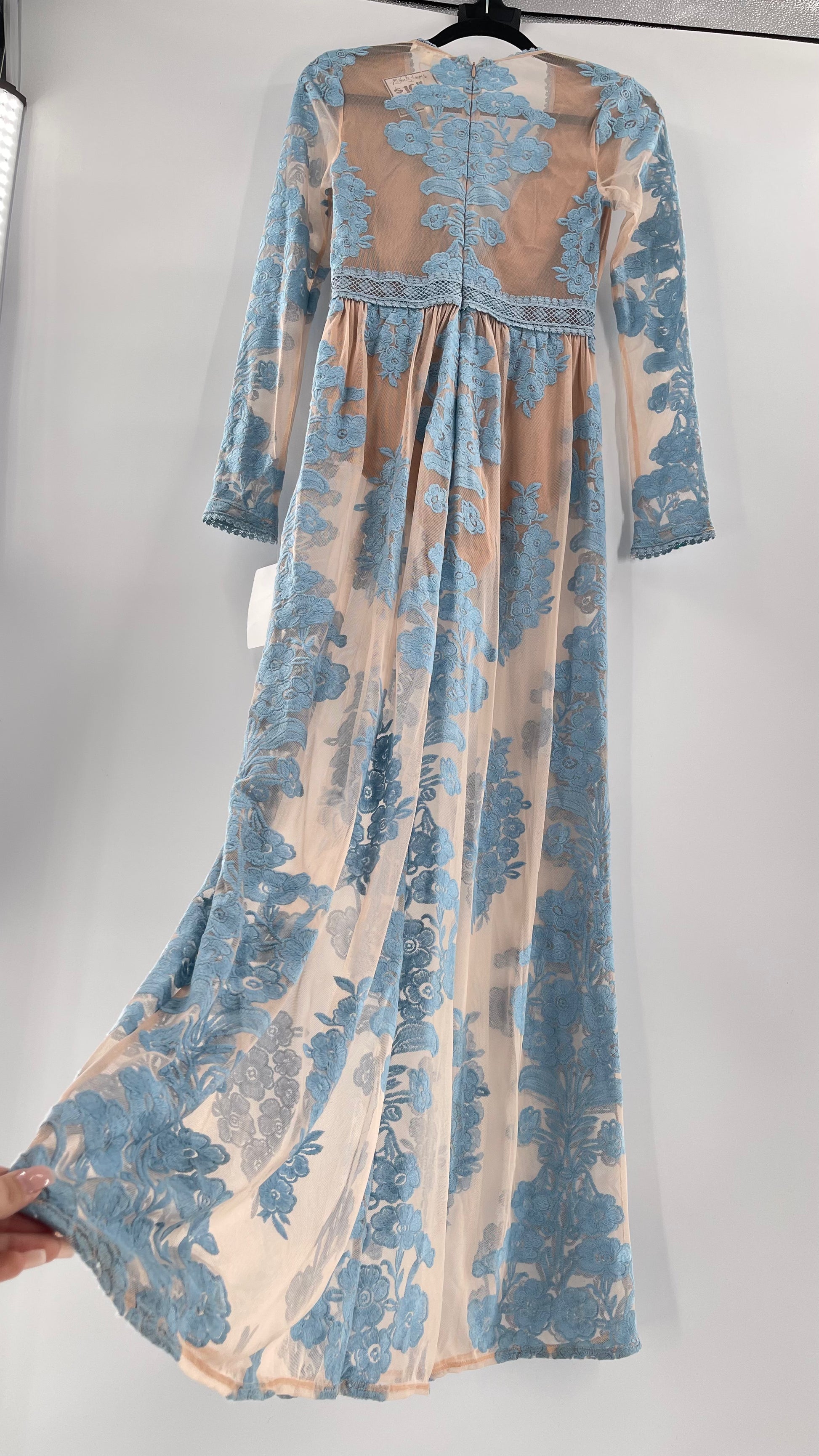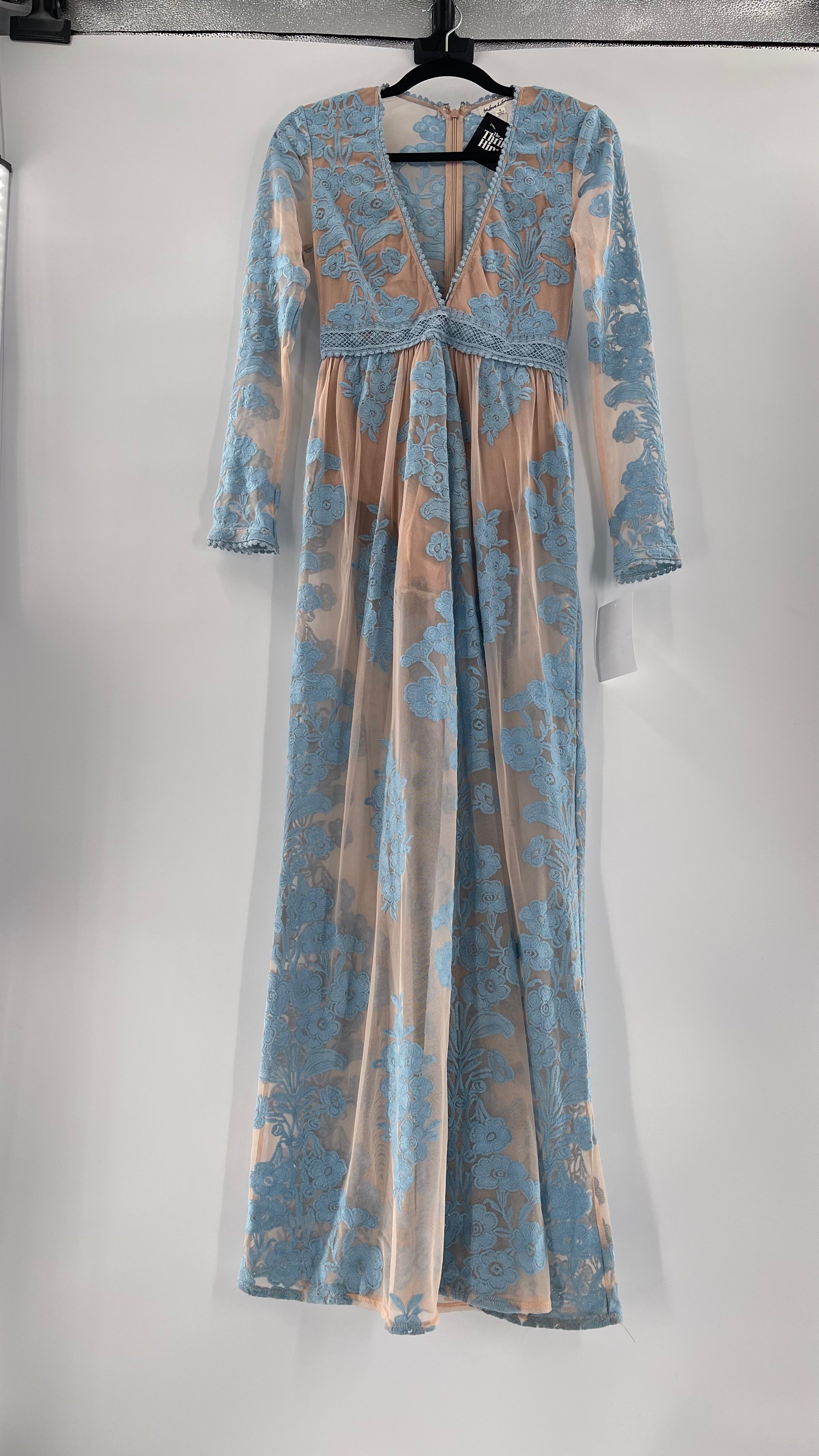 For Love and Lemons Powder Blue Embroidered Temecula Maxi Dress