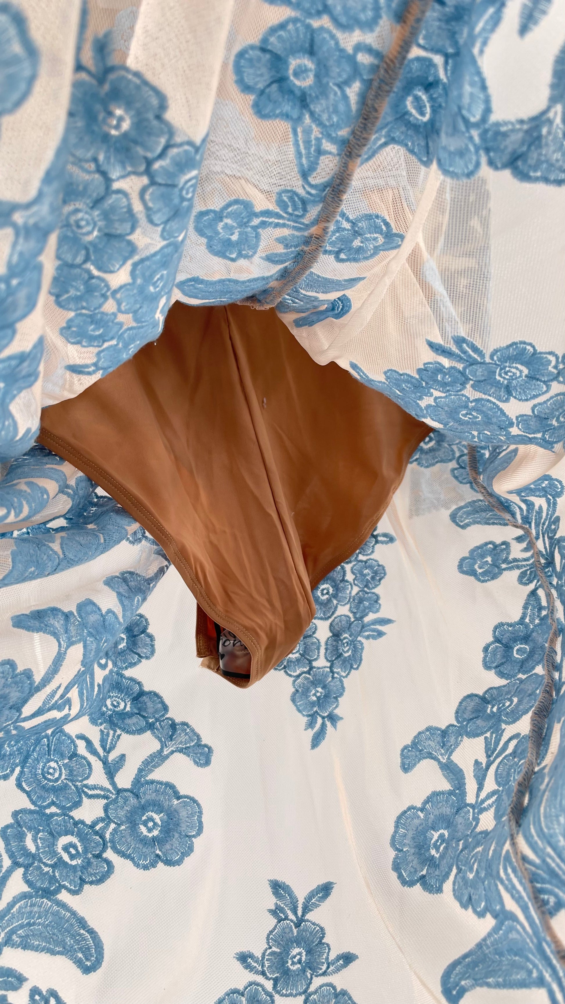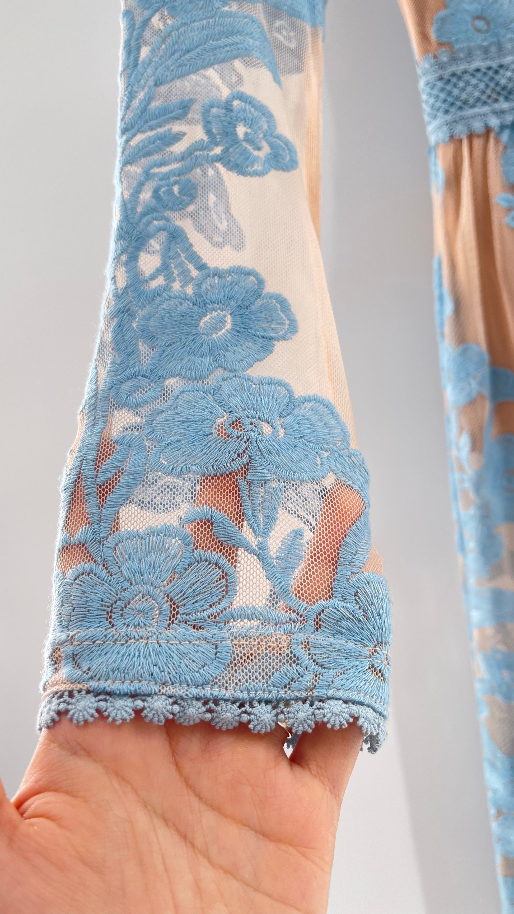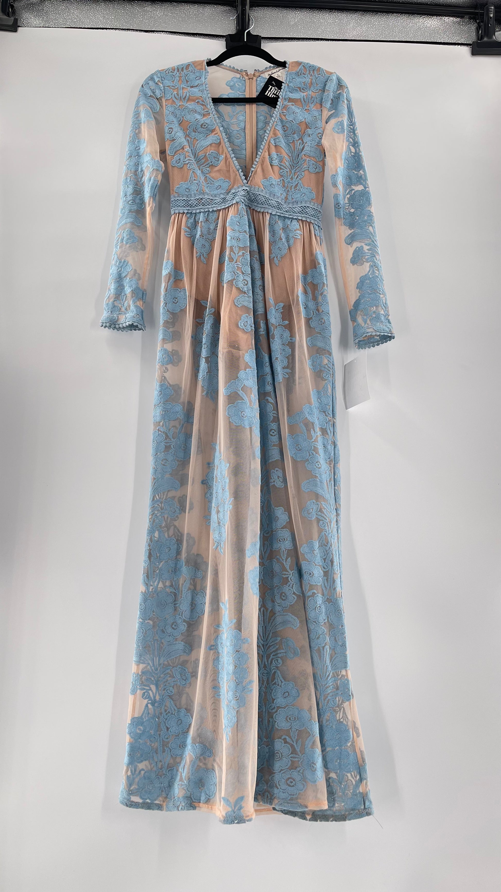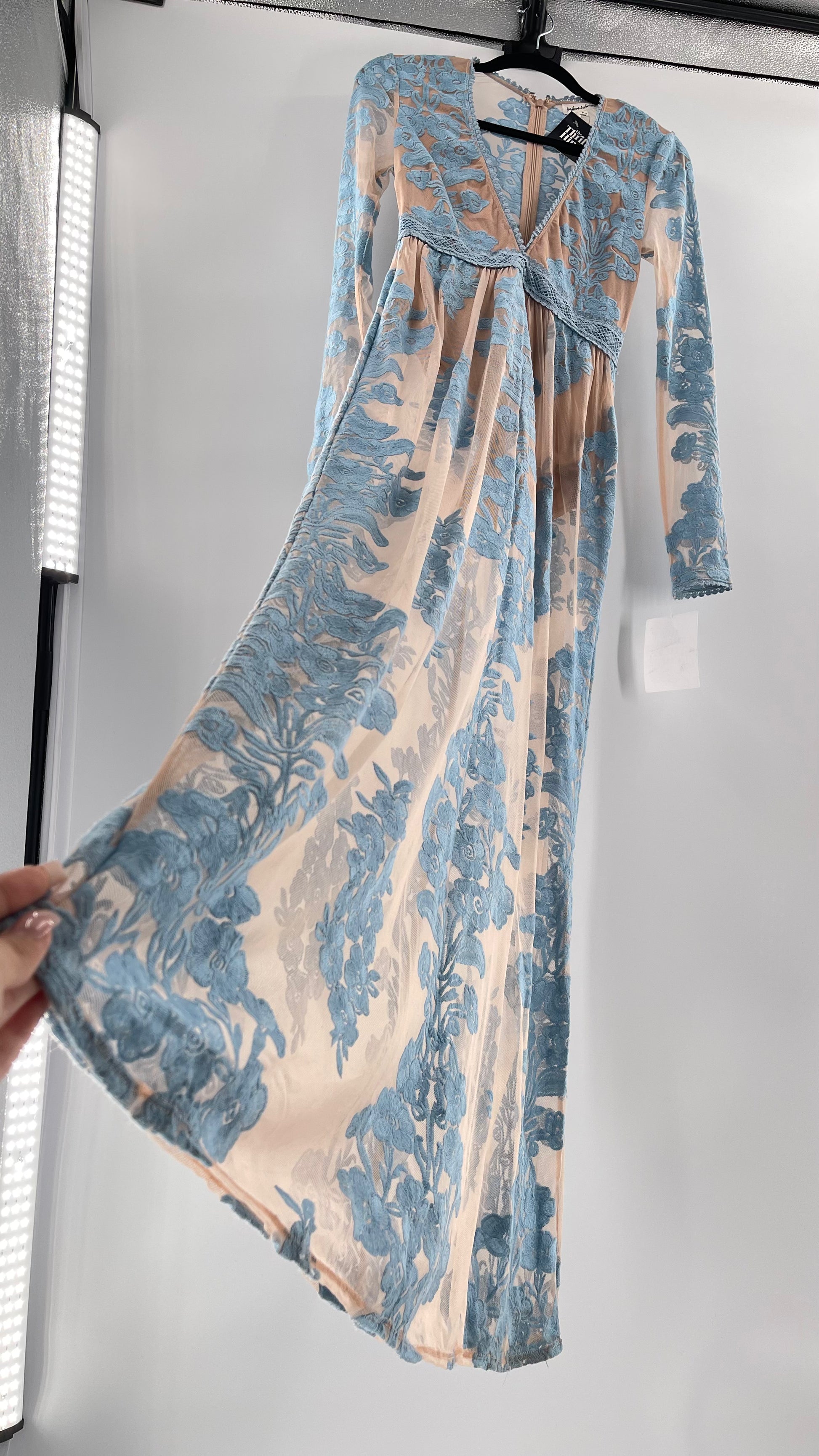 For Love and Lemons Powder Blue Embroidered Temecula Maxi Dress