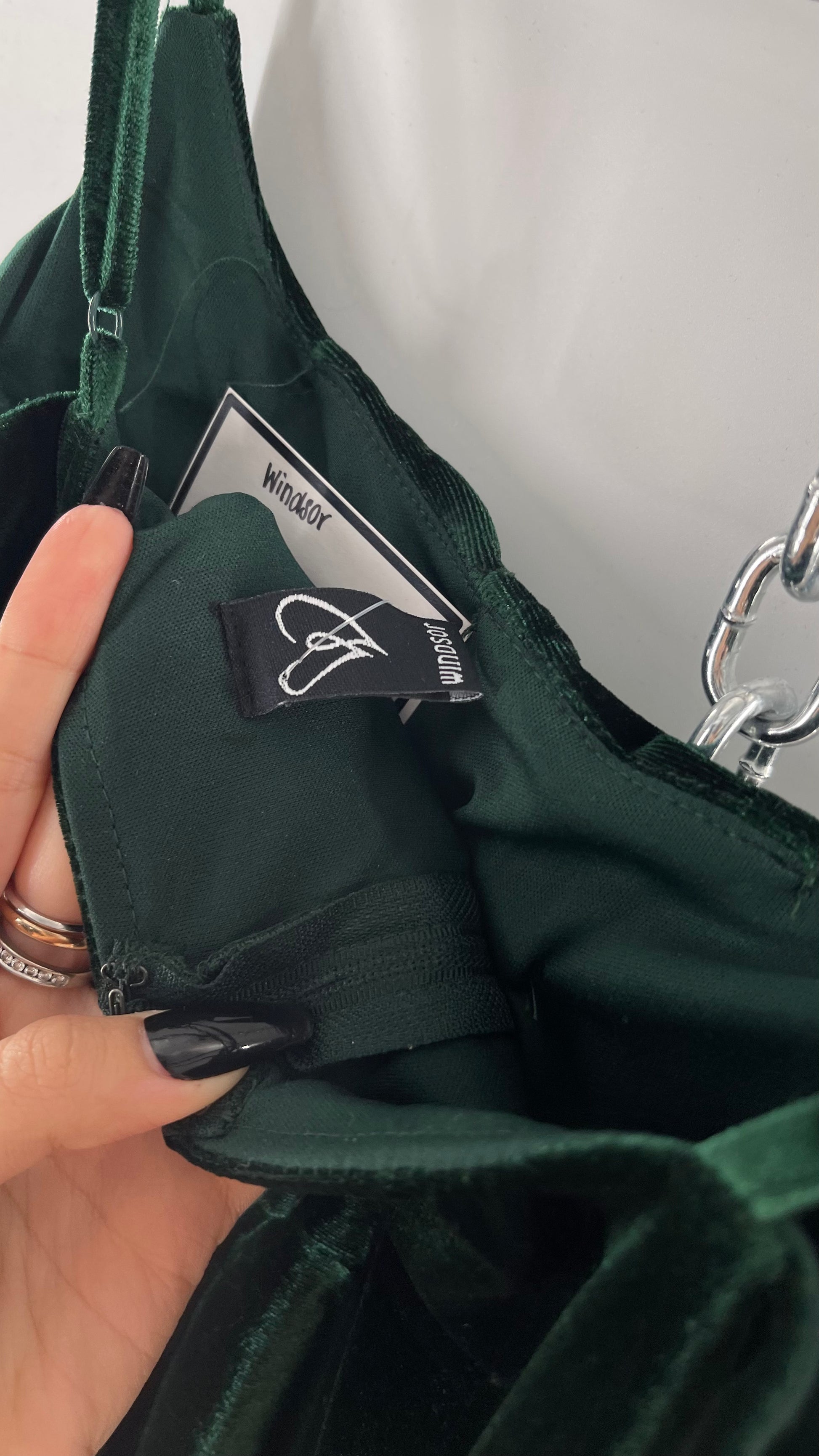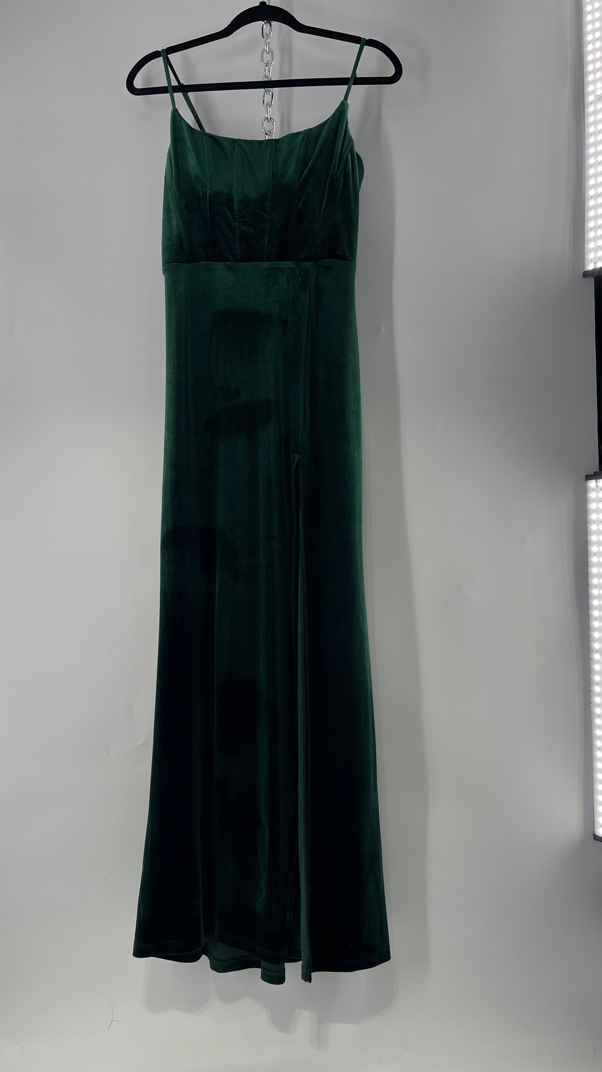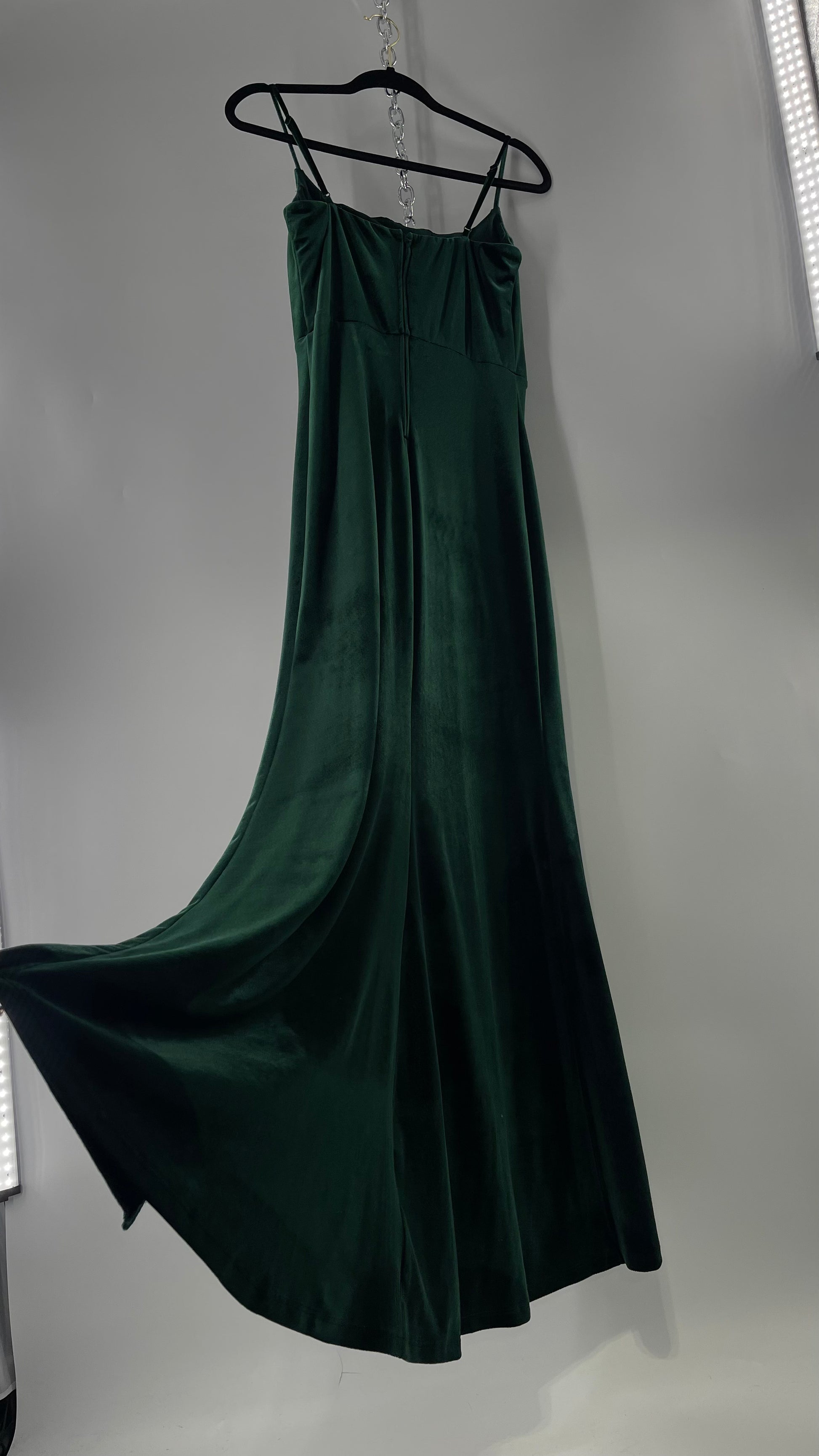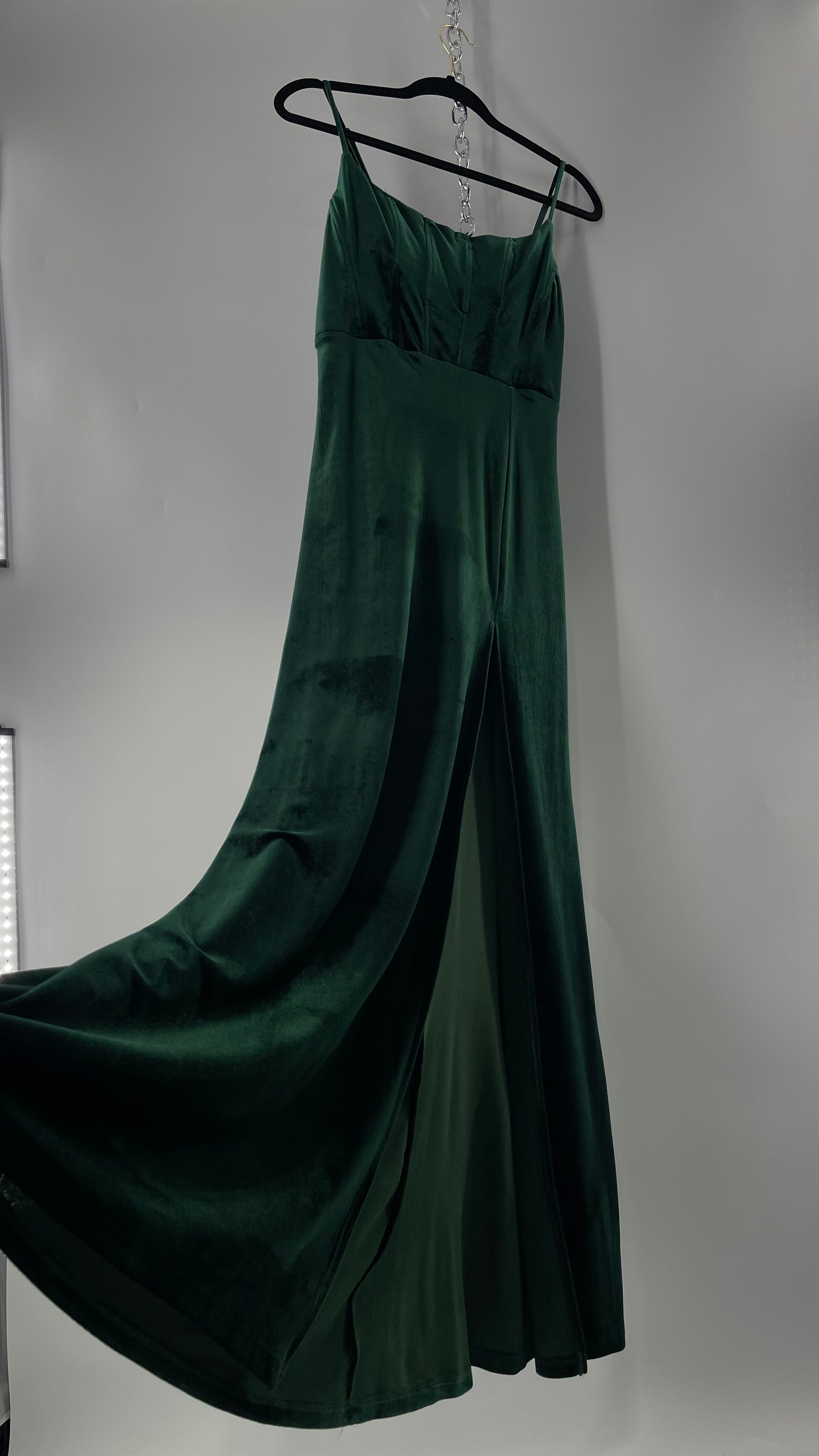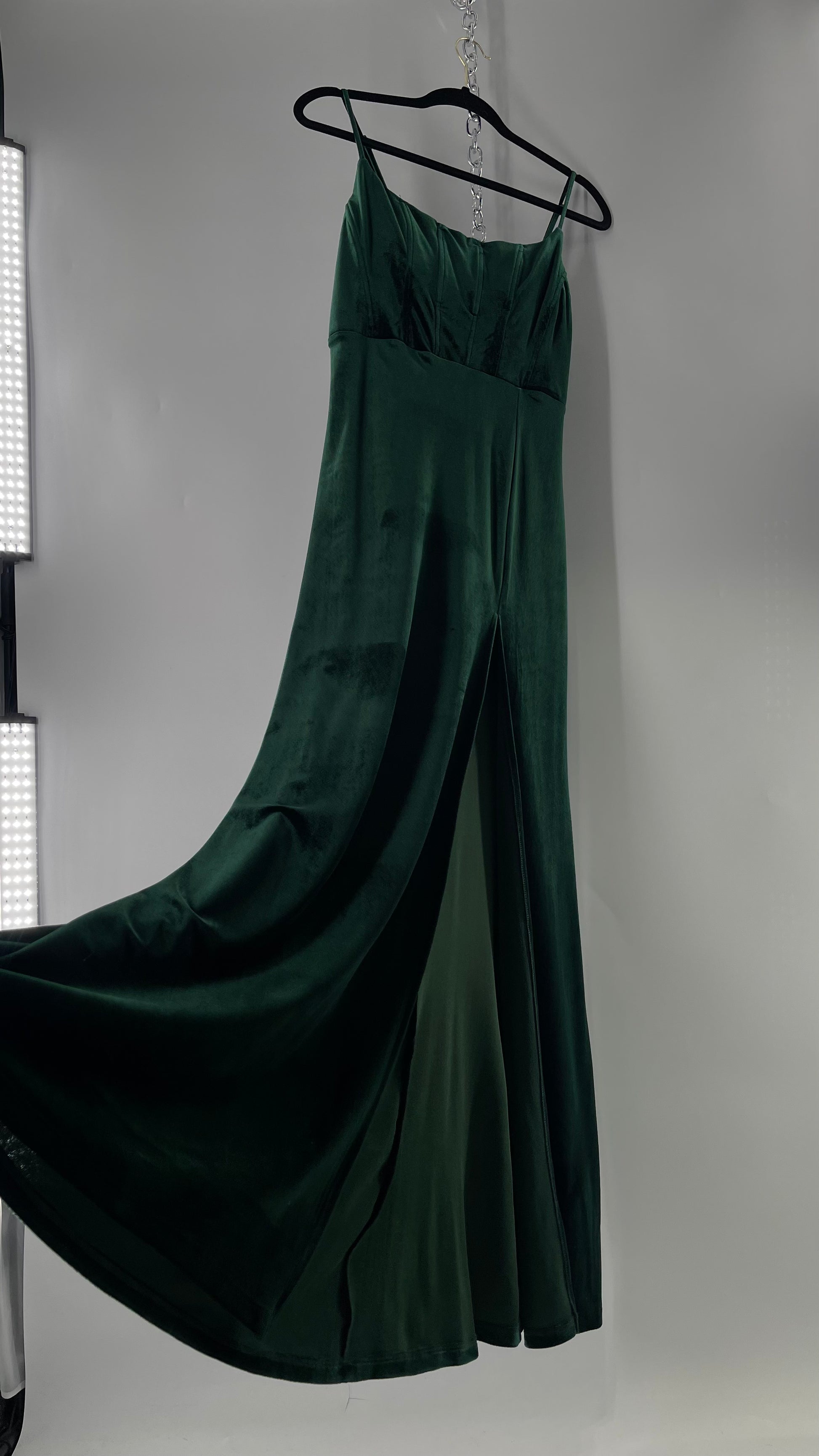 Windsor Forest Green Velvet Maxi Dress with Corseted Bust and Side Slit (11/12)
