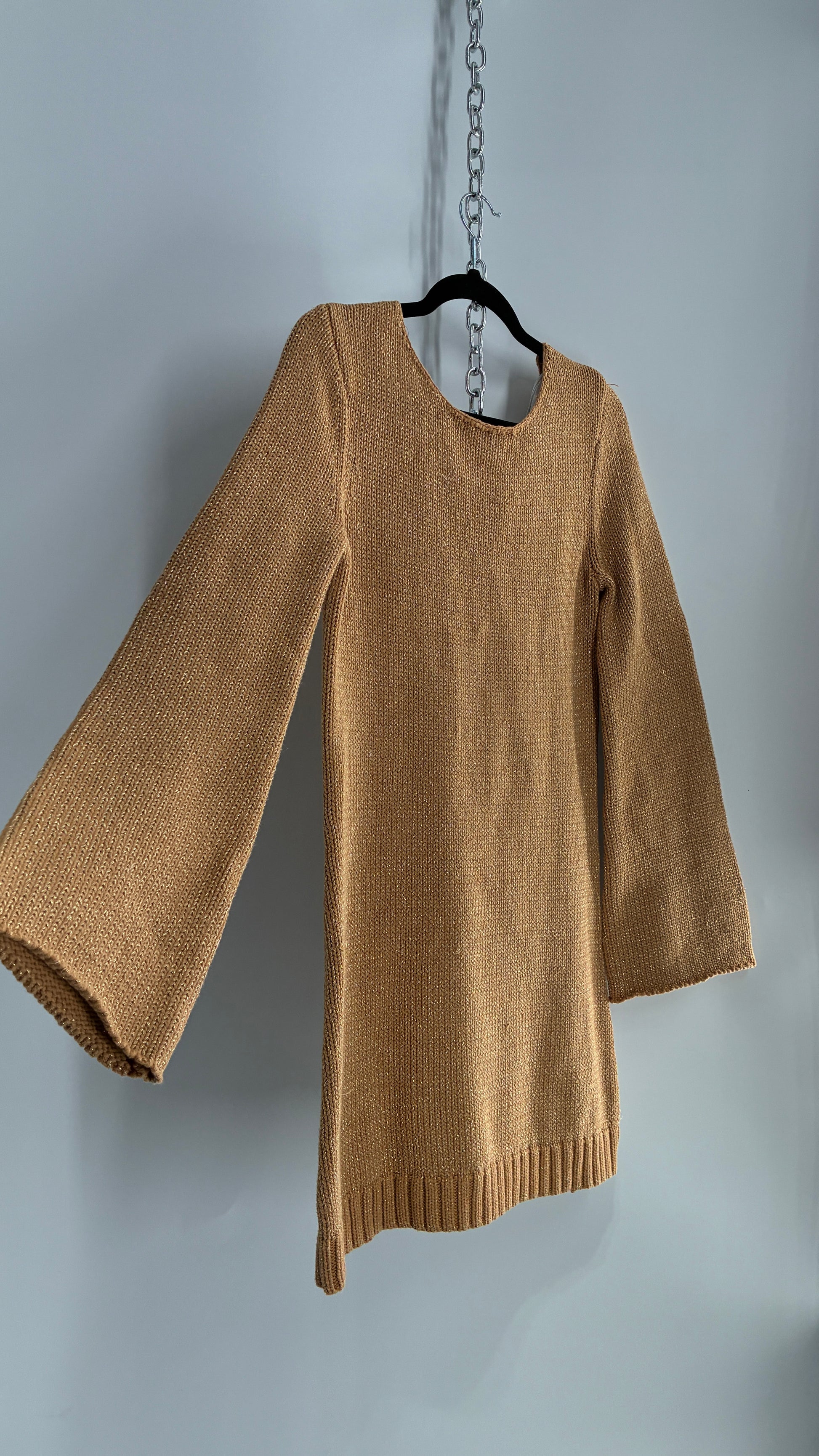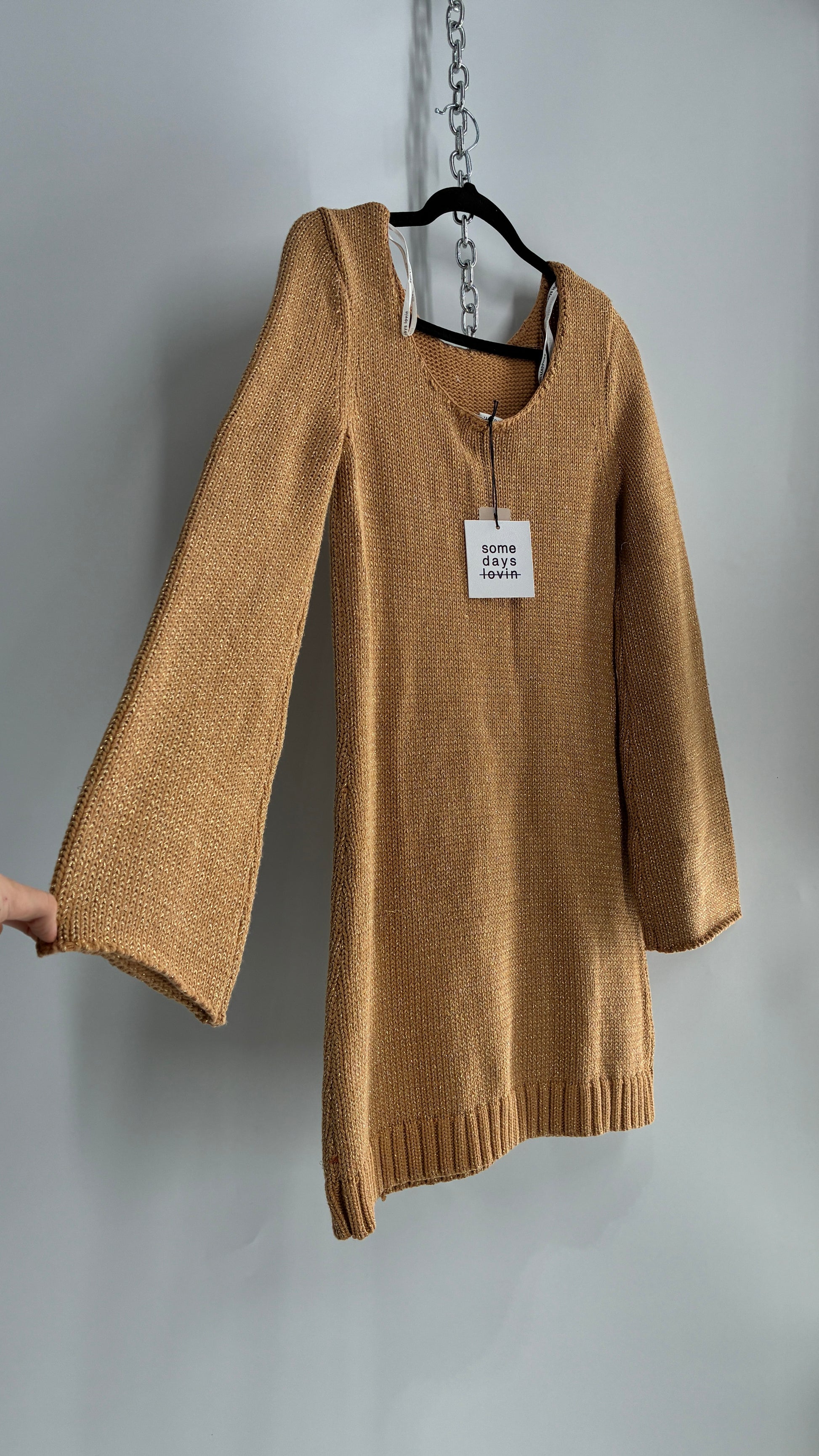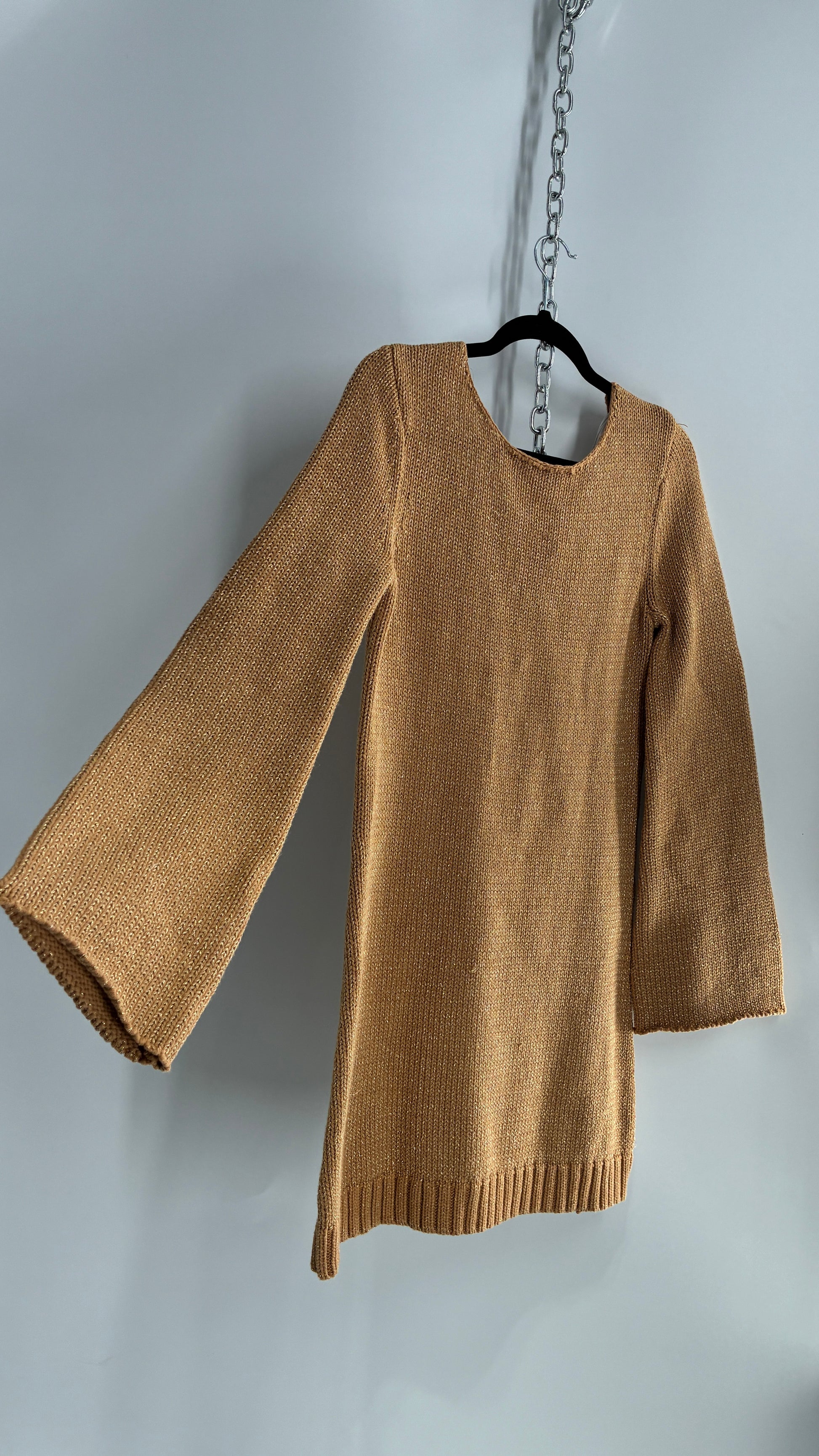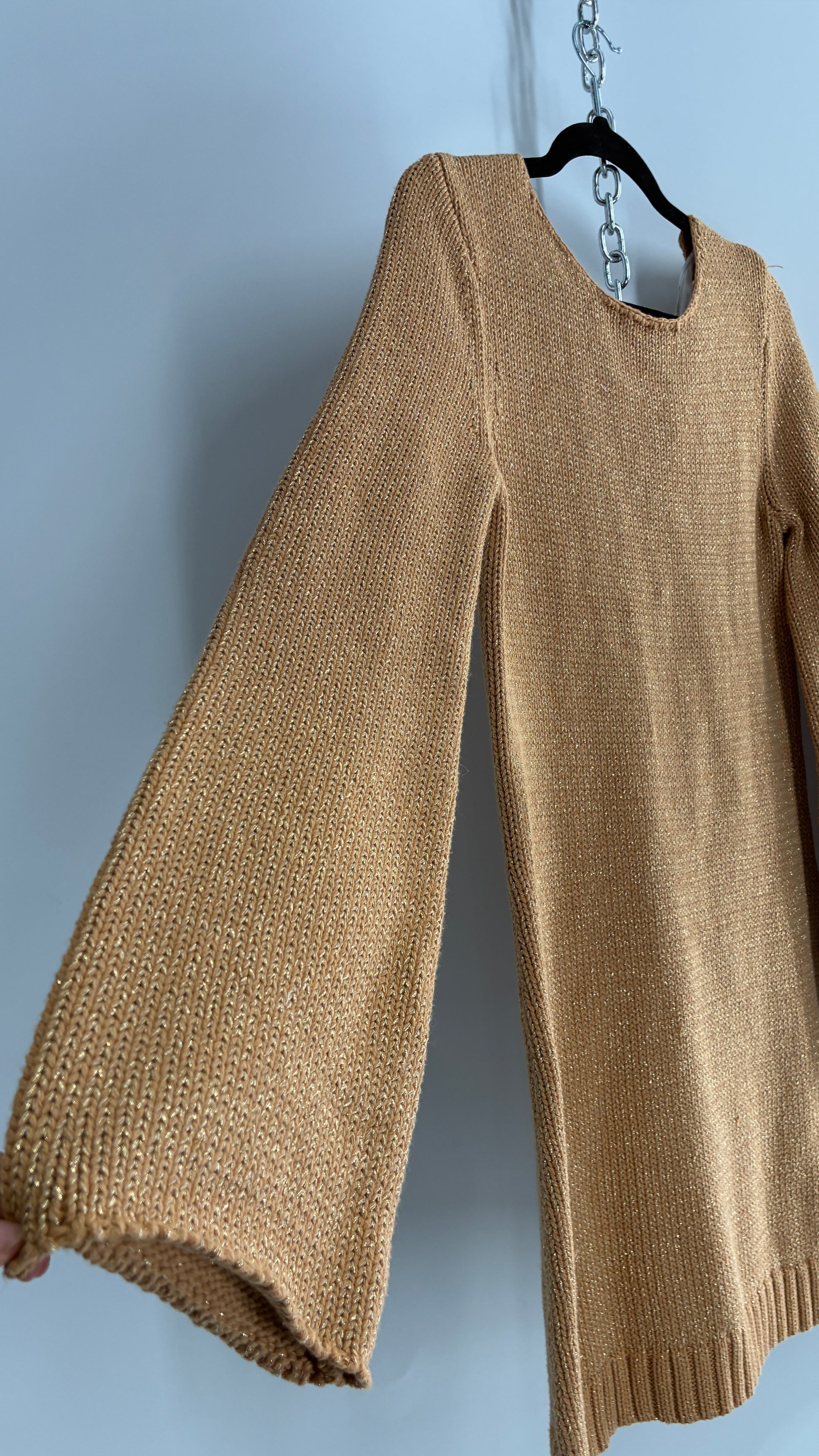 Some Days Lovin Gold Tinsel Knit Bell Sleeve Mini Dress (Small)