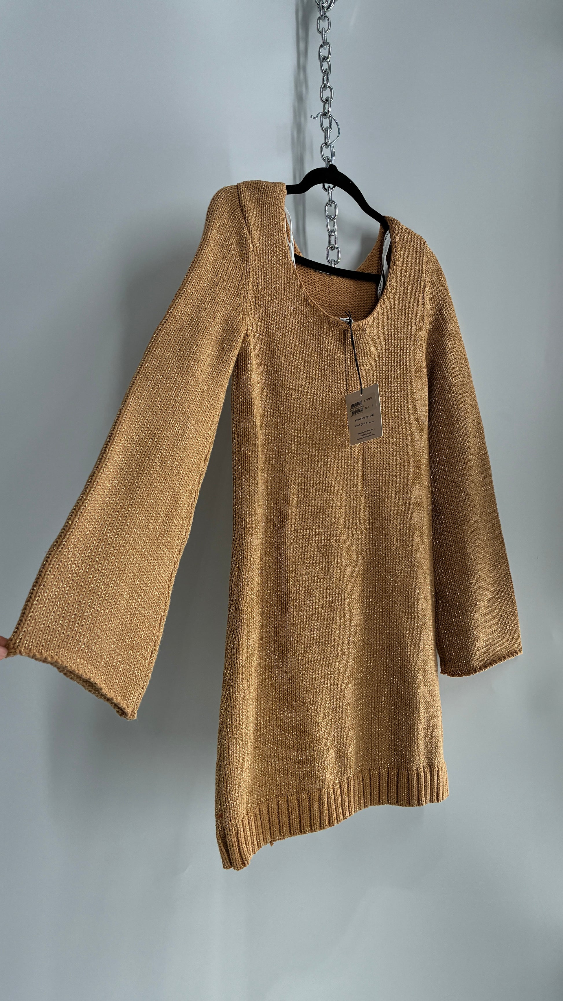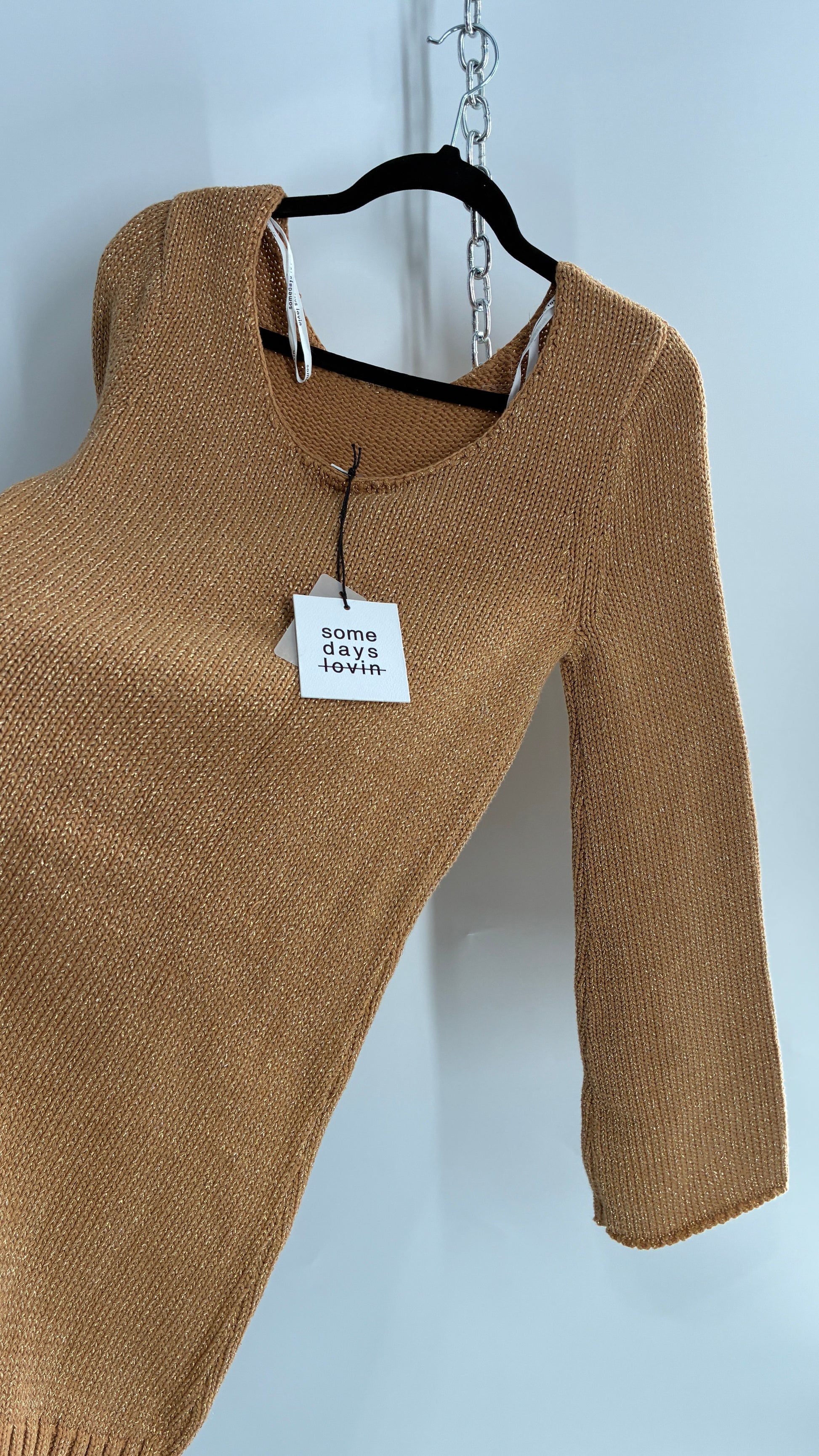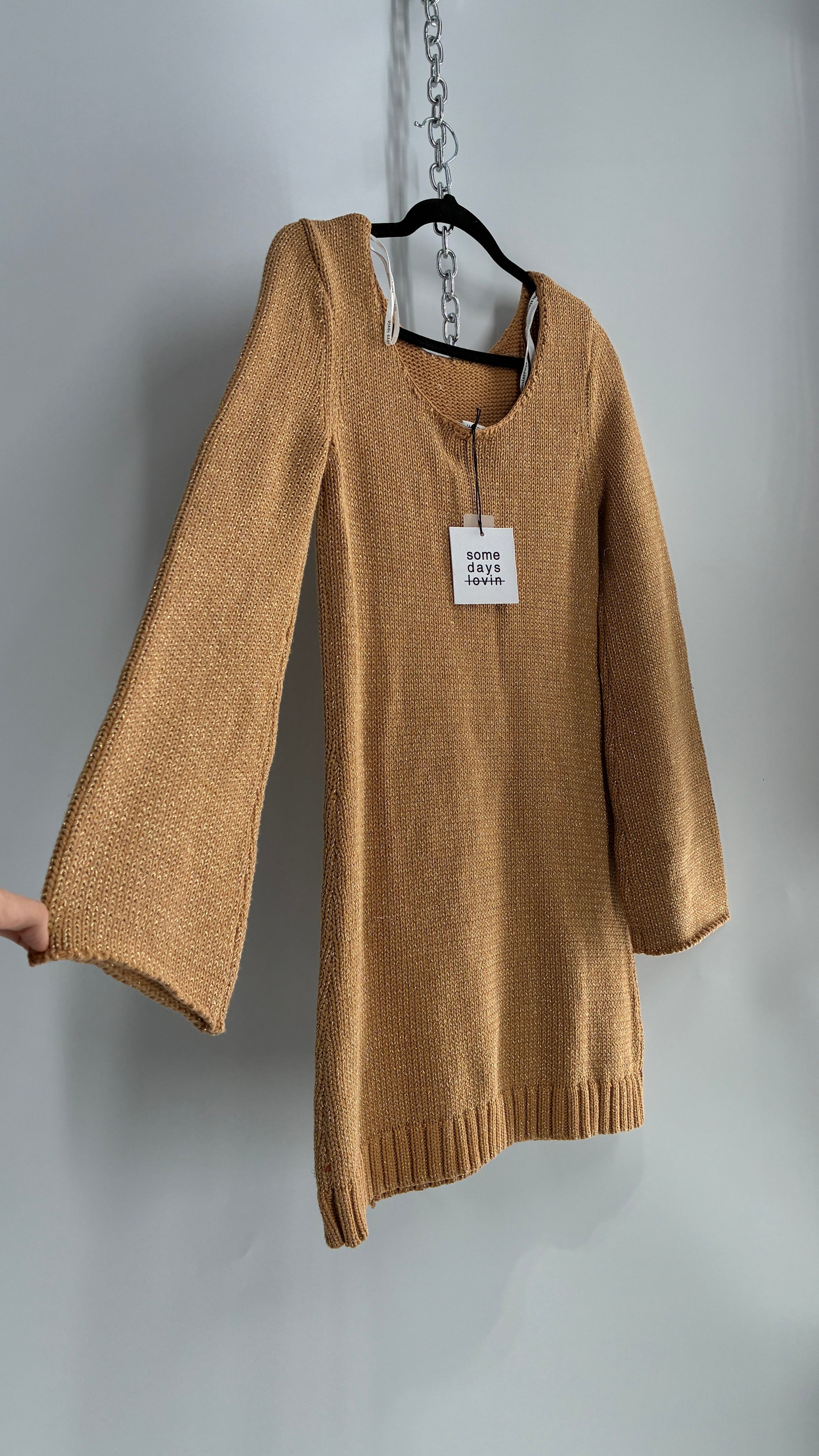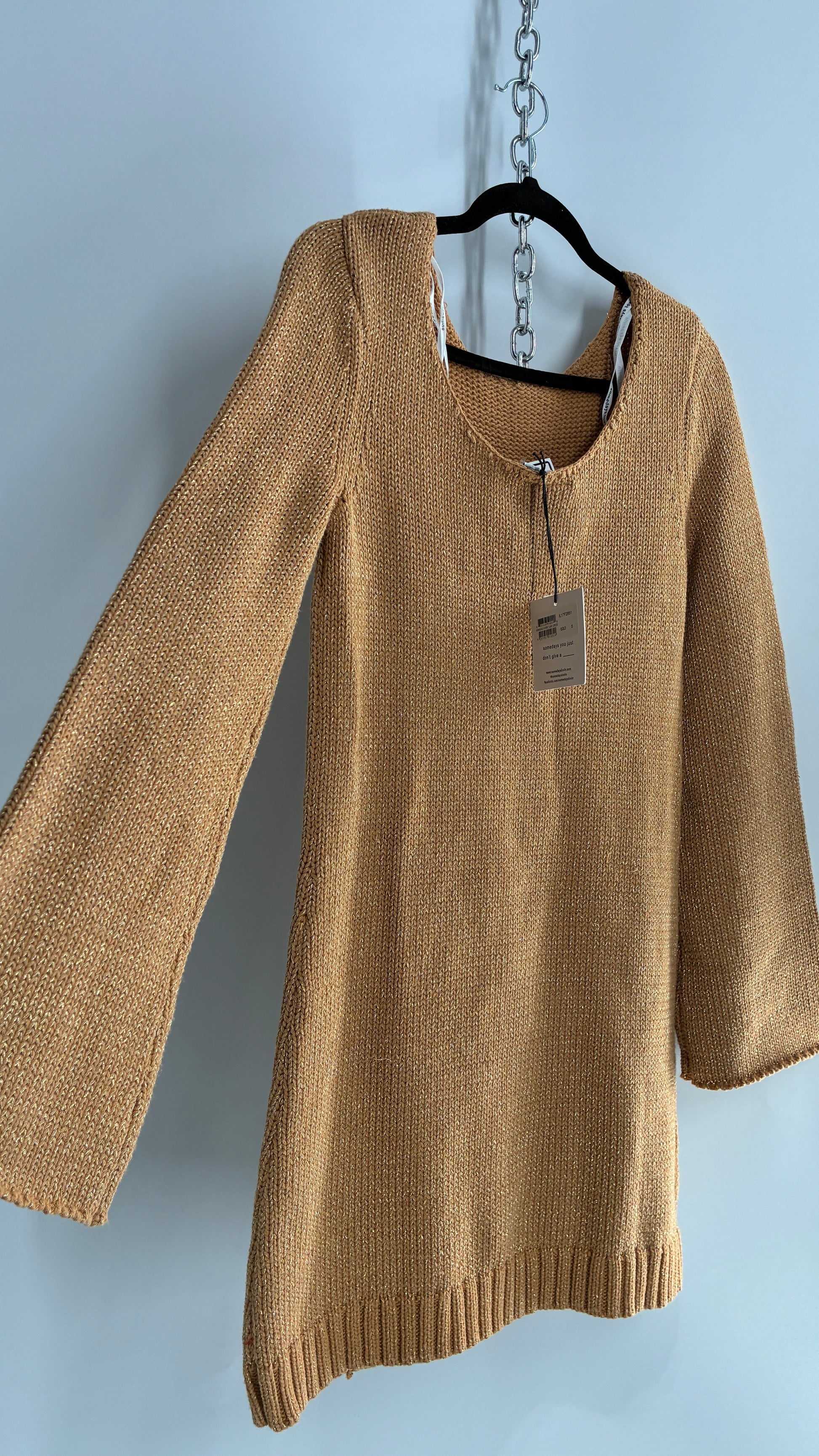 Some Days Lovin Gold Tinsel Knit Bell Sleeve Mini Dress (Small)