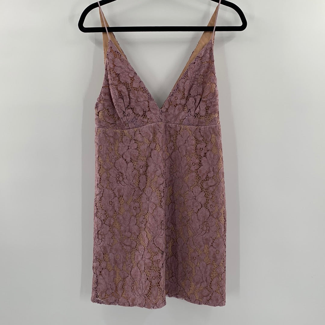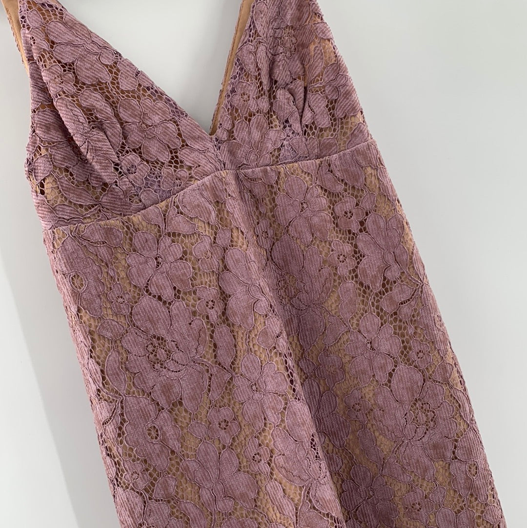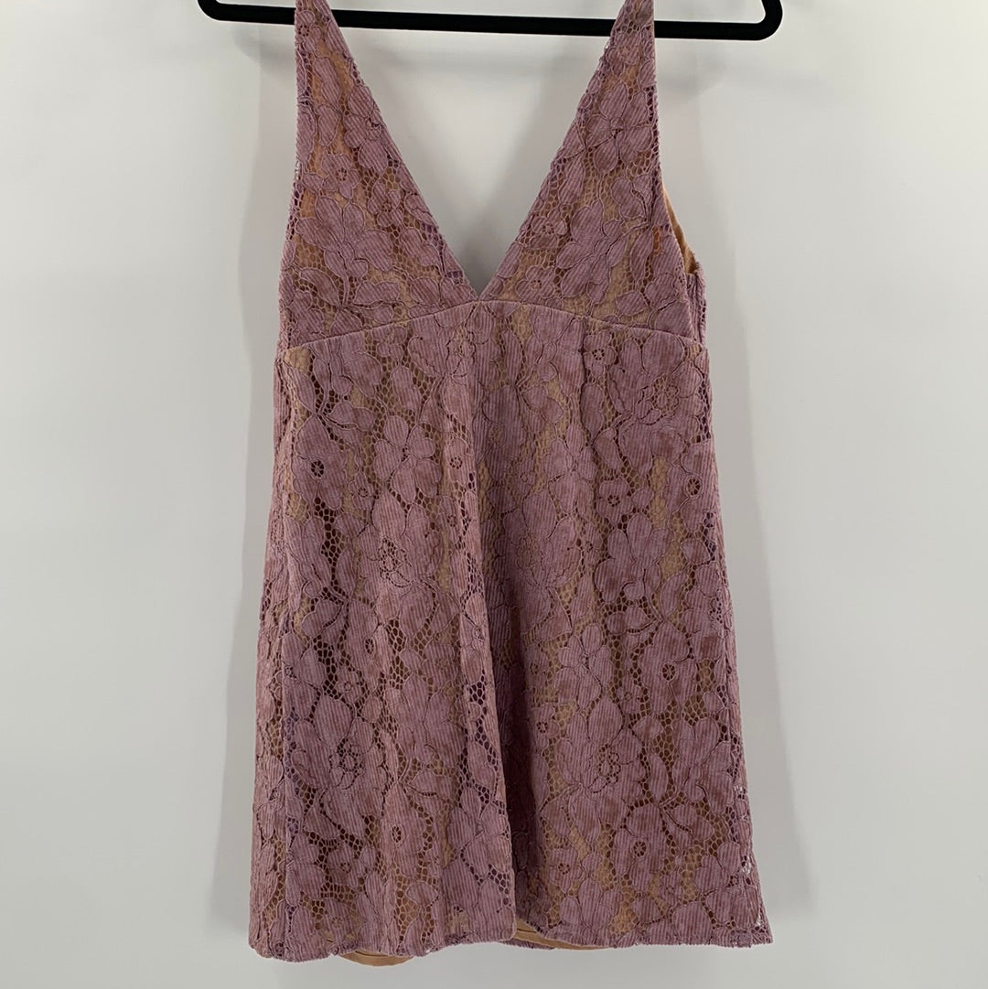 Free People Lilac Corduroy Lace Over Nude Underlay Sleeveless Mini Dress (Size 2)