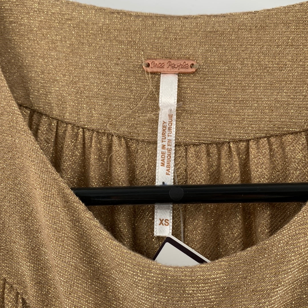 Free People Gold Pleated Mini Dress (SzXS)