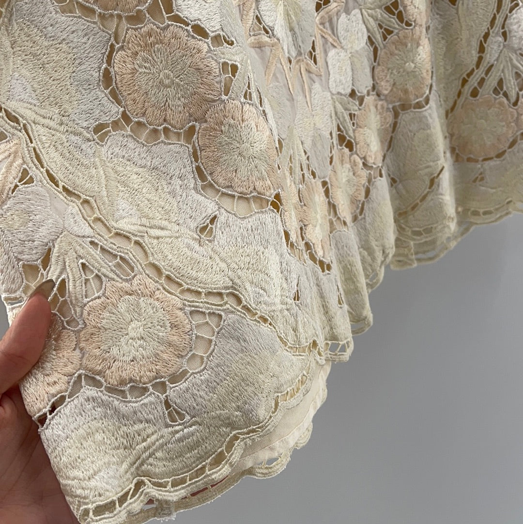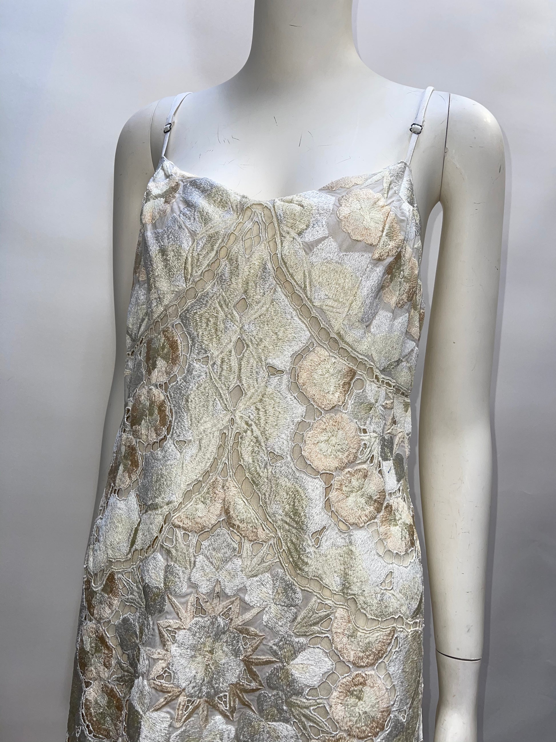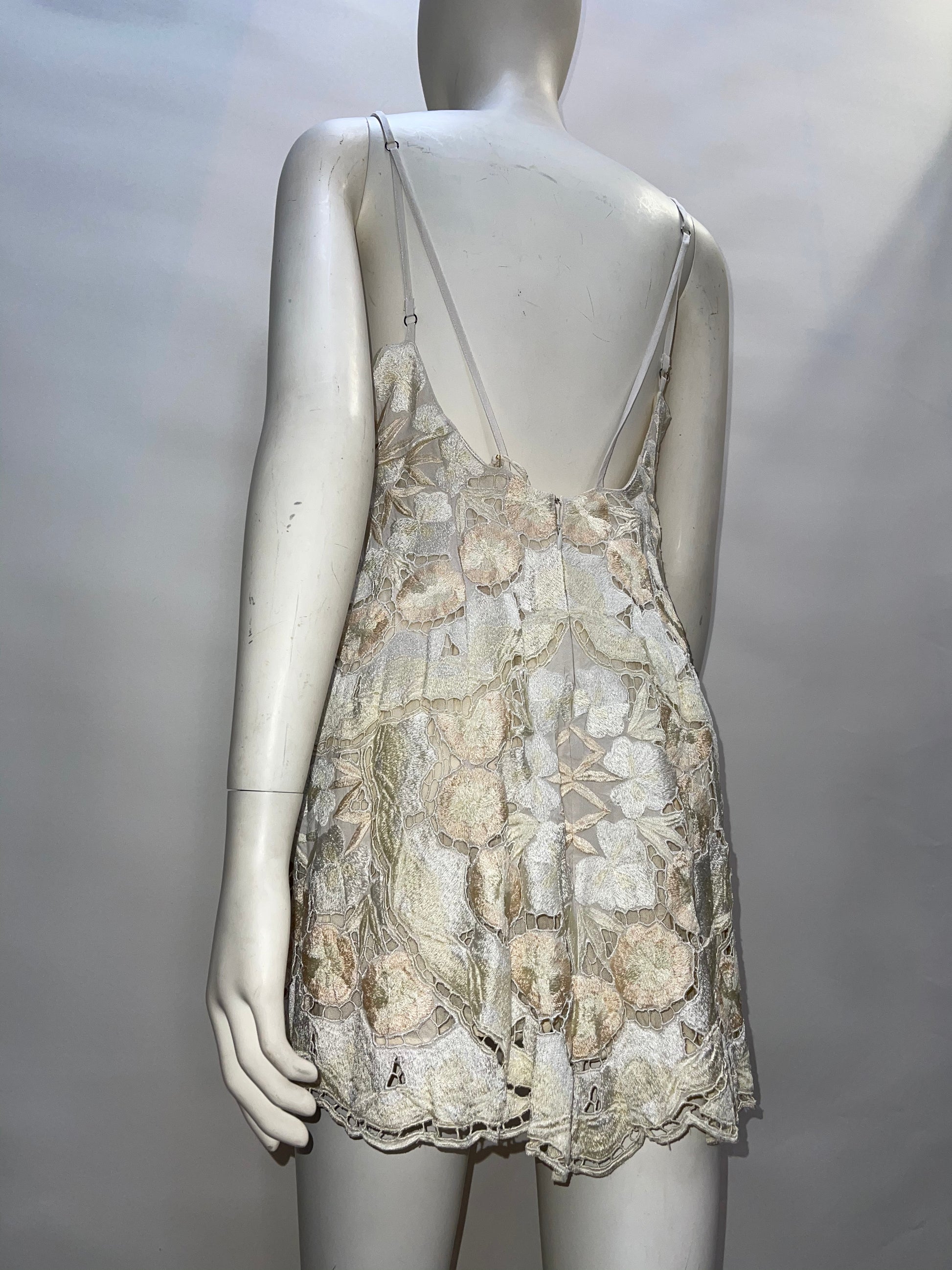Free People heavily embroidered lace slip dress with varying shades of white, cream and beige