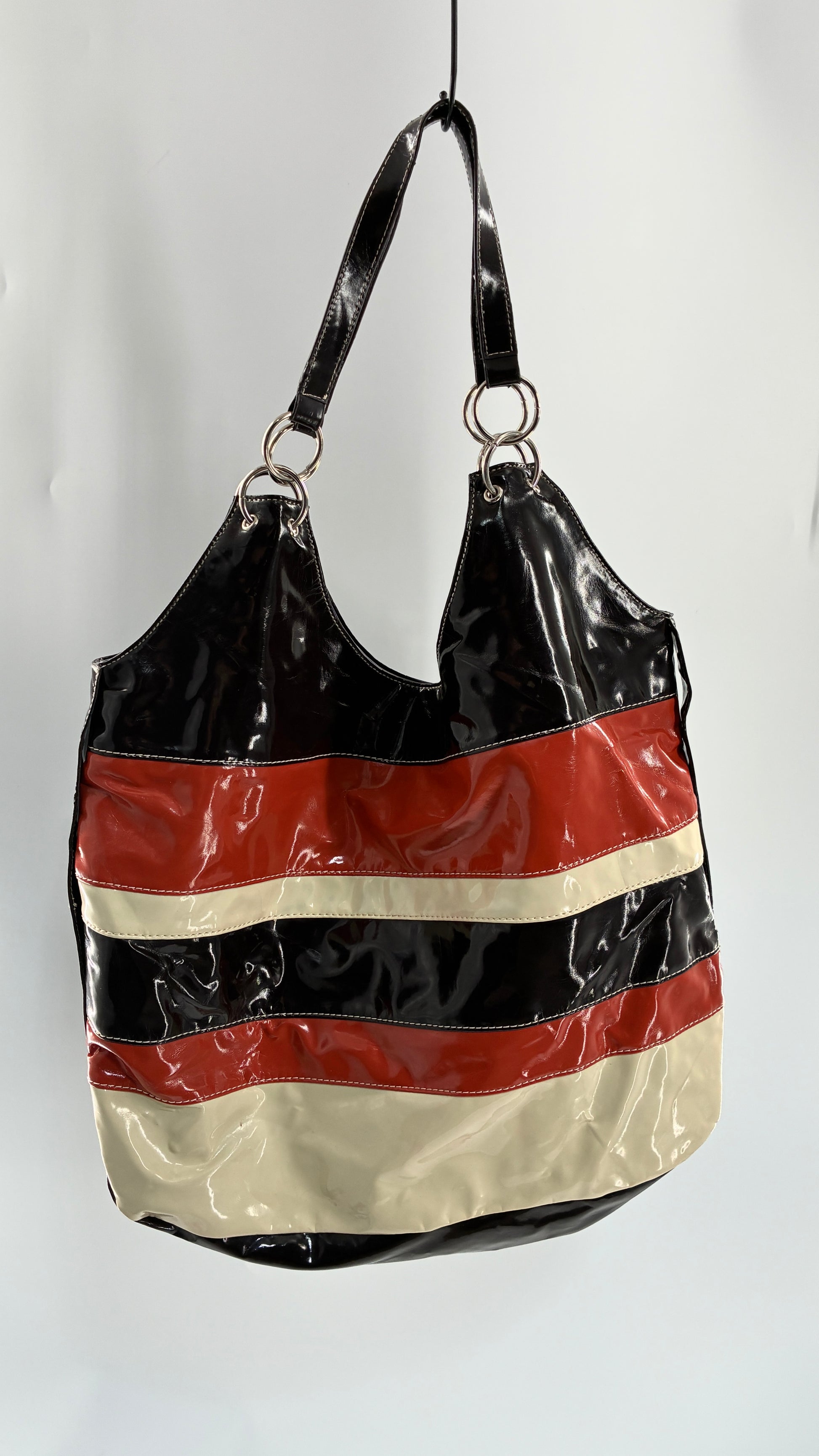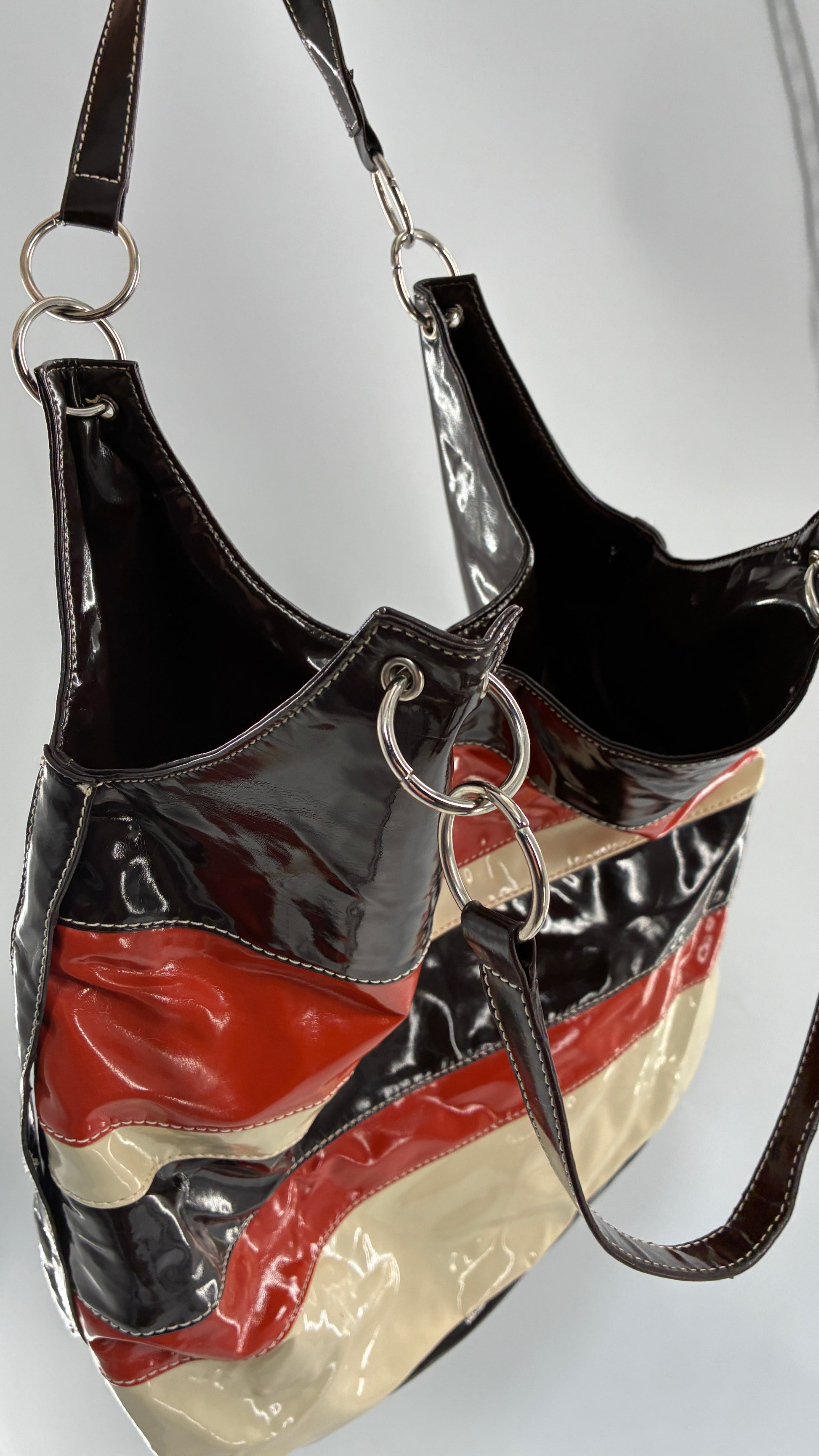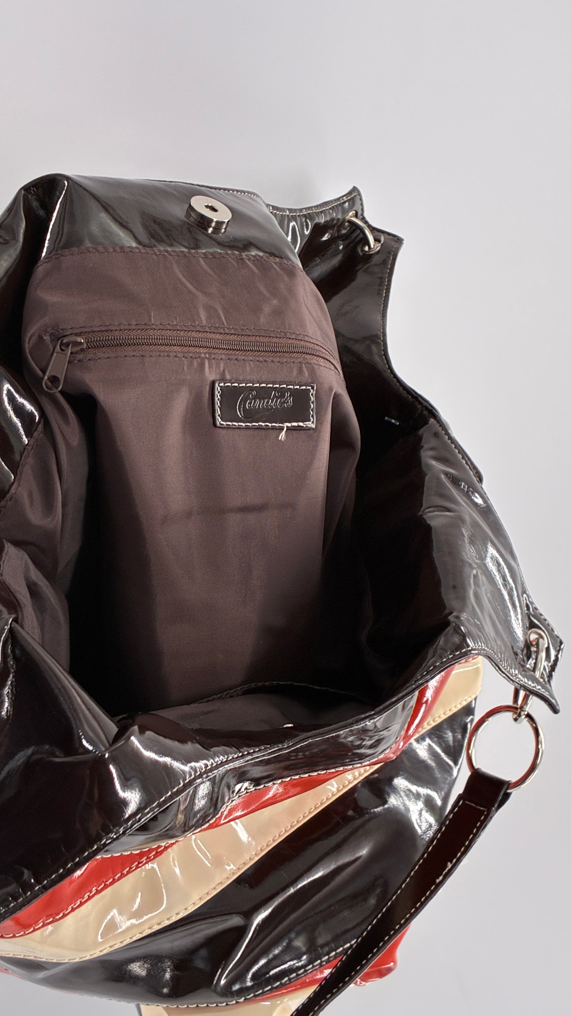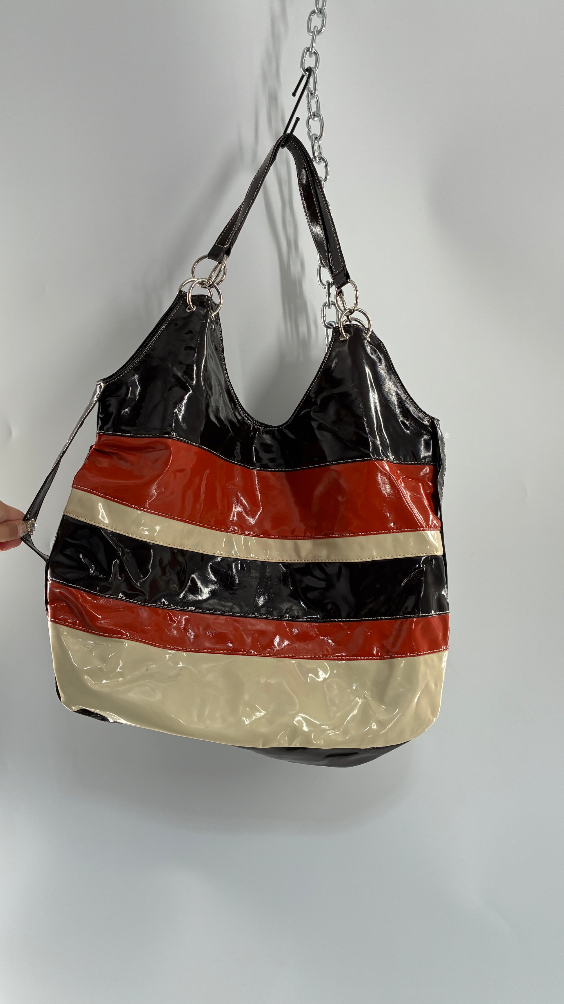 Vintage CANDIES Patent Oversized Striped Brown, Cream, Orange Tote