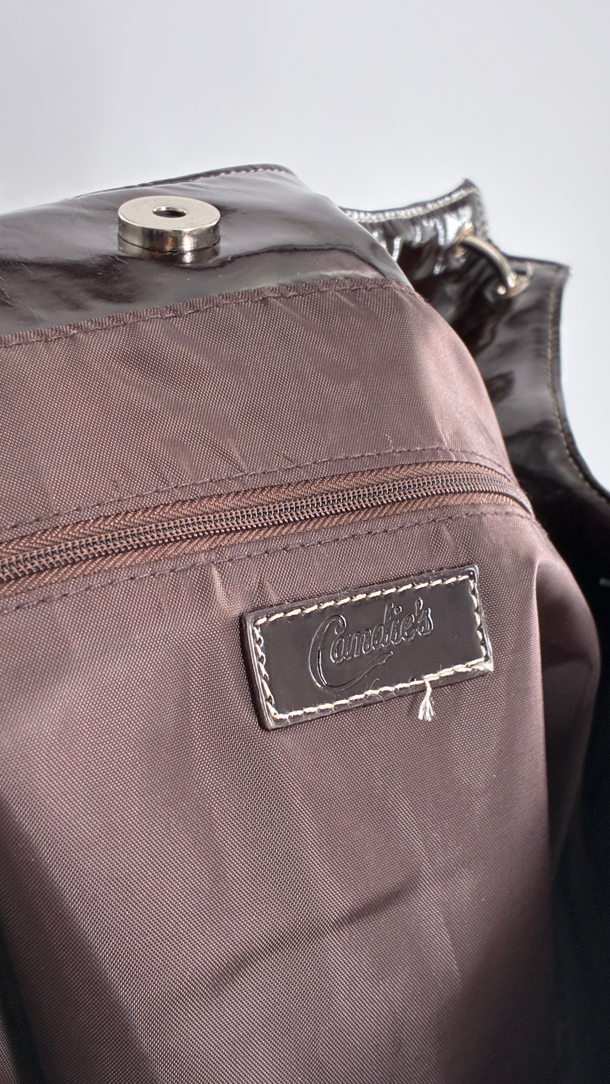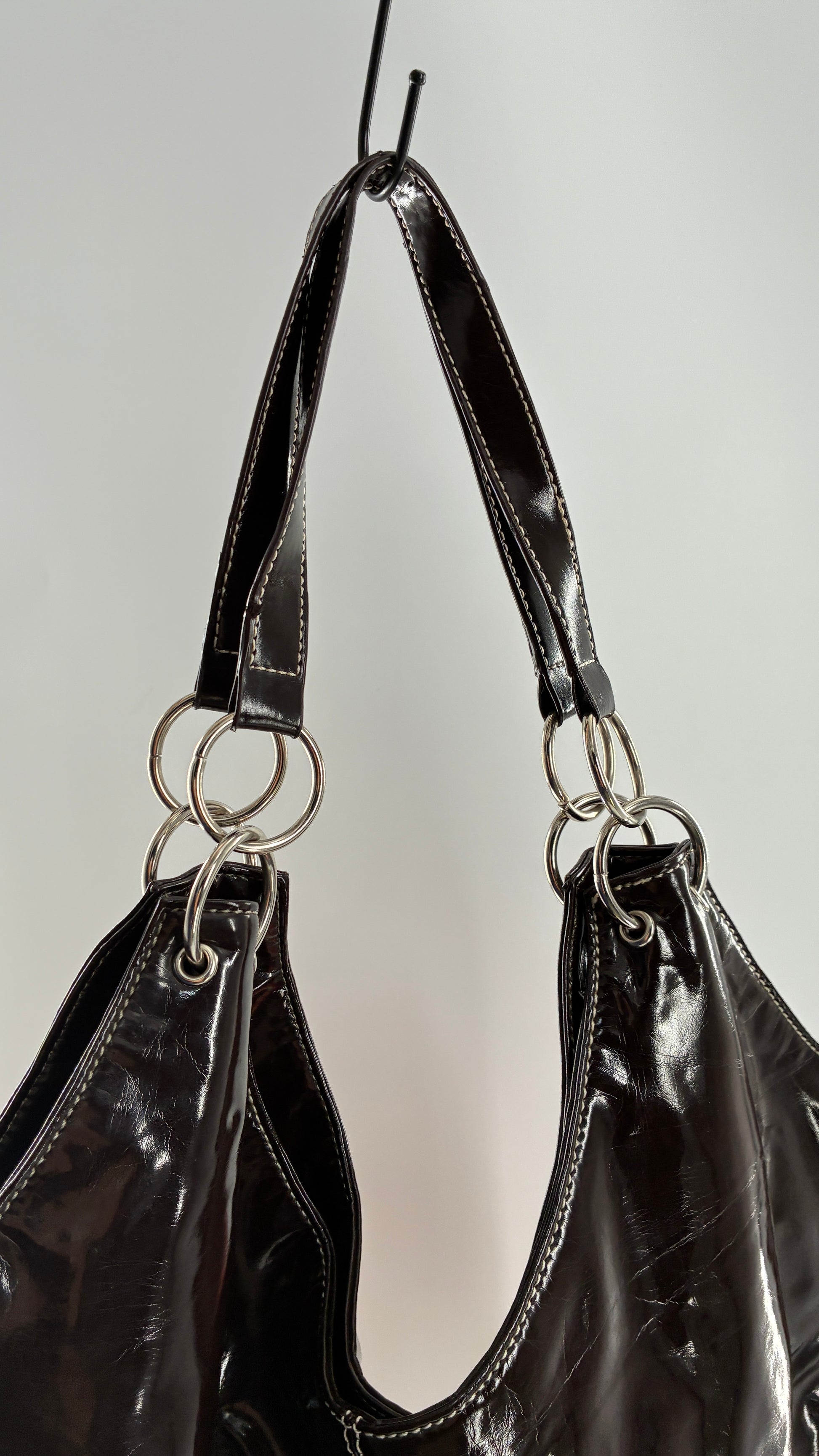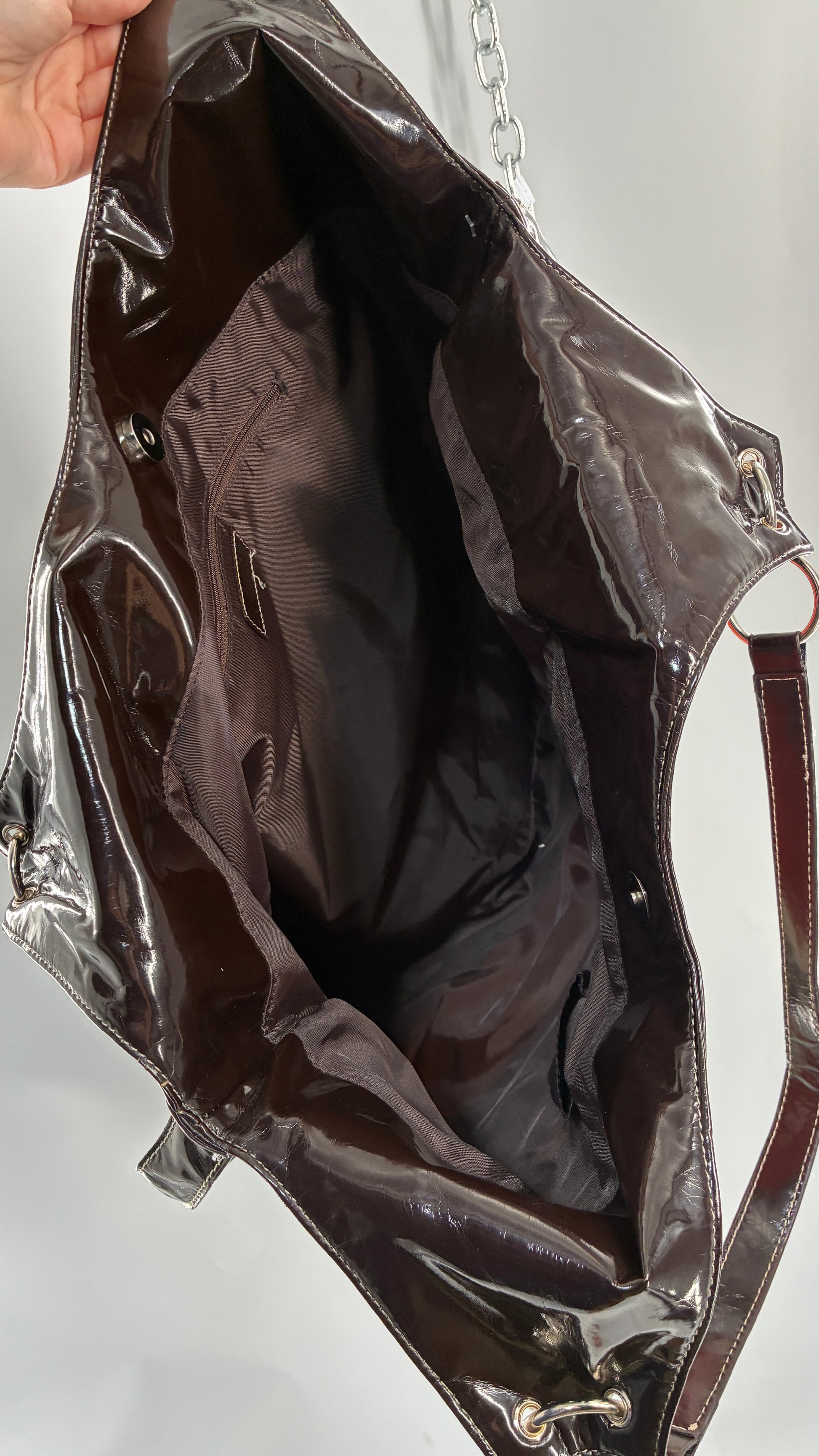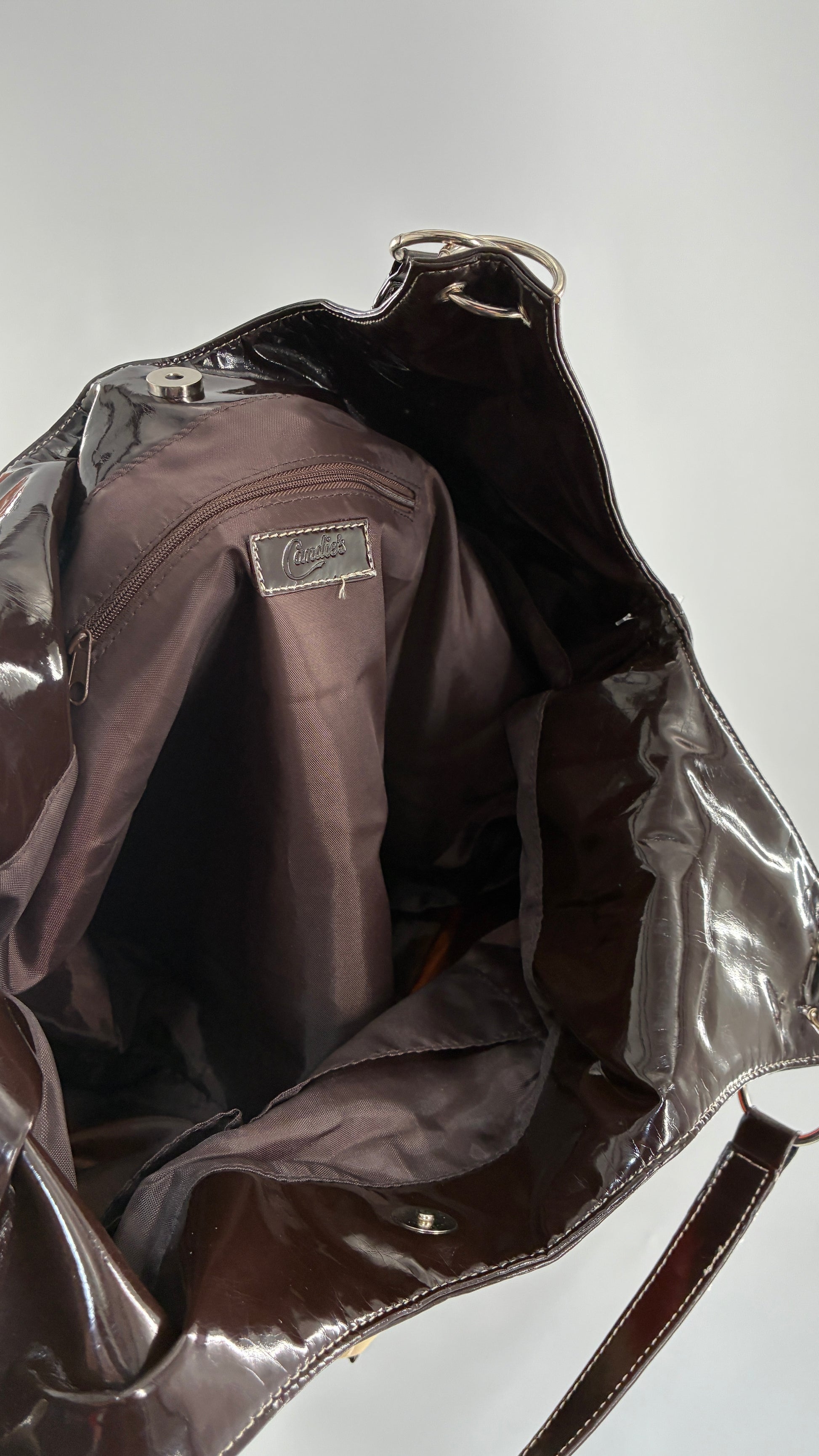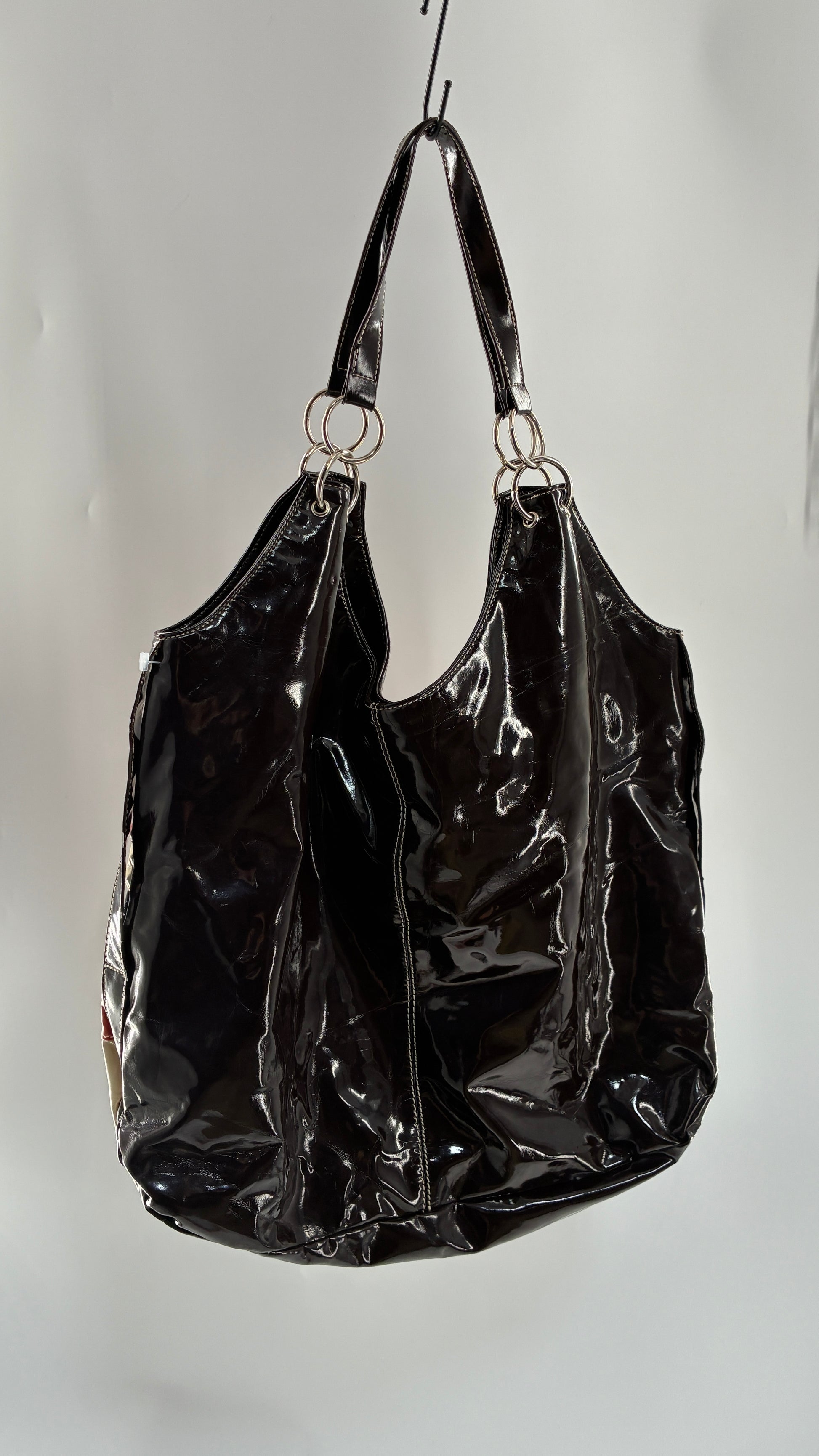 Vintage CANDIES Patent Oversized Striped Brown, Cream, Orange Tote