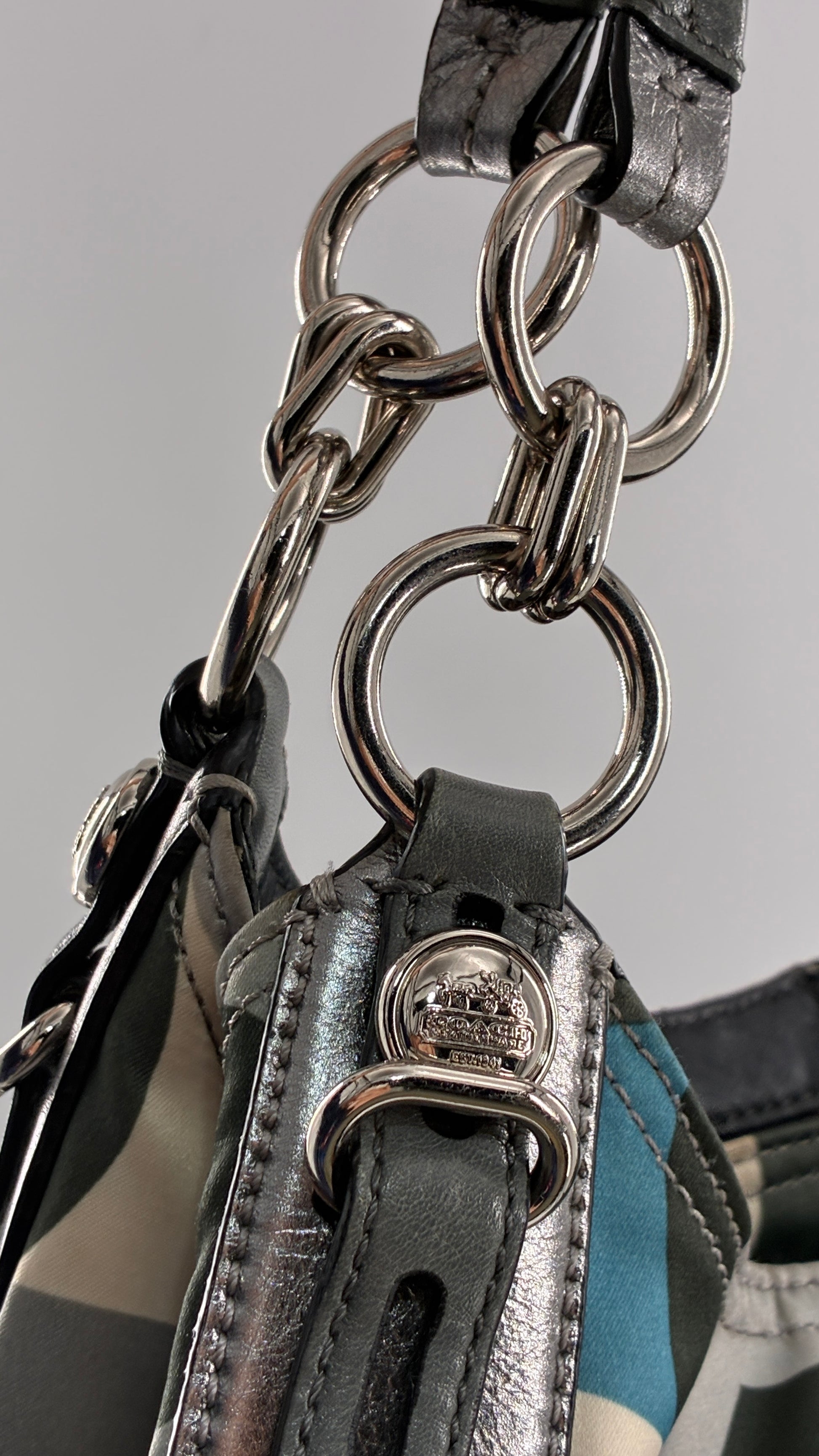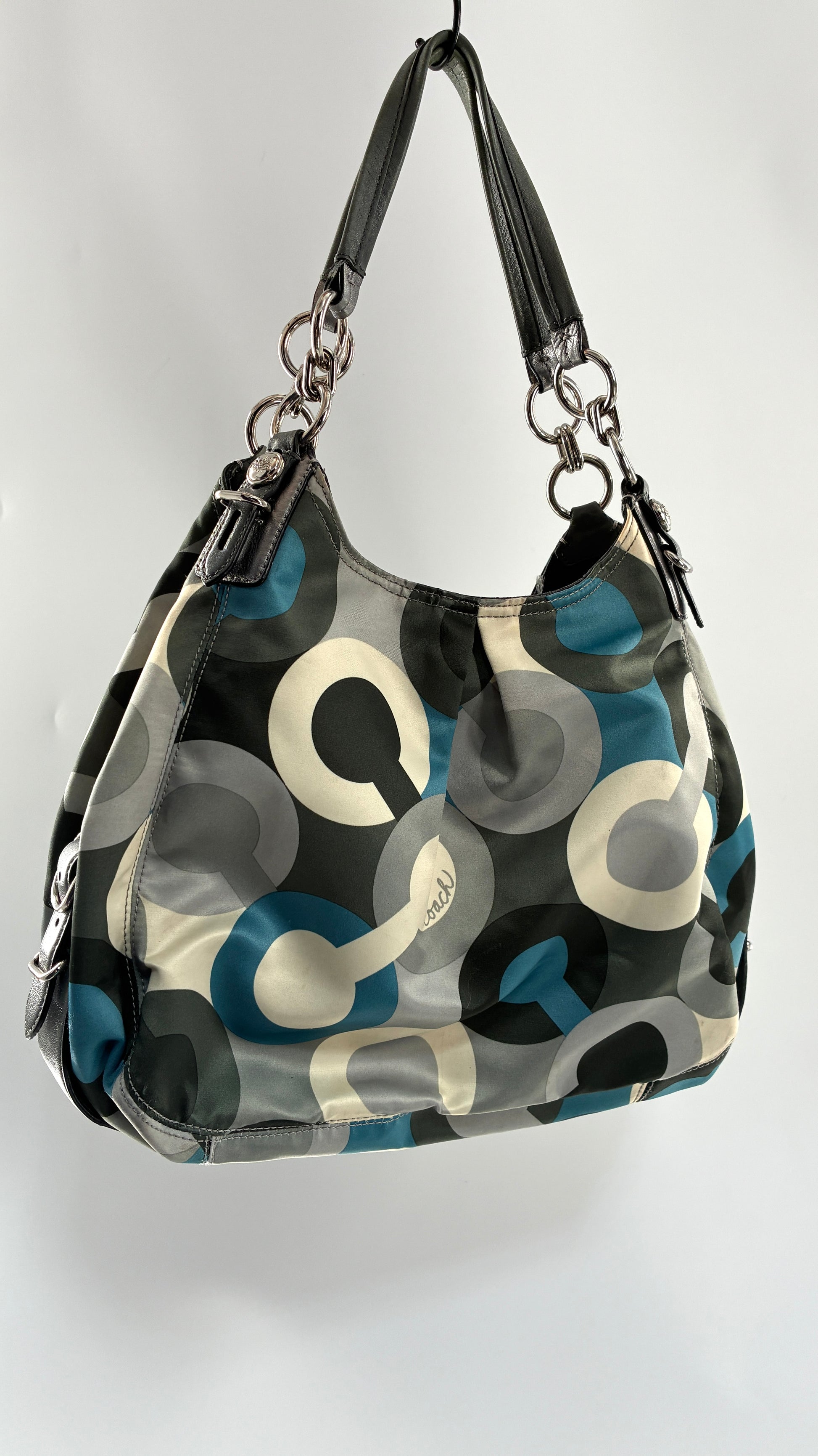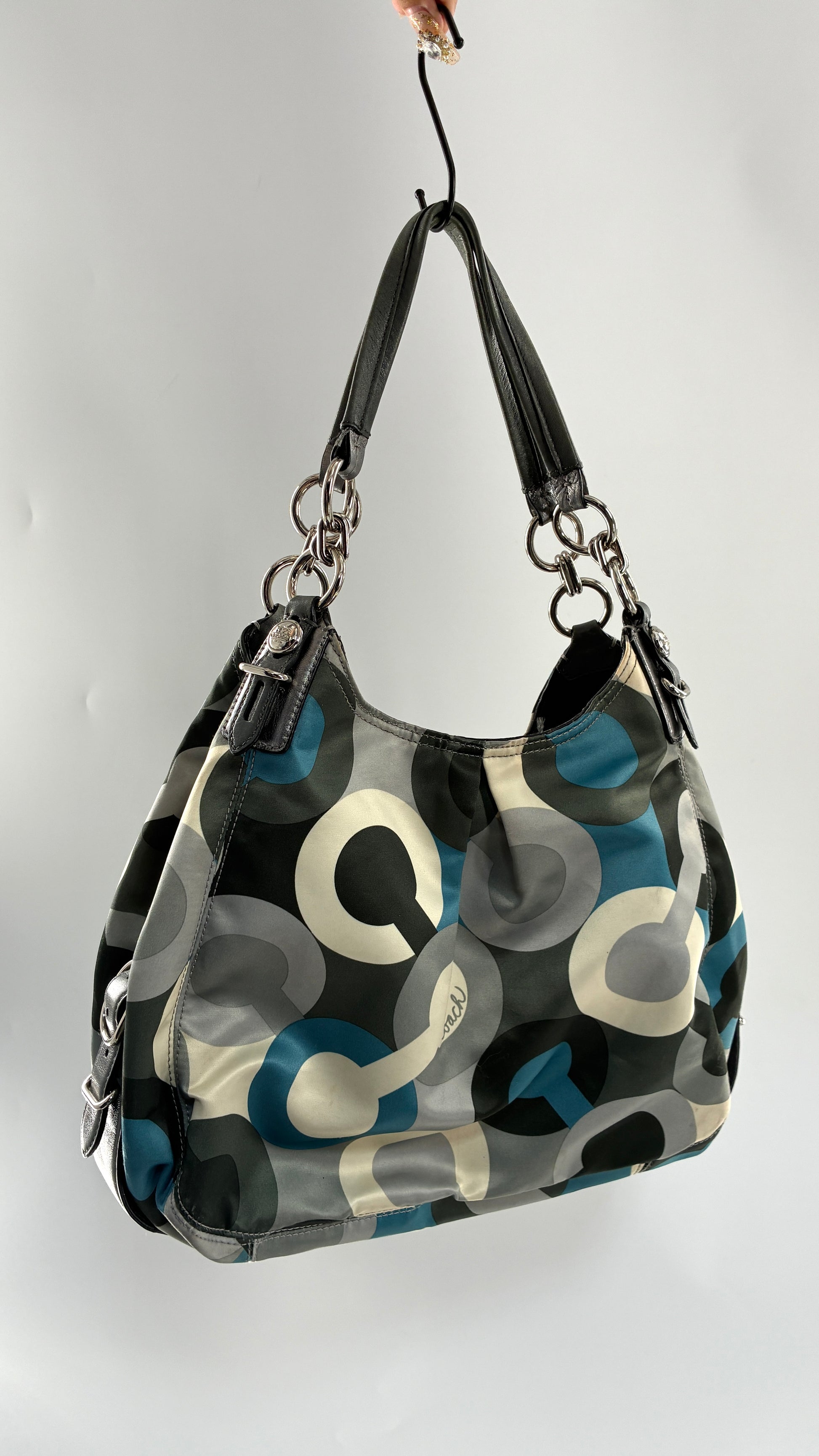 Vintage COACH Graphic Monogram Grey, Blue, Silver Shoulder Bag