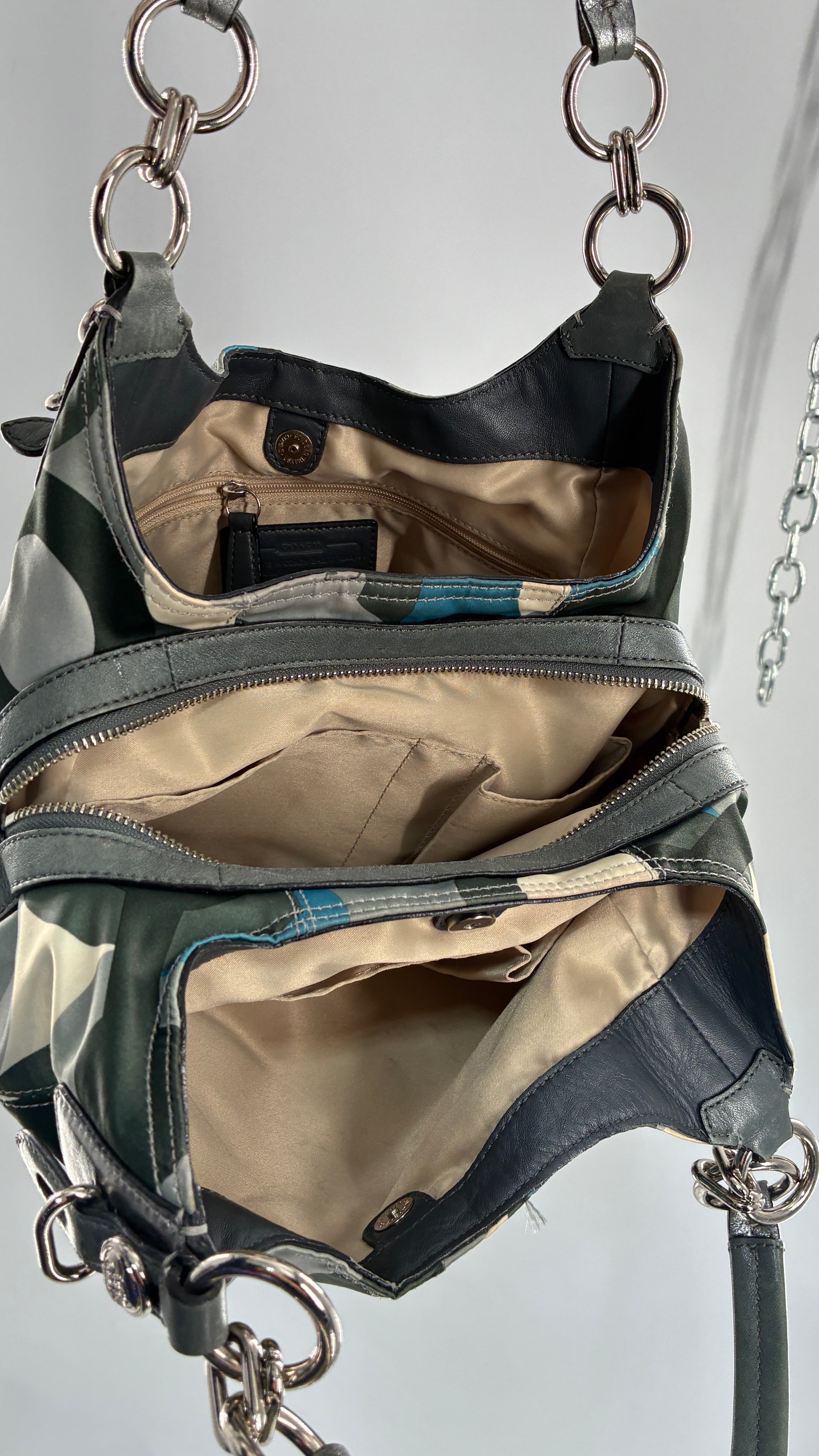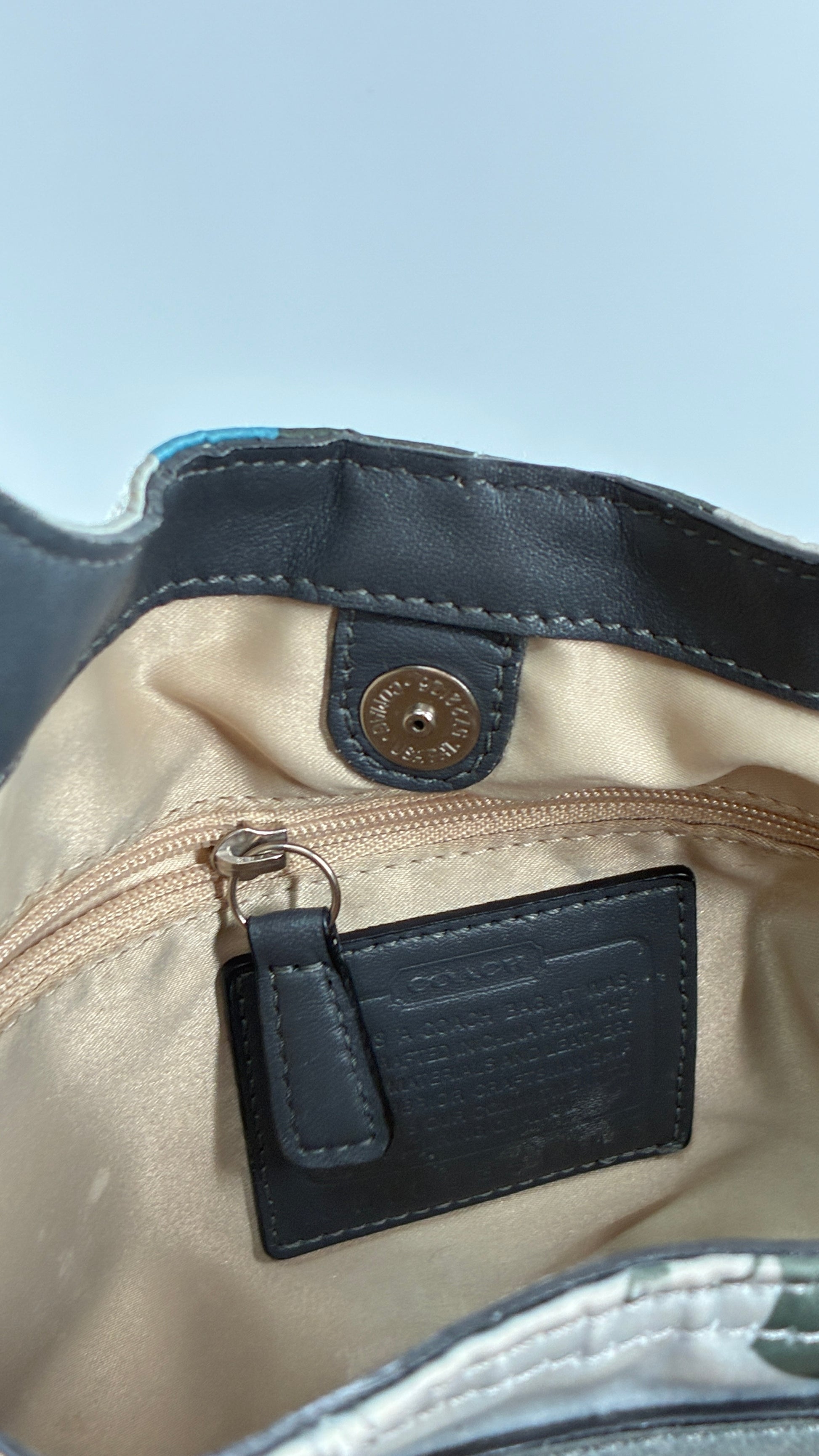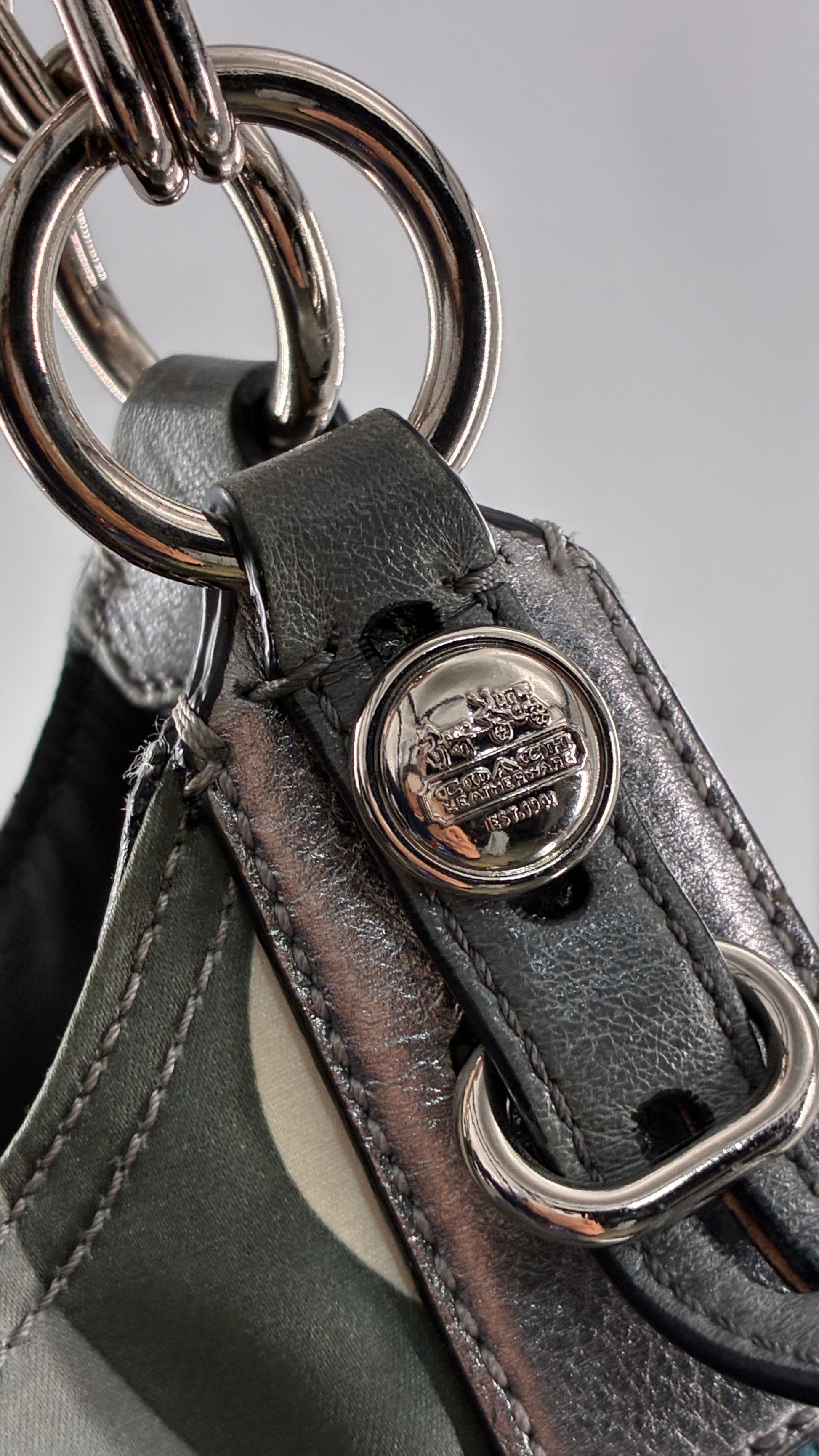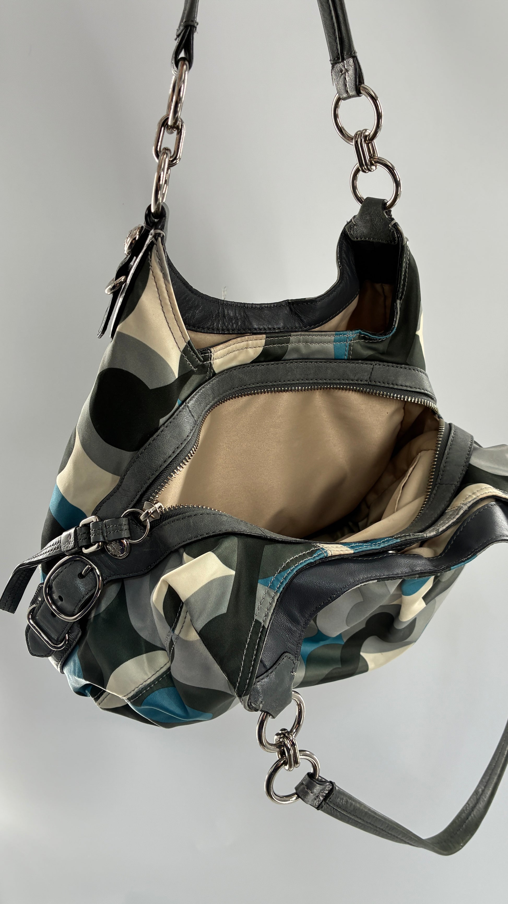Vintage COACH Graphic Monogram Grey, Blue, Silver Shoulder Bag